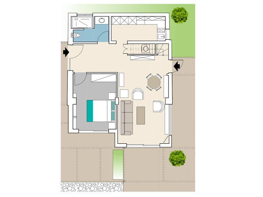 Palm Garden Villa Halkidiki is set in the Vourvourou region that offers a sea breeze, beautiful beaches, and a mountain covered with thick forests. The Village is located on the eastern side of Sithonia named as the second foot of Halkidiki. It consists of an open plan ground floor with a large living room, one sofa bed for 2 people, a fully equipped kitchen and dining area, one double bedroom, and one bathroom with a shower.