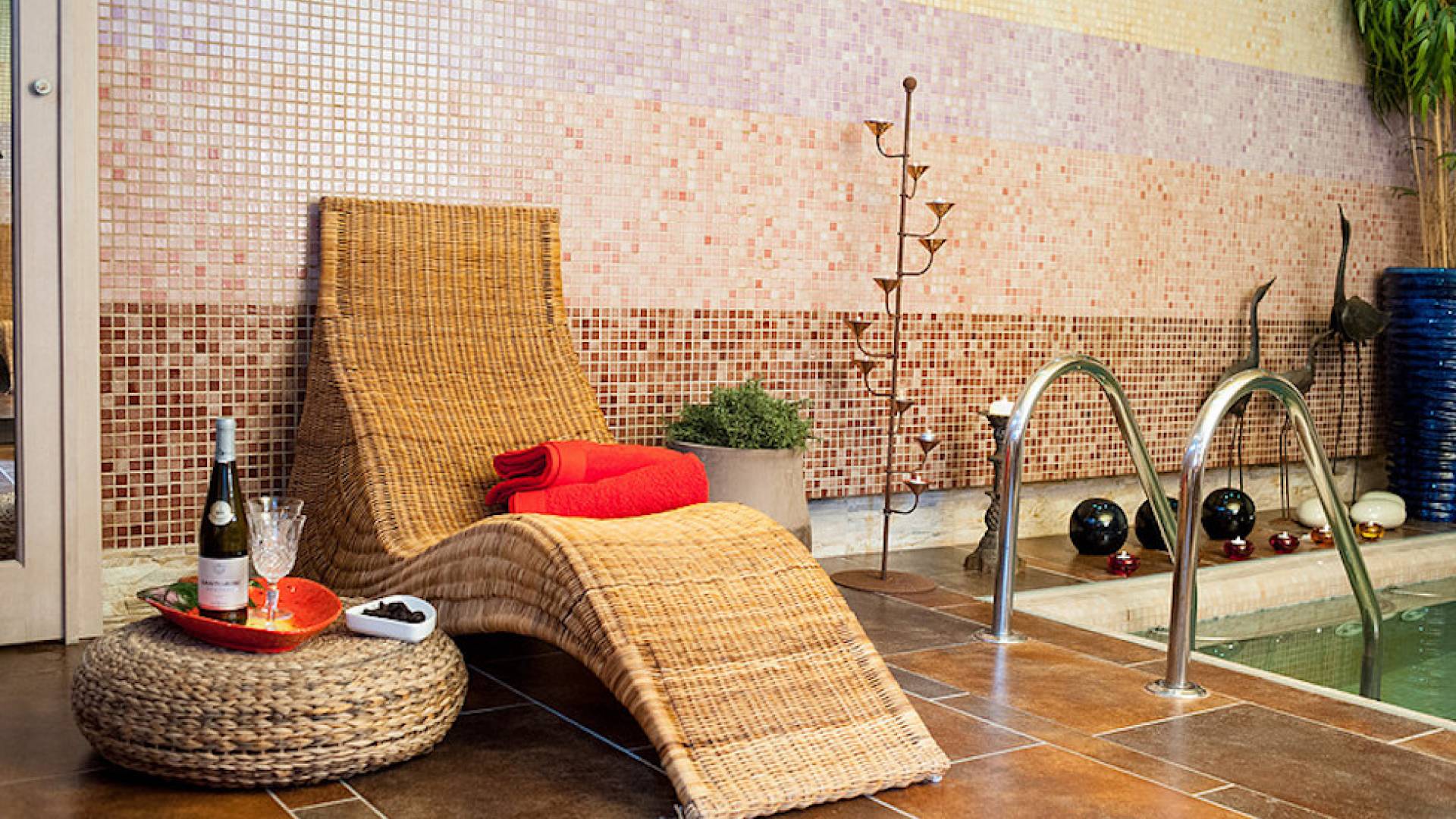 Other highlights of Villa Thea include: a large, modern and fully equipped kitchen, an impressive indoor atmospheric jacuzzi room, private BBQ facilities, a large private garden area and direct beach access to a private beach lounge area.