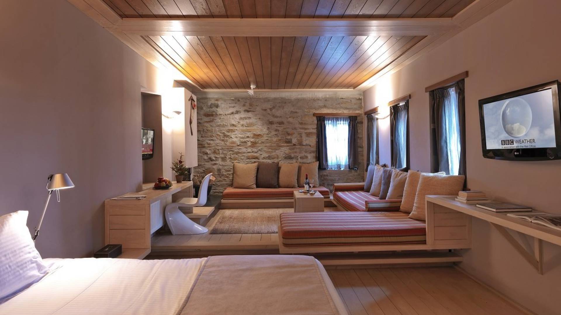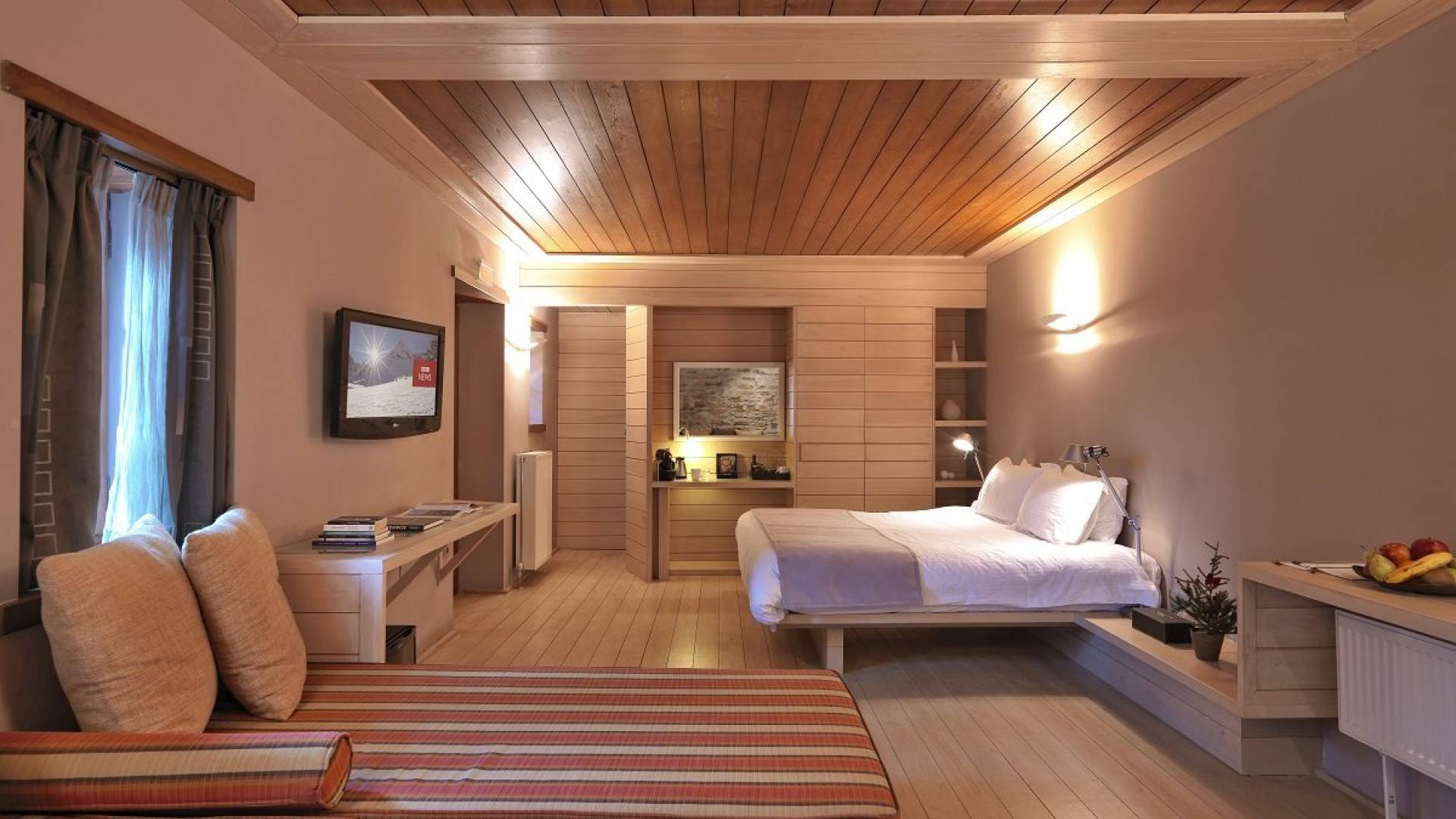 Its eight luxurious suites and terraces offer panoramic views of the village, Mitsikeli mountain, Baya river, and Milos – one of a network of bridges that links the many traditional villages in the area. Throughout the seasons Kipi Suites offers a perfect escape for lovers of nature and country living. At Kipi Suites enter Zagori’s magical world of mountains, rivers, ancient and pathways, and bridges linking the many local villages – each with its own distinct attraction. Kipi Executive Suite is a luxurious accommodation offering a cozy atmosphere and modern design. This suite can accommodate up to 2 guests.