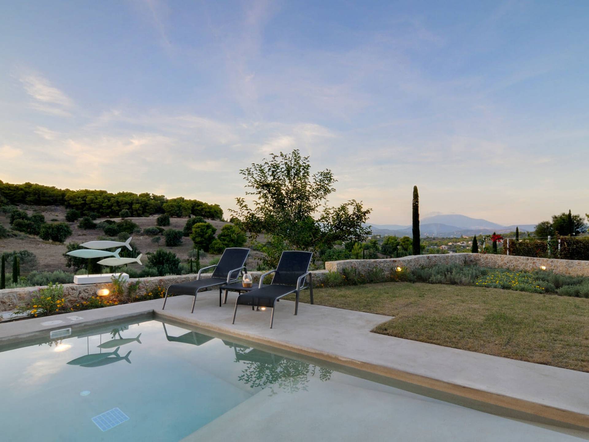 Oliveto-Basilico Villas Porto Heli are both newly built design luxury retreats, in minimal style, of the Vineyard Villa, set amid vineyards and a mountain environment different to any other.
