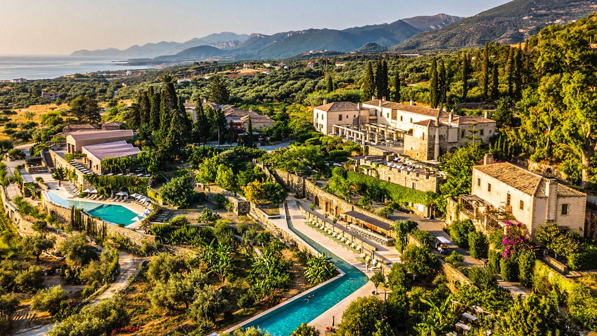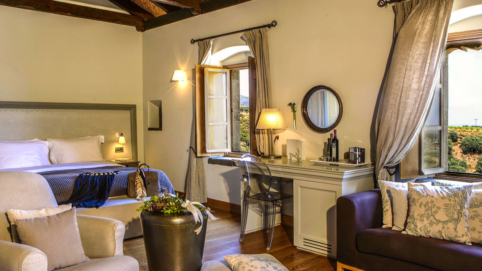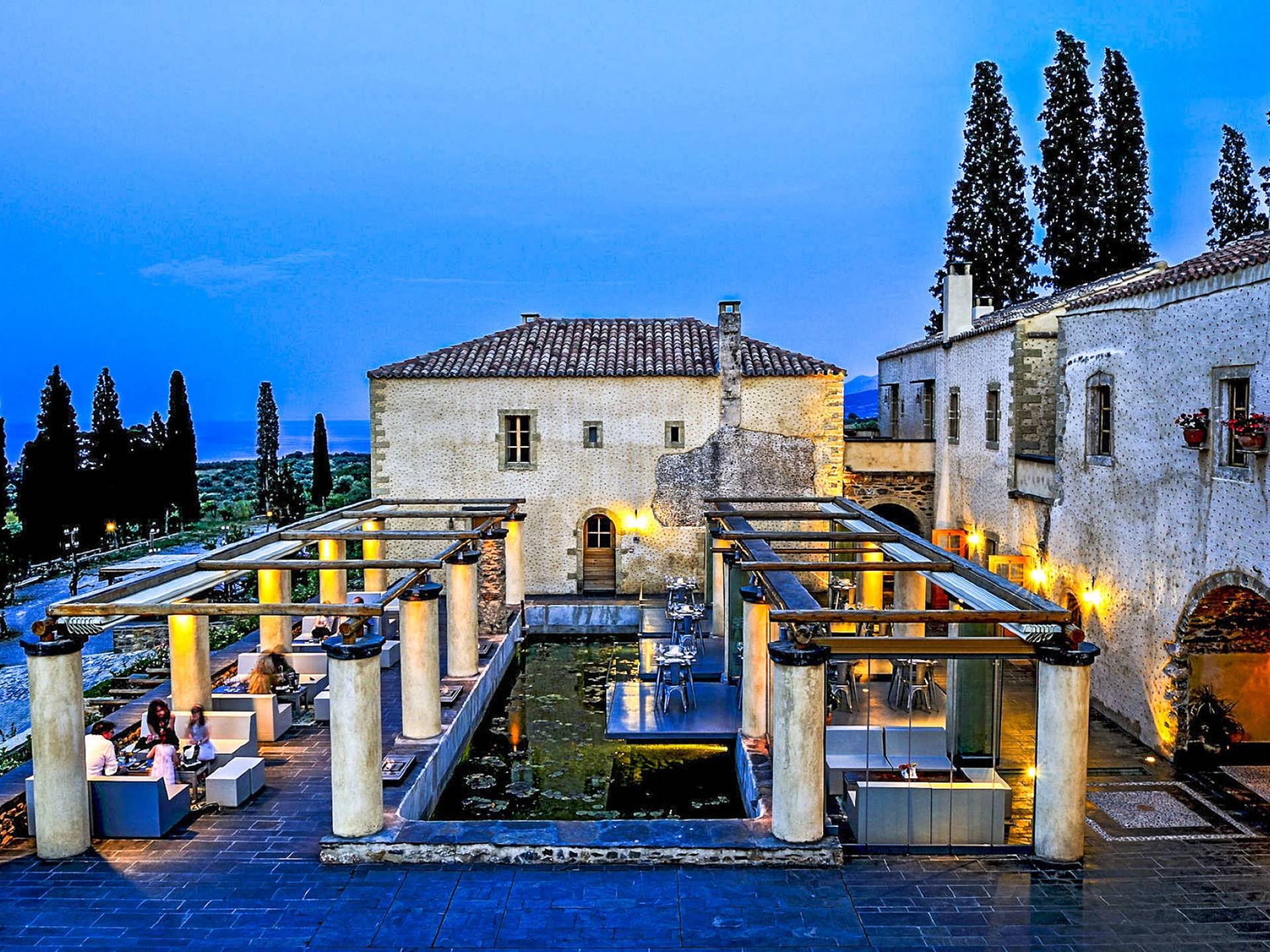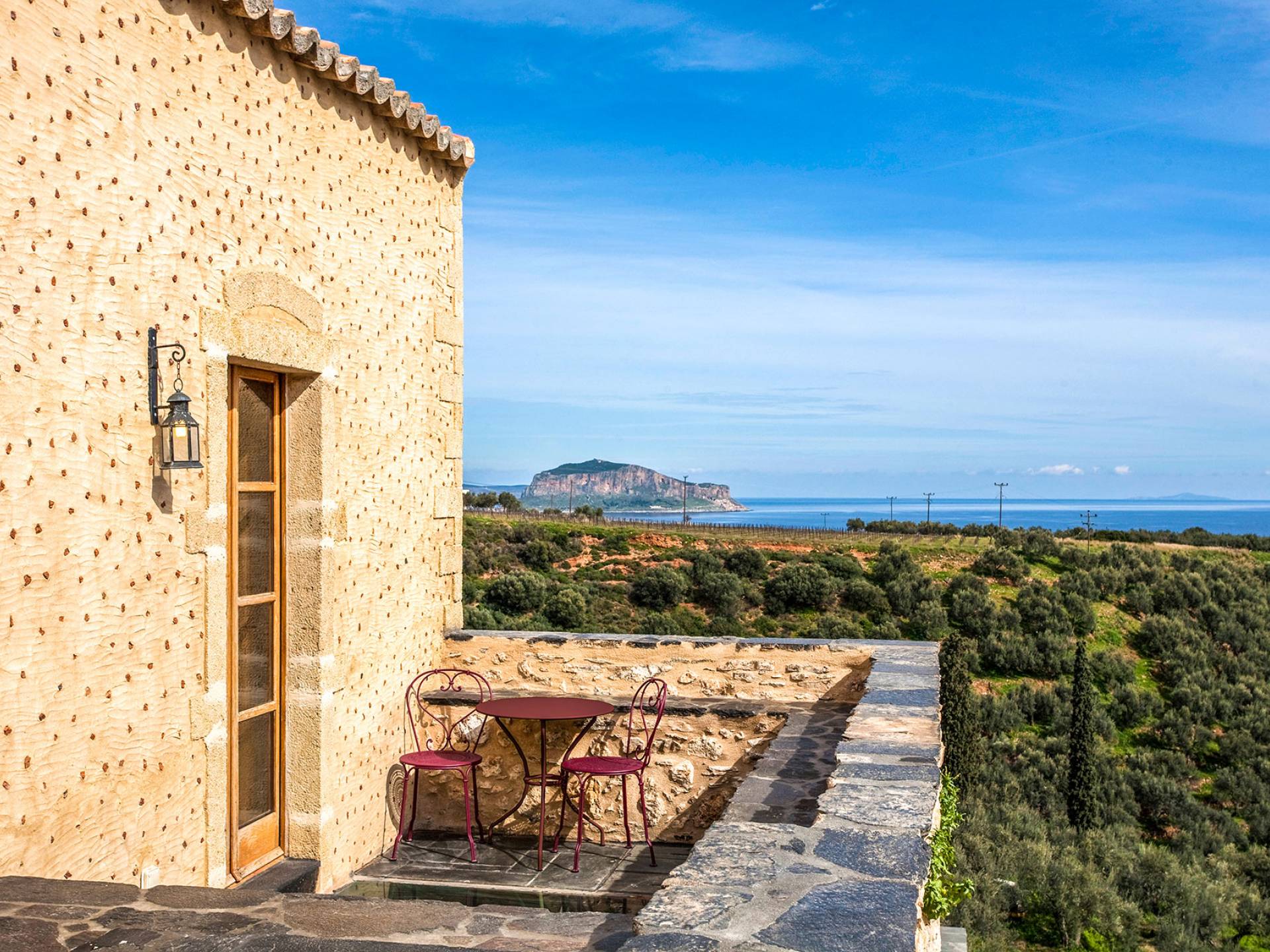 There is a place at the southernmost tip of Europe – dreamlike, magical, and secret – cradled by idyllic vineyards, olive and fruit orchards and only a few minutes from the bright blue Aegean Sea. The Kinsterna, an impressive mansion and sprawling estate dating to the Byzantine, Ottoman, and Venetian eras, has been meticulously restored and returned to its former glory with an air of discreet luxury.