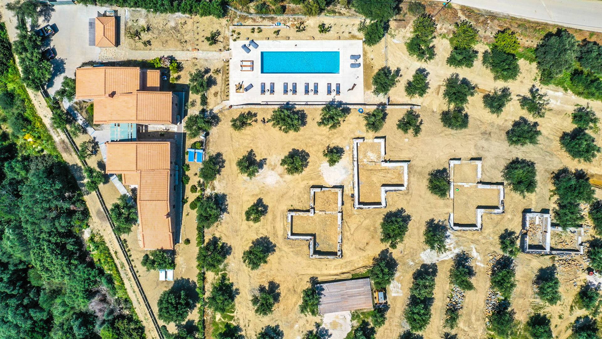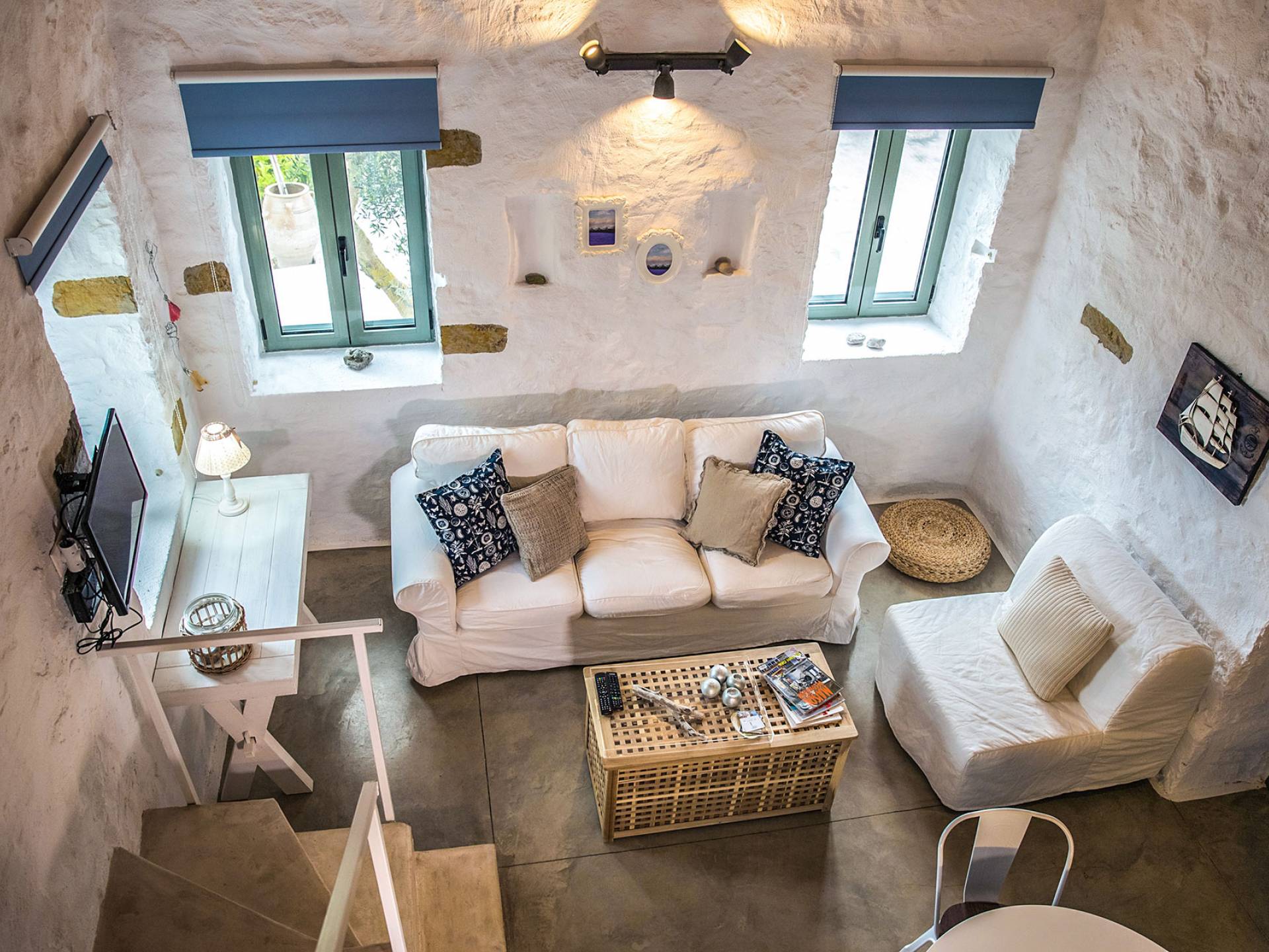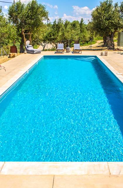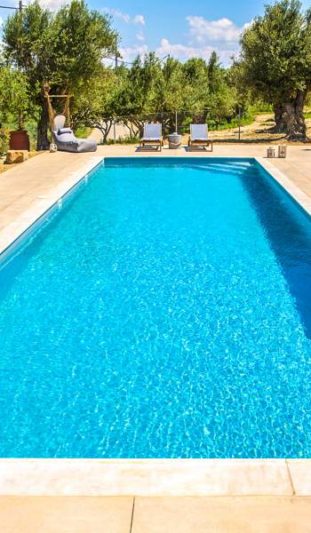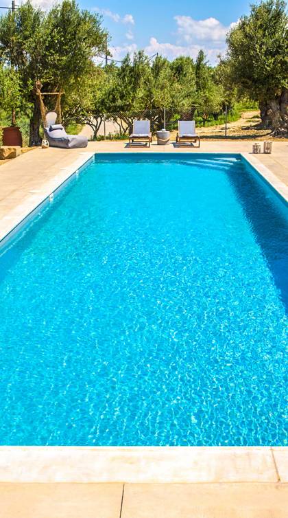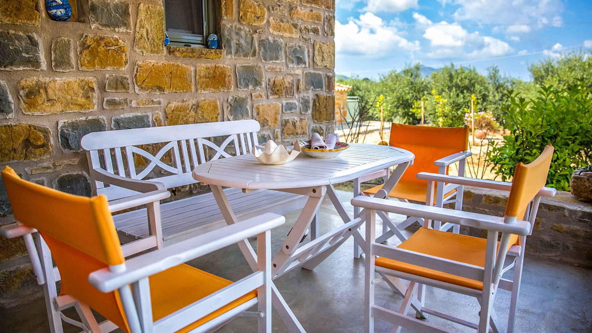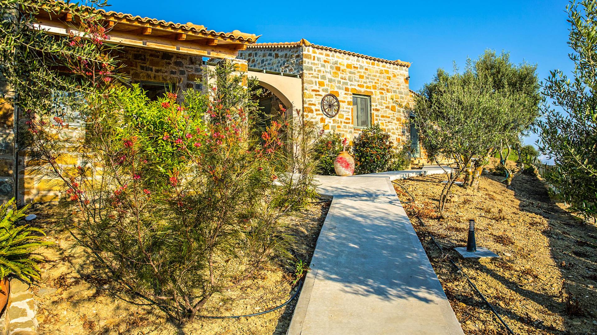Surrounded by endless rows of silver-green olives trees, Afentiko Pigadi’s four independent villas are located on a serene hillside overlooking the Ionian sea. Made from local stone sourced in nearby areas and with great respect to the unique Peloponnesian landscape, the villas are designed as a natural continuation of their surroundings. The famous perennial olive groves, mix with Afentiko Pigadi’s herb garden. The smell of lavender, thyme and oregano surround the visitor, and the eye travels from the small bunches of orange and lemon trees down to the crystal clear blue of the sea and Methoni’s little islands – Sapienza, Agia Marina, and Schiza.