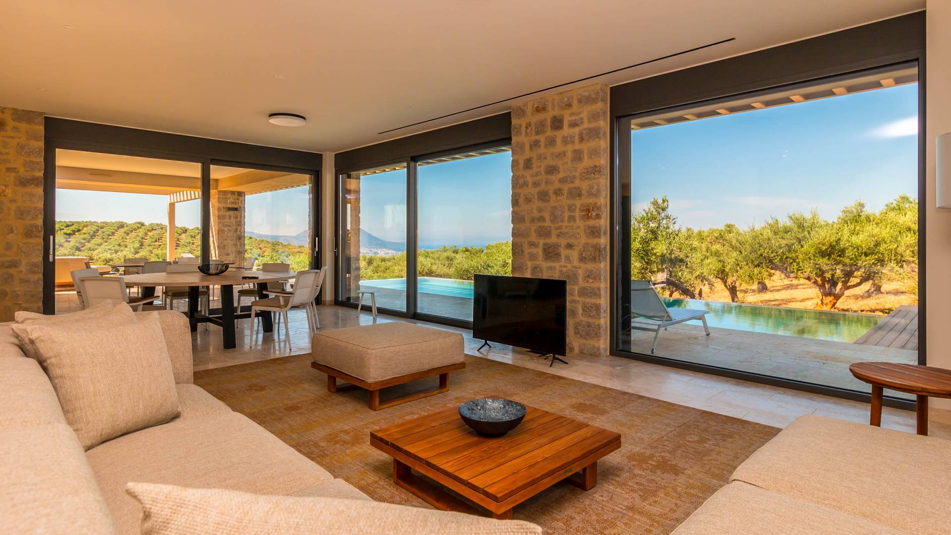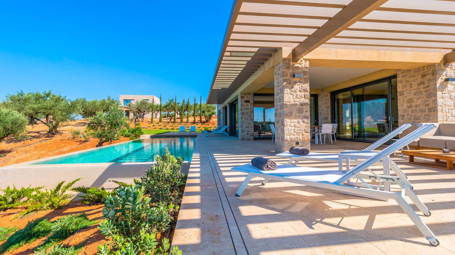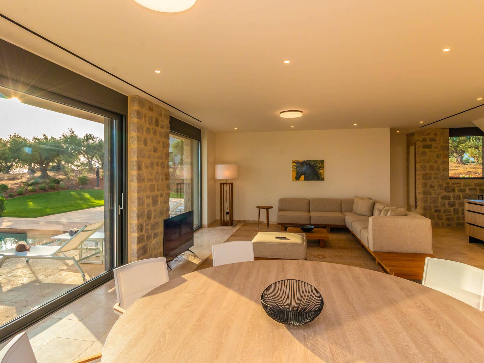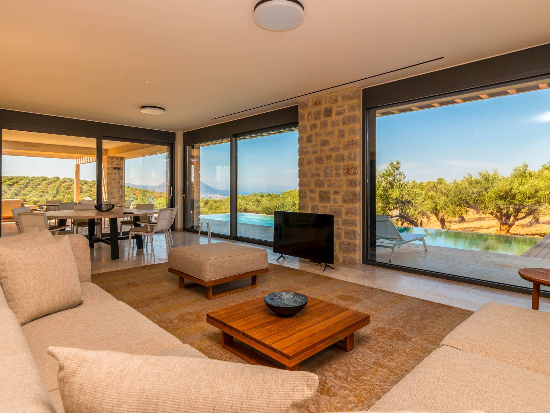 Villa Coral features a cleverly designed outdoor space, including a private pool area, a pergola-covered lounge, and a dining area. Its supreme location on top of the hills gives an impression of total privacy since it is situated in the middle of an olive tree grove. Nevertheless, the beaches, restaurants, and the proclaimed Navarino golf courses are just a few minutes' drive away.