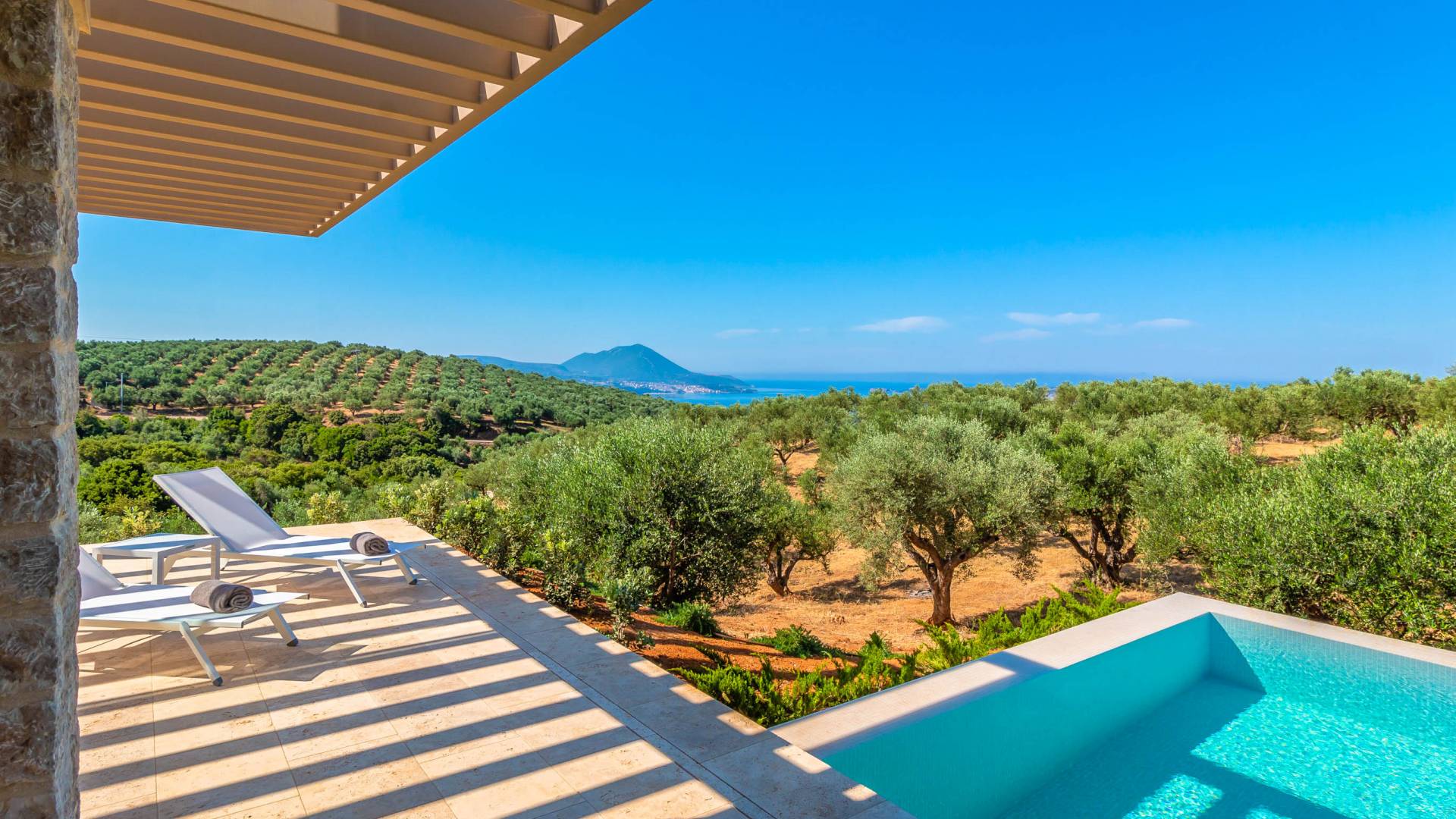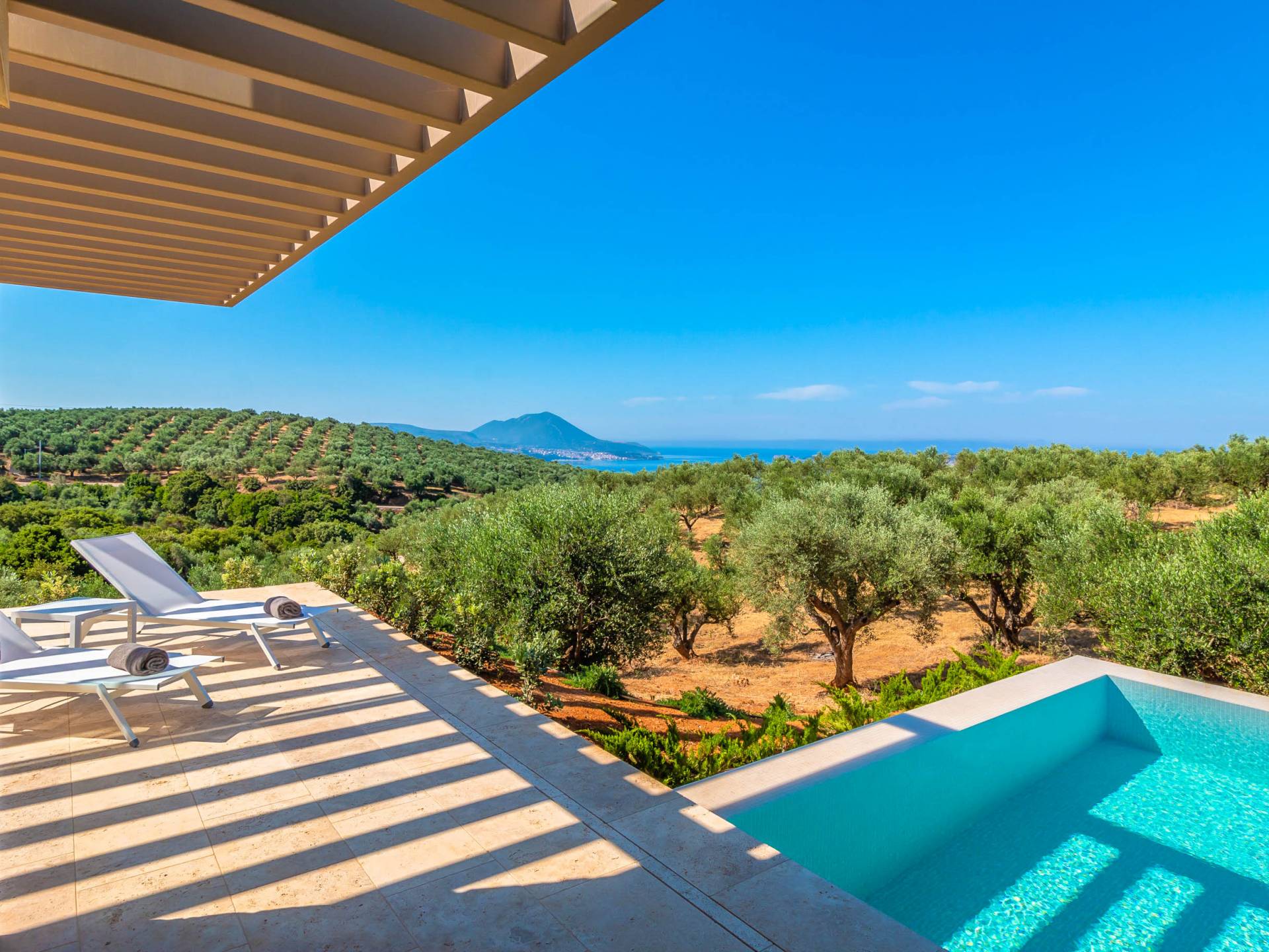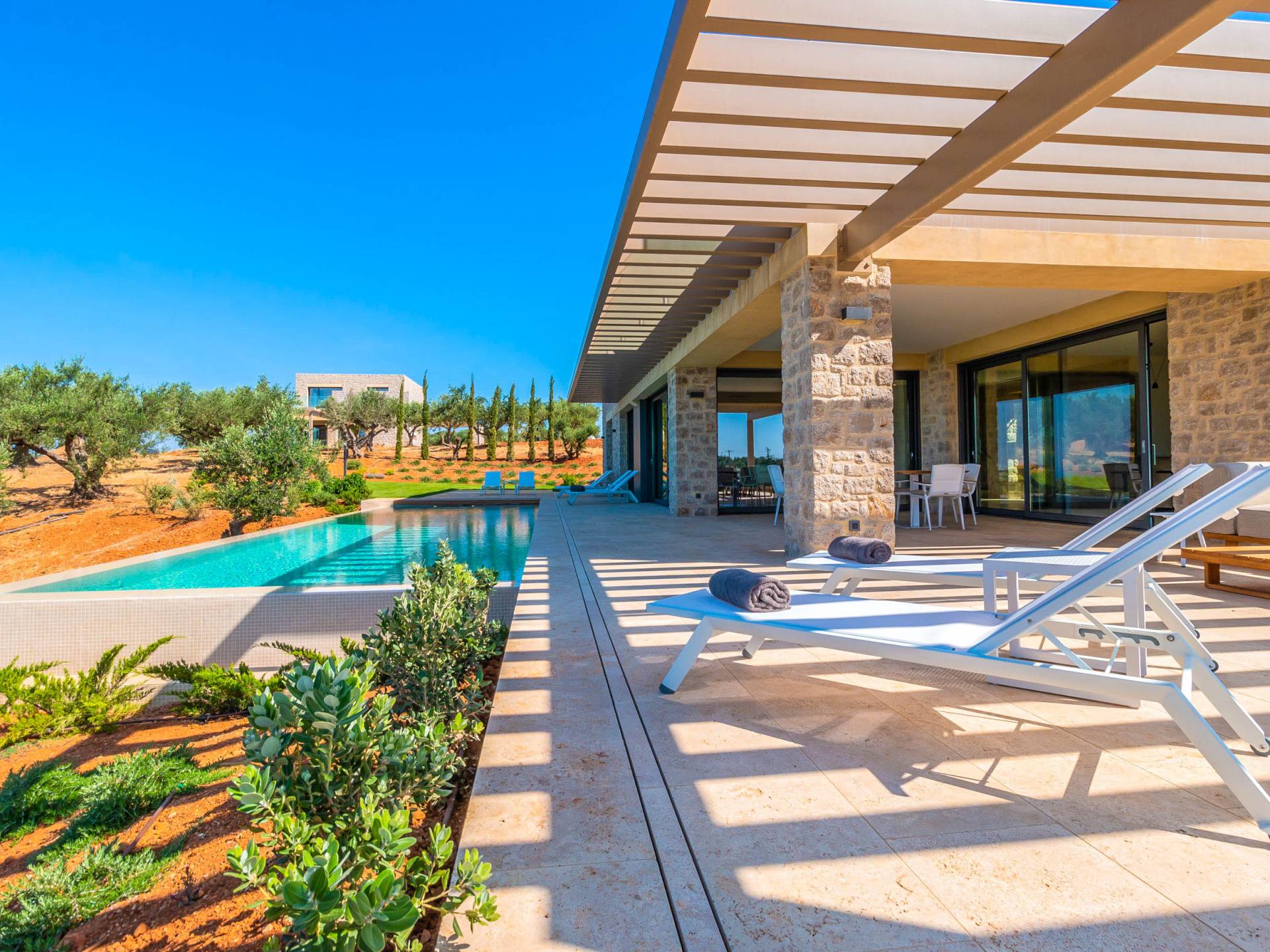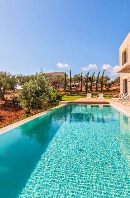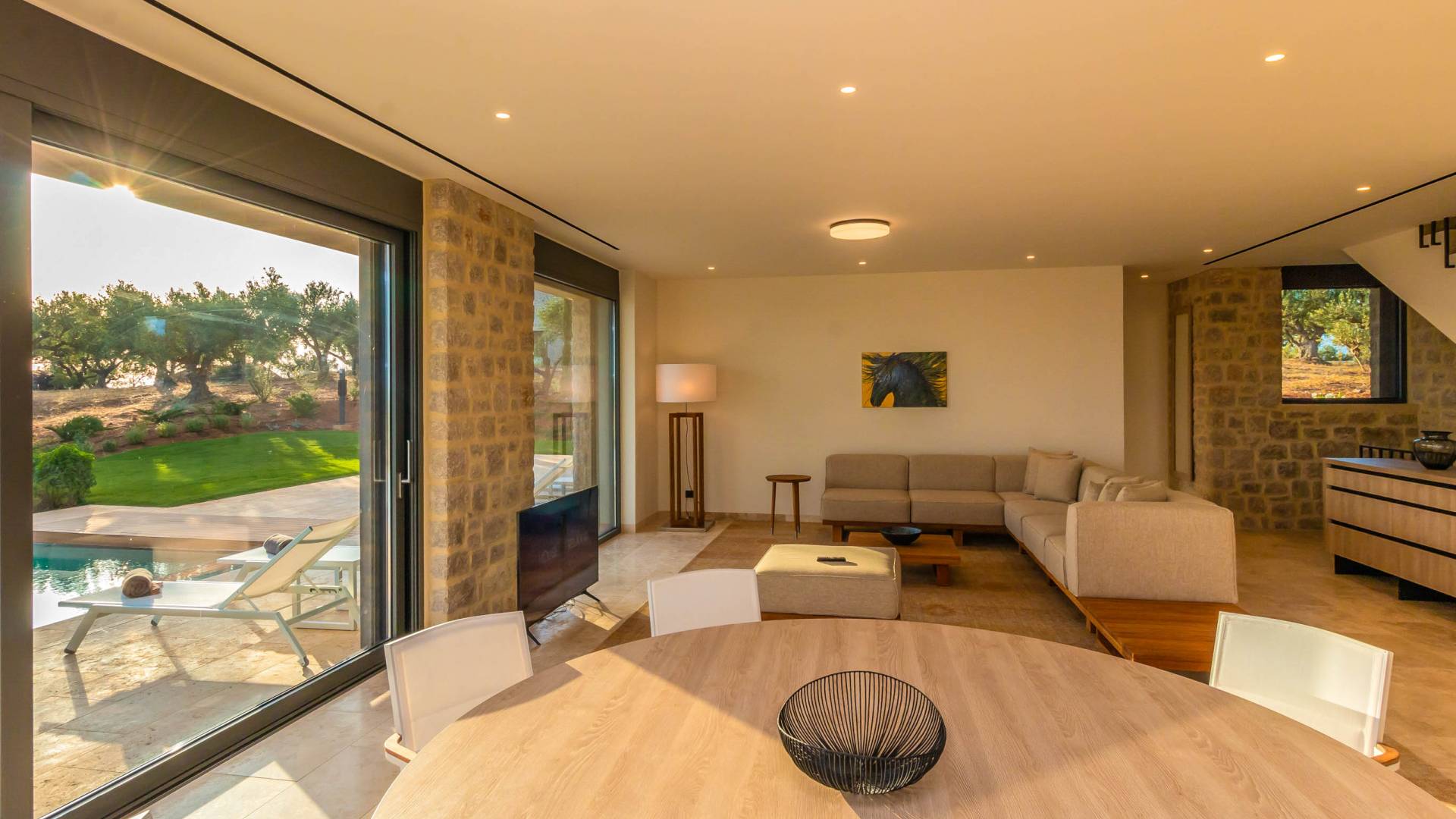 Villa Coral features a cleverly designed outdoor space, including a private pool area, a pergola-covered lounge, and a dining area. Its supreme location on top of the hills gives an impression of total privacy since it is situated in the middle of an olive tree grove. Nevertheless, the beaches, restaurants, and the proclaimed Navarino golf courses are just a few minutes' drive away.