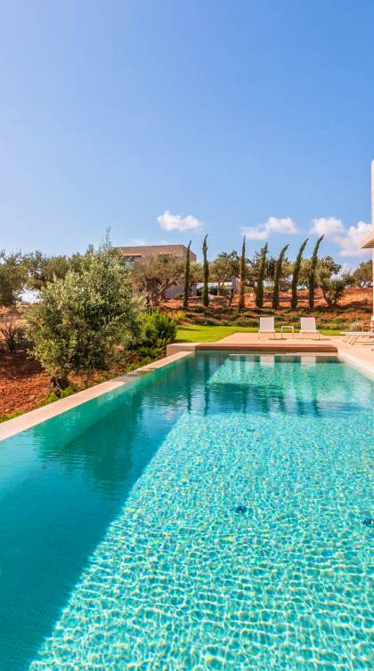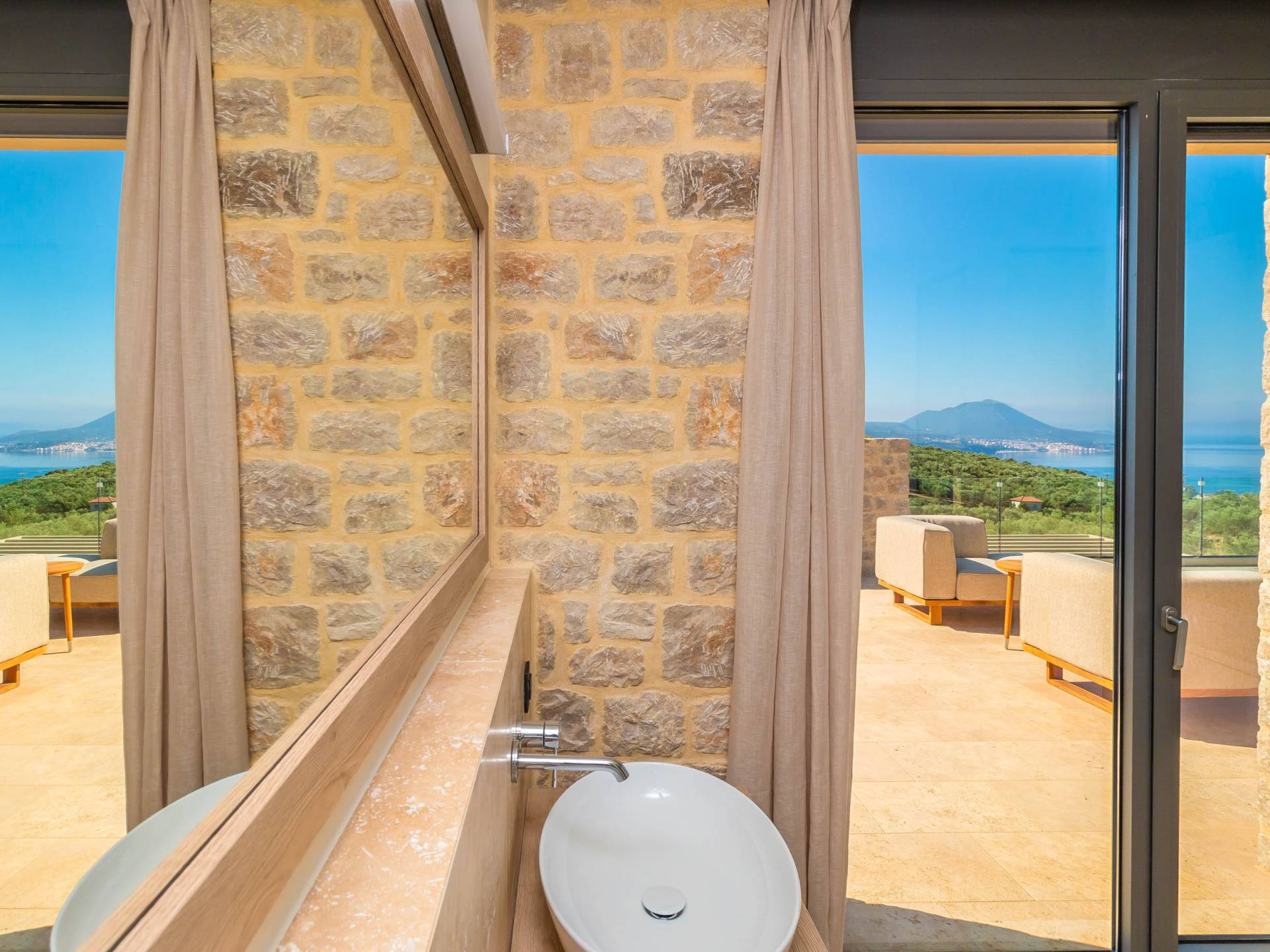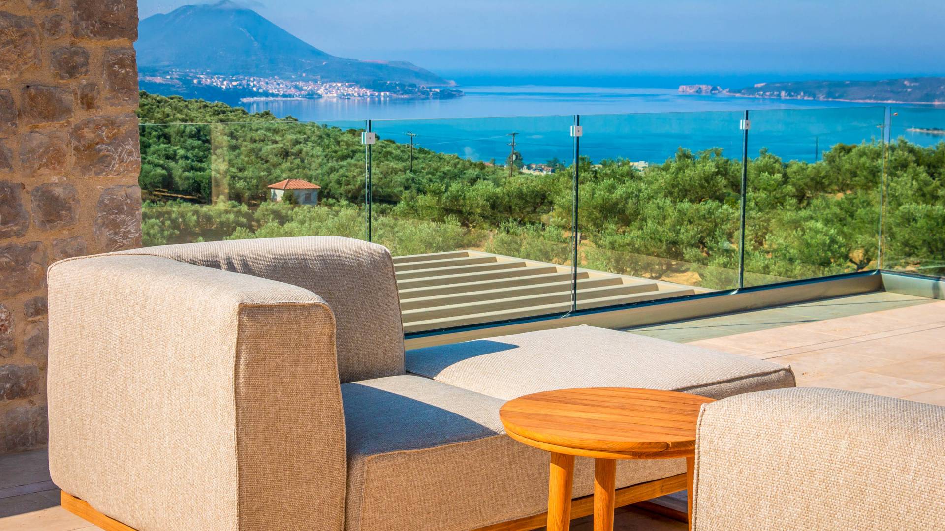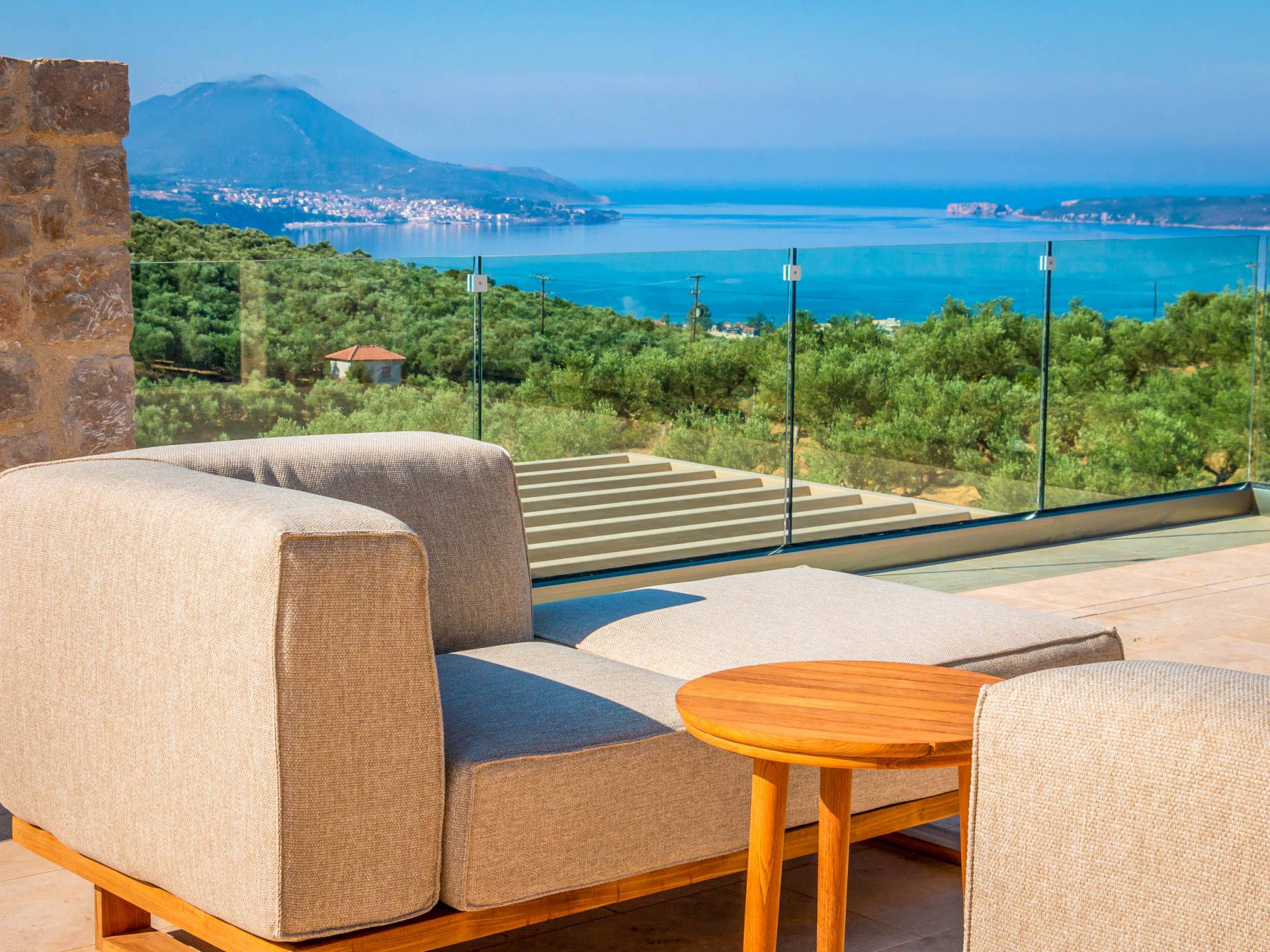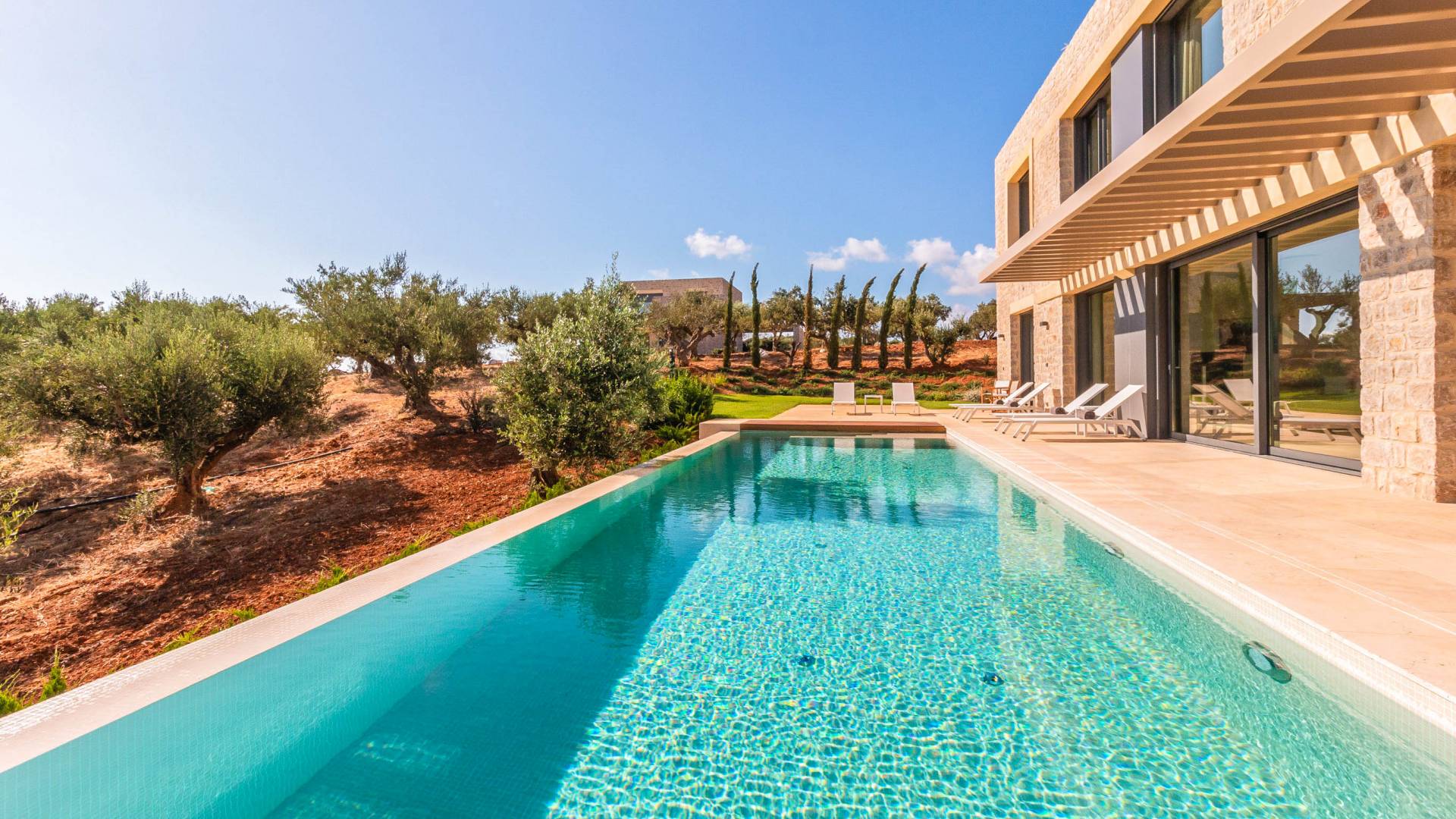 Villa Coral features a cleverly designed outdoor space, including a private pool area, a pergola-covered lounge, and a dining area. Its supreme location on top of the hills gives an impression of total privacy since it is situated in the middle of an olive tree grove. Nevertheless, the beaches, restaurants, and the proclaimed Navarino golf courses are just a few minutes' drive away.