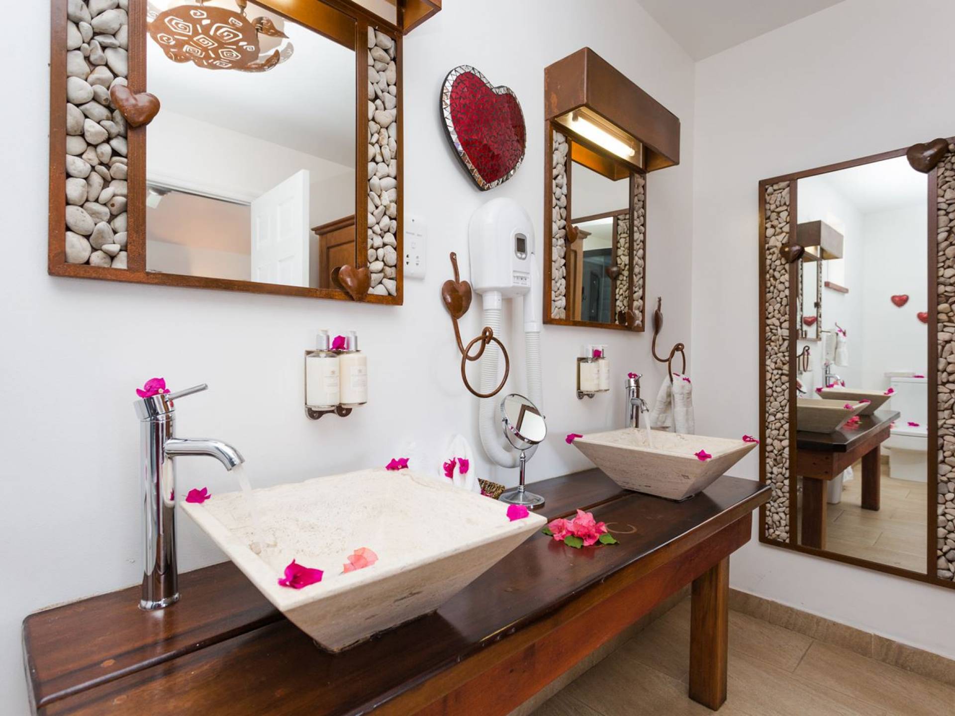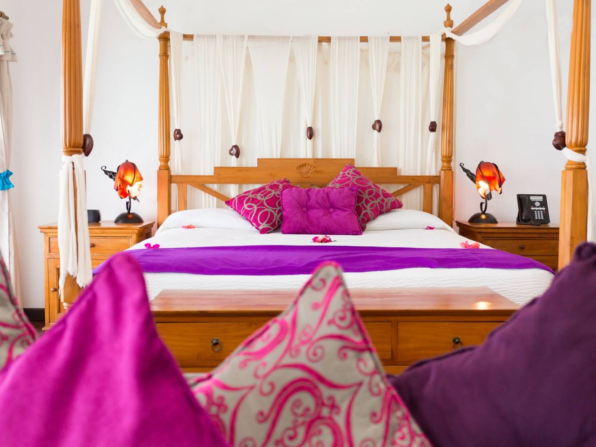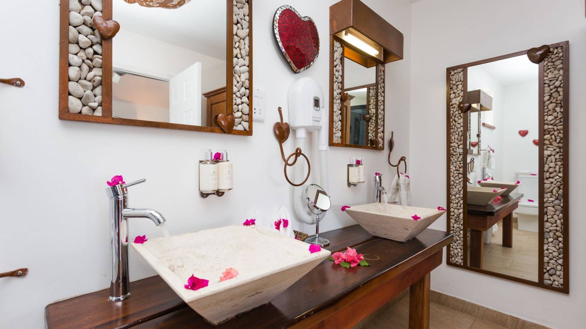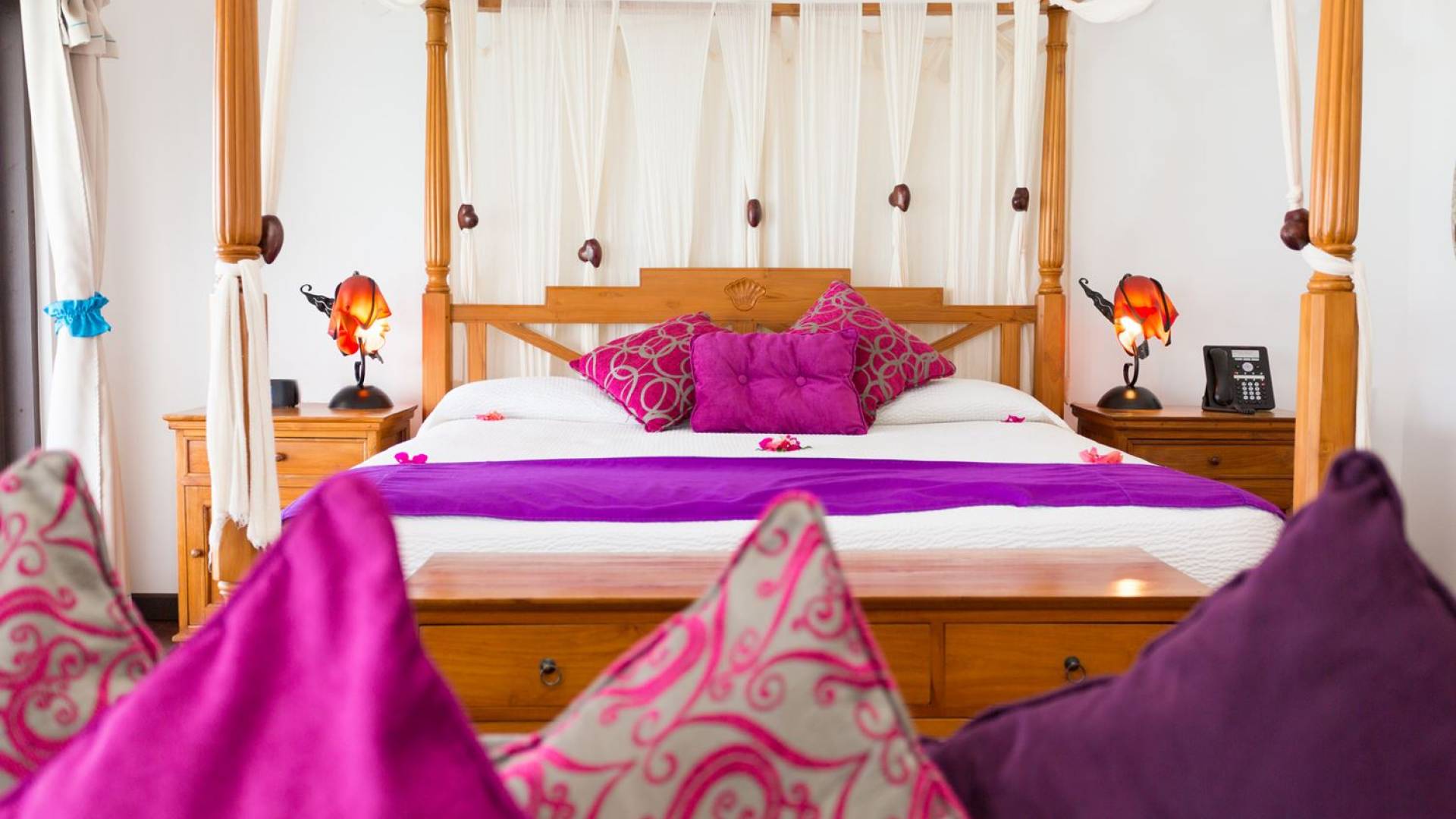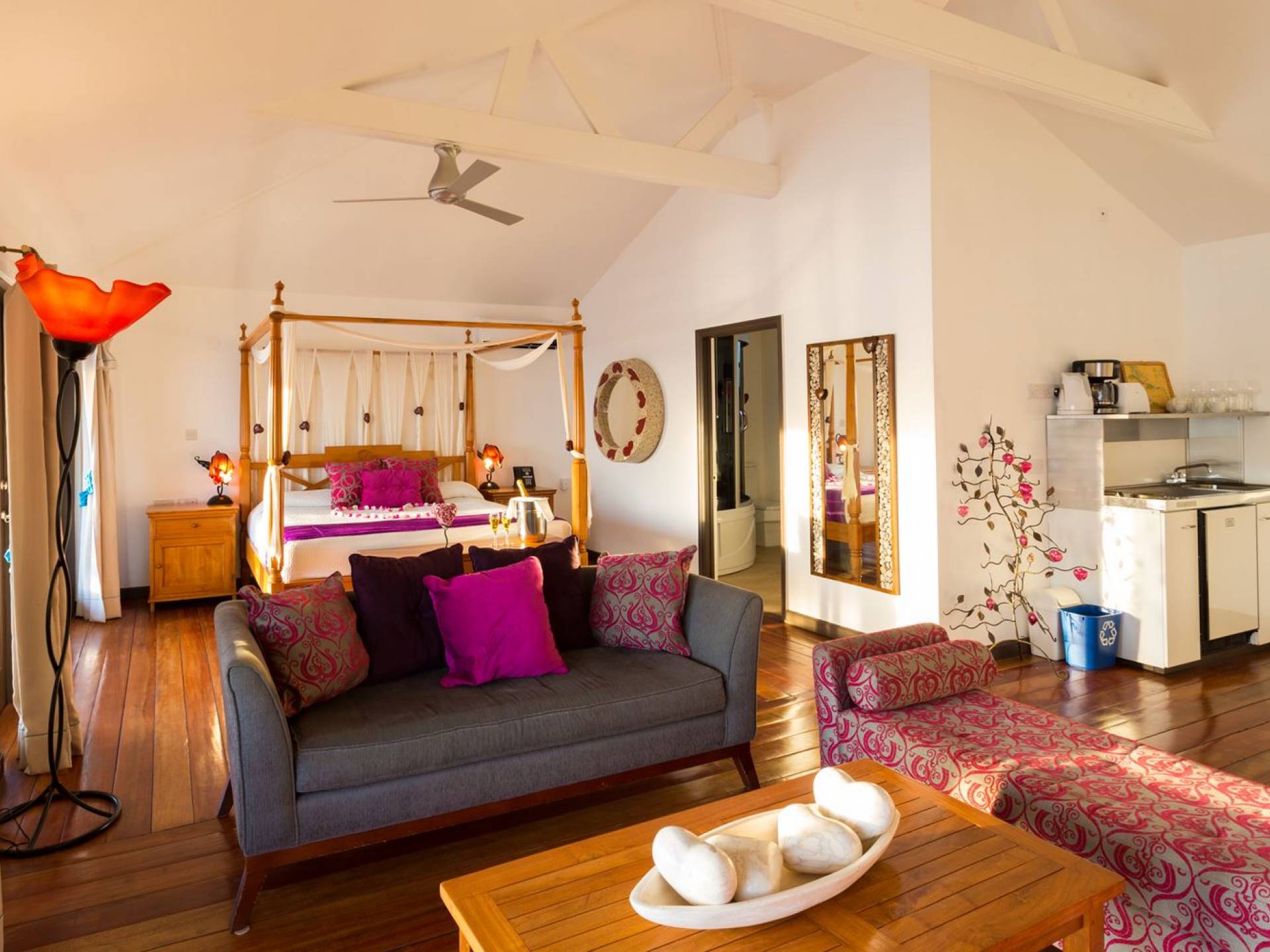 A fabulous and exceptional suite designed for romance. This suite contains a four-poster king-sized bed, soft and enticing furnishings, and fabrics, custom-designed décor, and exotic tropical fresh flowers. It has a stylish and relaxing vibe with its spacious living area, kitchen, large bathroom with a tub, and a 360 shower. This suite leads onto a large veranda with stunning views of the shimmering aquamarine Caribbean Sea.