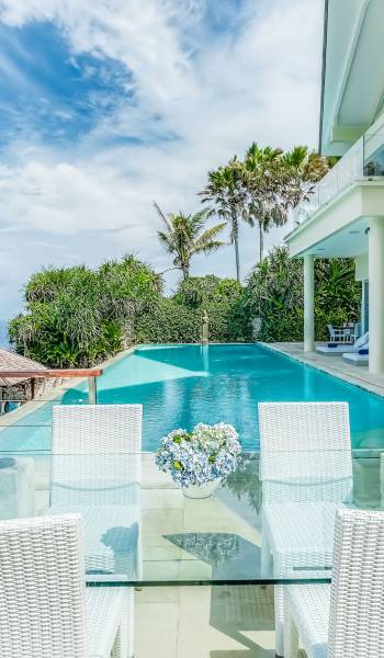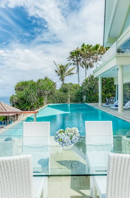 Close to some of the best beaches of Bali's this fully staffed villa is located at an exclusive clifftop resort, a place where the guests can relax and enjoy the luxury amenities of the villa including a butler and a personal chef.