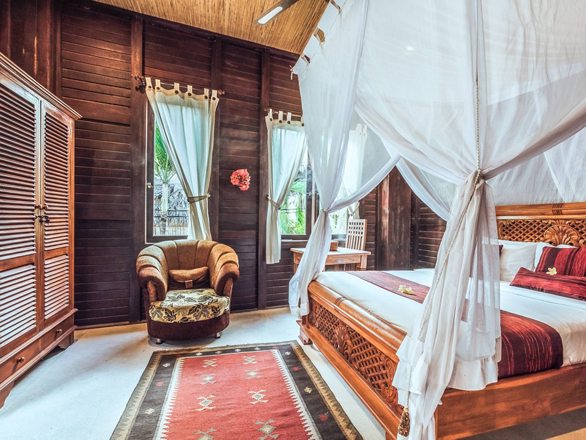The Private mini-zoo with exotic animals on the territory of Villa Dua Gills will delight guests with the tropical birds who share inhabitation with reptiles as well as Koi carps in an ornamental pond.
