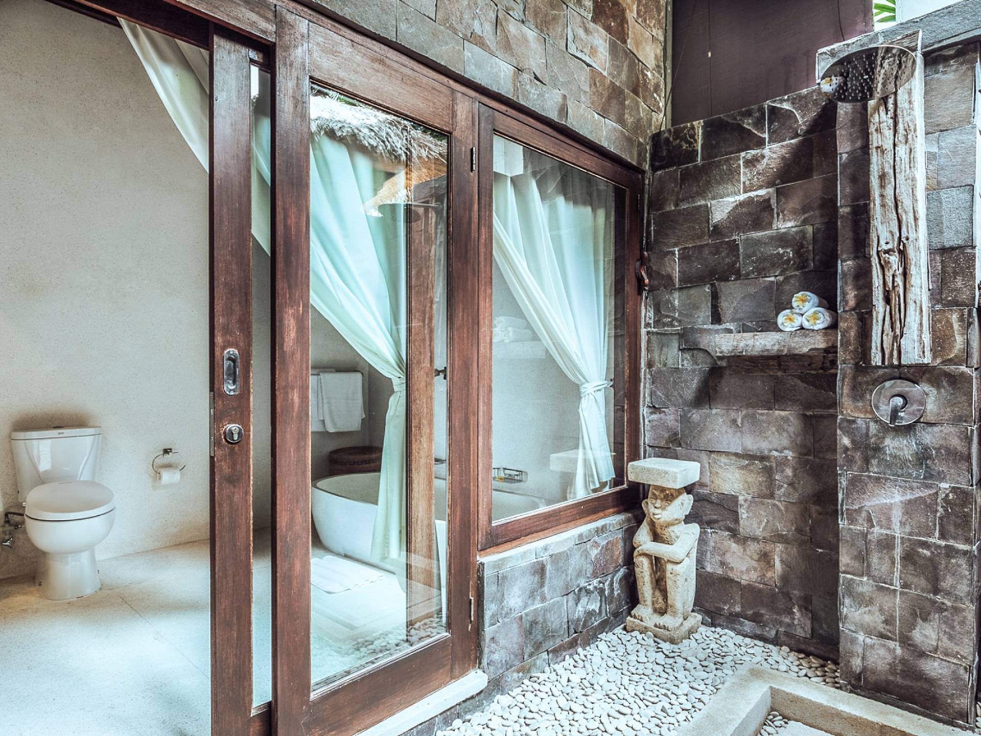 It offers outdoor swimming pools overlooking the Indian Ocean, a spa complex, a lounge, free Wi-Fi, and a bar. Amazingly well-equipped villas are decorated in a modern Balinese style. The terraces offer picturesque views of the Indian Ocean and surrounding landscapes. Guests can explore Bali by going on a hike or by taking excursions, practicing yoga, snorkeling, diving, and fishing. After an active day, our guests can enjoy a relaxing massage and visit sauna. It is also possible to hire cooks to prepare food.