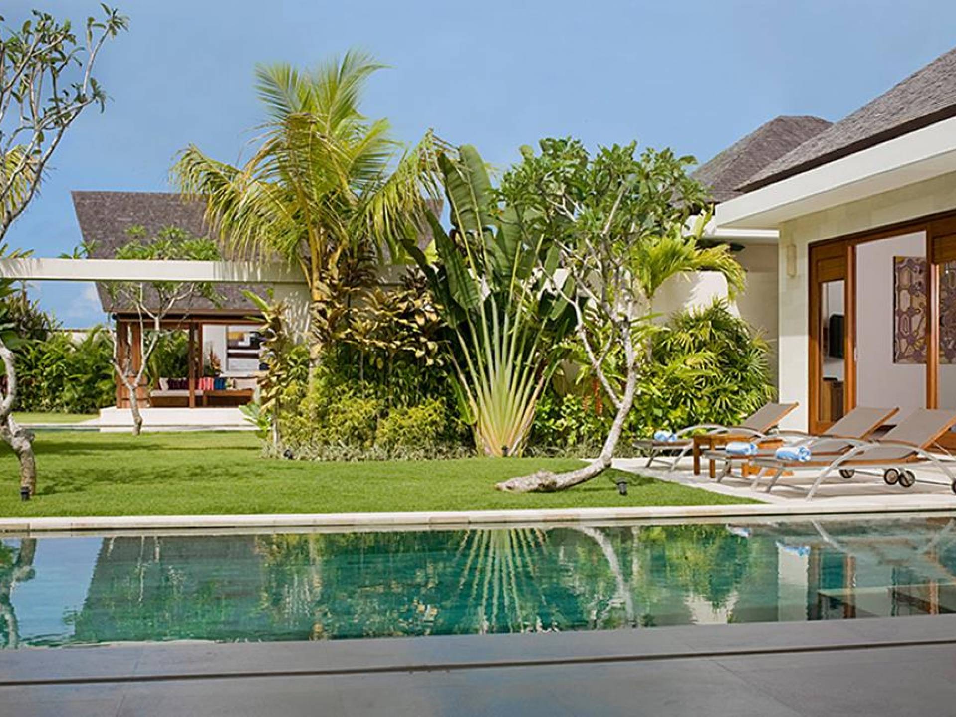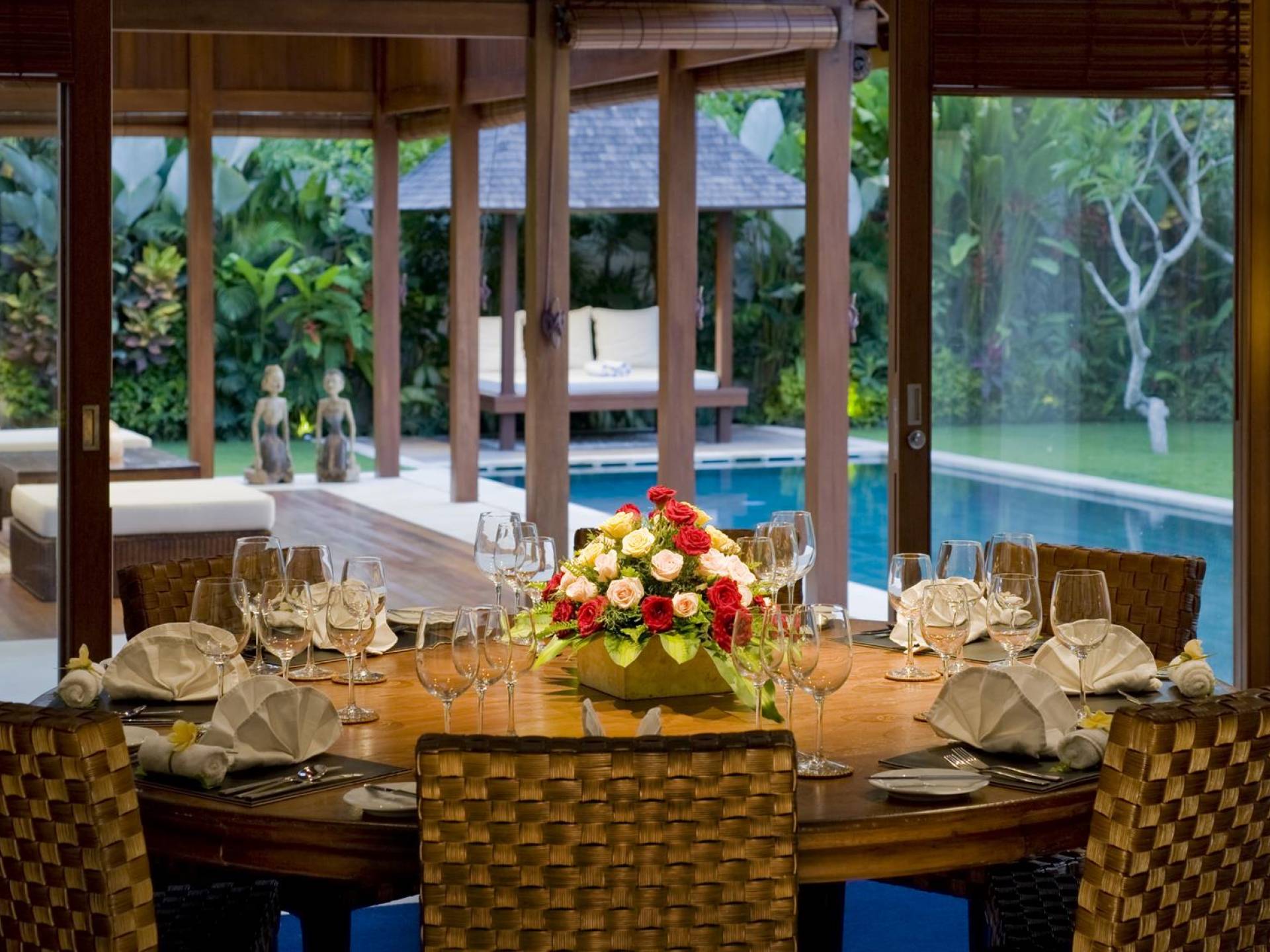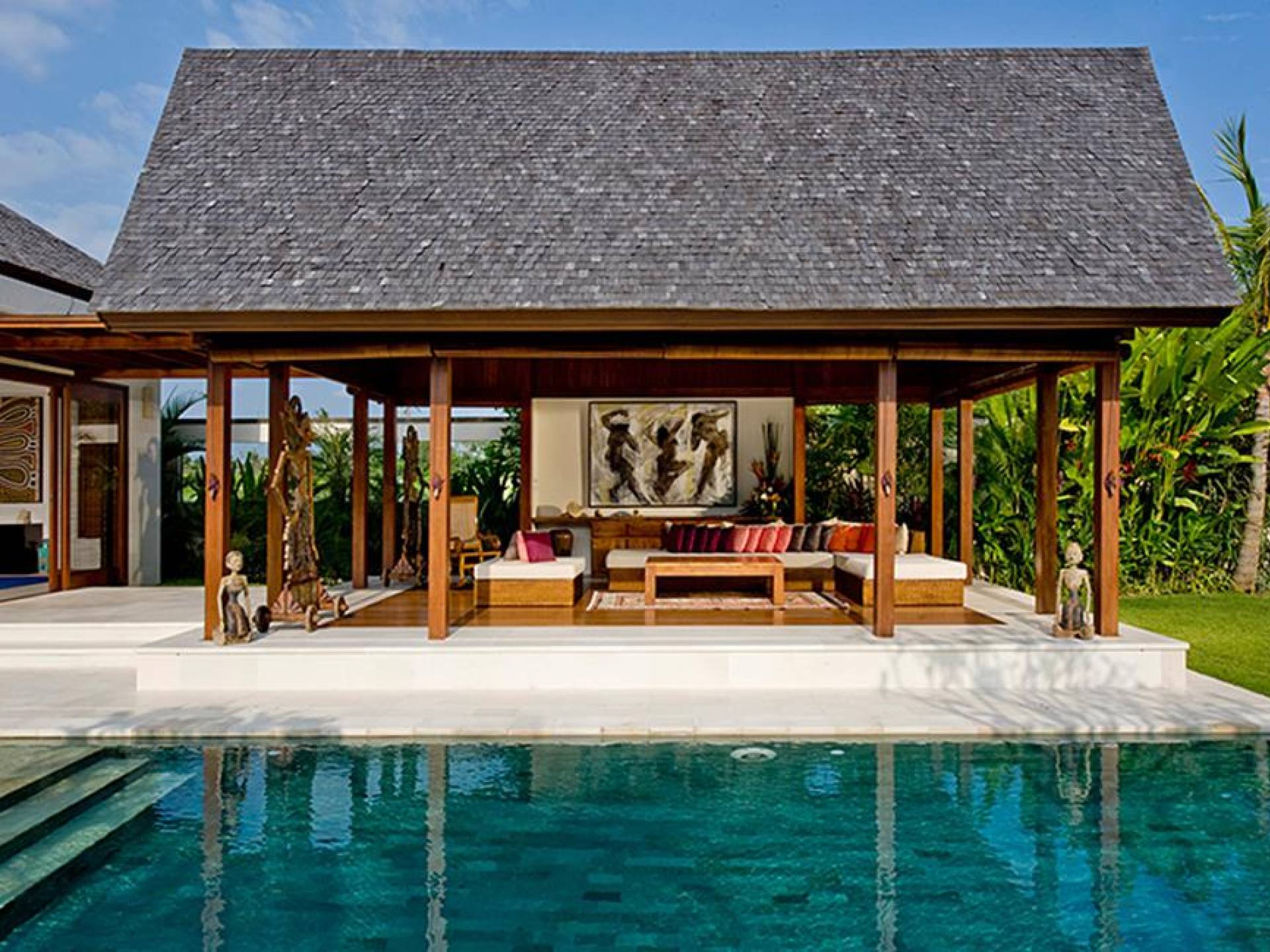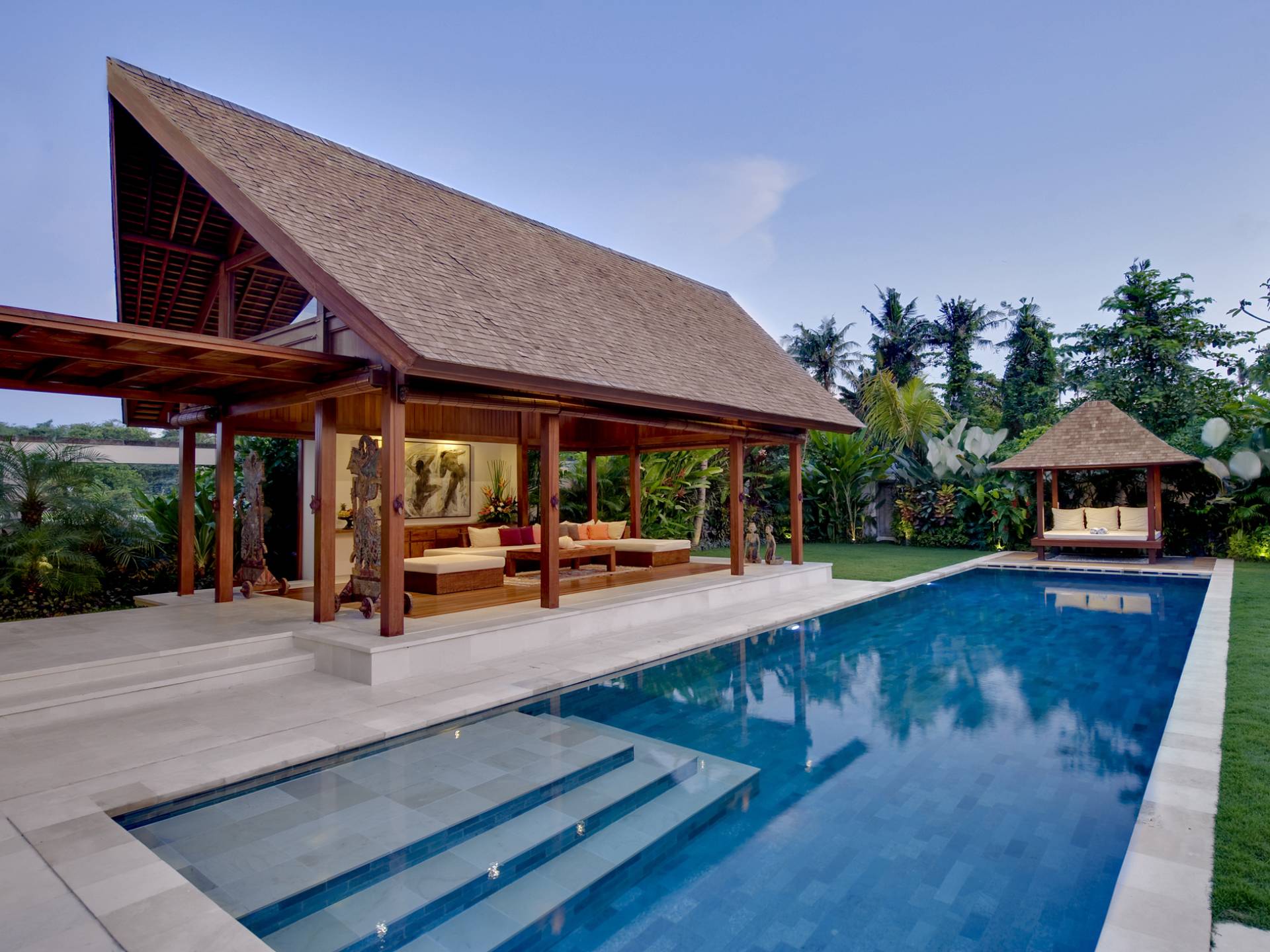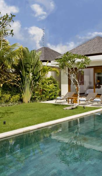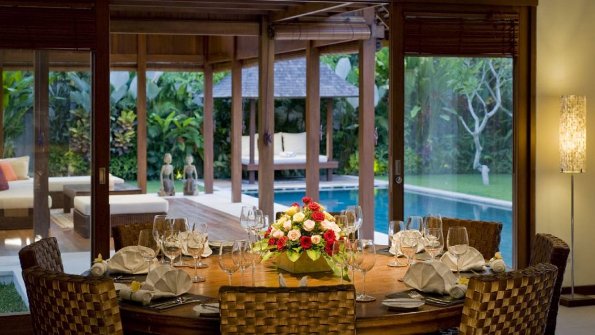 A large, sliding wall panel separates Bima from the other master villa, Yudhistira. Guests who book both villas can request the staff to open the wall panel to provide a huge garden area with two swimming pools – ideal for family groups requiring four bedrooms and plenty of space for the children to have fun. This open set-up also lends itself to weddings and birthday parties.