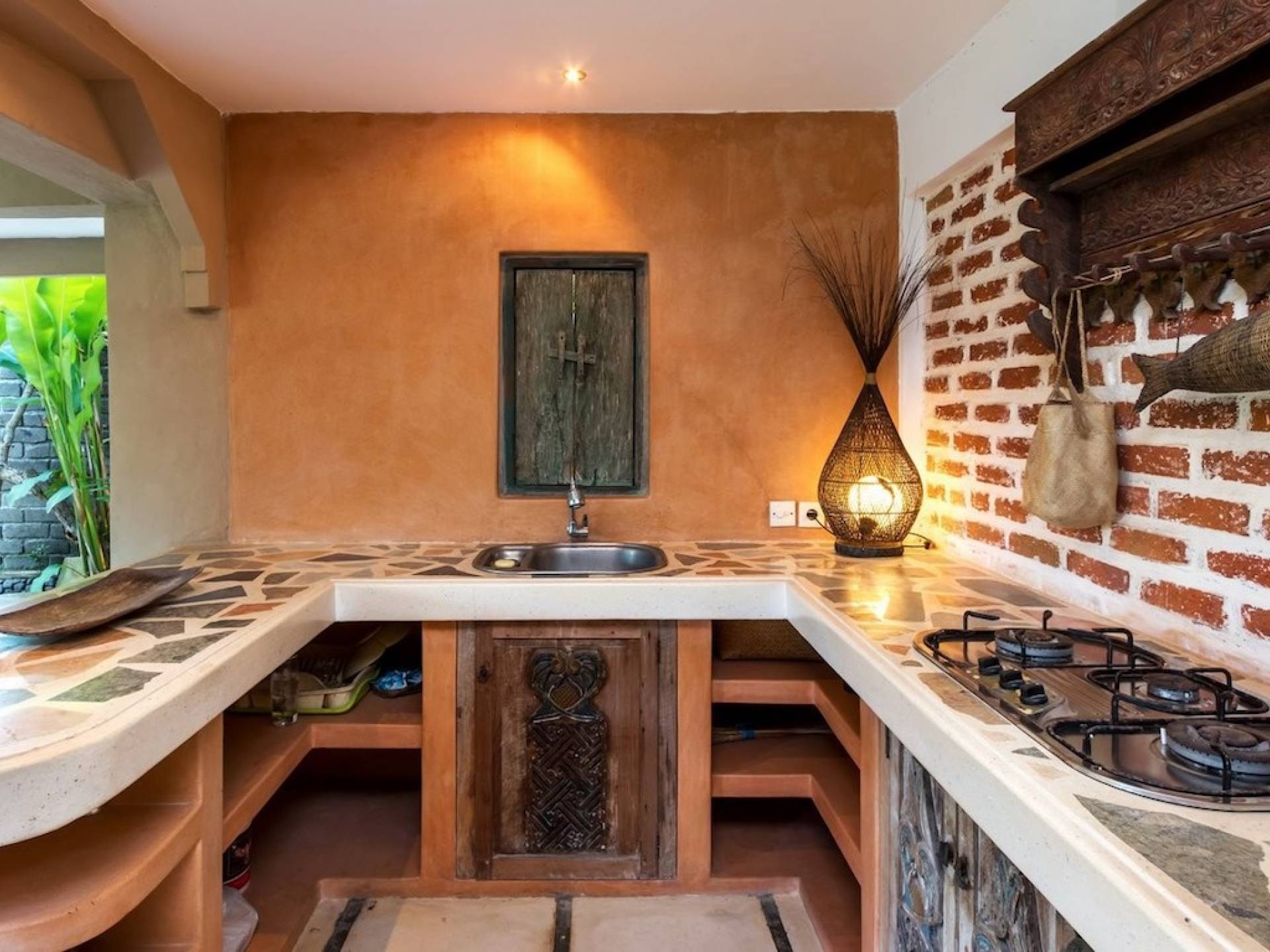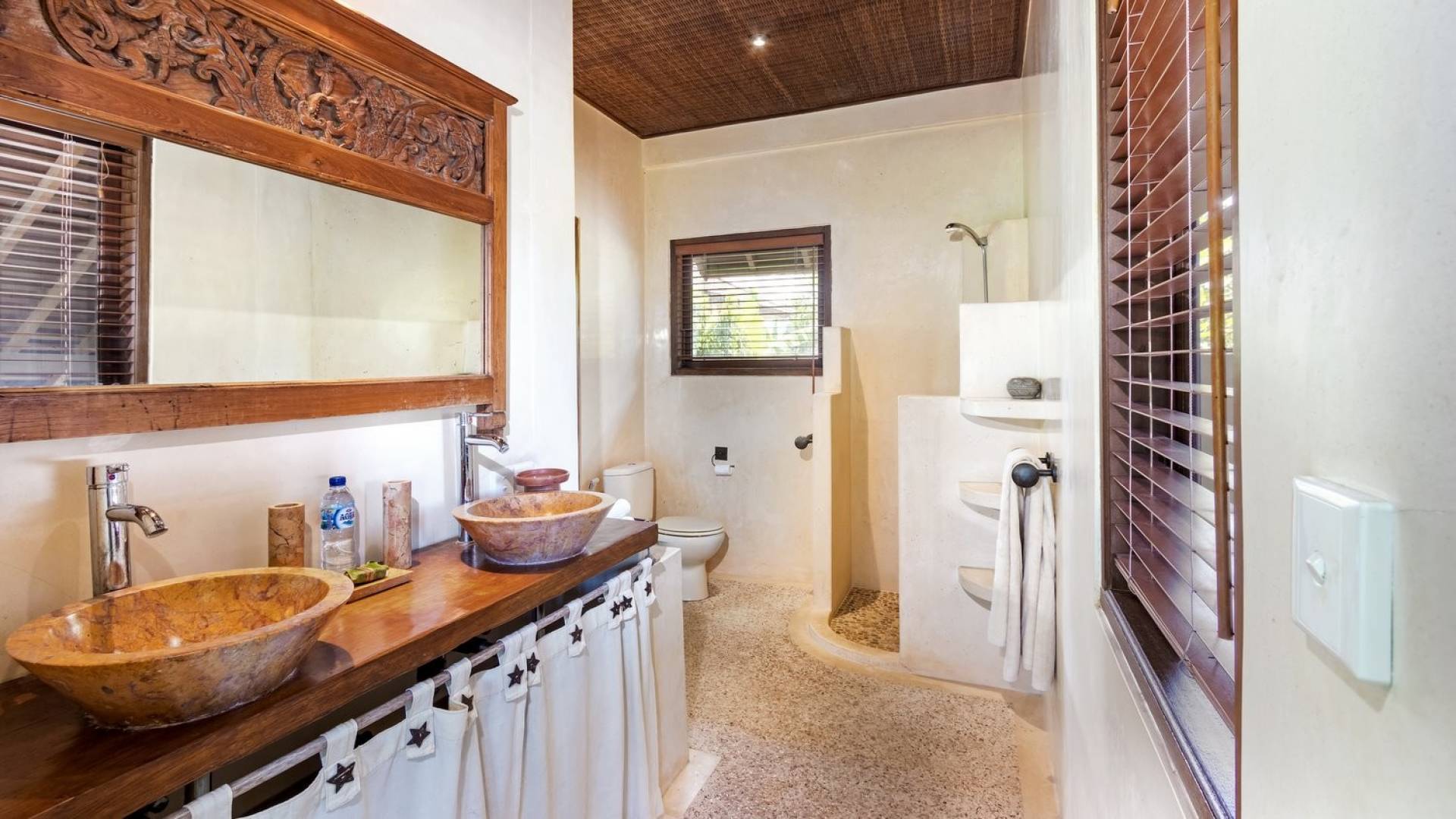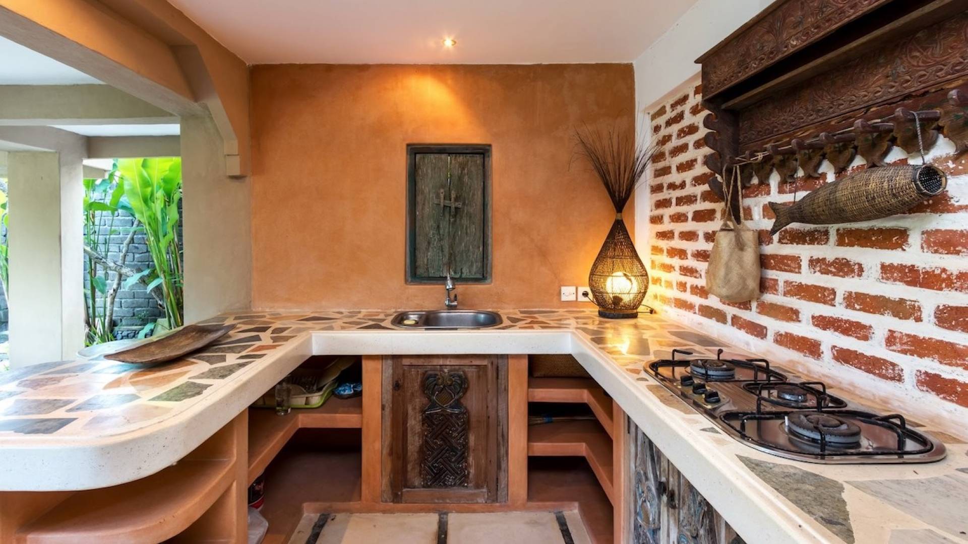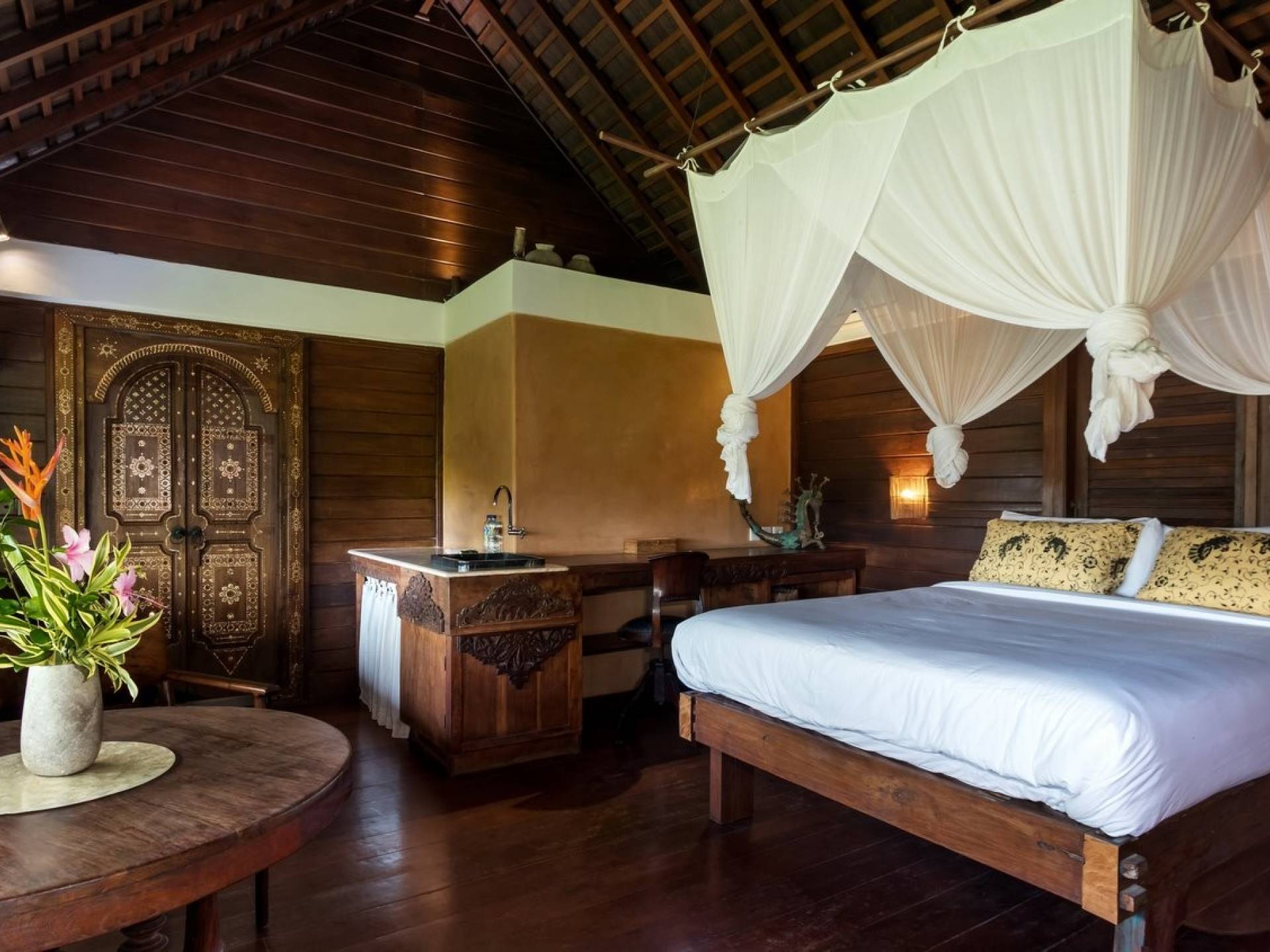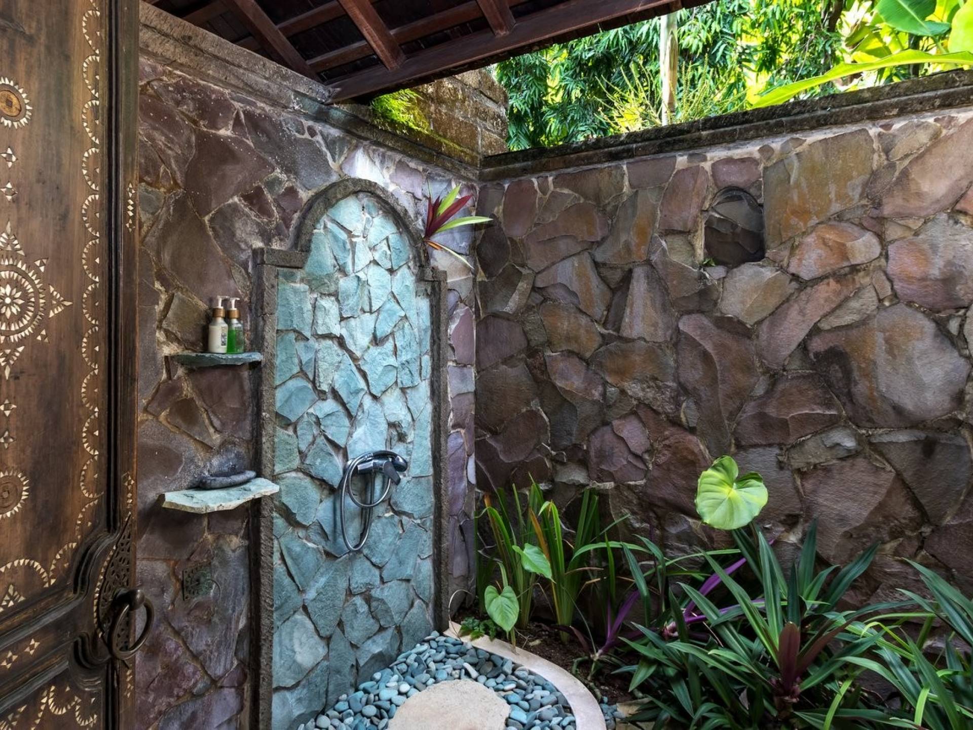 For those seeking shade, chill out in the garden bale or take your pick between sofas, hanging chairs, and armchairs in the tropical-styled, rustic, open-plan living pavilions. With two fully equipped living rooms, each with a sitting and dining area as well as a well-appointed kitchen, there is an abundance of space to hang out together with friends and family and yet there are also plenty of places to enjoy some solitude, peace, and quiet. You can dine indoors or out and why not get a chef cook in to prepare you a delicious meal or that BBQ feast you’ve been craving for?