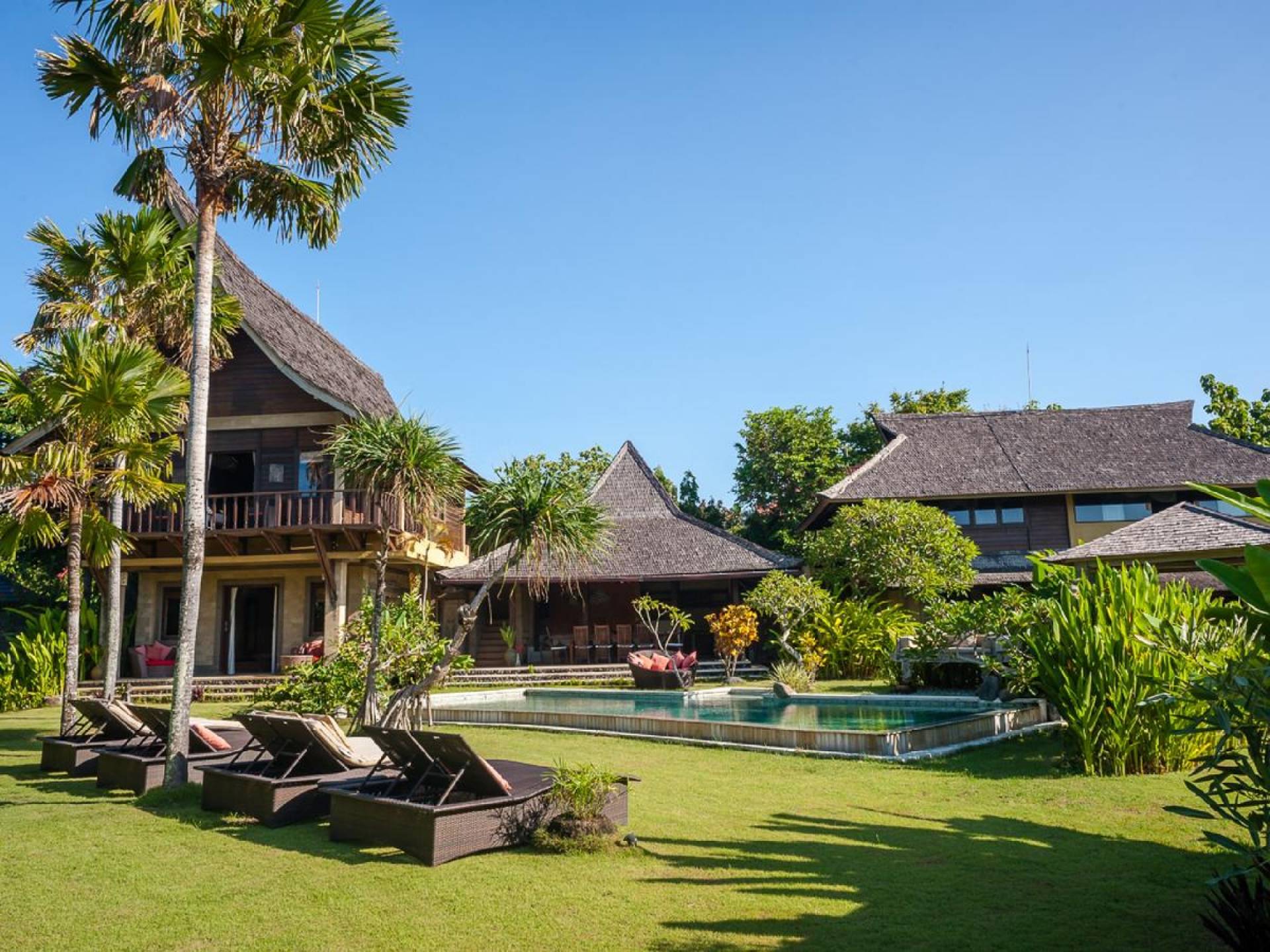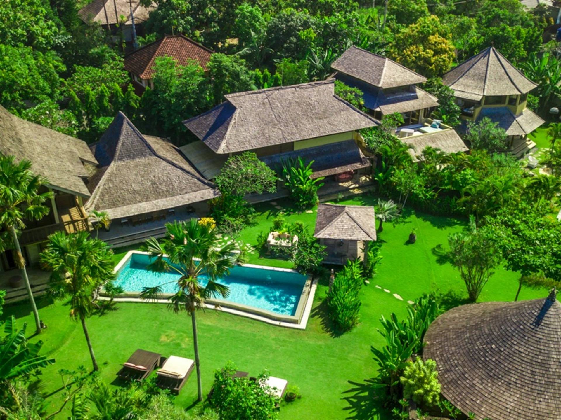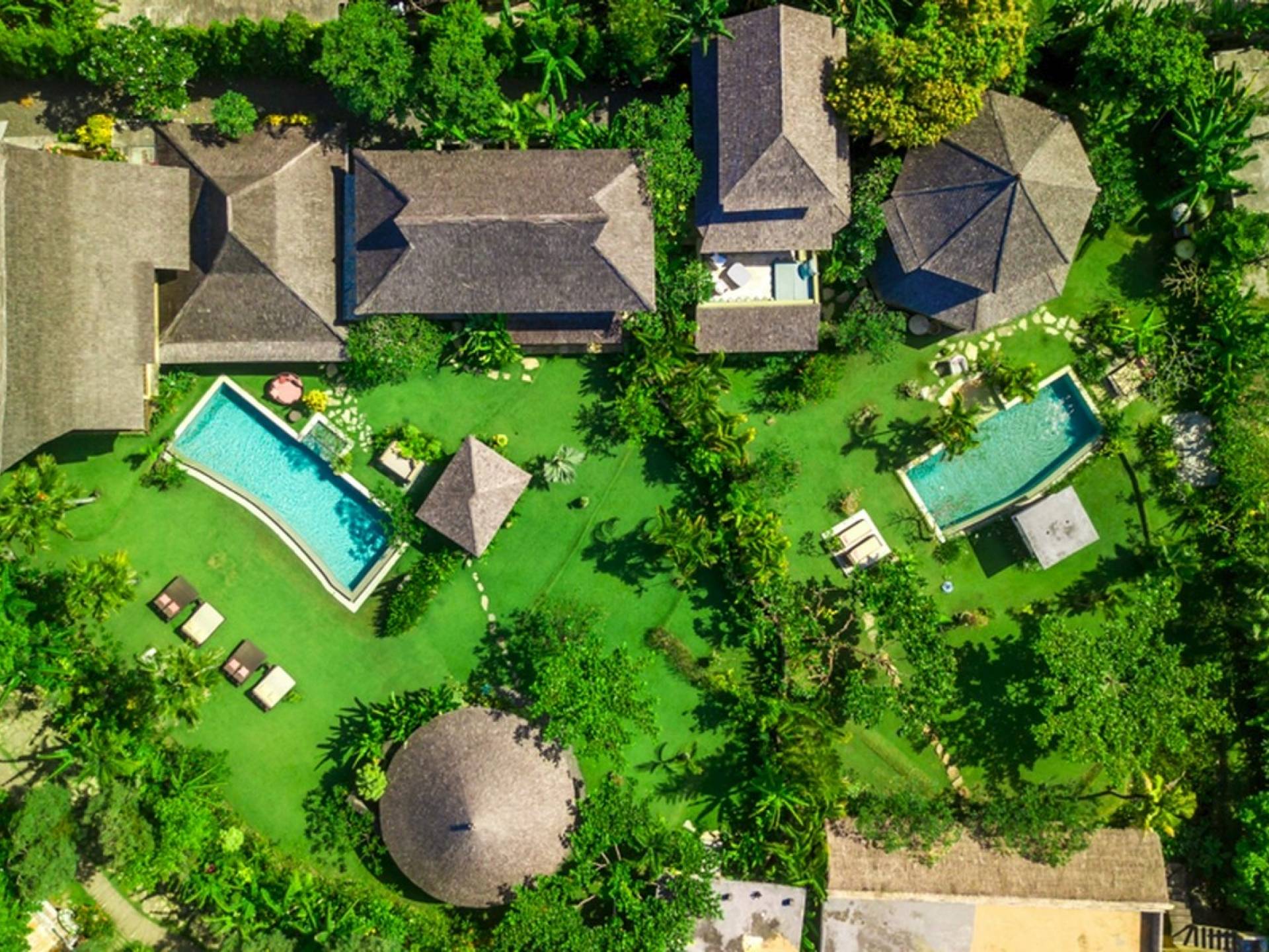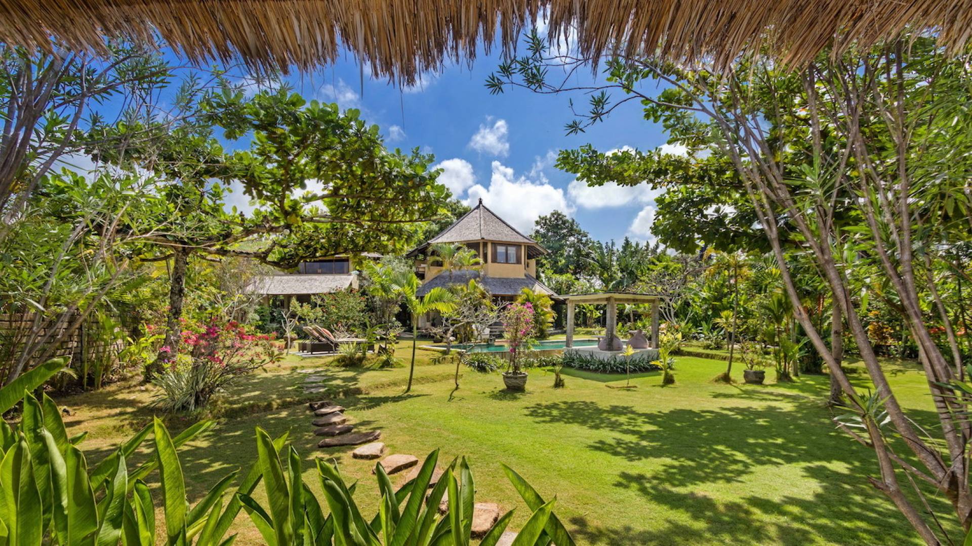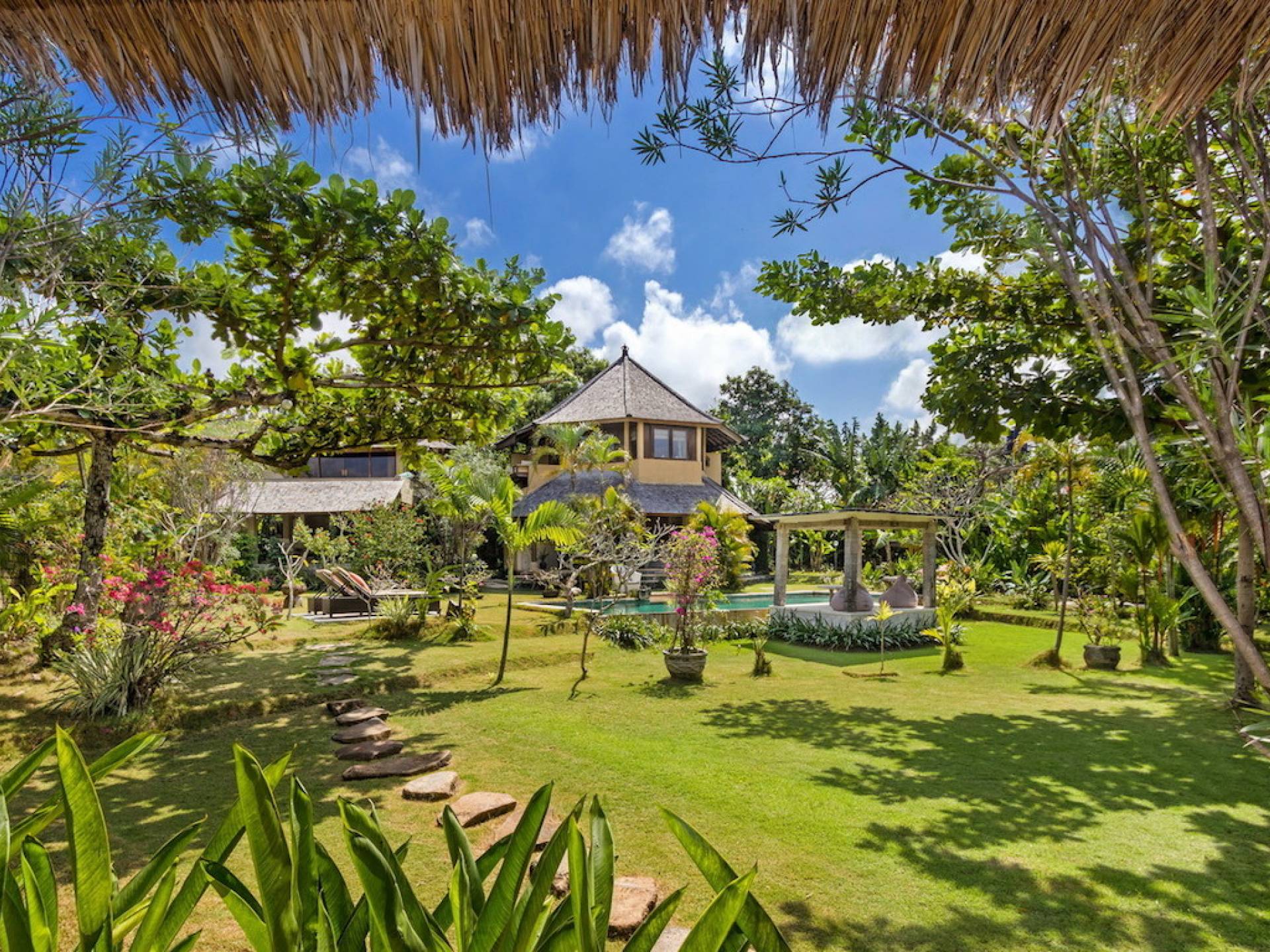 Just meters away from the beach and La Laguna Beach Club, in the hip and trendy Berawa area of Canggu, awaits this amazing, gigantic 11-bedroom paradise retreat. A place that makes tropical holiday dreams come true with its expansive lush green garden and the gorgeous traditional Indonesian pavilions scattered around on the manicured lawns that surround the glistening private swimming pools of Bunga Desa Estate. Ruled by an abundance of space, verdant tropical greenery, ancient teak wood, traditional artwork, and modern luxury facilities, everyone will love staying here.