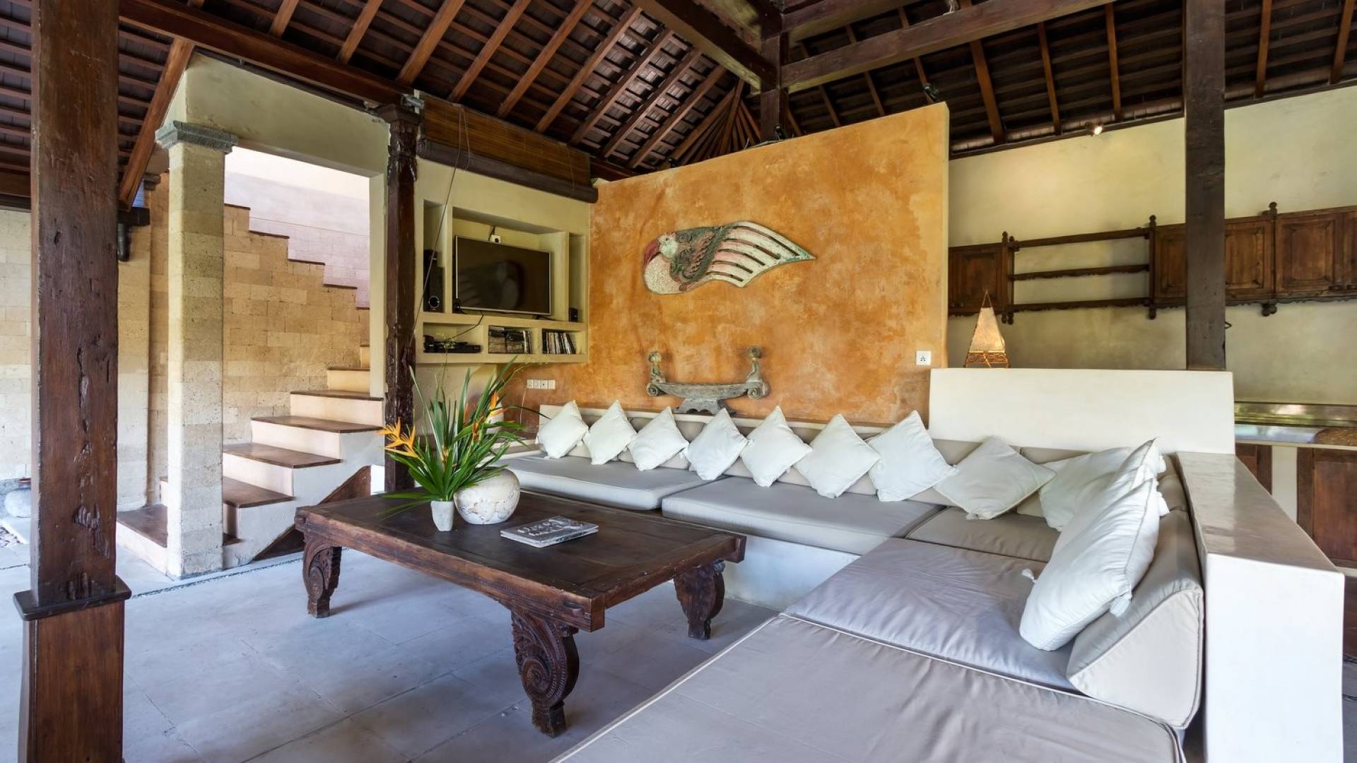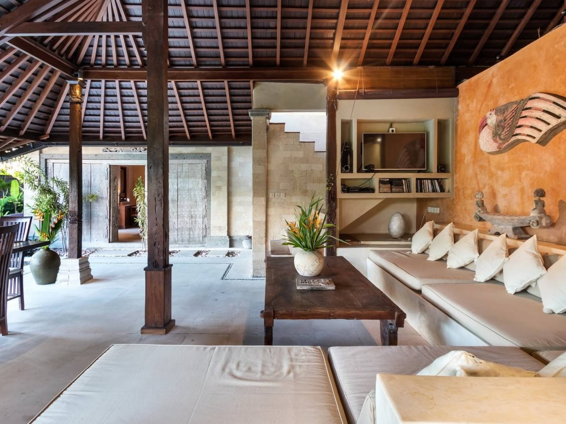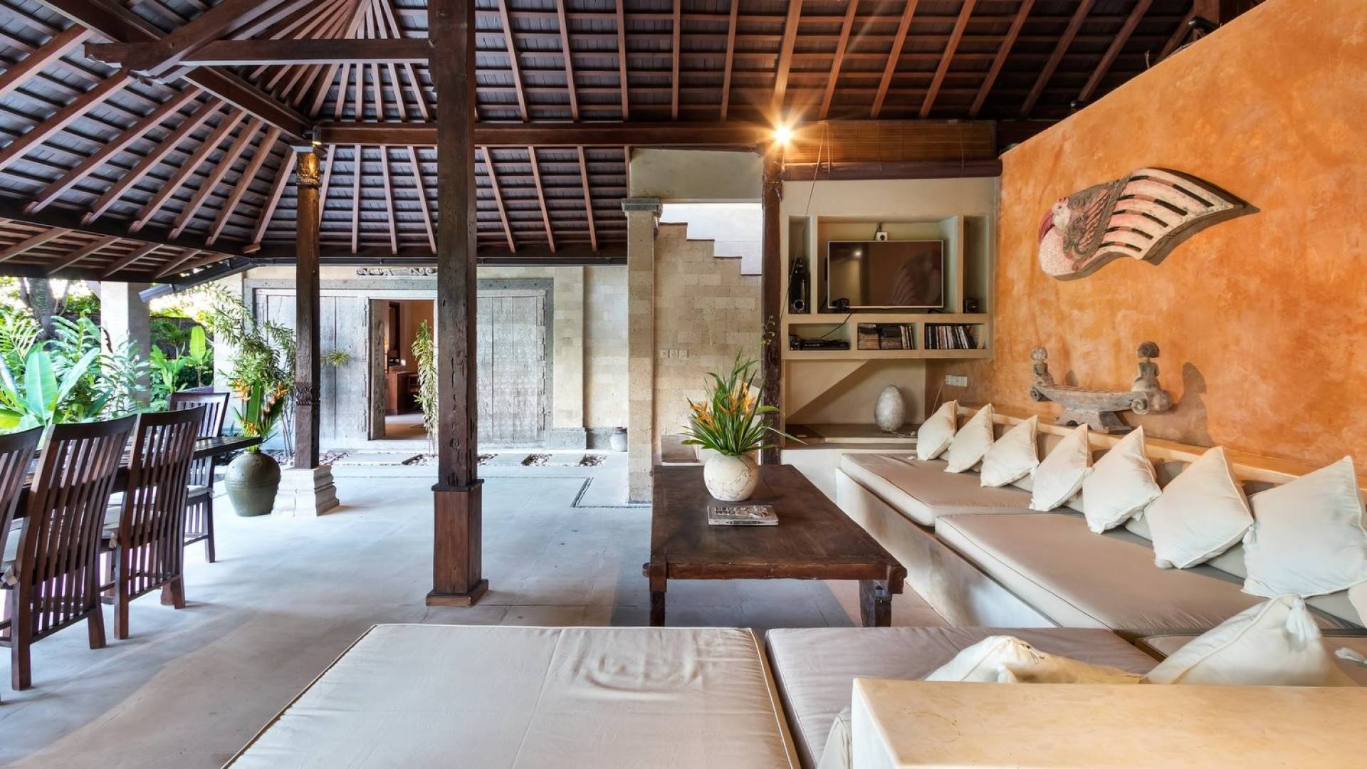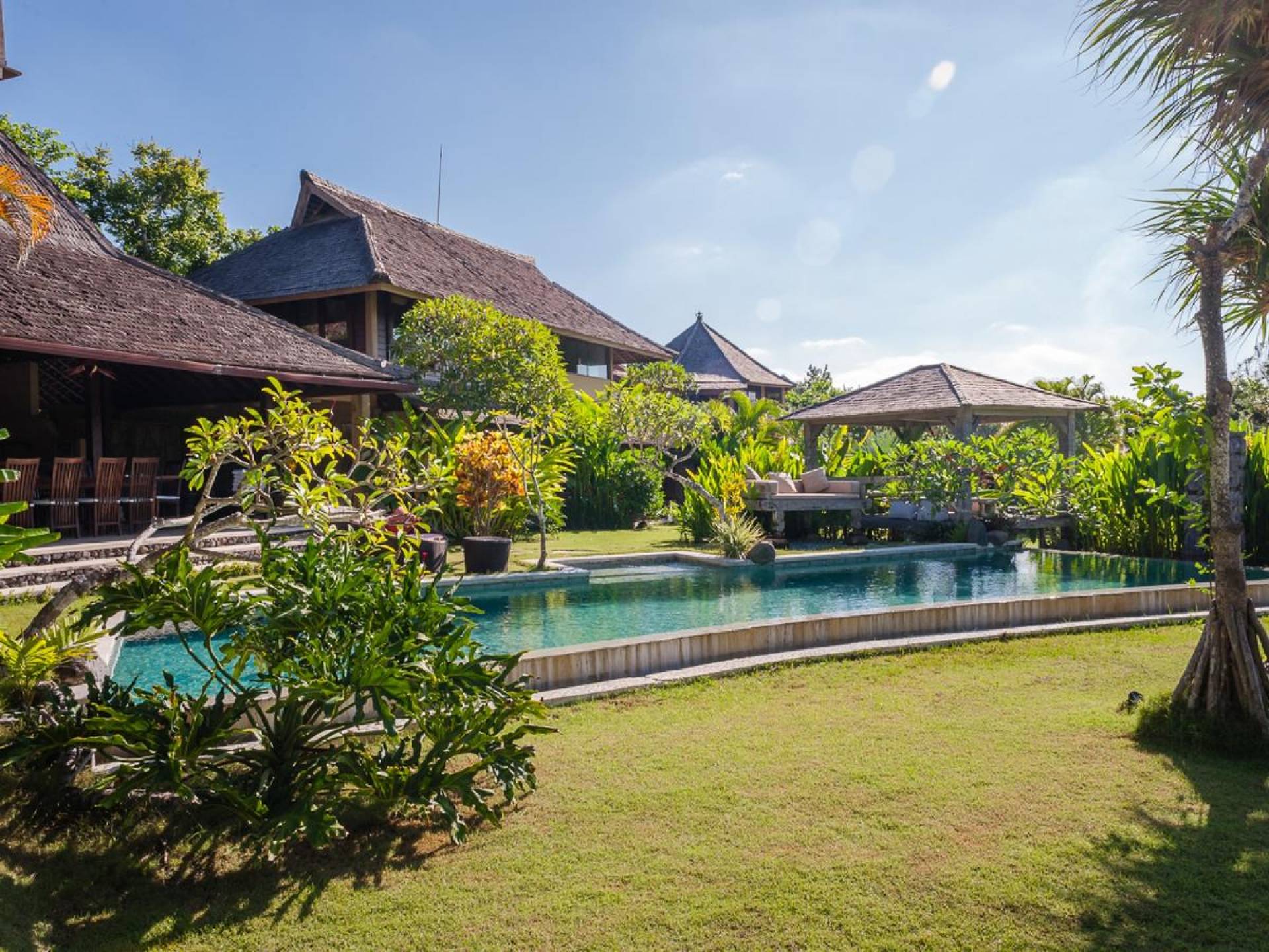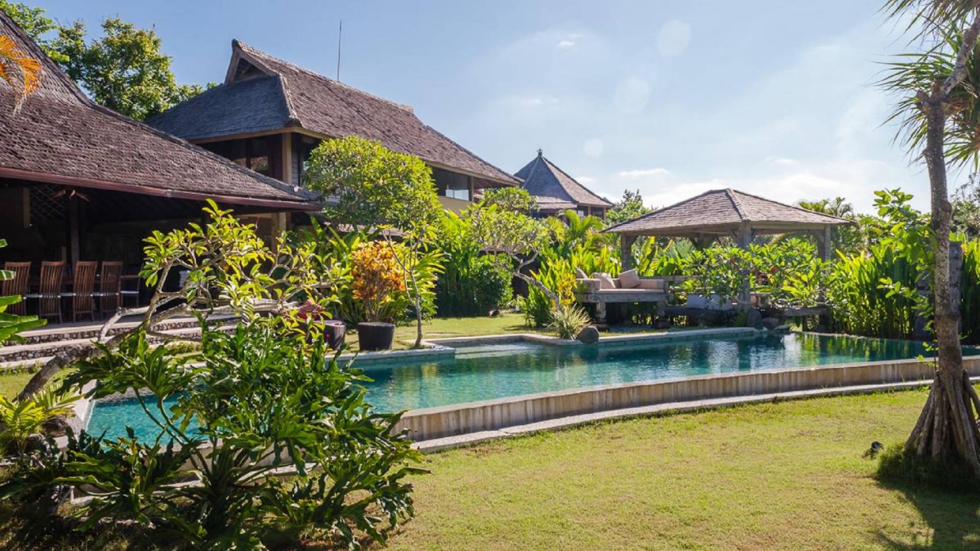 Just meters away from the beach and La Laguna Beach Club, in the hip and trendy Berawa area of Canggu, awaits this amazing, gigantic 11-bedroom paradise retreat. A place that makes tropical holiday dreams come true with its expansive lush green garden and the gorgeous traditional Indonesian pavilions scattered around on the manicured lawns that surround the glistening private swimming pools of Bunga Desa Estate. Ruled by an abundance of space, verdant tropical greenery, ancient teak wood, traditional artwork, and modern luxury facilities, everyone will love staying here.
