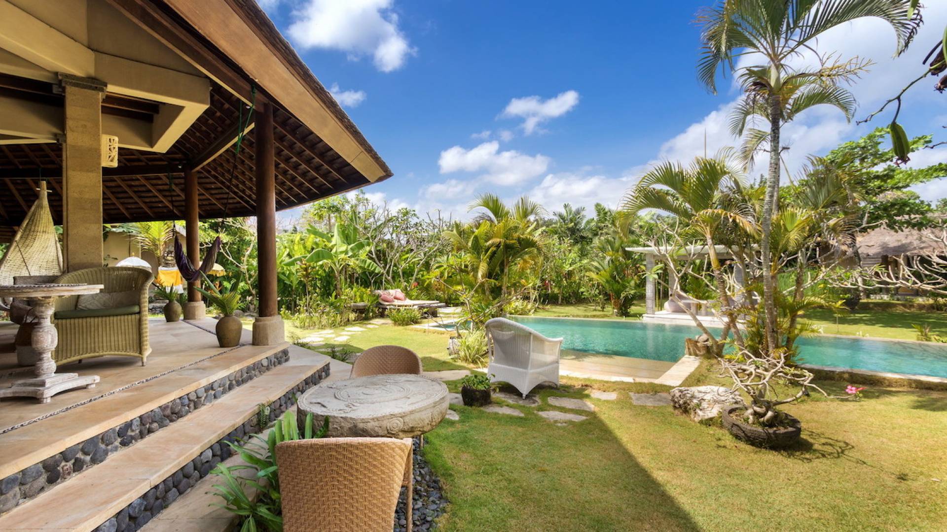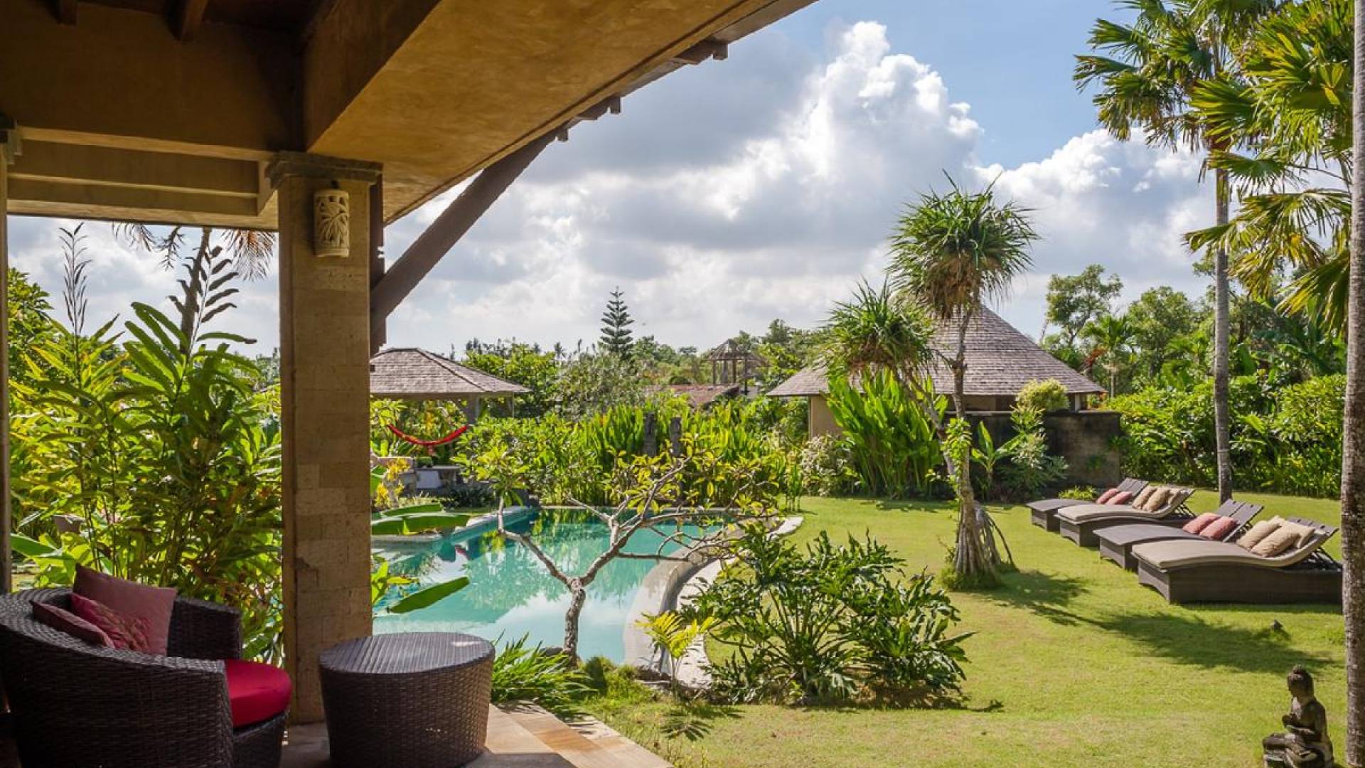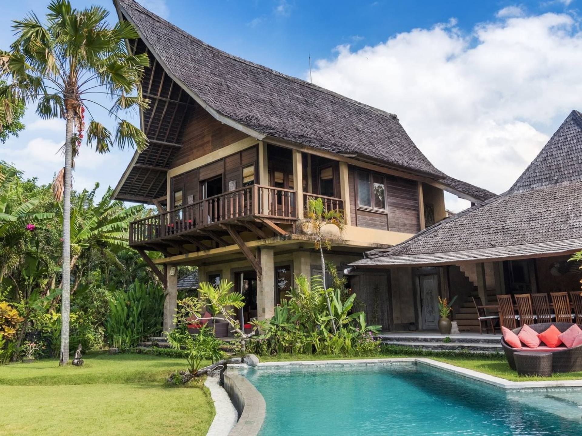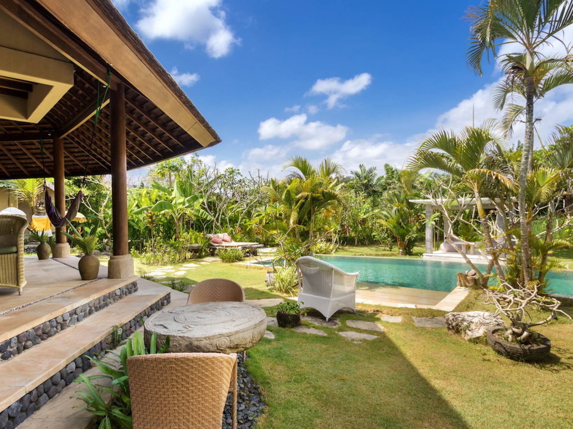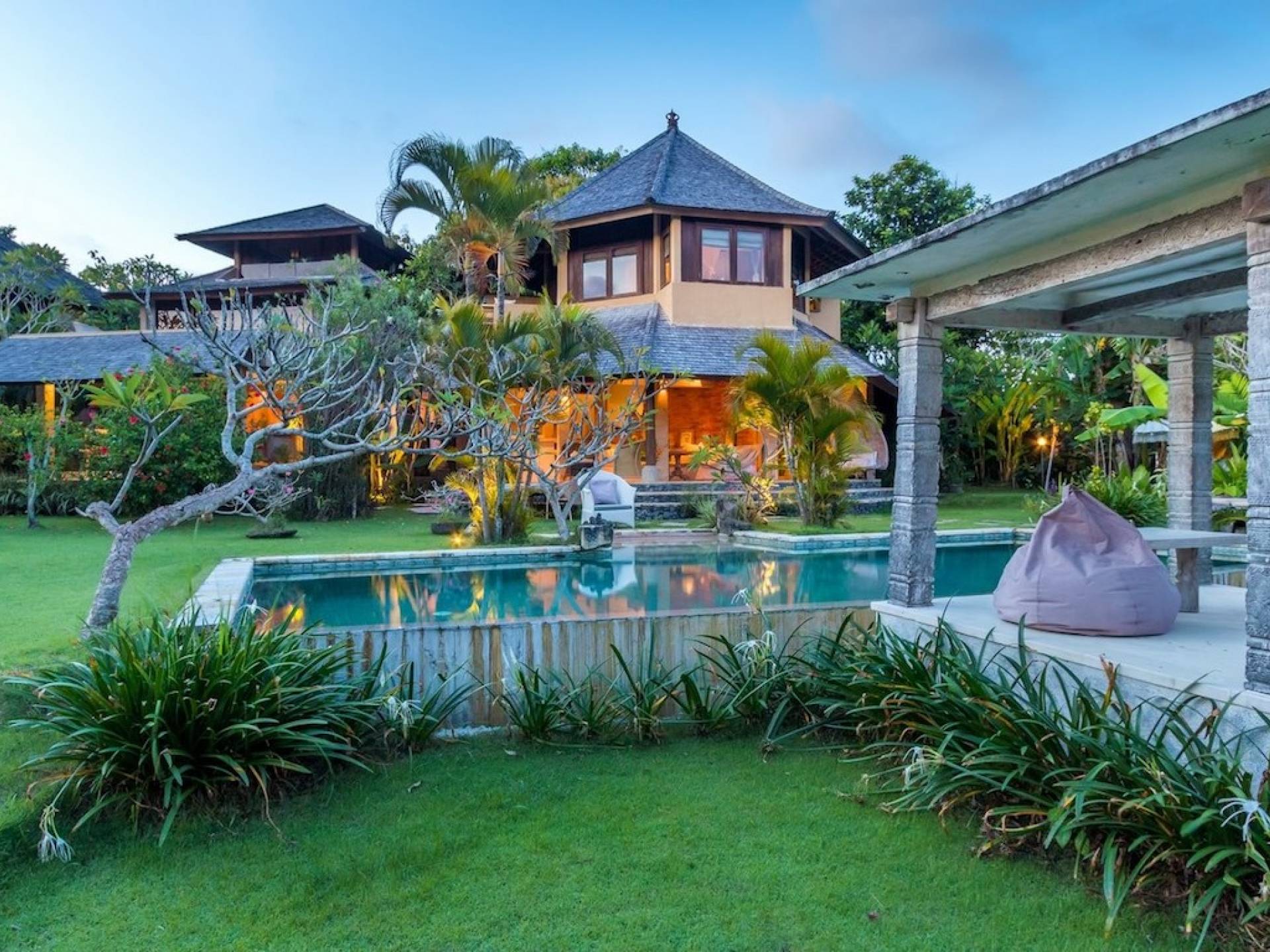 Planning a big family holiday to Bali, a wedding, or another special event and looking for the perfect villa to accommodate everyone? Look no further! Bungadesa Estate Canggu boasts 11 bedrooms and a huge tropical garden. On top of that, the location is superb in the south of Canggu, just meters from Berawa Beach. Traditional Indonesian pavilions, 2 swimming pools, beautiful antiques, and tribal artwork. The Bungadesa Estate is an amazing place that everyone will love!