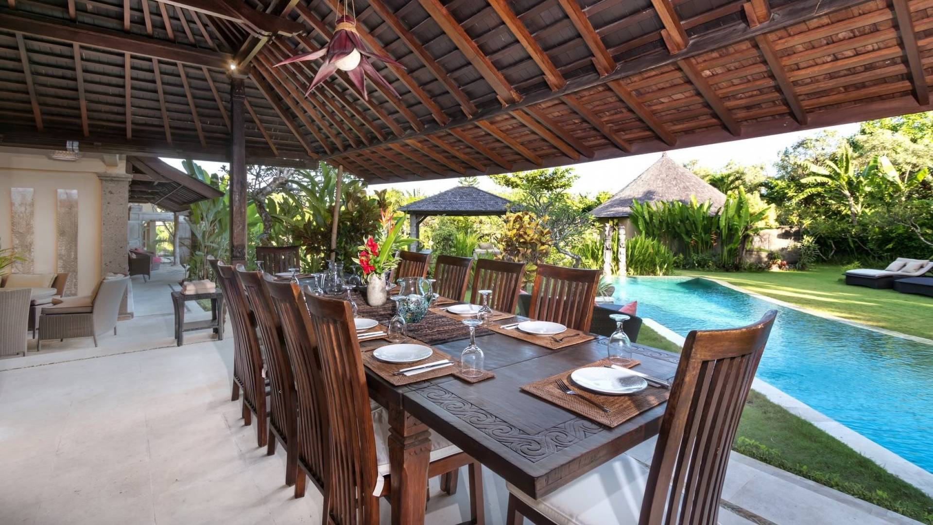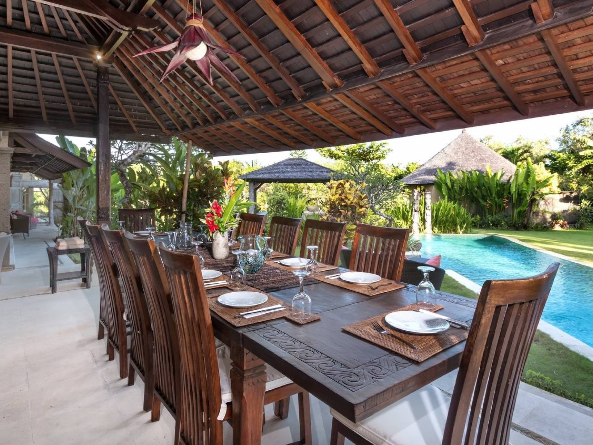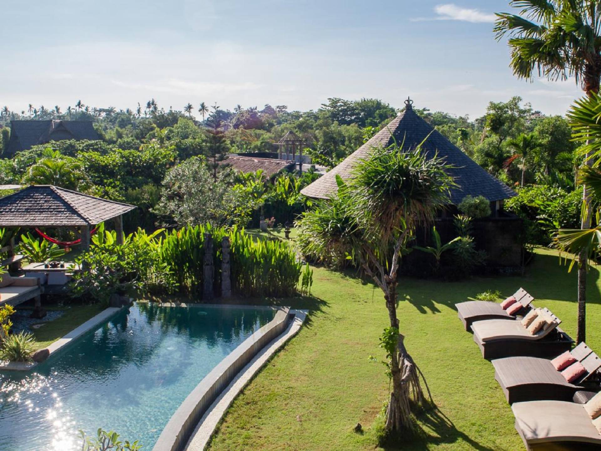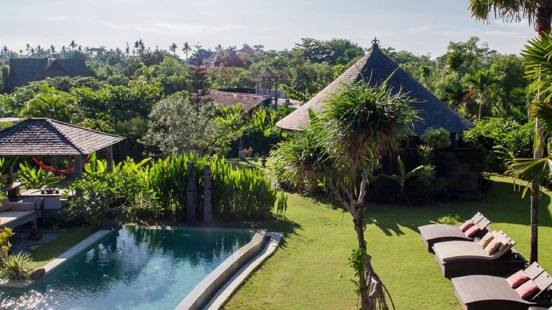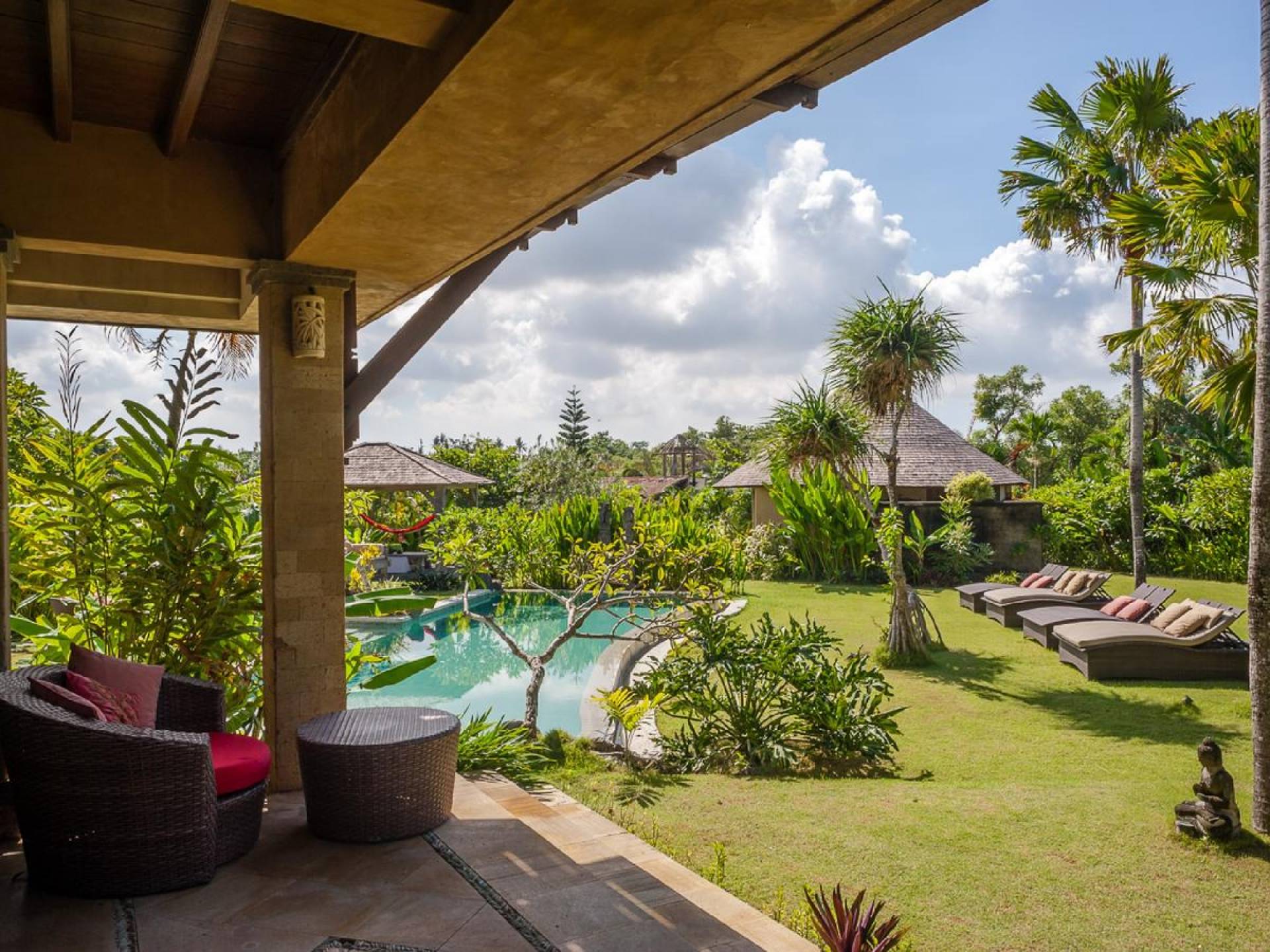 Planning a big family holiday to Bali, a wedding, or another special event and looking for the perfect villa to accommodate everyone? Look no further! Bungadesa Estate Canggu boasts 11 bedrooms and a huge tropical garden. On top of that, the location is superb in the south of Canggu, just meters from Berawa Beach. Traditional Indonesian pavilions, 2 swimming pools, beautiful antiques, and tribal artwork. The Bungadesa Estate is an amazing place that everyone will love!