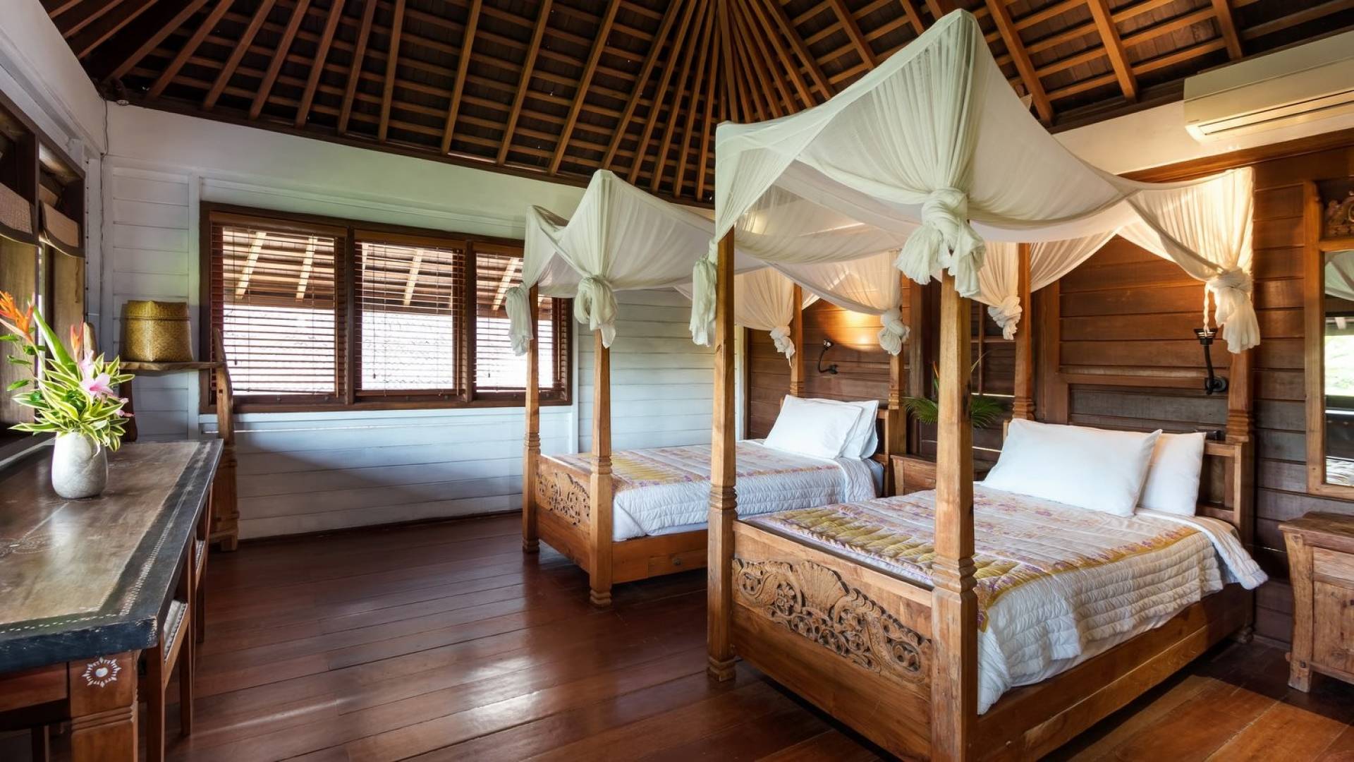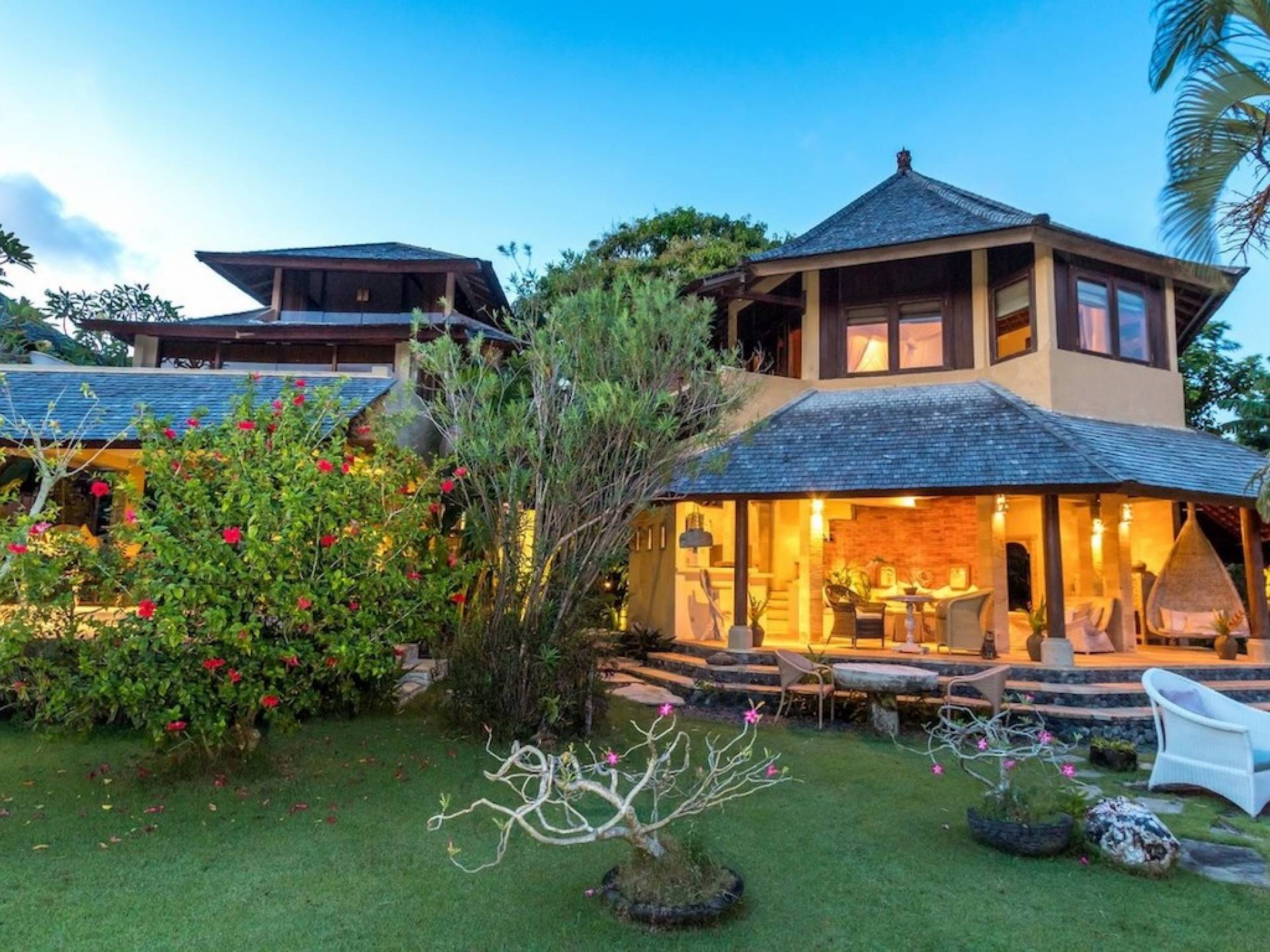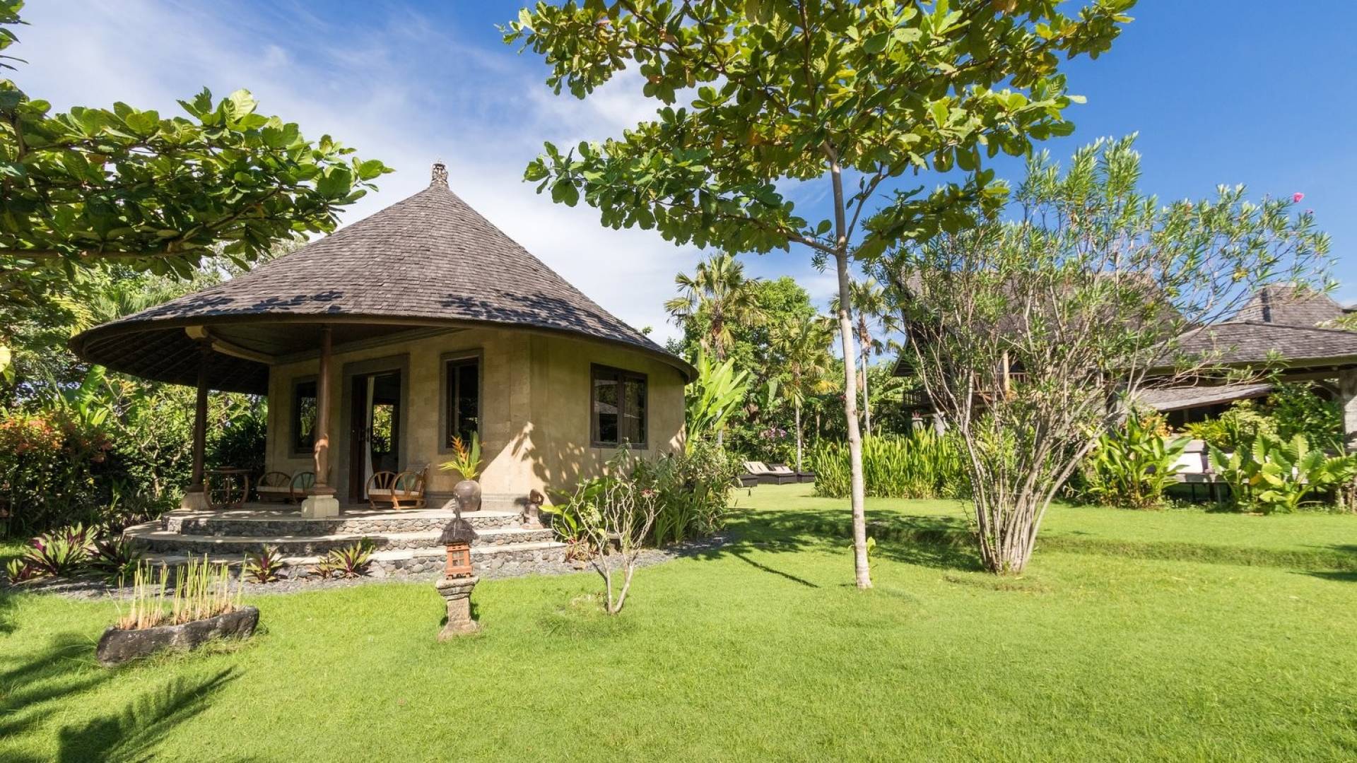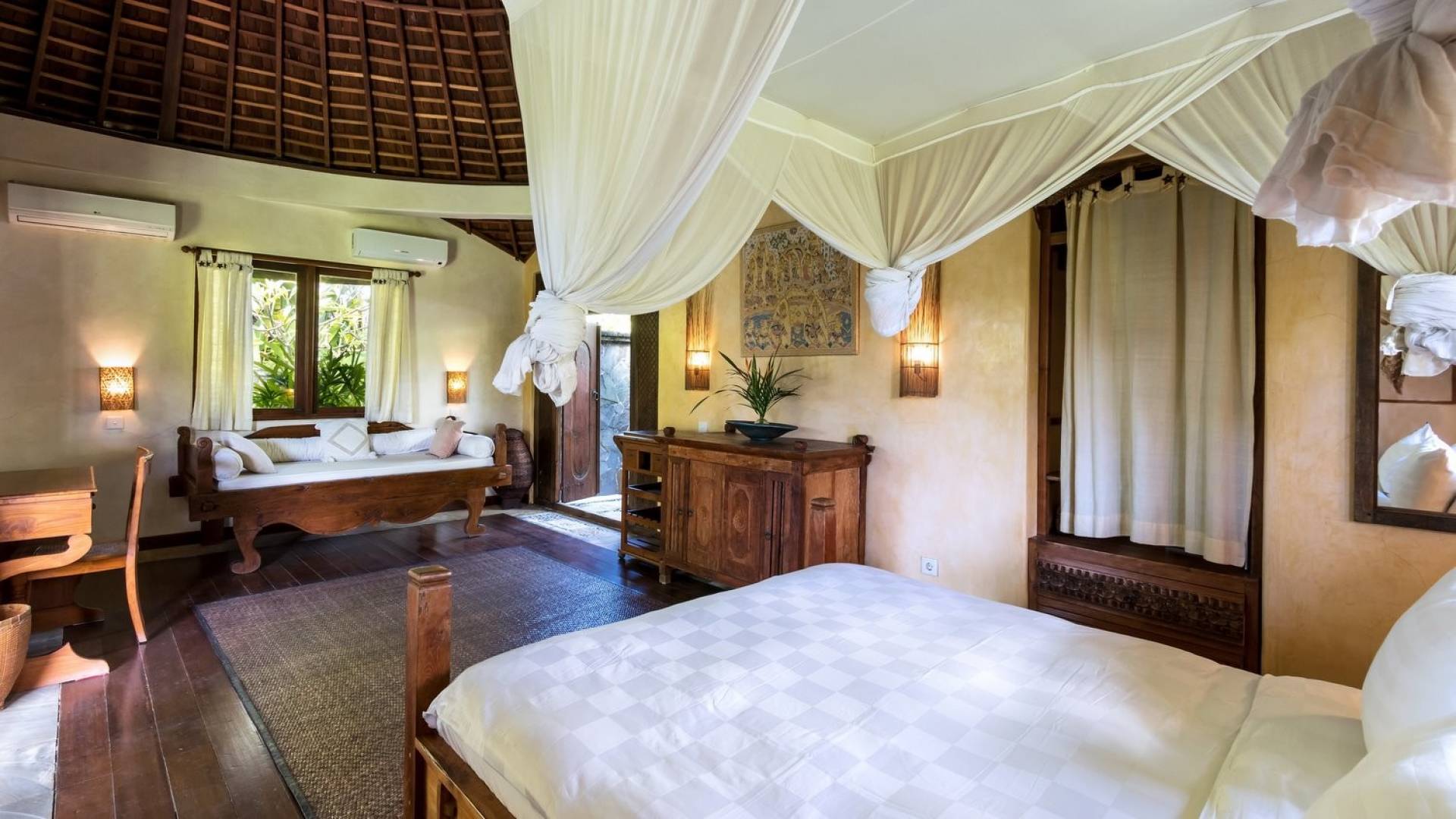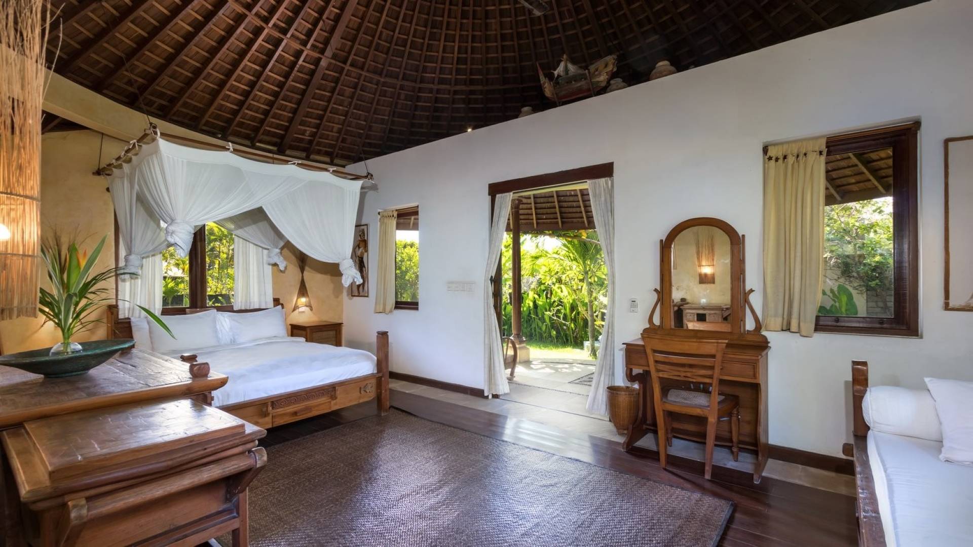 Planning a big family holiday to Bali, a wedding, or another special event and looking for the perfect villa to accommodate everyone? Look no further! Bungadesa Estate Canggu boasts 11 bedrooms and a huge tropical garden. On top of that, the location is superb in the south of Canggu, just meters from Berawa Beach. Traditional Indonesian pavilions, 2 swimming pools, beautiful antiques, and tribal artwork. The Bungadesa Estate is an amazing place that everyone will love!