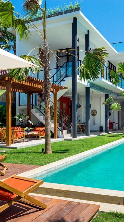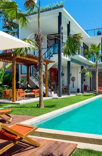 Tropical luxury living really doesn’t get better than this. The beachside villa with its touch of vibrant colours provides you with an energizing and upbeat feeling as soon you arrive. With its contemporary ‘zen’-like design and alfresco living areas, this three-bedroomed villa gives real meaning to the idea of living in harmony with nature. Only a minute’s walk from the beach and a beautiful natural lagoon, Villa Boa is located in Berawa – Canggu’s pinnacle of popularity with an incredible choice of dining spots, shops and cafeterias. This fully staffed luxury villa is the perfect option for a family or a group of friends seeking to explore the best of Bali in elegance and style.