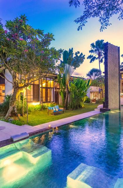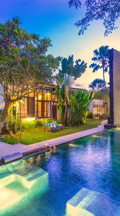 Villa Kouru Canggu offers three separate and independent villa buildings with a total of five beautiful bedrooms, luxurious living space, and a sumptuous swimming pool, in an exclusive residence of 2,500 square meters.