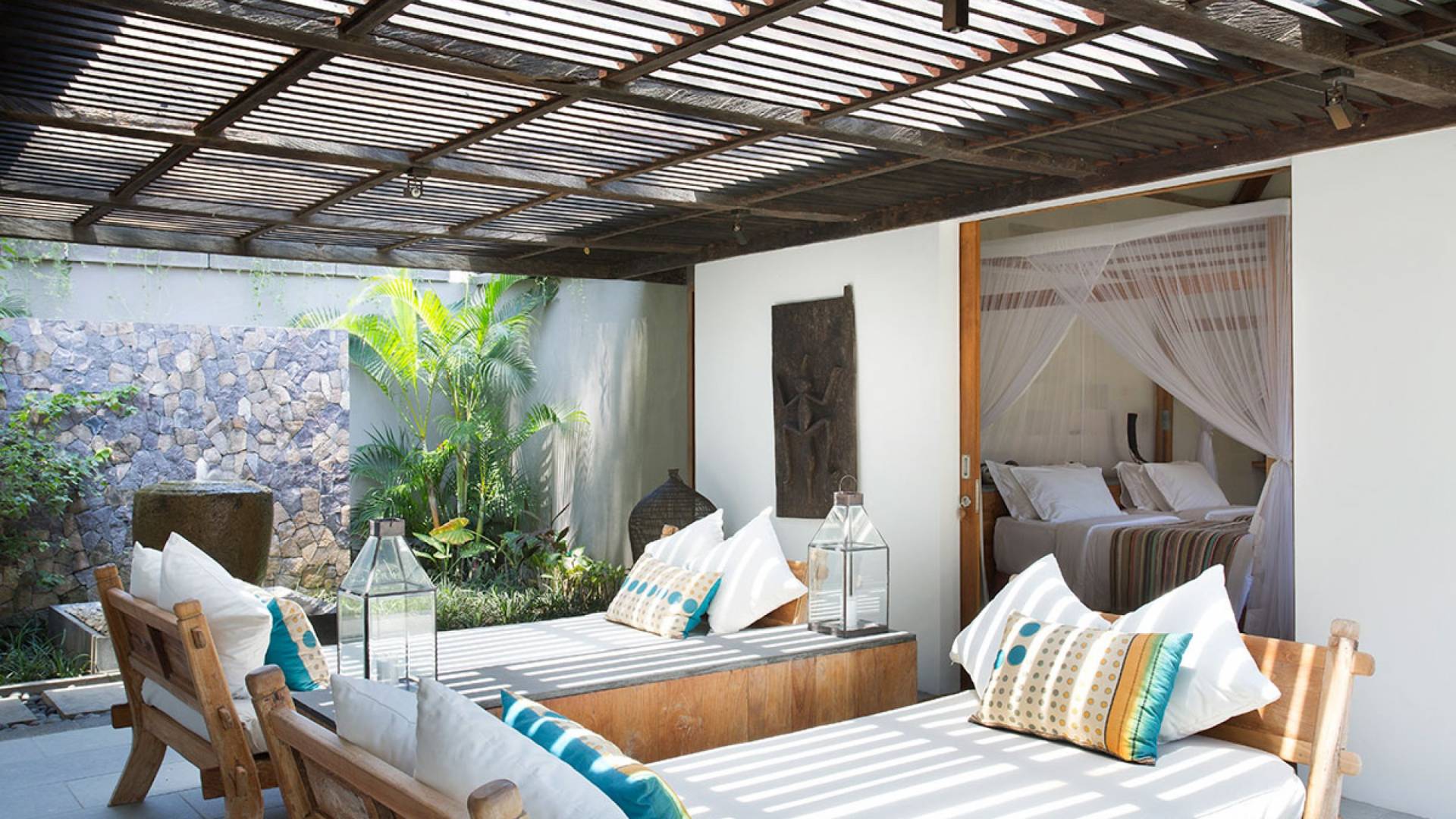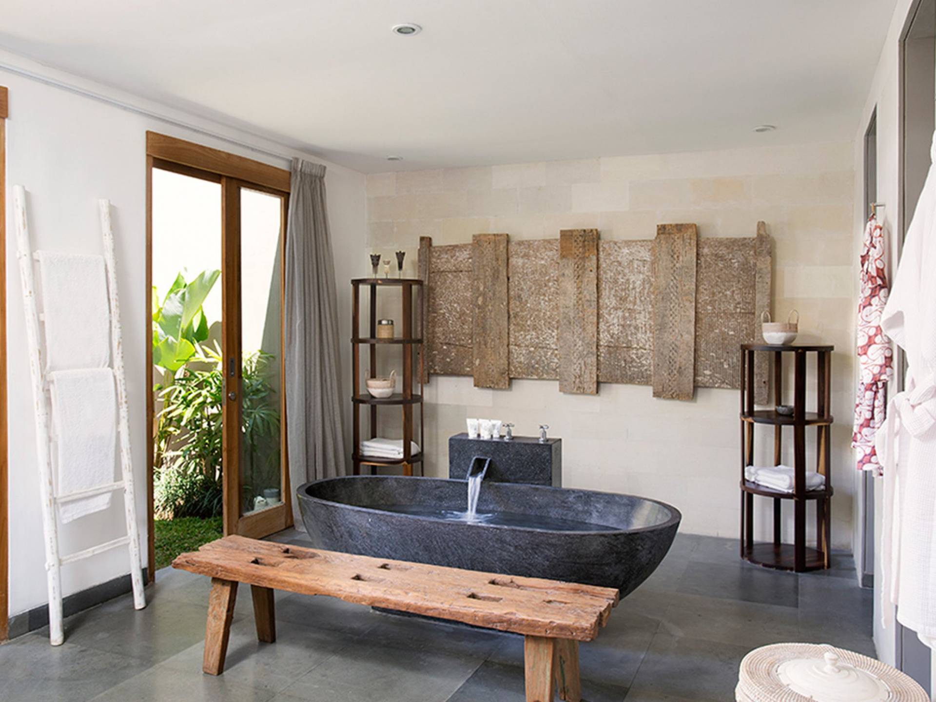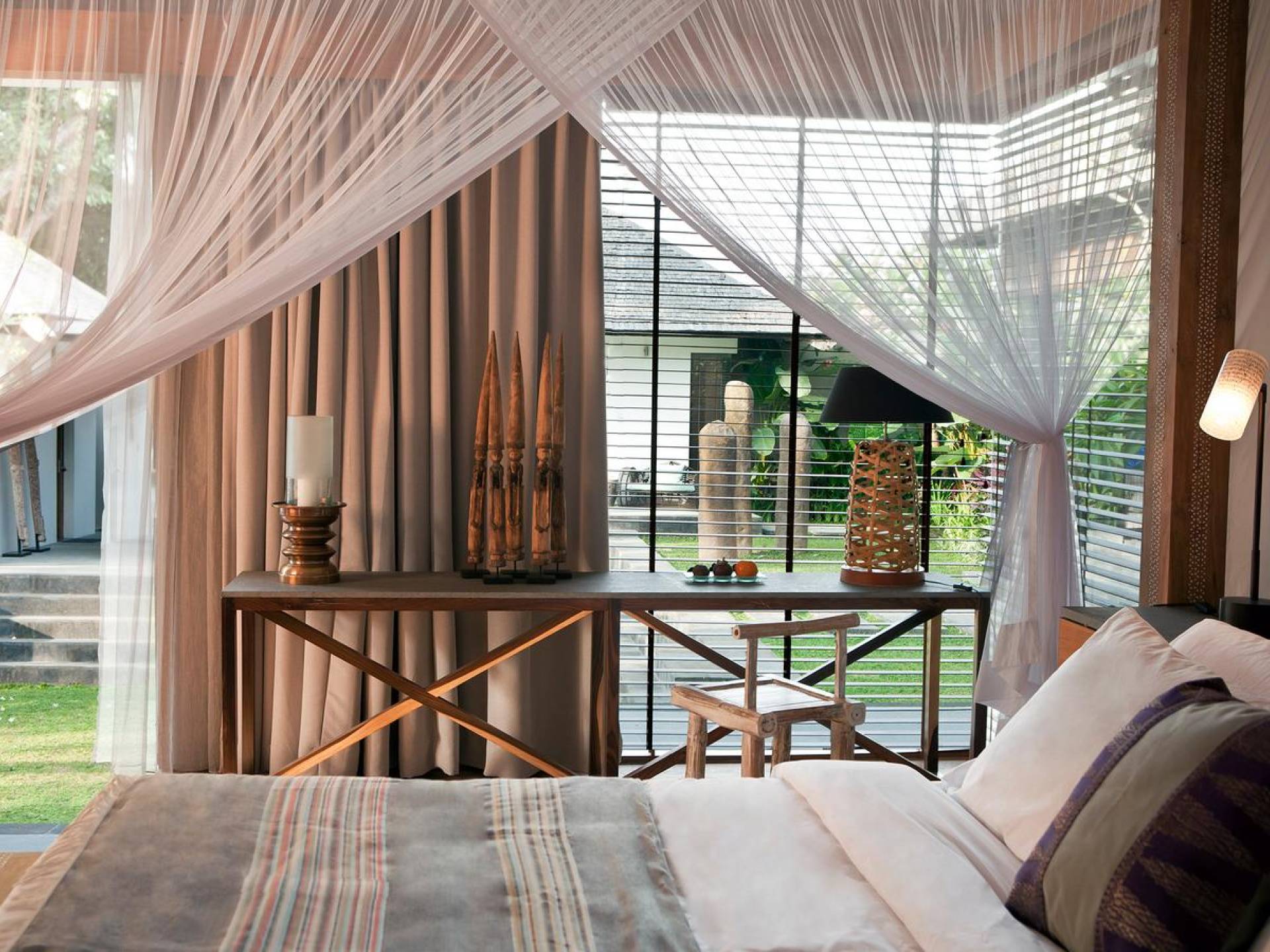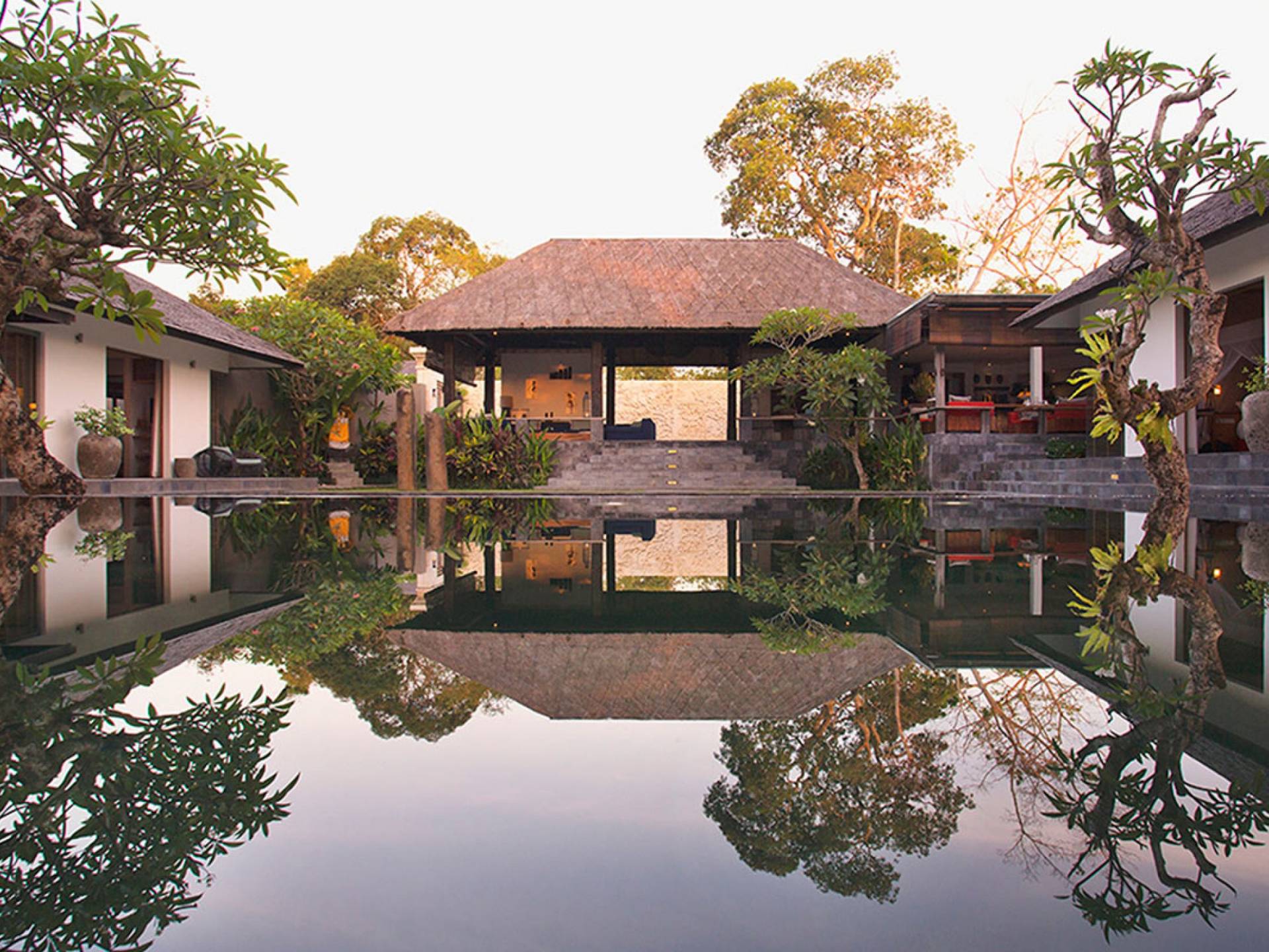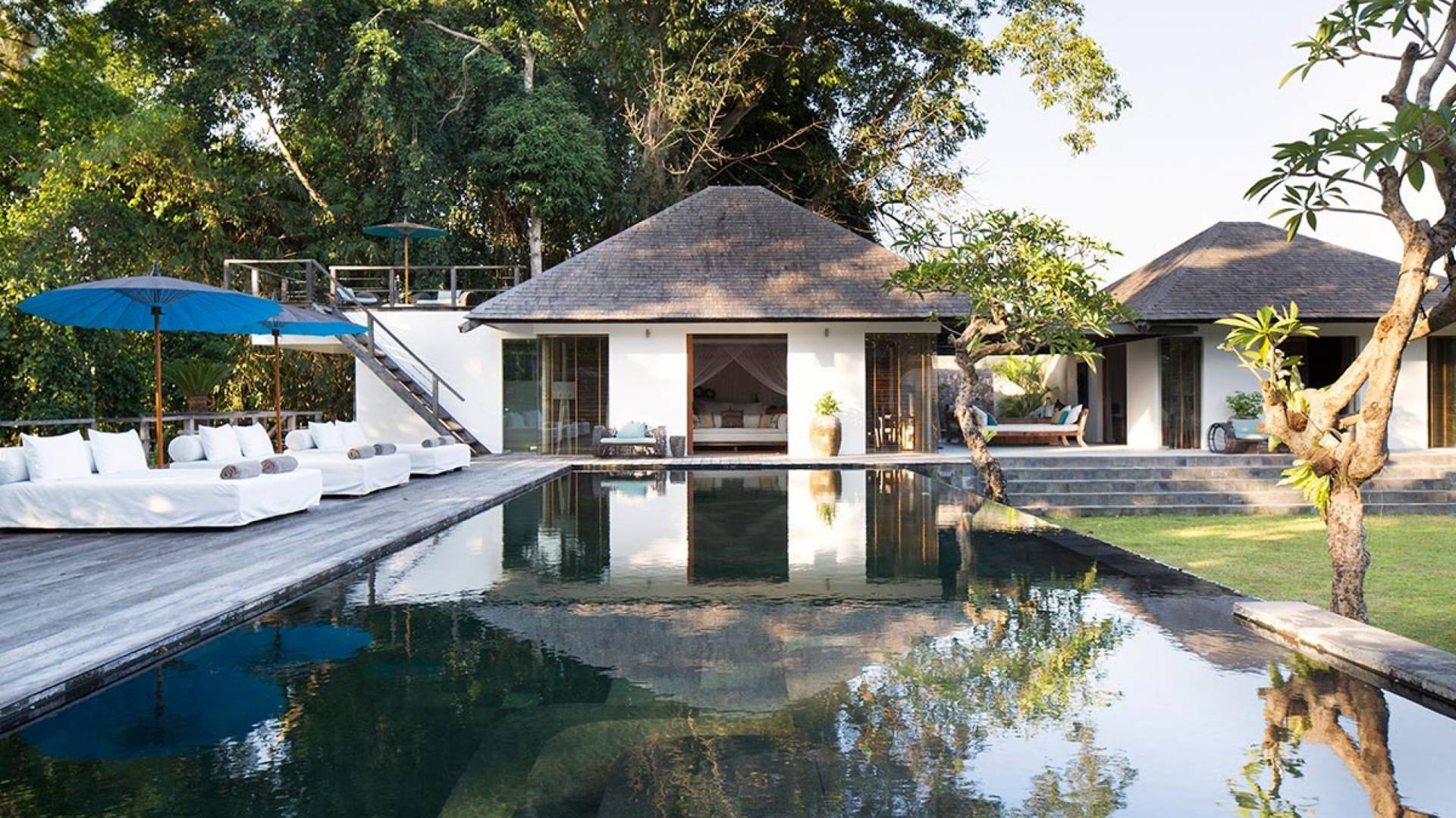 Within an easy stroll of Bali’s famous Echo Beach, Villa Levi Canggu clings to the bend of a river in a tranquil setting amidst tall trees and the picturesque rice fields of Canggu. The epitome of graceful tropical living, this stylish eco-villa utilizes reclaimed woods and natural stone throughout to create a richly textured luxurious hideaway adorned with evocative antiques and equipped with all mod cons. With a magnificent pool, three elegant bedrooms, and the friendliest of staff, including a driver and complimentary car, Villa Levi Canggu is a truly idyllic destination for groups, families, and those celebrating intimate weddings.