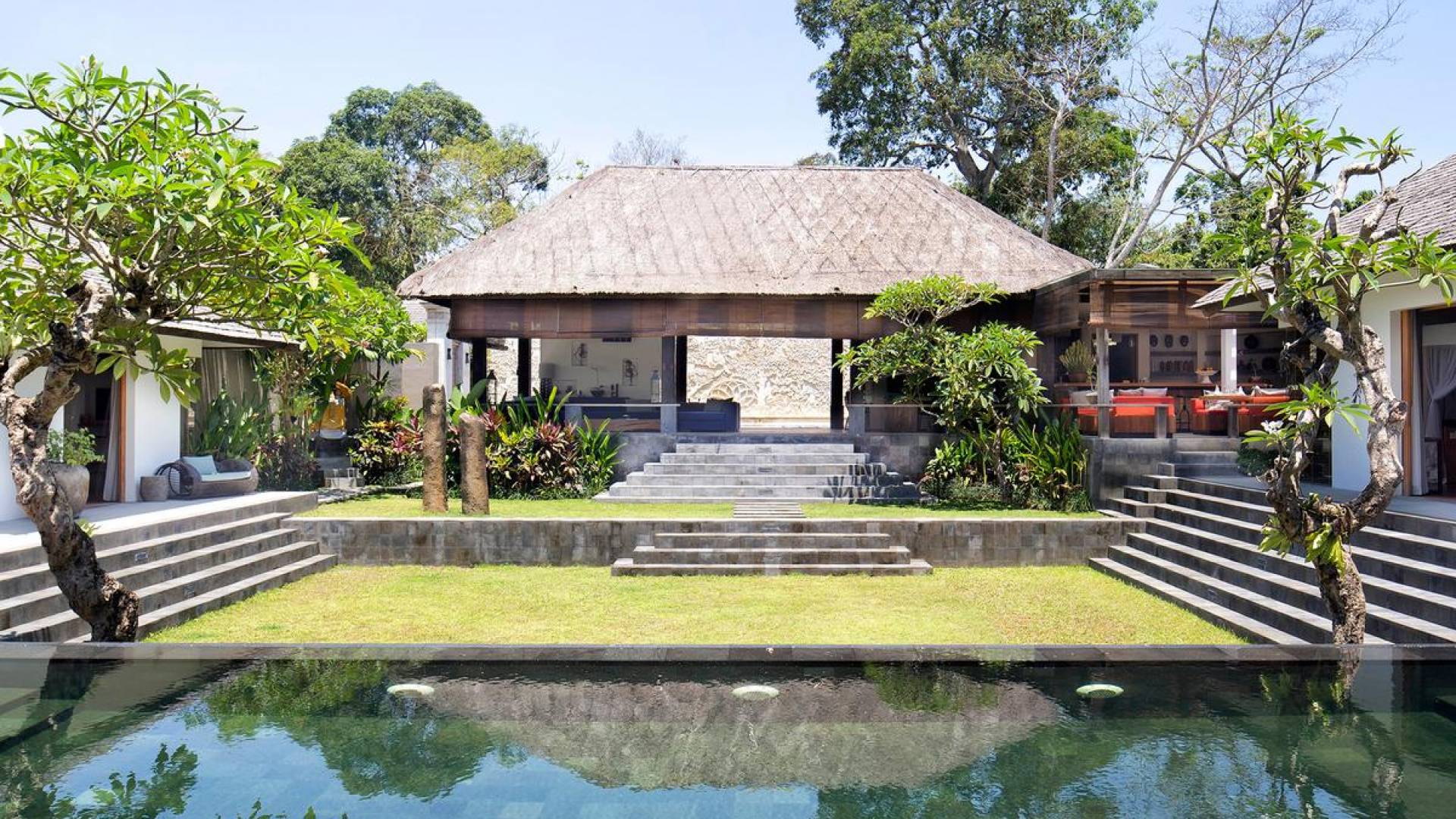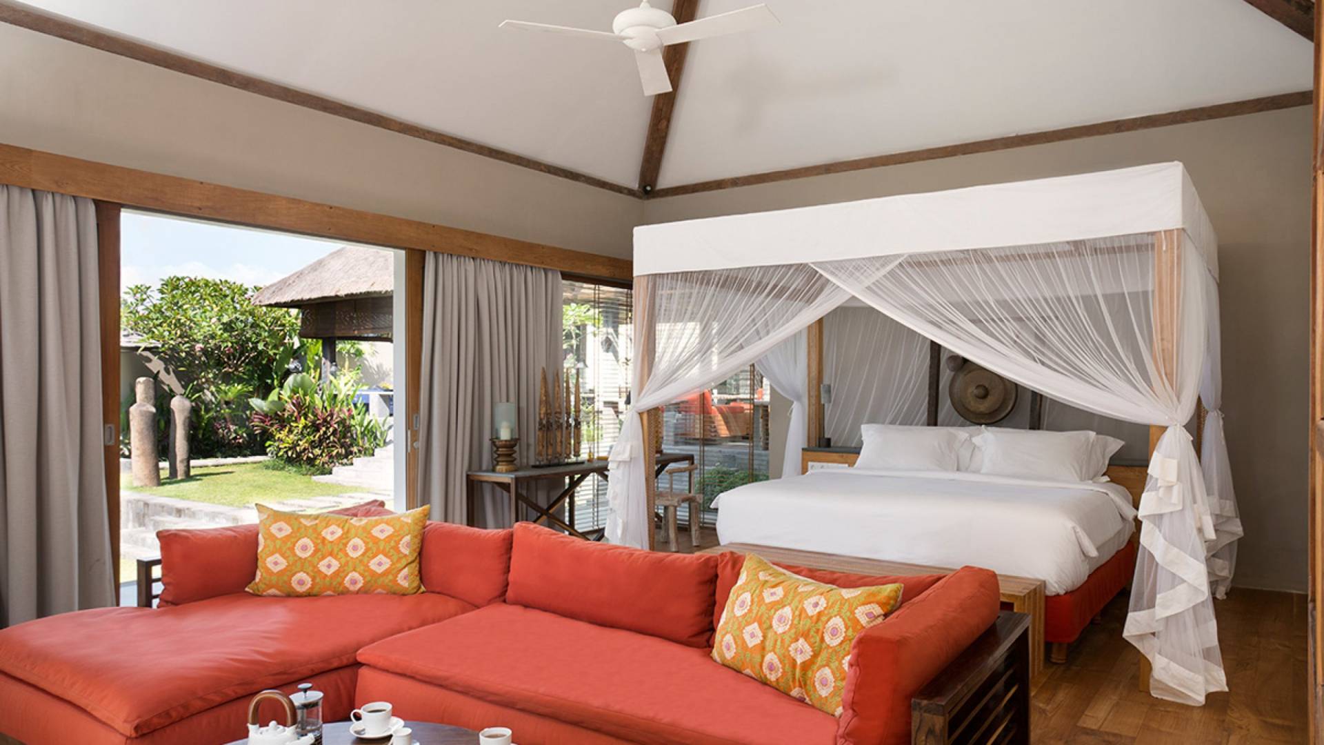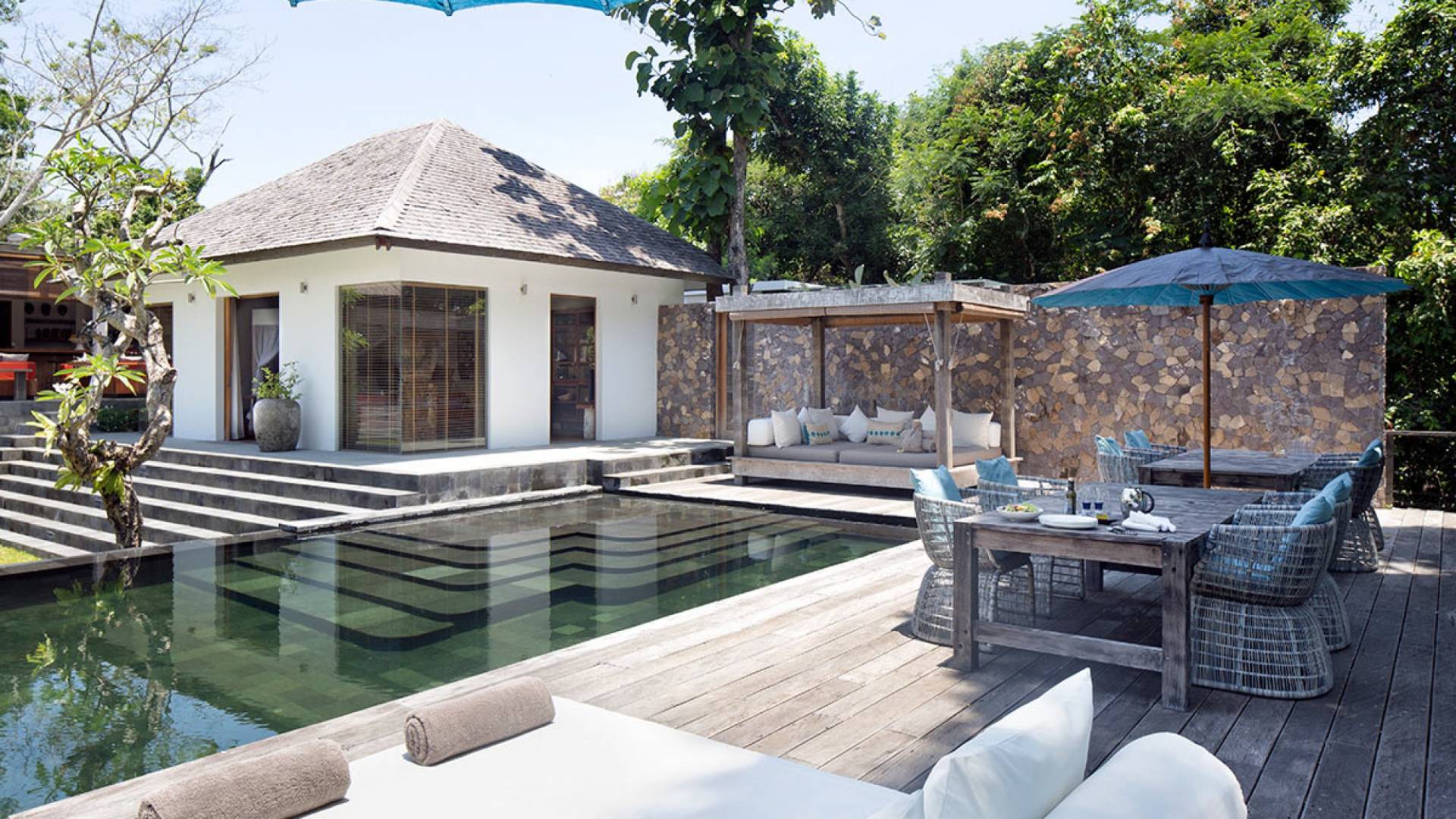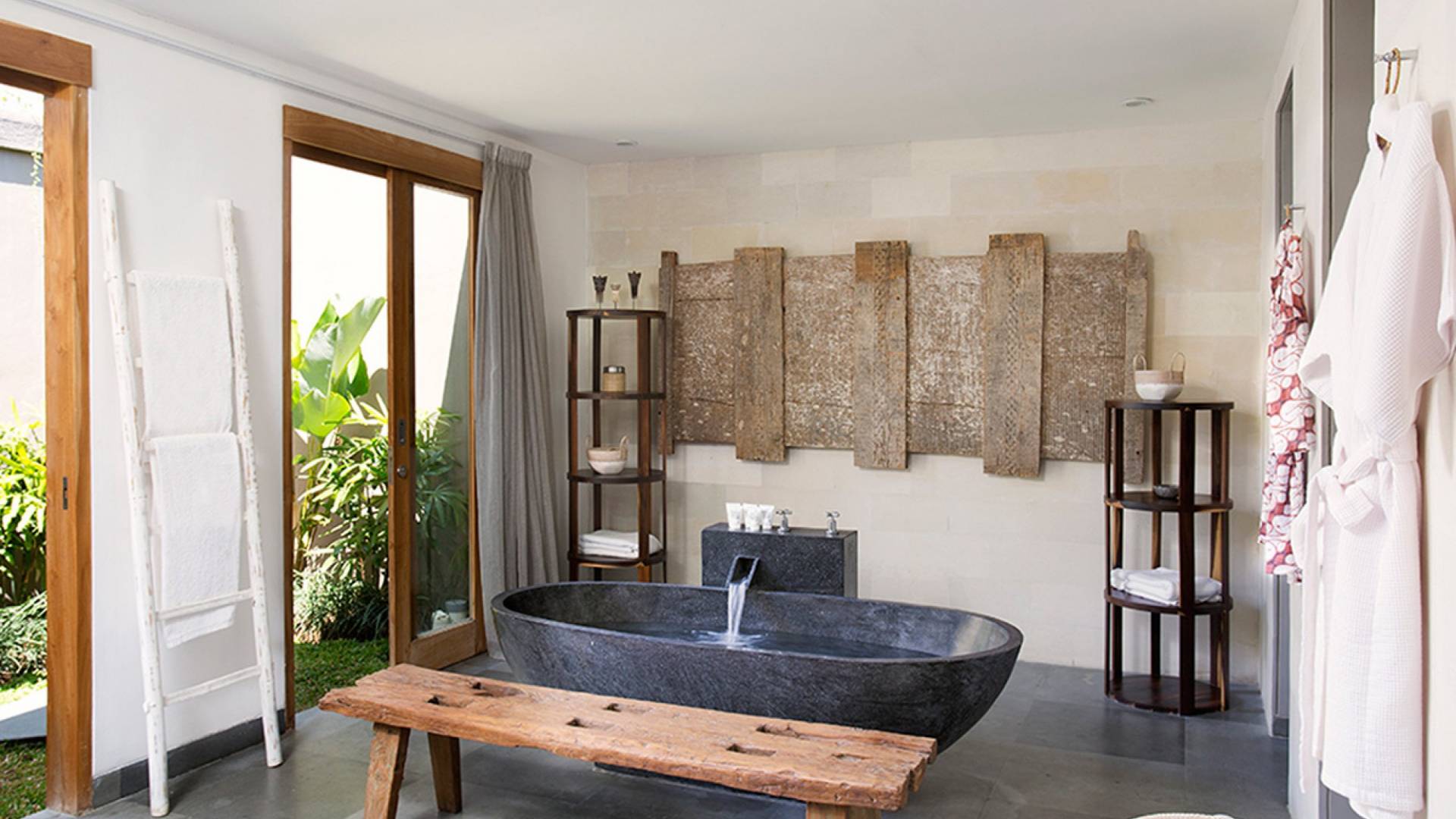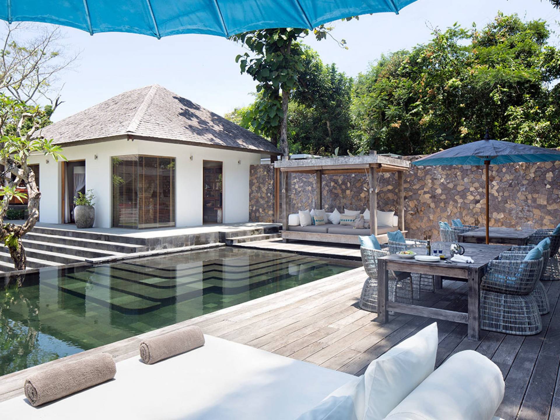 Within an easy stroll of Bali’s famous Echo Beach, Villa Levi Canggu clings to the bend of a river in a tranquil setting amidst tall trees and the picturesque rice fields of Canggu. The epitome of graceful tropical living, this stylish eco-villa utilizes reclaimed woods and natural stone throughout to create a richly textured luxurious hideaway adorned with evocative antiques and equipped with all mod cons. With a magnificent pool, three elegant bedrooms, and the friendliest of staff, including a driver and complimentary car, Villa Levi Canggu is a truly idyllic destination for groups, families, and those celebrating intimate weddings.