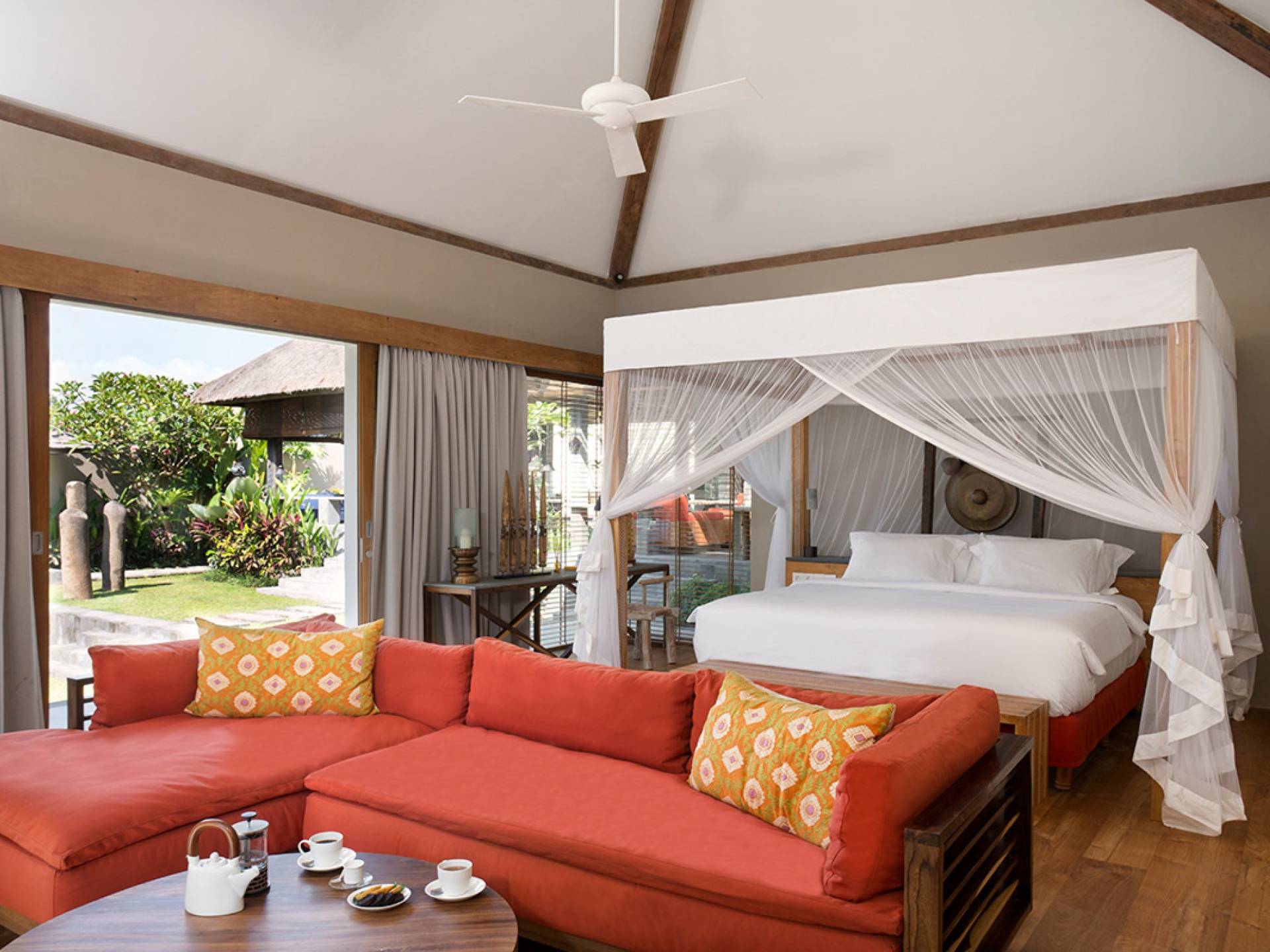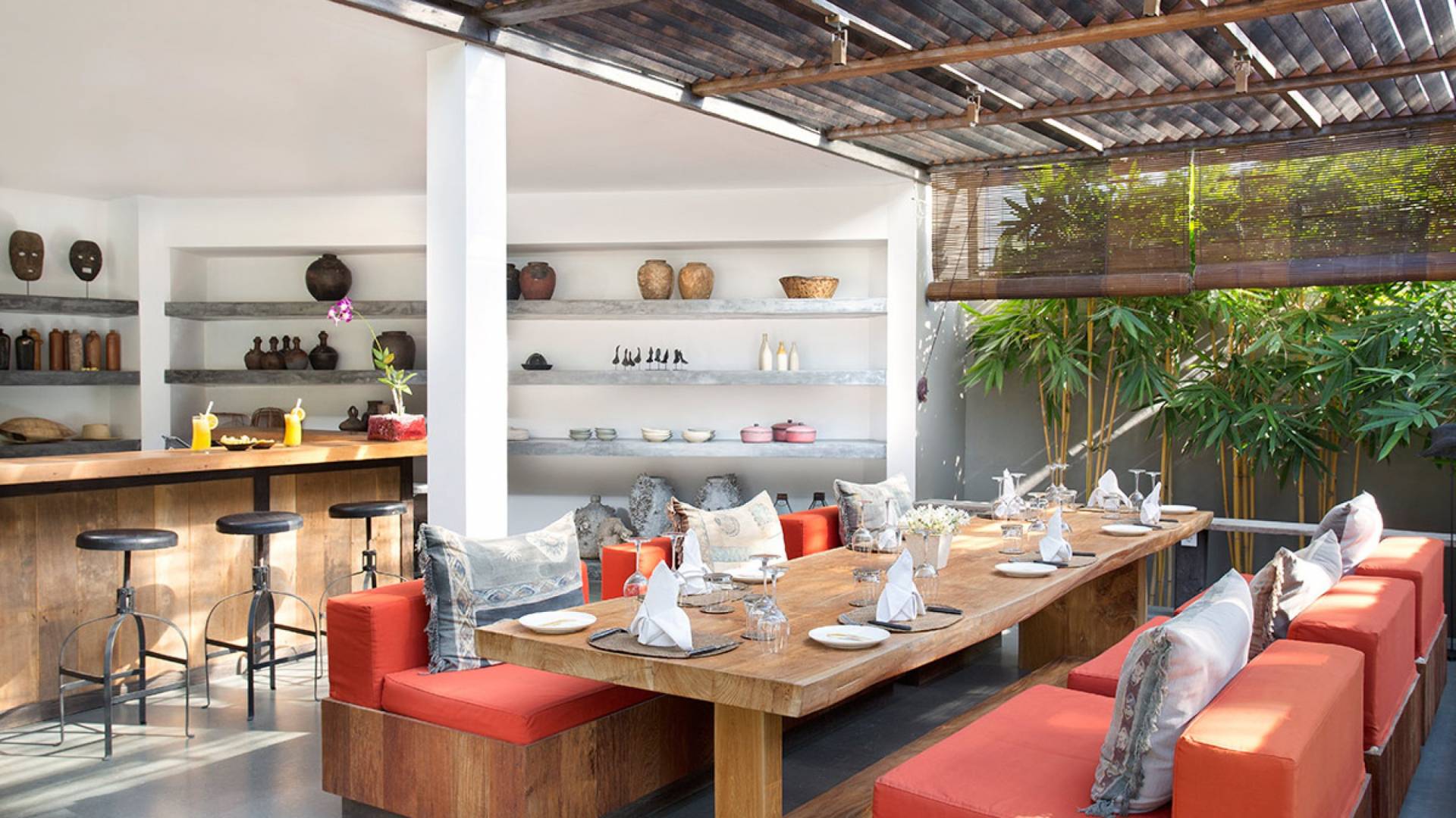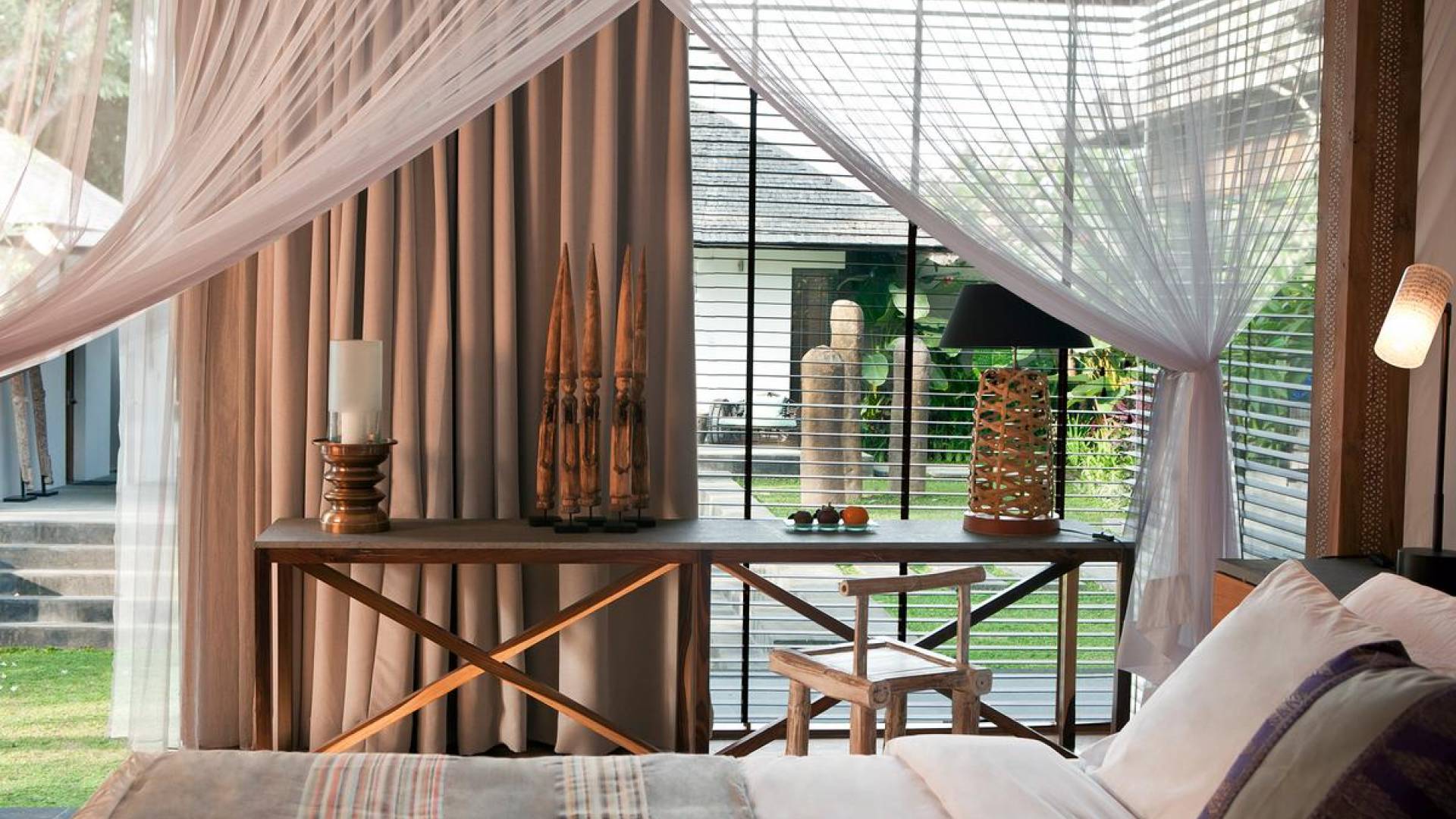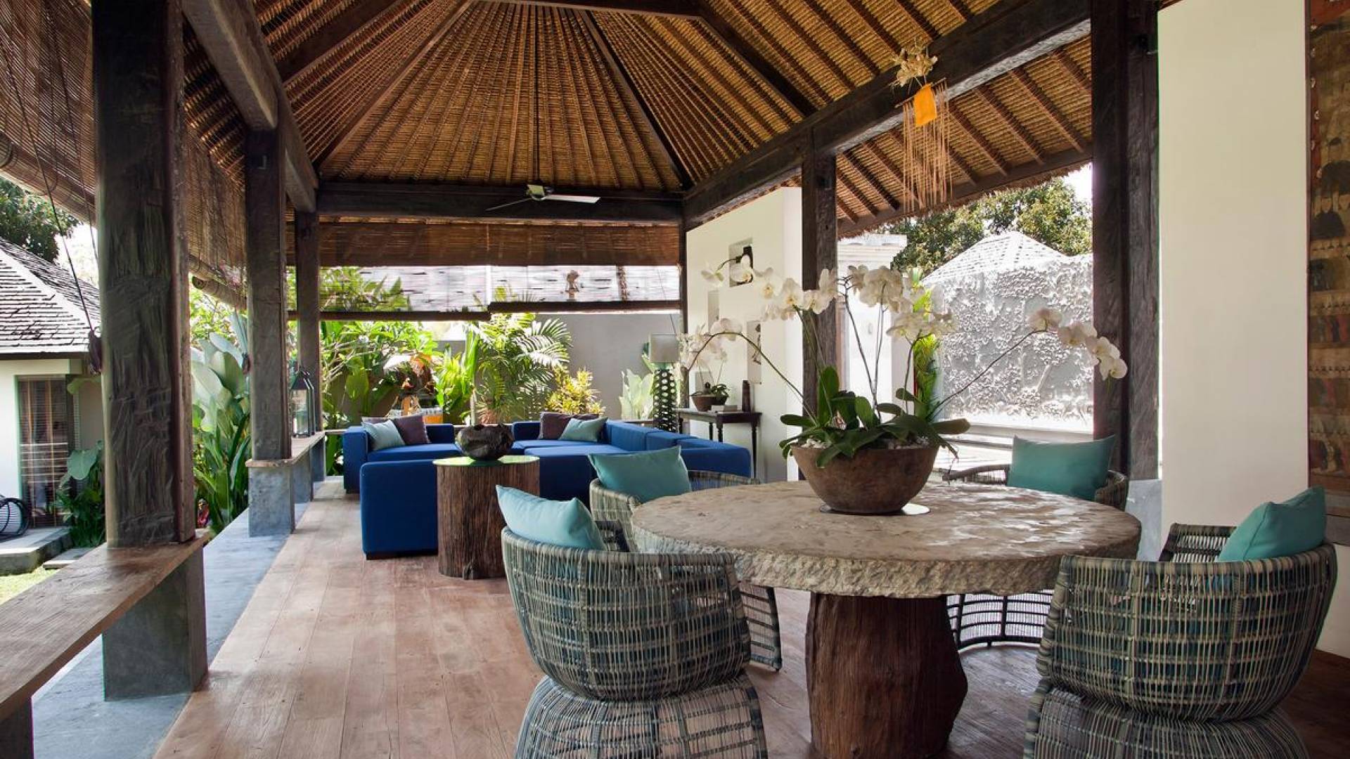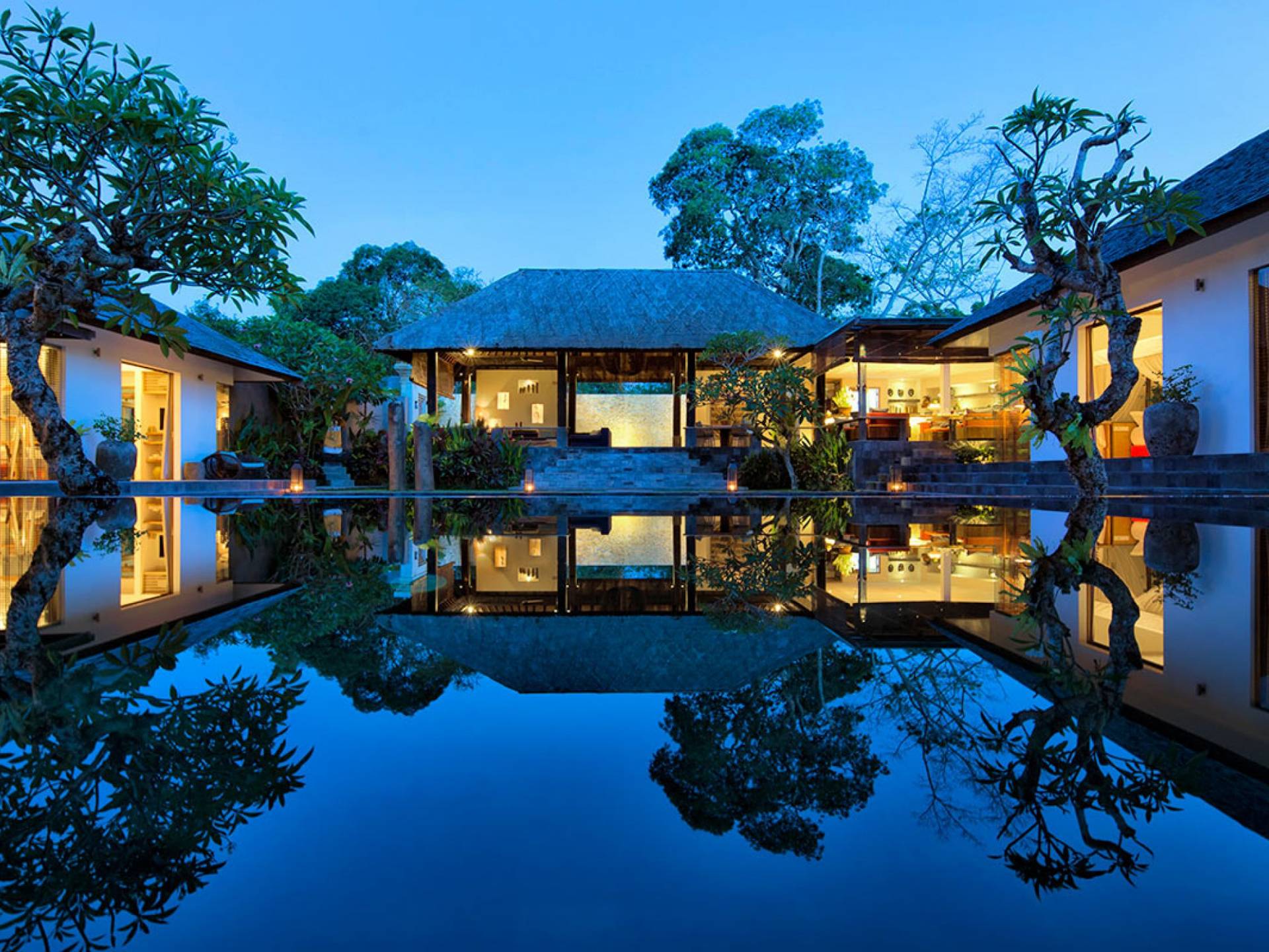 Within an easy stroll of Bali’s famous Echo Beach, Villa Levi Canggu clings to the bend of a river in a tranquil setting amidst tall trees and the picturesque rice fields of Canggu. The epitome of graceful tropical living, this stylish eco-villa utilizes reclaimed woods and natural stone throughout to create a richly textured luxurious hideaway adorned with evocative antiques and equipped with all mod cons. With a magnificent pool, three elegant bedrooms, and the friendliest of staff, including a driver and complimentary car, Villa Levi Canggu is a truly idyllic destination for groups, families, and those celebrating intimate weddings.