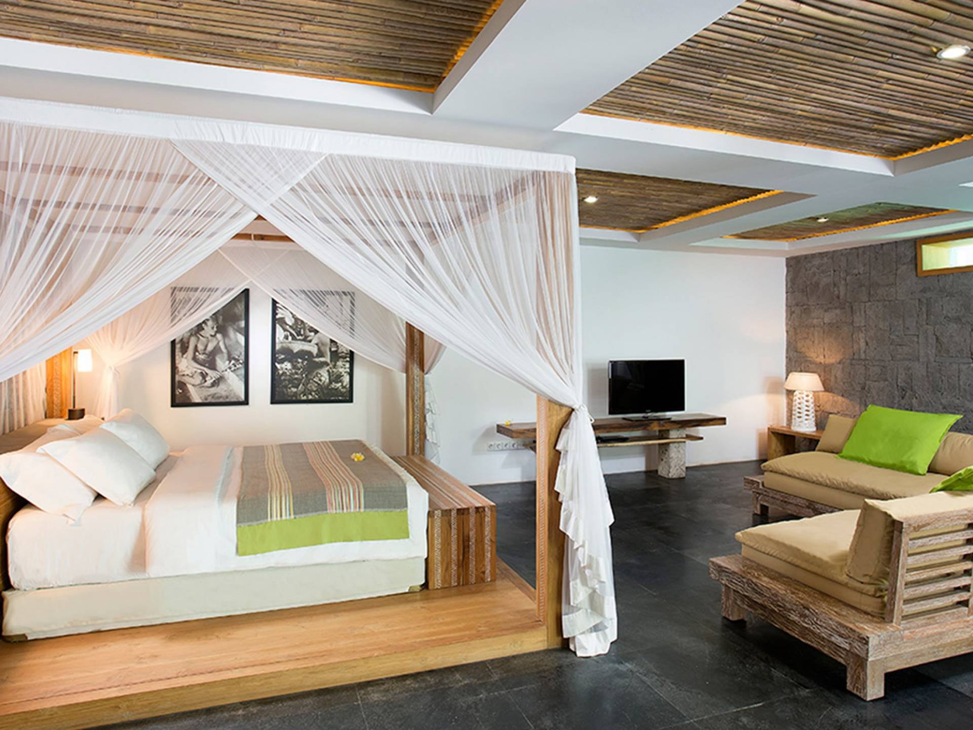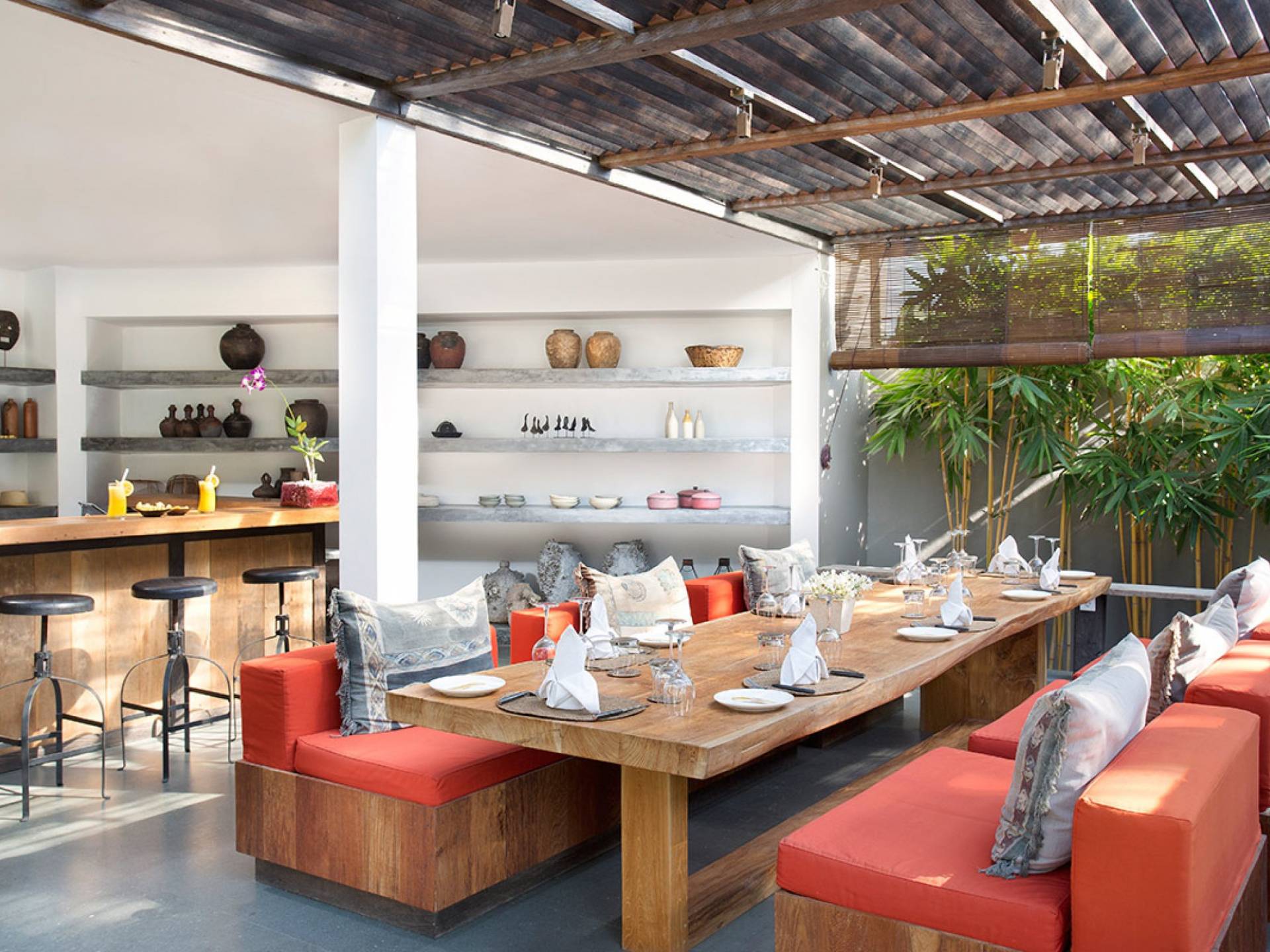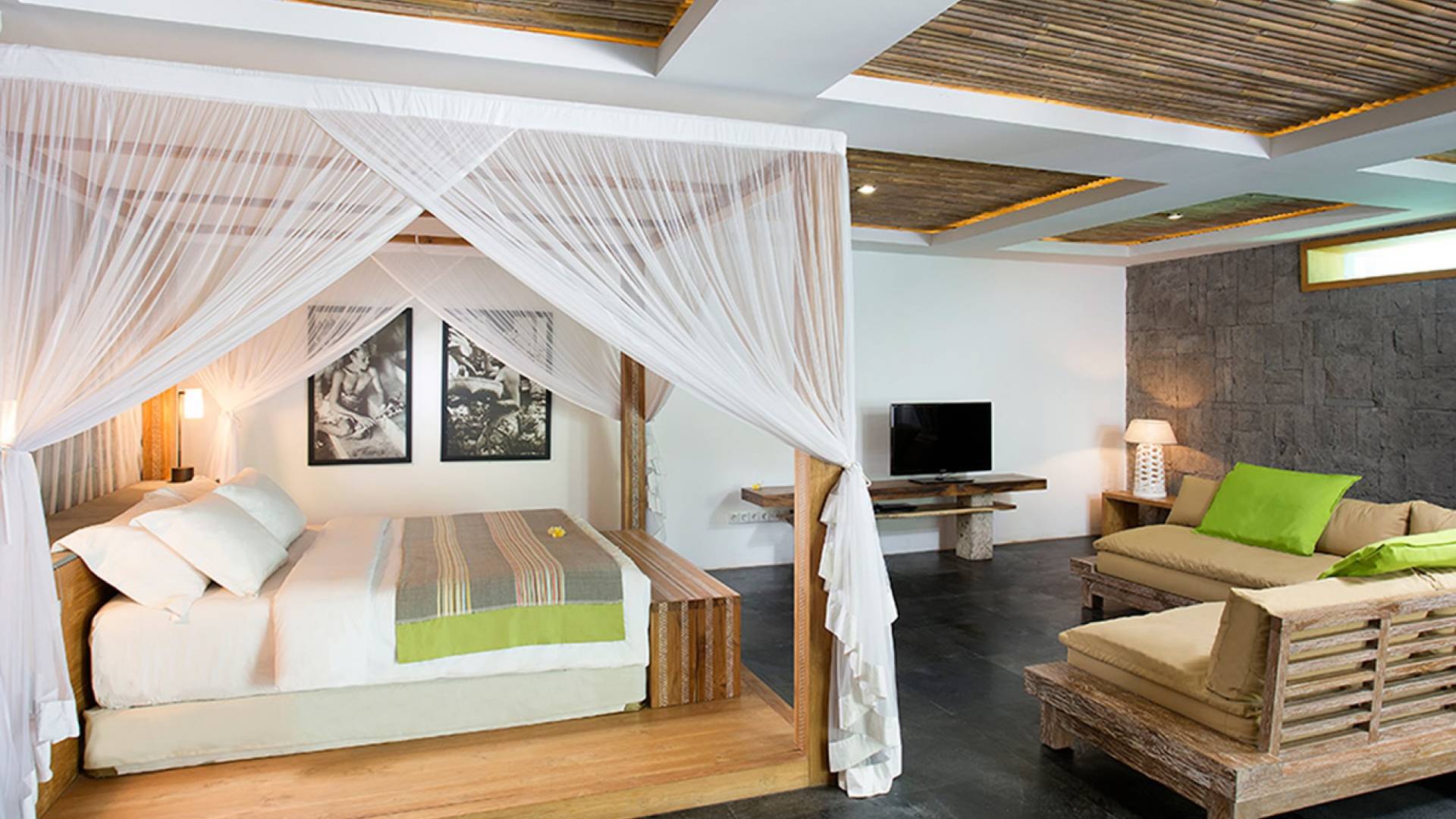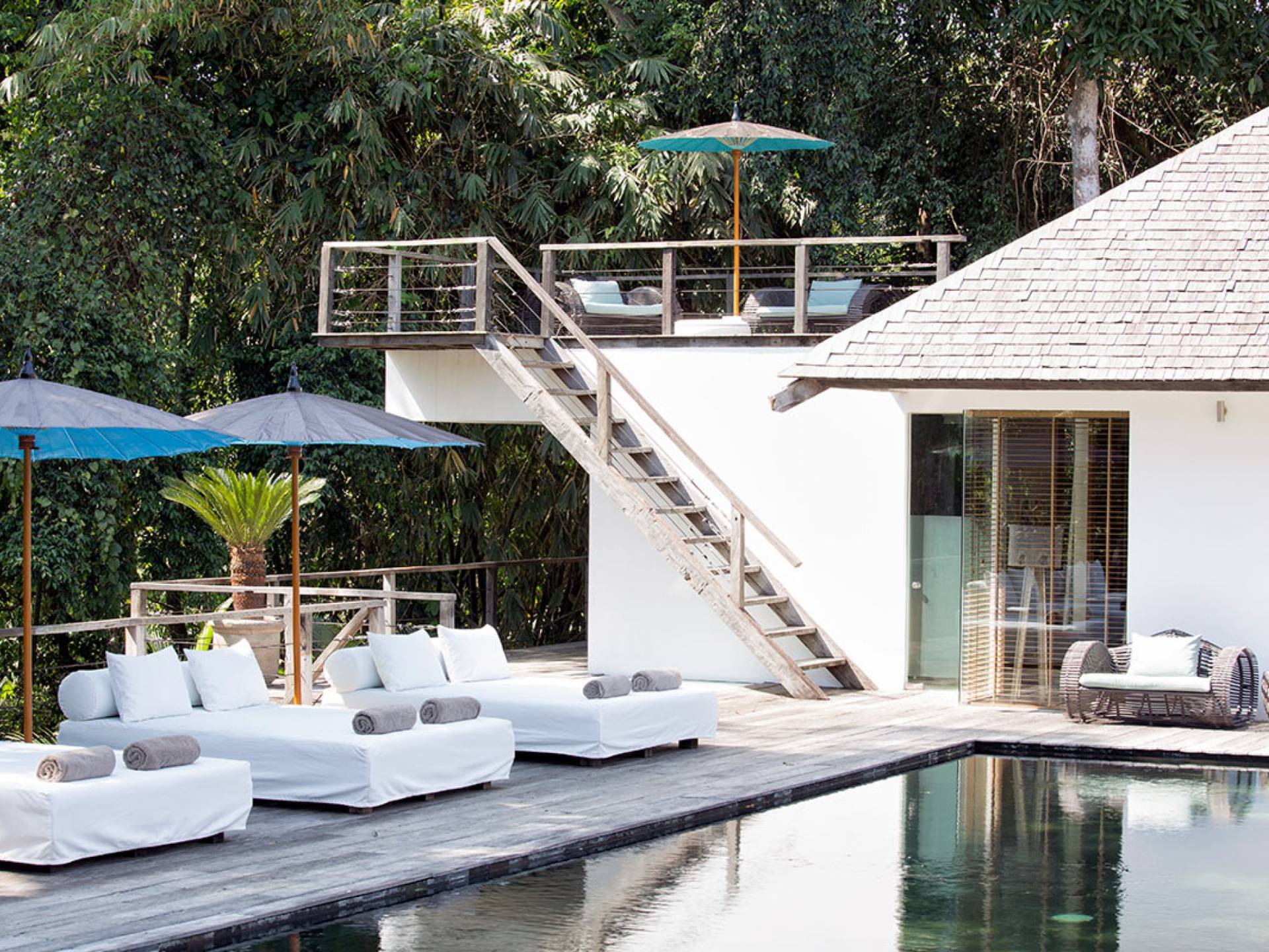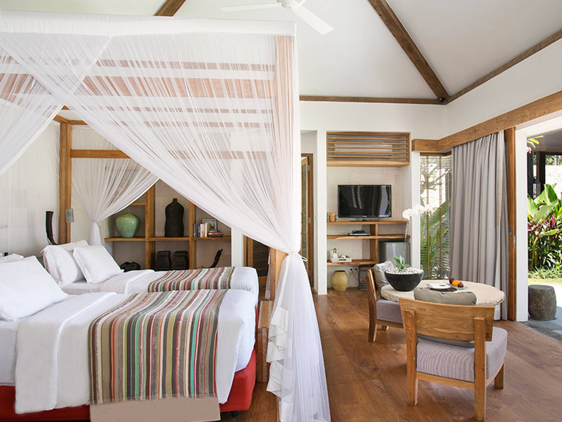 Within an easy stroll of Bali’s famous Echo Beach, Villa Levi Canggu clings to the bend of a river in a tranquil setting amidst tall trees and the picturesque rice fields of Canggu. The epitome of graceful tropical living, this stylish eco-villa utilizes reclaimed woods and natural stone throughout to create a richly textured luxurious hideaway adorned with evocative antiques and equipped with all mod cons. With a magnificent pool, three elegant bedrooms, and the friendliest of staff, including a driver and complimentary car, Villa Levi Canggu is a truly idyllic destination for groups, families, and those celebrating intimate weddings.