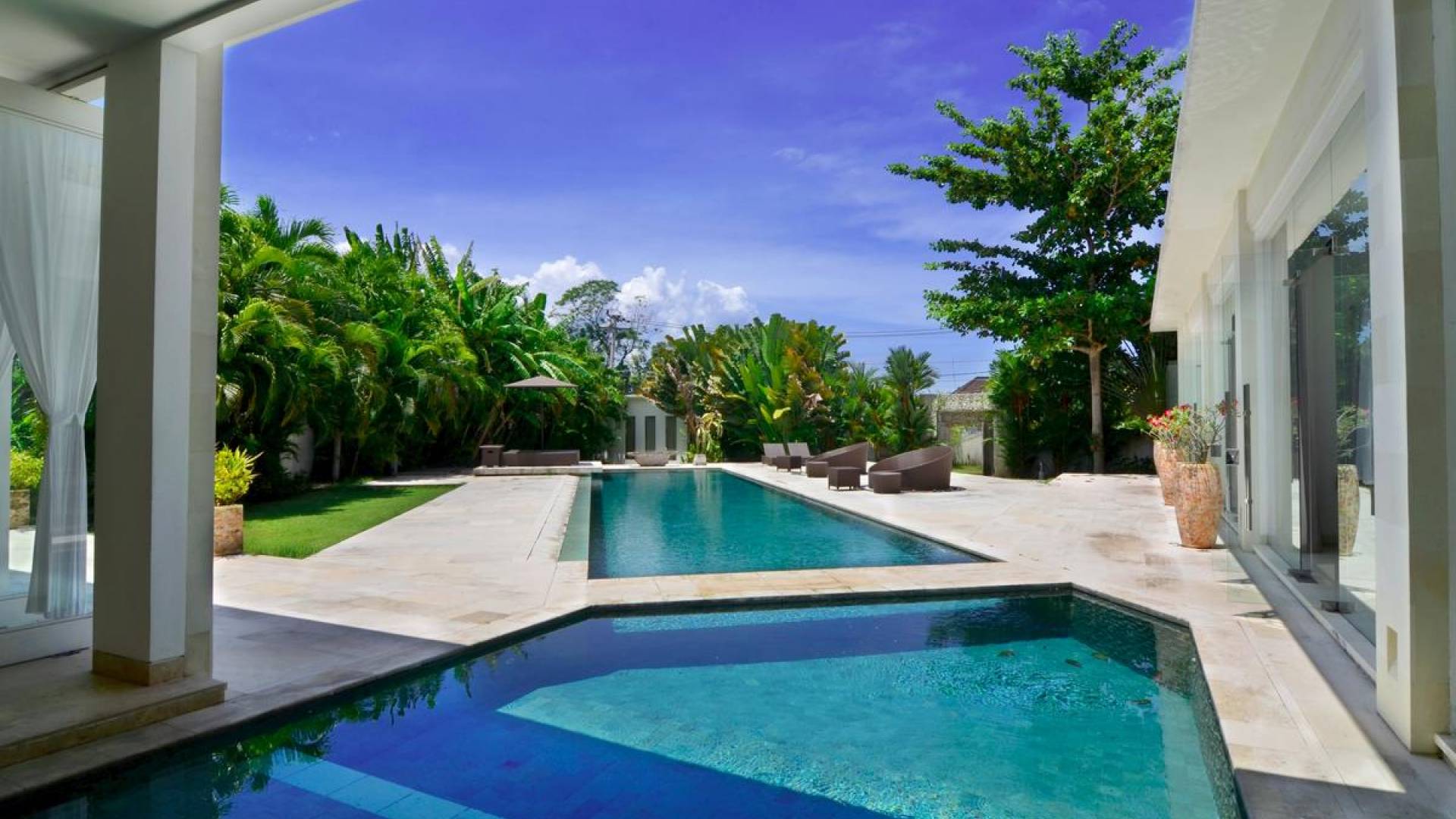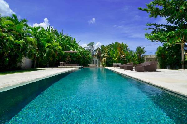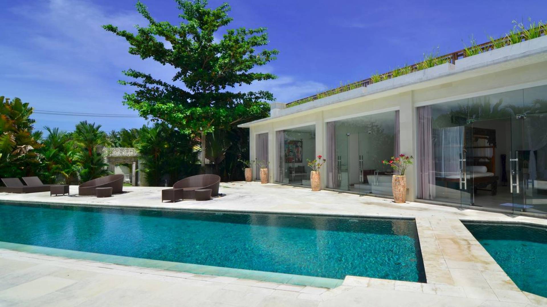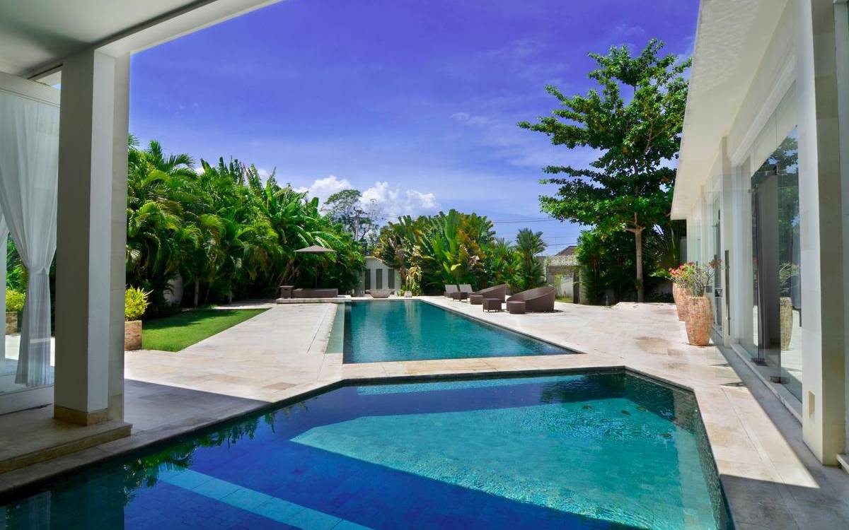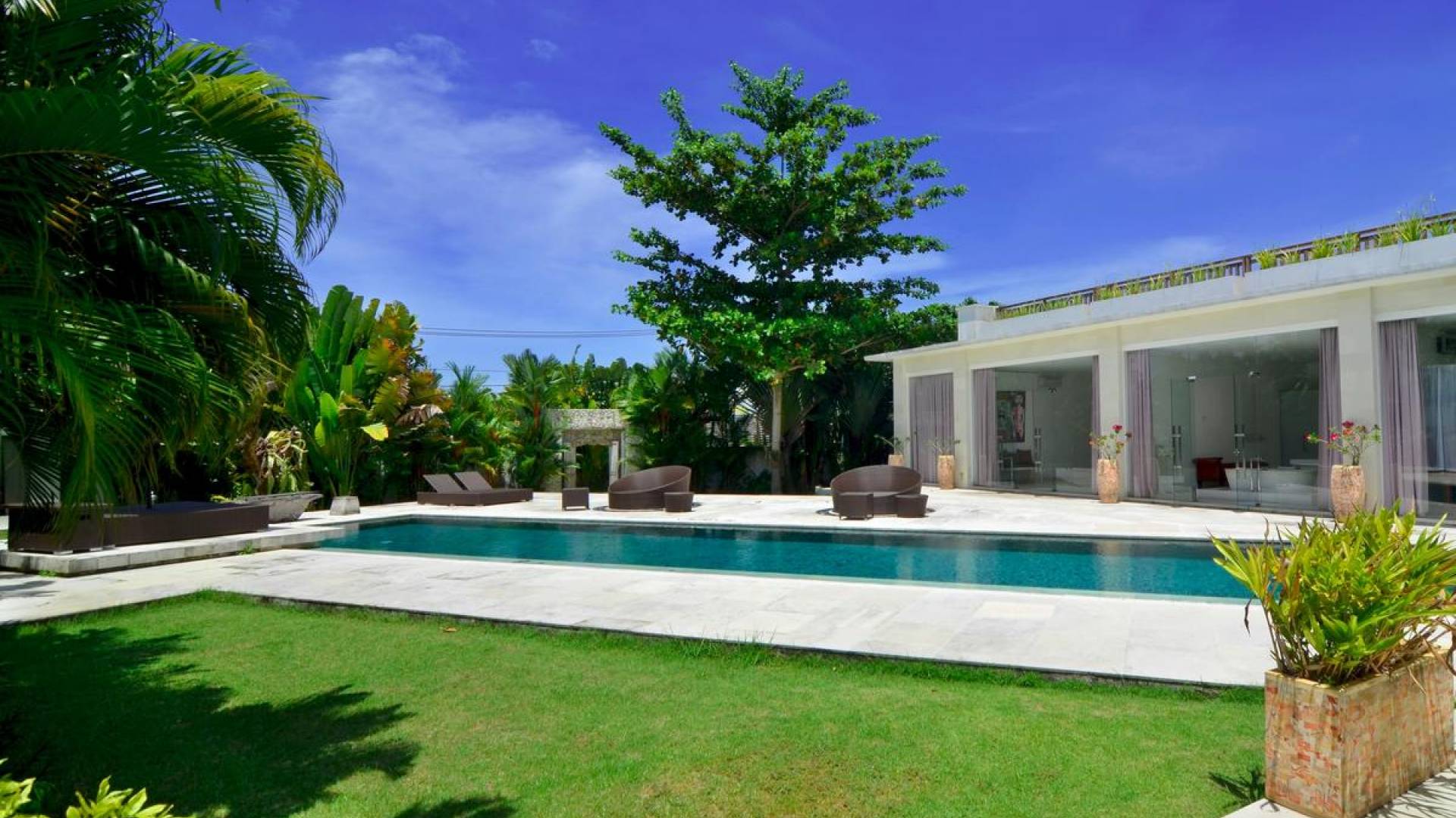 Villa Putih Satu Canggu is a contemporary luxury retreat located in Canggu, an area full of rice paddies, rural life, unspoiled beaches, and tourist spots next to the trendy town of Seminyak. Canggu is a surfing haven still it is peaceful and simply beautiful. The 3-bedroom Villa Putih features a stunning white architectural design, a rooftop terrace, and a huge garden with a large lap pool sparkling in the middle. This villa exudes style and sophistication and it makes a great luxury home on Bali island for families and groups of friends.