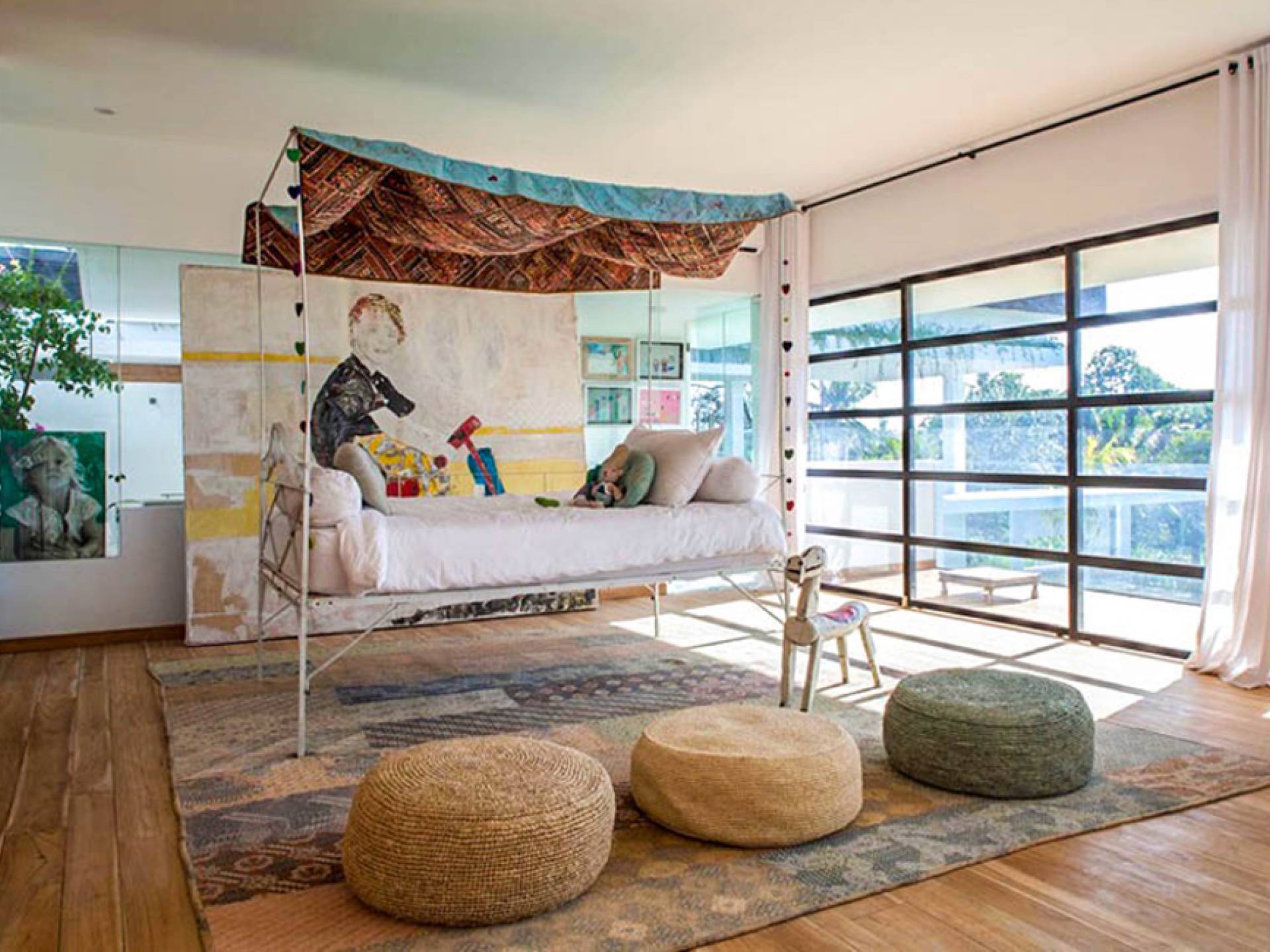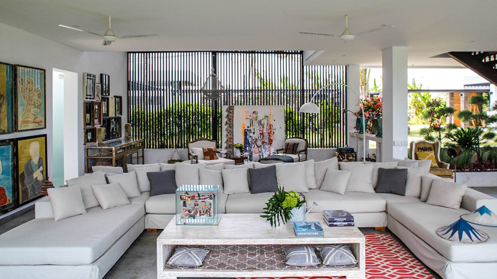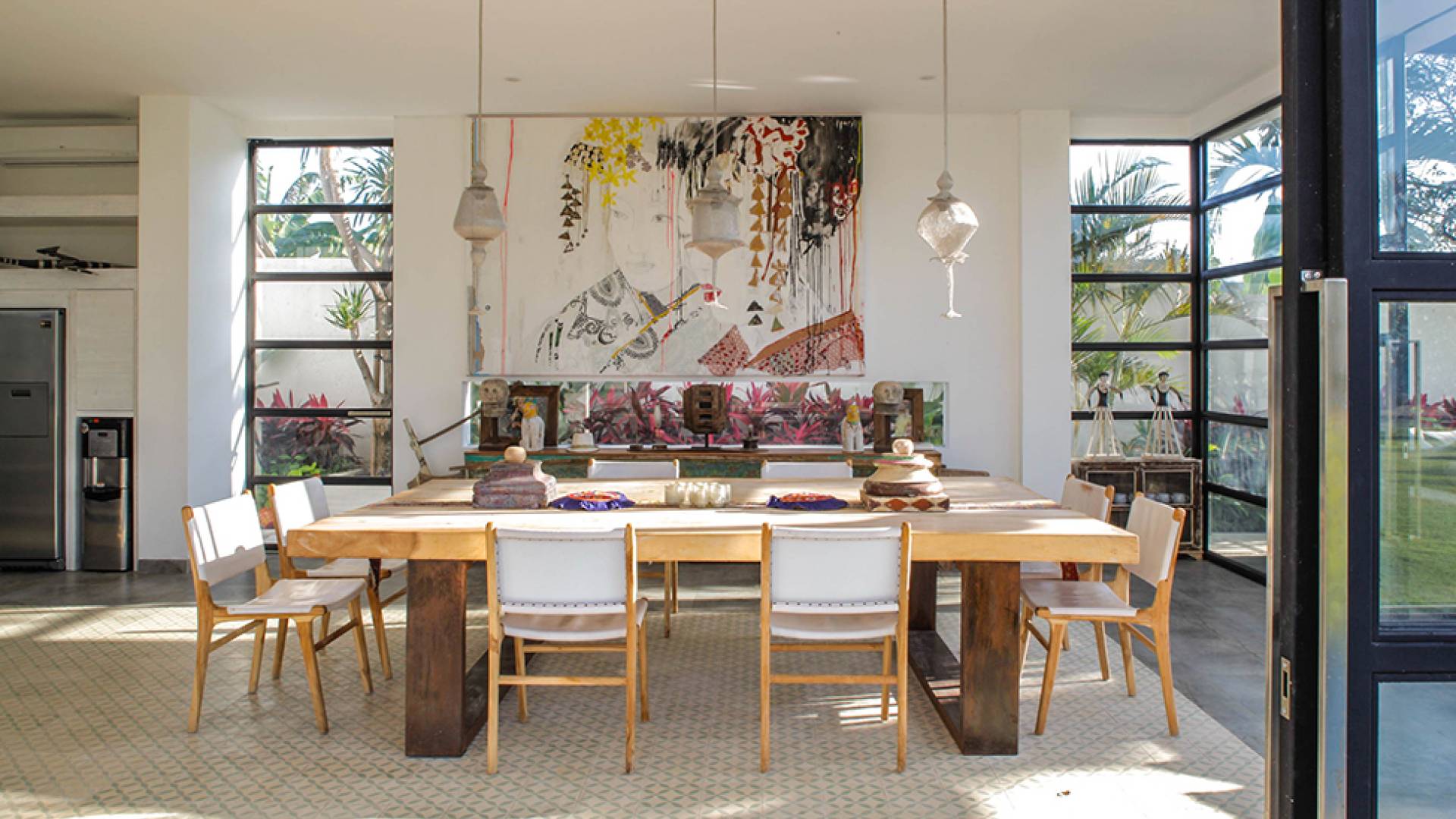 The kitchen is the heart of every home. The villa’s kitchen is encased by large glass sliding doors offering a cool dining area to wake up to before the day’s activities around the pool or in the garden. The air-conditioned indoor sitting room is perfect for an afternoon snooze after a long and lazy lunch in the sun, or a movie in the evening.