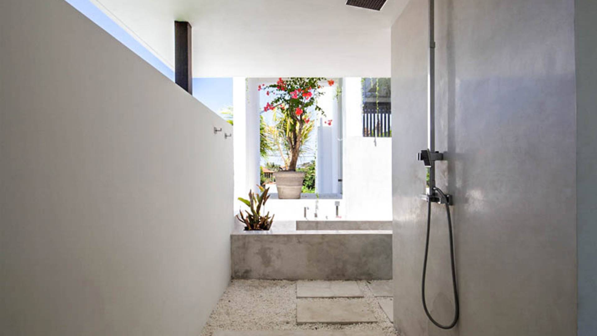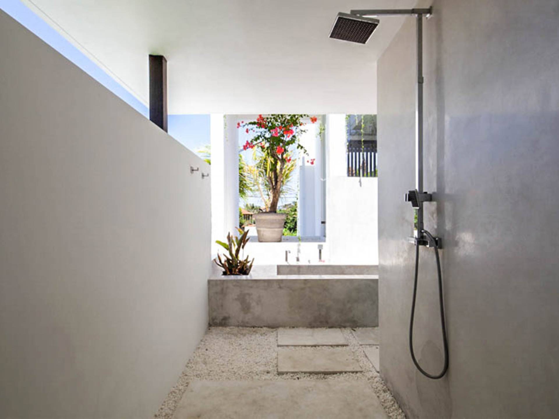 All five generously sized en-suite bedrooms are air-conditioned with open views of the garden. Three are in the main house and two are nestled in the garden giving your guests complete privacy if wanting to retreat in quiet beauty with their own shaded sitting room and bar area. The master bedroom has an expansive terrace for afternoon massages, yoga or sundowner cocktails in peace overlooking the T-shaped swimming pool and rice fields ahead. All bedrooms have king-size beds except one which has the possibility of converting into four large single beds upon request. All bathrooms have a bath and shower with pretty tiling and flourishing Bougainvillea amongst other tropical plants and trees for a touch of romance.