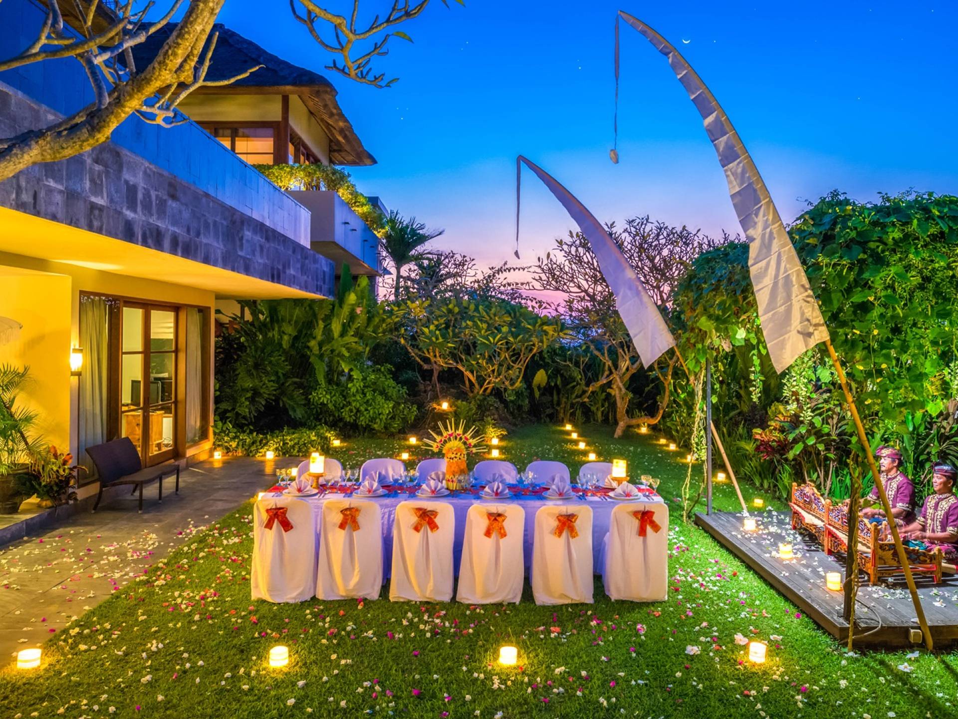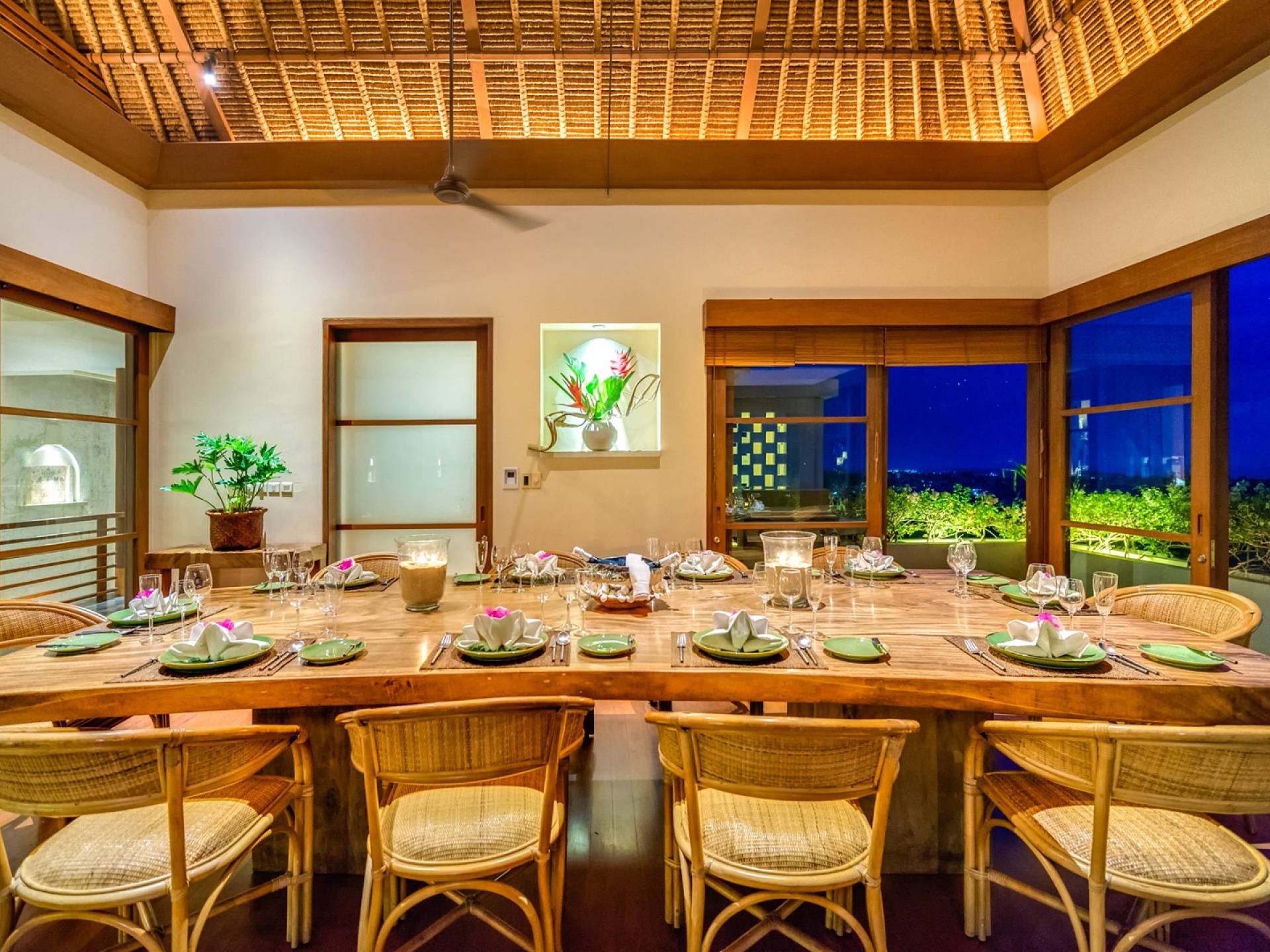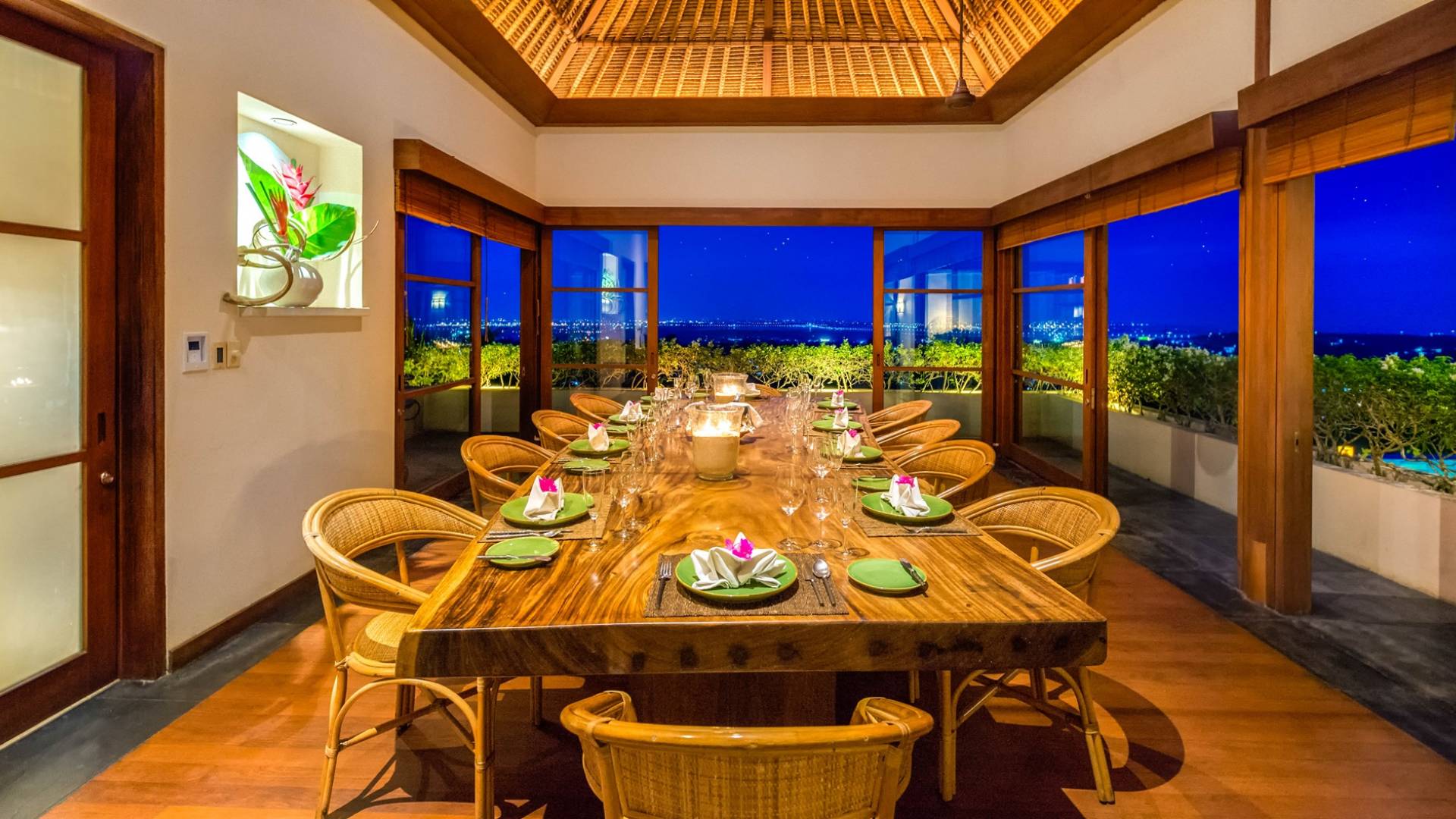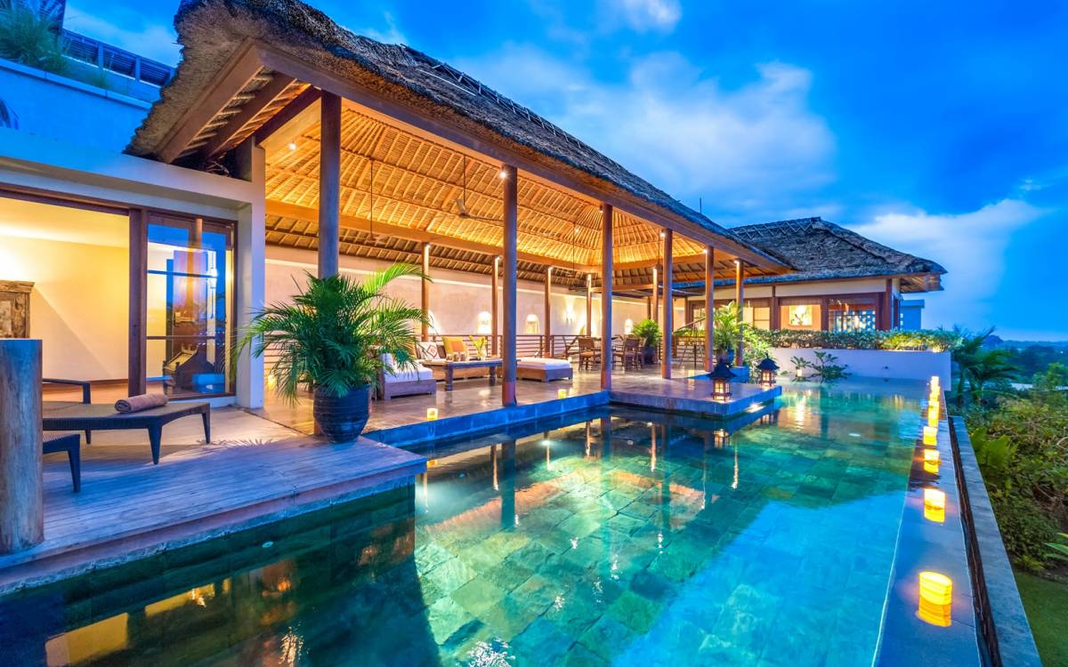 Daily offerings are made by the staff and every 210 days, guests are invited to join in the Odelan ceremony in the villa. Hidden away in the hills of Jimbaran, the stunning boutique property boasts a number of luxurious in-house facilities for guests of all ages. From a Yoga Pavilion for private or group sessions to an in-house spa and gym for those wanting to detox, a children’s play area, and a media room furnished with a library of books and magazines. The experienced team of 14 dedicated staff is on hand to cater to all guest needs – from hosting exquisite sunset feasts and lessons on the art of Canang Basket or to making guided trips to Bali’s hidden gems.