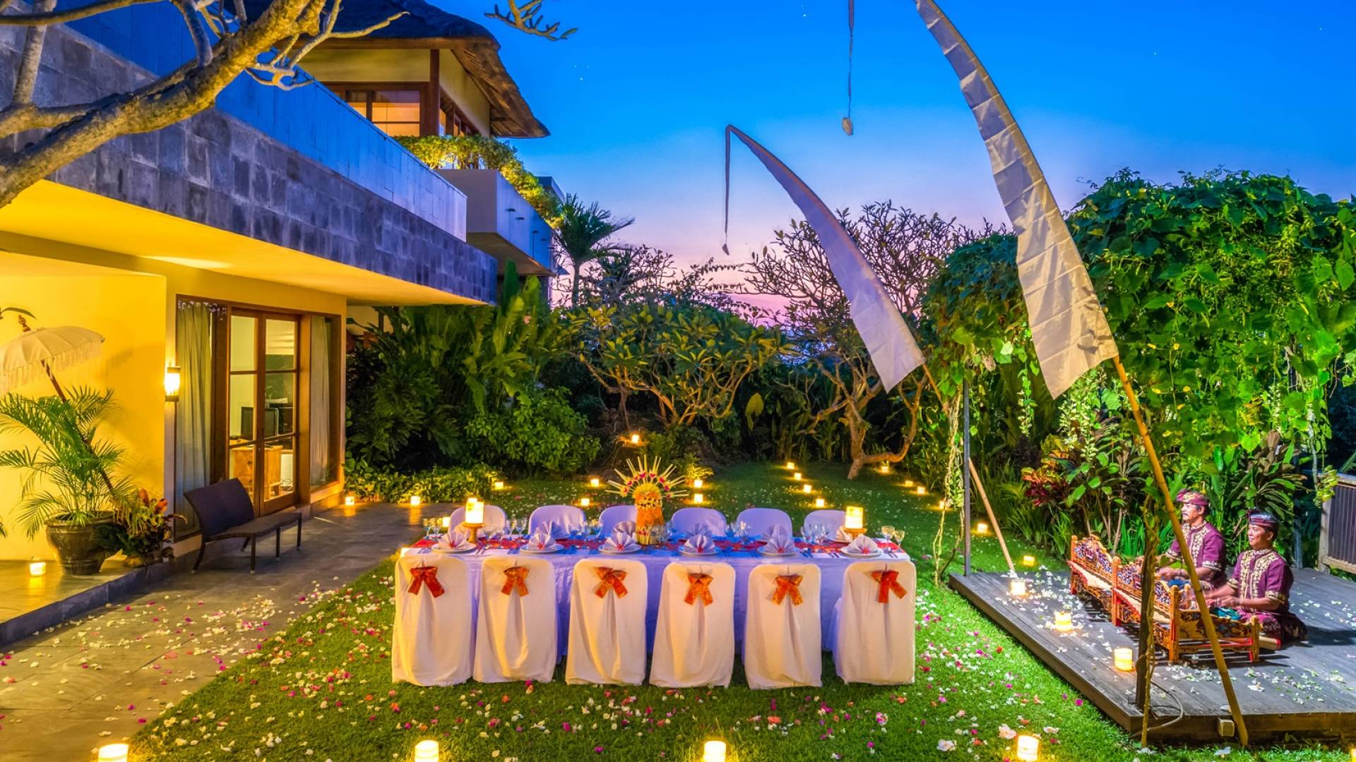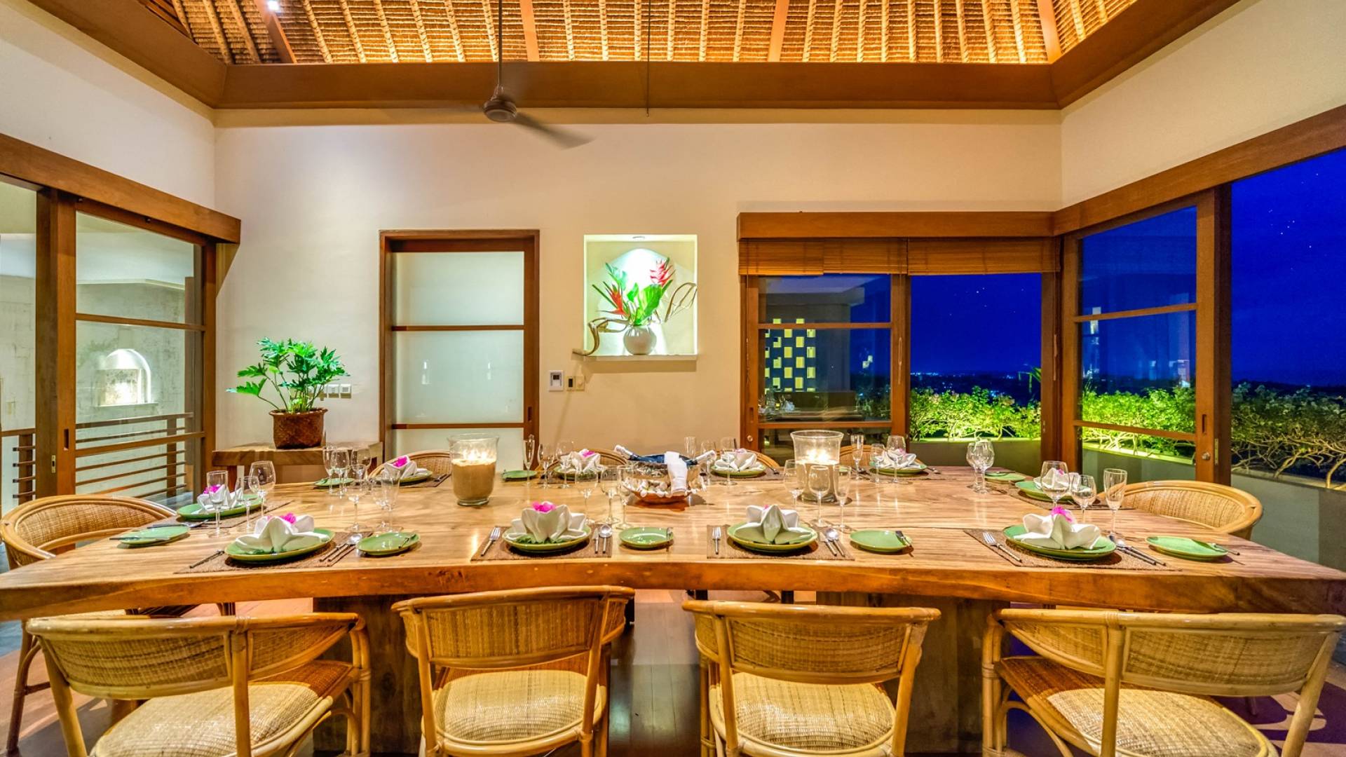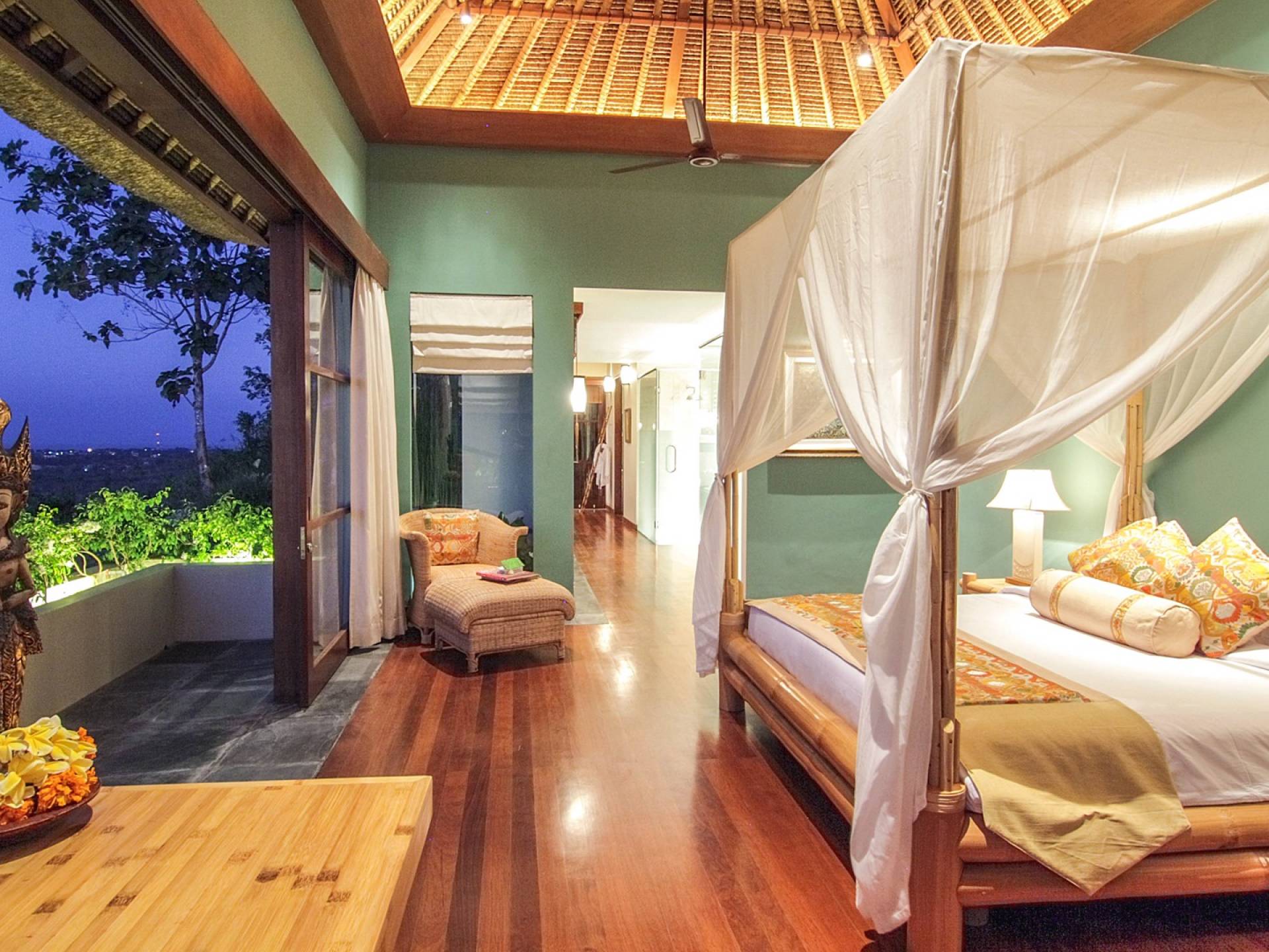 Daily offerings are made by the staff and every 210 days, guests are invited to join in the Odelan ceremony in the villa. Hidden away in the hills of Jimbaran, the stunning boutique property boasts a number of luxurious in-house facilities for guests of all ages. From a Yoga Pavilion for private or group sessions to an in-house spa and gym for those wanting to detox, a children’s play area, and a media room furnished with a library of books and magazines. The experienced team of 14 dedicated staff is on hand to cater to all guest needs – from hosting exquisite sunset feasts and lessons on the art of Canang Basket or to making guided trips to Bali’s hidden gems.
