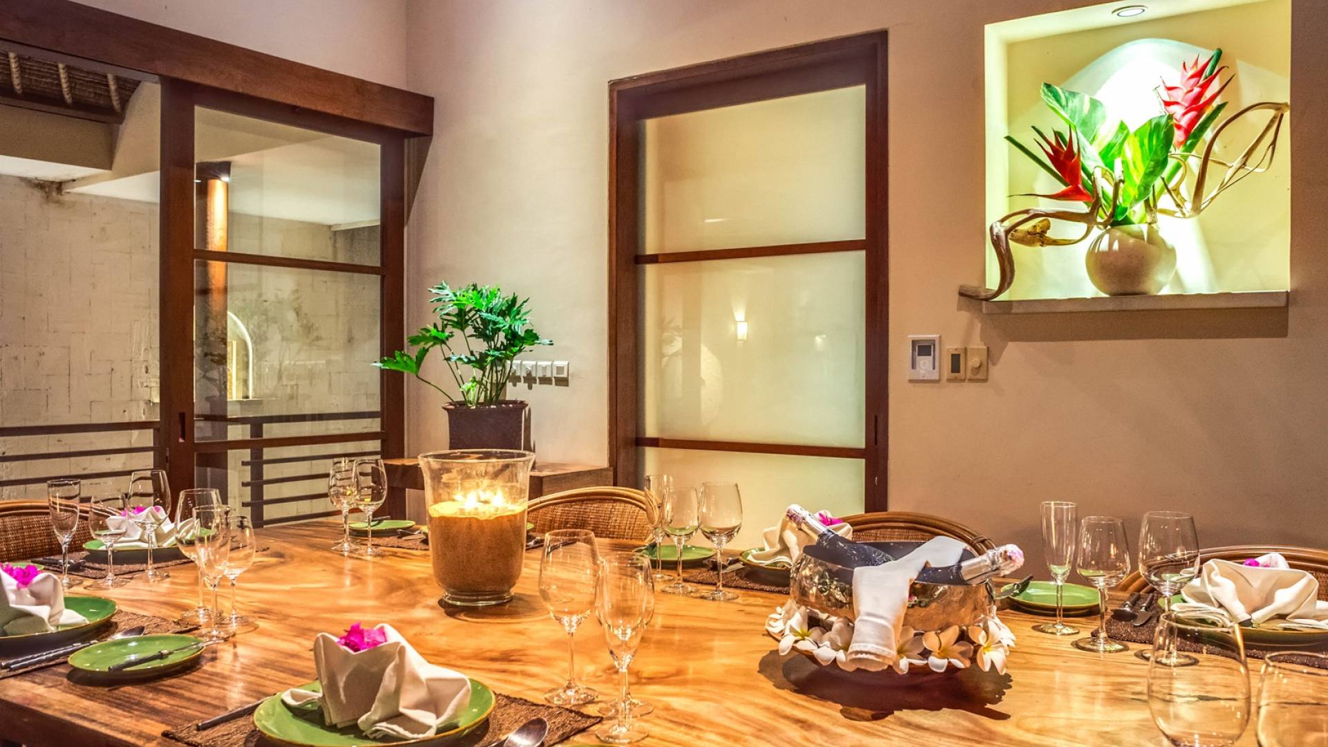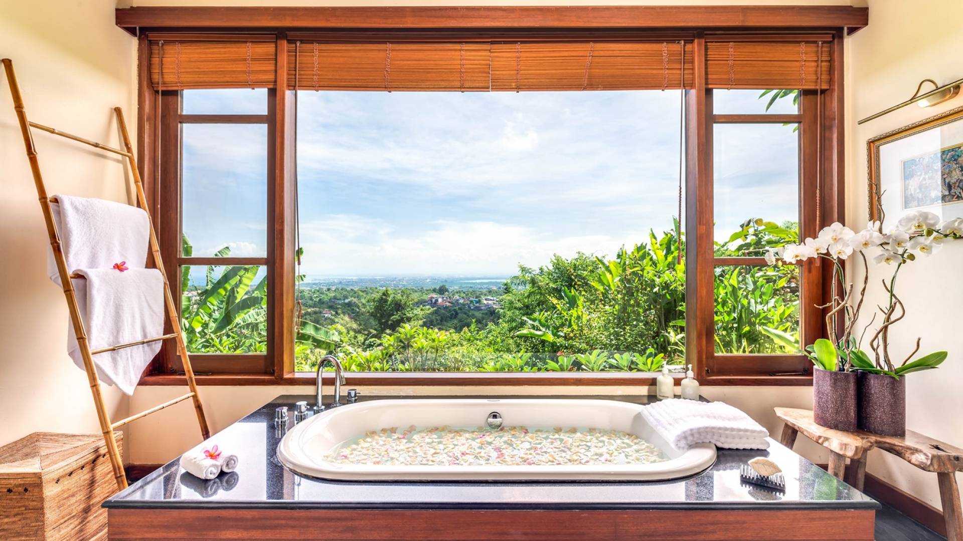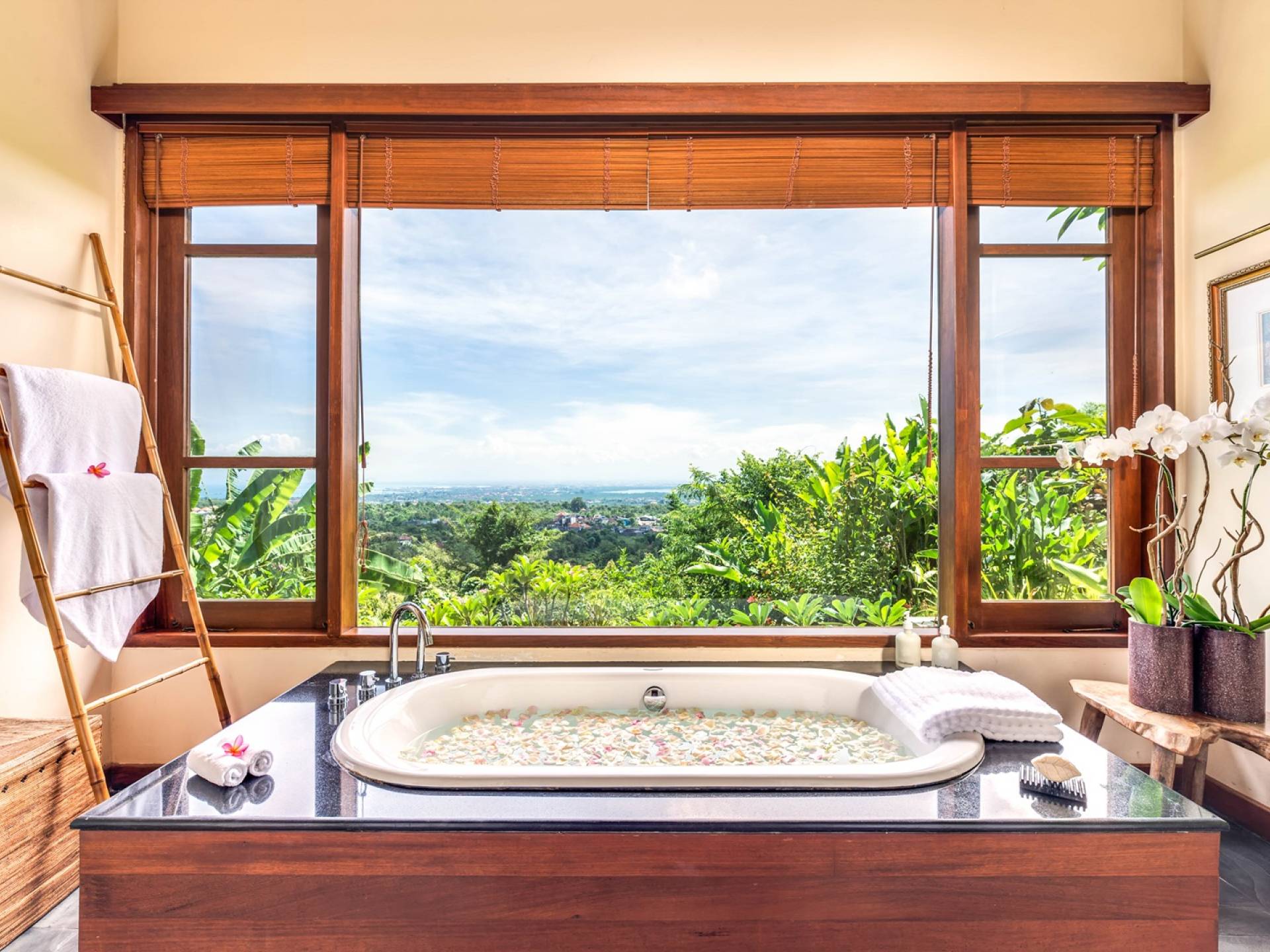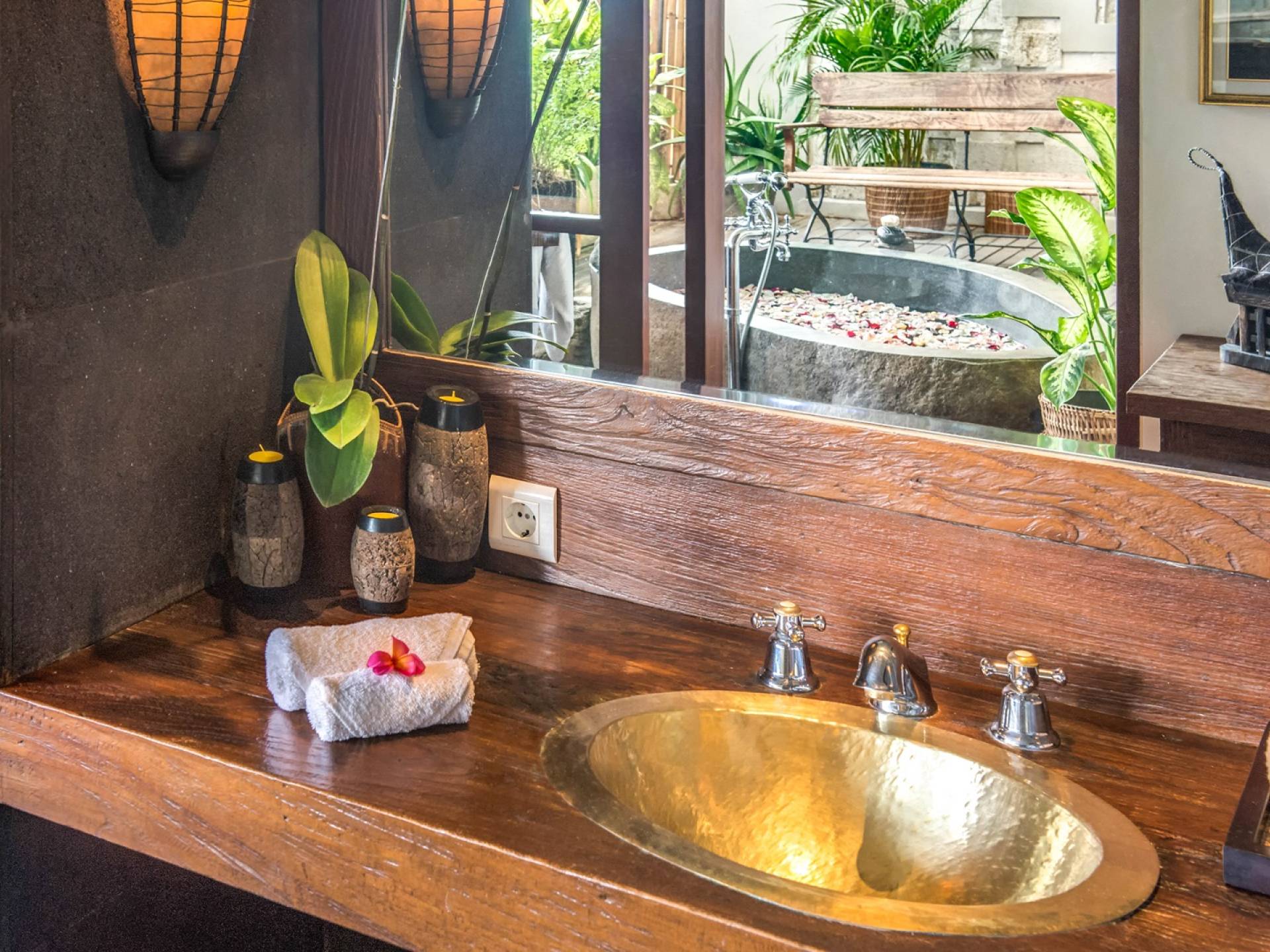 Daily offerings are made by the staff and every 210 days, guests are invited to join in the Odelan ceremony in the villa. Hidden away in the hills of Jimbaran, the stunning boutique property boasts a number of luxurious in-house facilities for guests of all ages. From a Yoga Pavilion for private or group sessions to an in-house spa and gym for those wanting to detox, a children’s play area, and a media room furnished with a library of books and magazines. The experienced team of 14 dedicated staff is on hand to cater to all guest needs – from hosting exquisite sunset feasts and lessons on the art of Canang Basket or to making guided trips to Bali’s hidden gems.