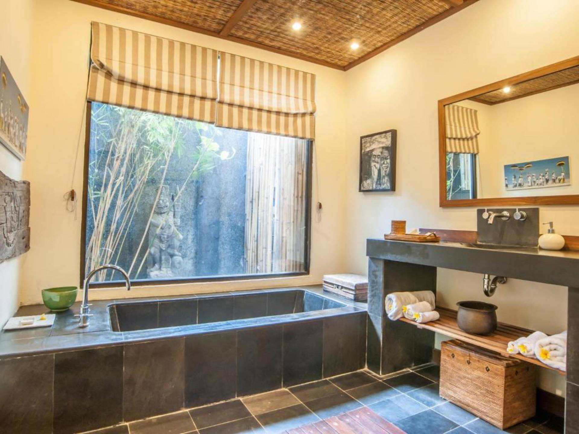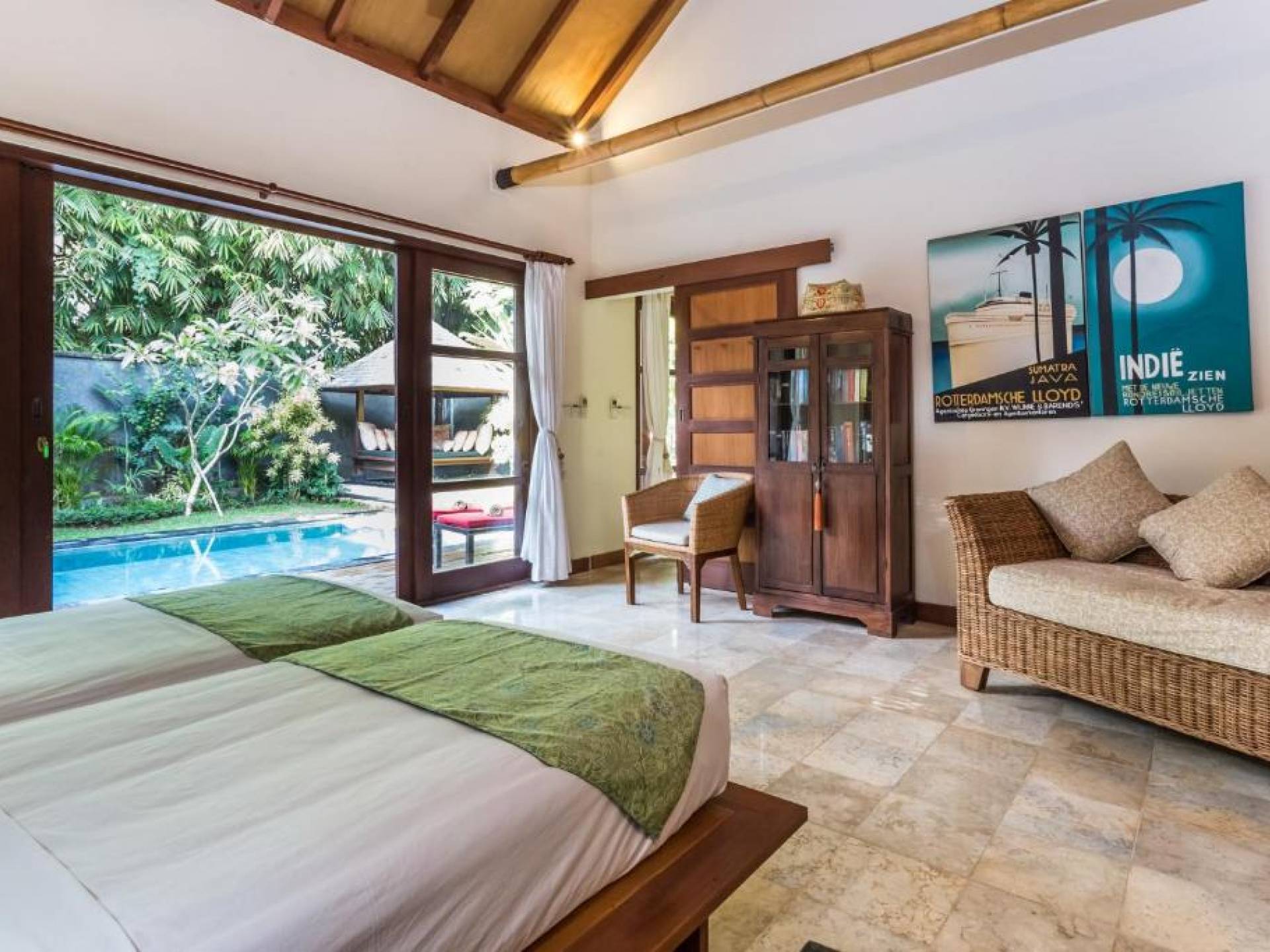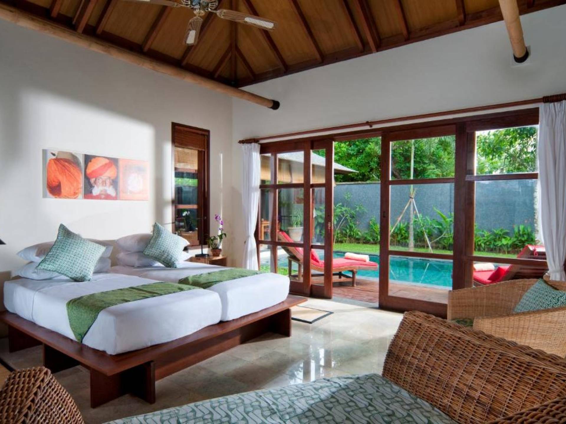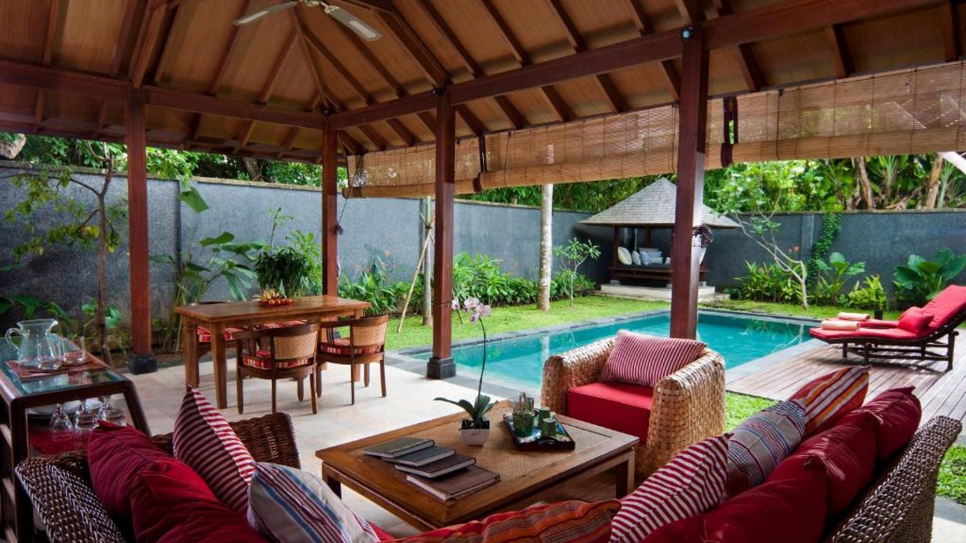 The luxury villas were designed by using the simplicity of Balinese architecture and the use of local materials such as bamboo, old teak wood, and white Palimanan stone, together with ironwood shingle roofs. All of this combined with modern facilities; such as air-conditioning, open living room, well-equipped kitchen, etc. The guests can relax in the private courtyard while sunbathing by the swimming pool deck or simply seated on the sofa enjoying the private lush garden of the villa.