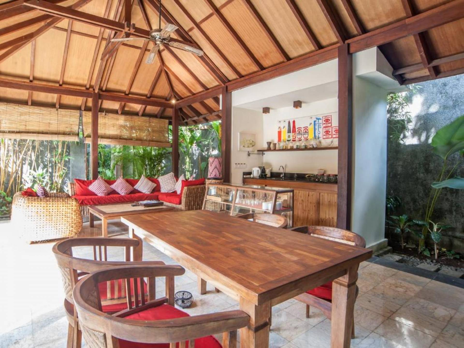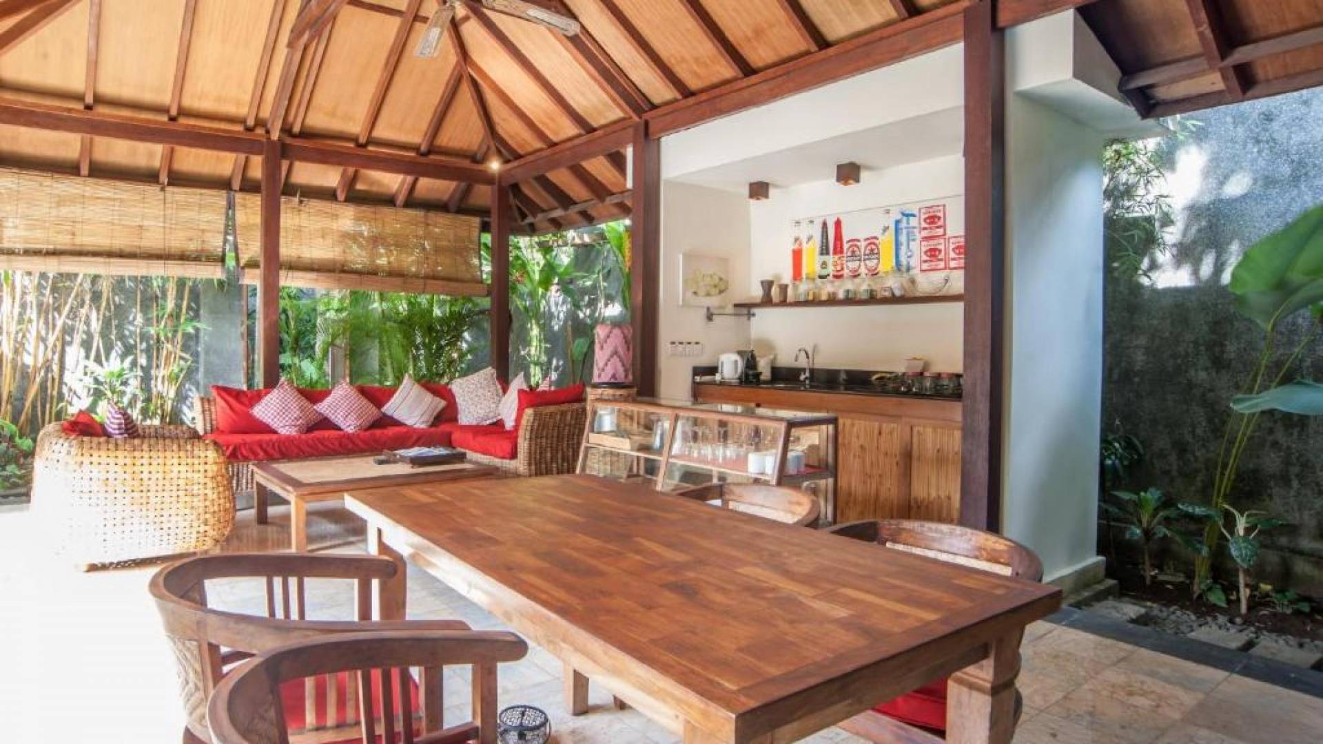 The stunning Villa Godok is rested on 100 square meters of an enclosed courtyard, with centenary trees and a tropical garden. The big open living area is plenty of space, with rattan sofas and a dining table. A fully equipped kitchen with all necessary utensils and tableware is at your disposal, a fridge, Nespresso coffee machine, and potable water dispense complement the setting.