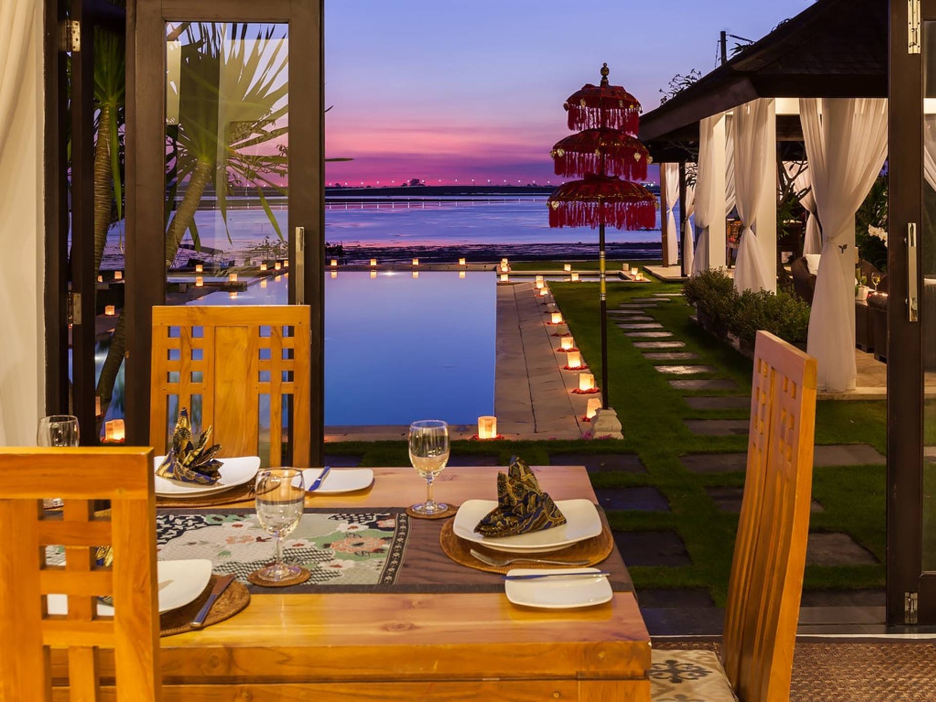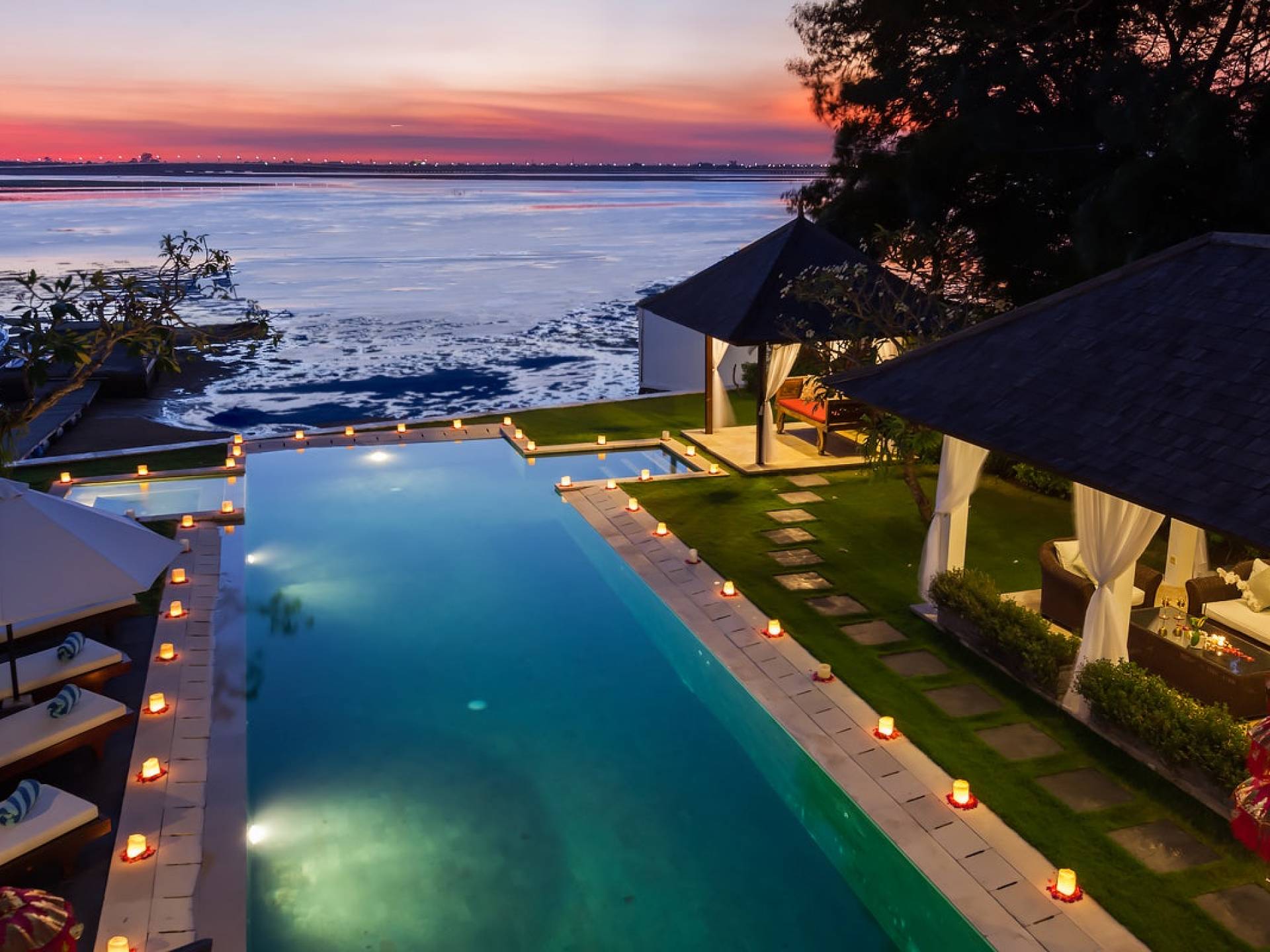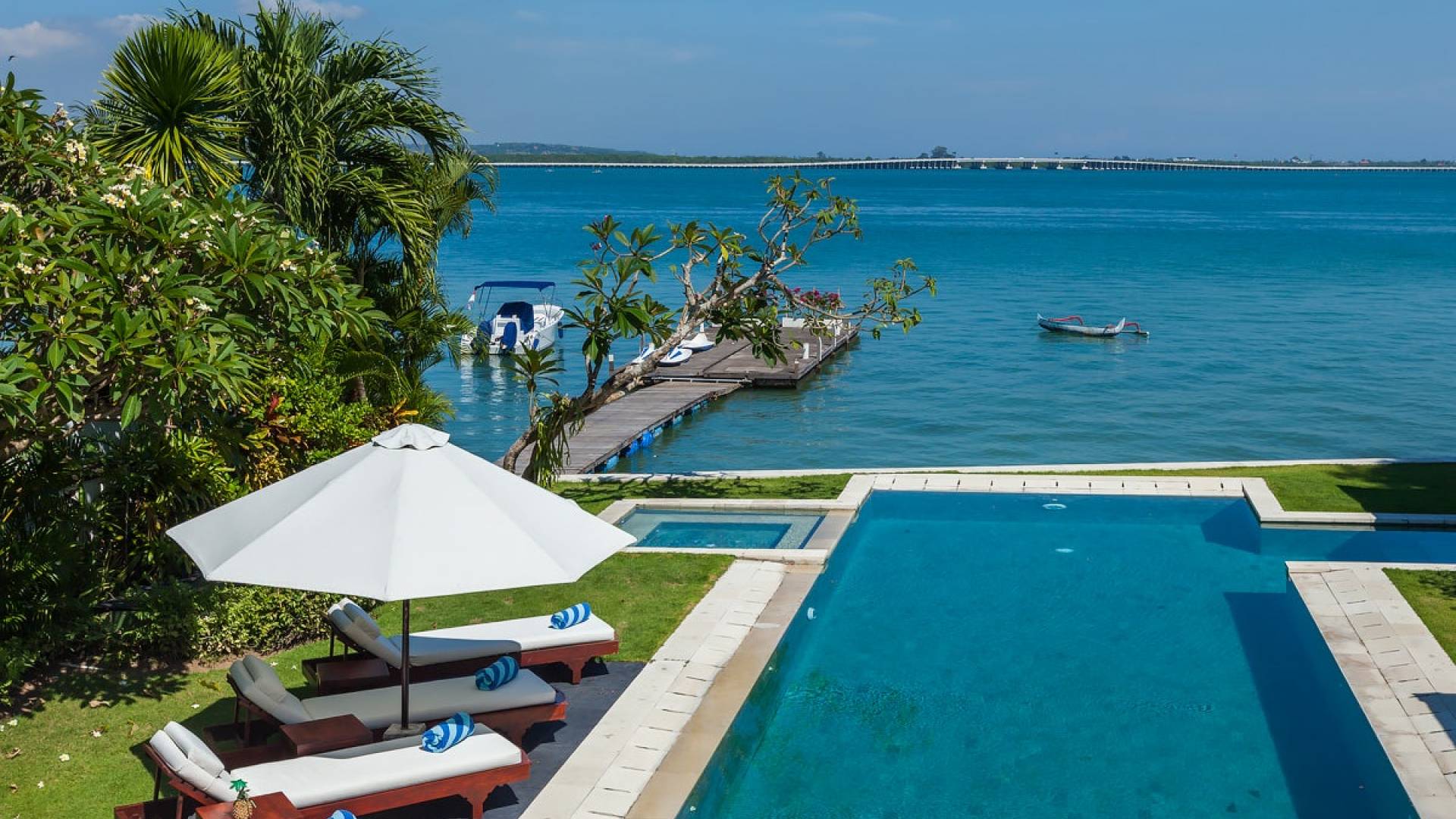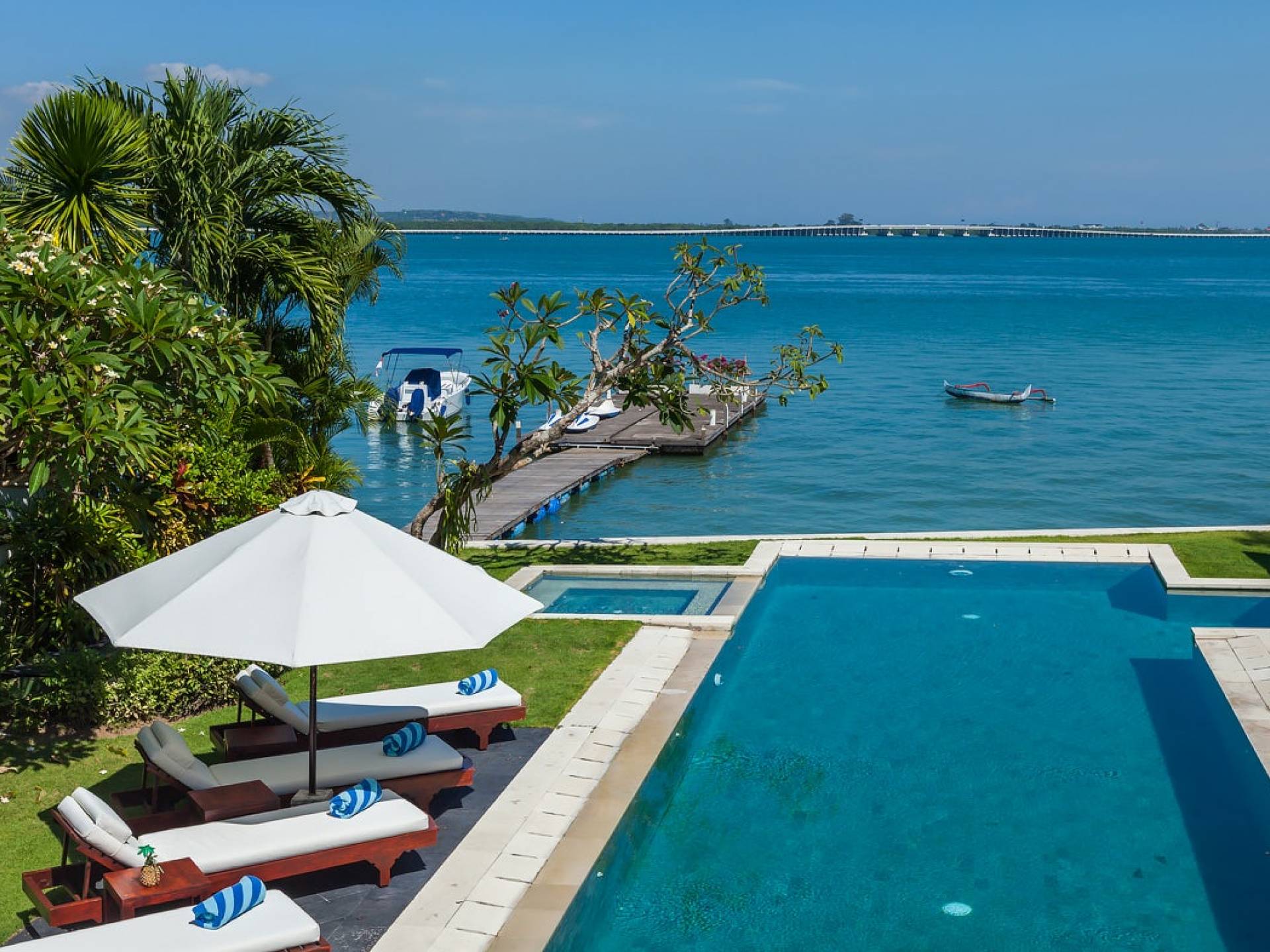 The guests of all 3 of these Bali beachfront villas have access to the private pier and the villa's very own speedboat ready to take them on a tour of the nearby beaches. There are also kayaks to explore the nearby mangroves, bicycles for trips around Nusa Dua and the historical village of Tanjung Benoa, as well as a water sports center just a short walk away. When the tide is high, a special banquet can be set for guests right on the pier in candlelight under the beautiful traditional Balinese umbrellas.
