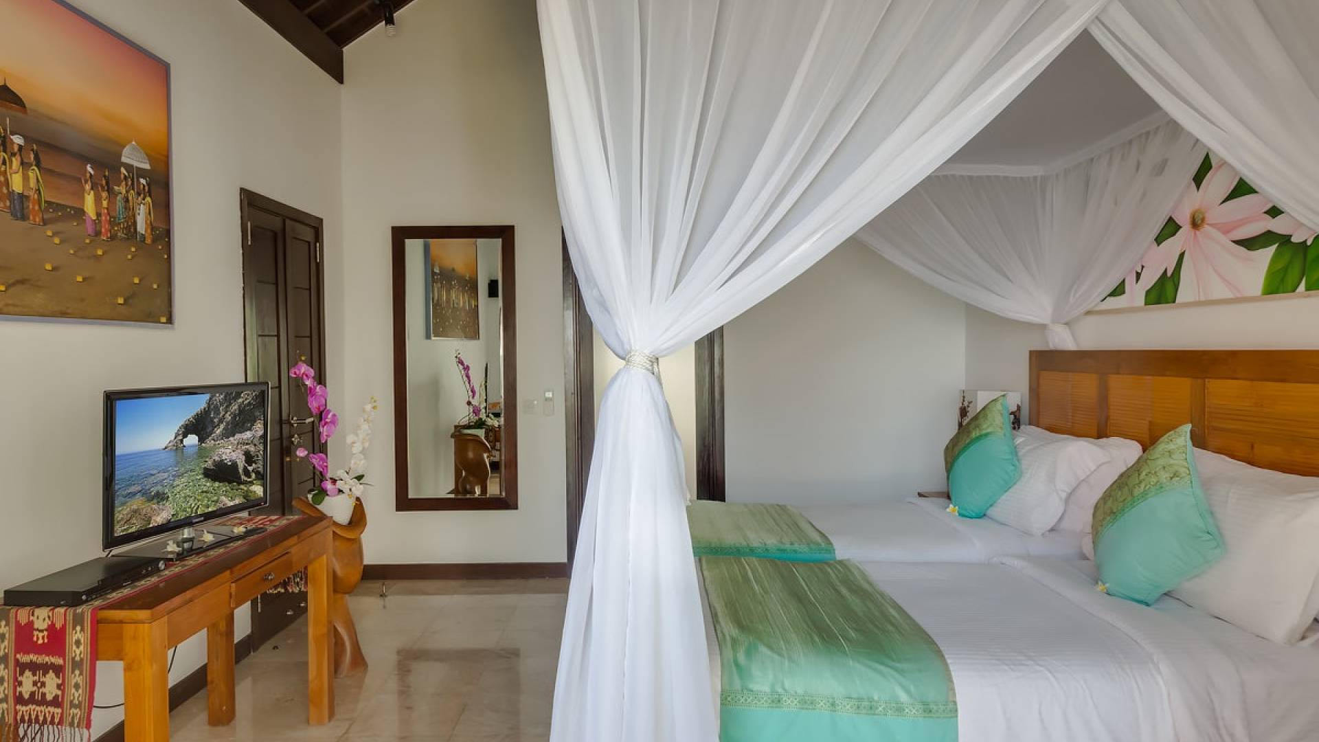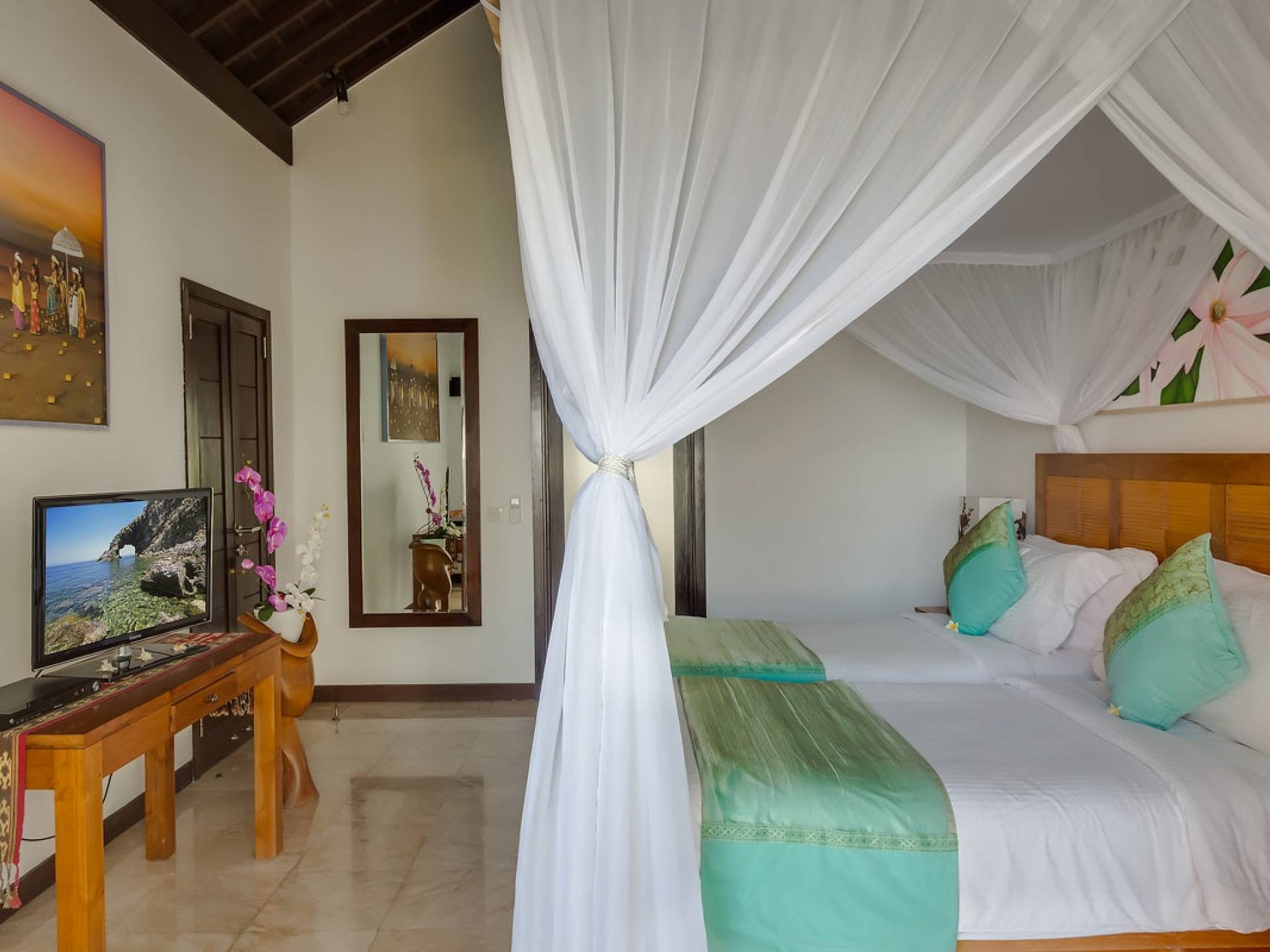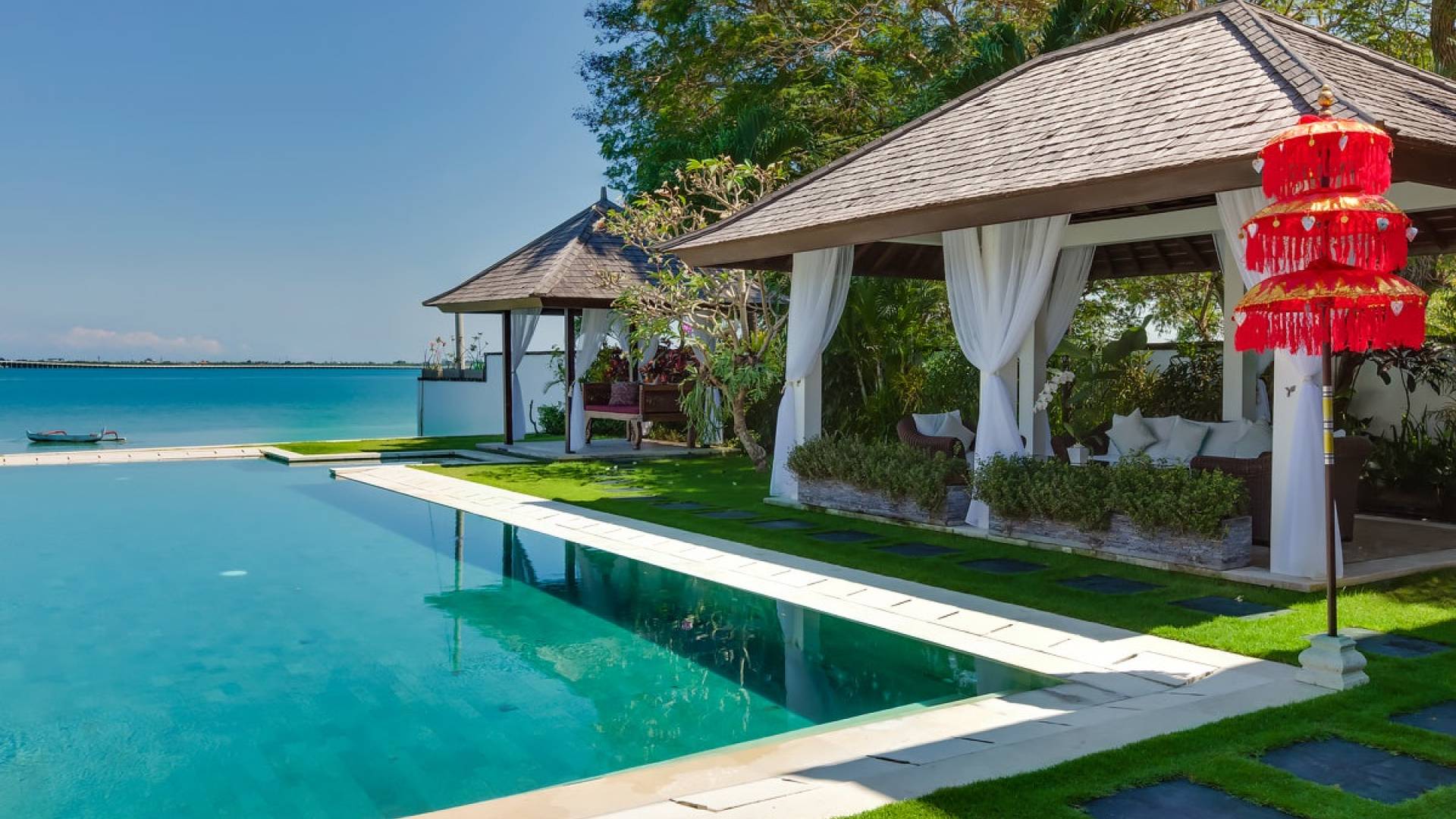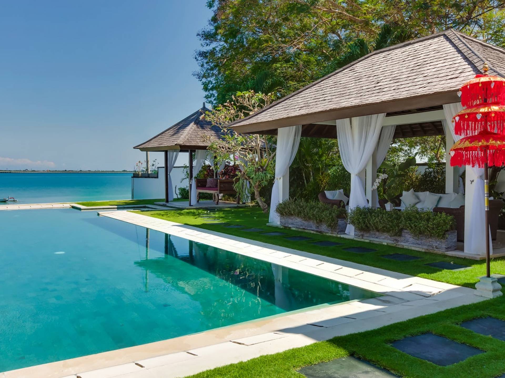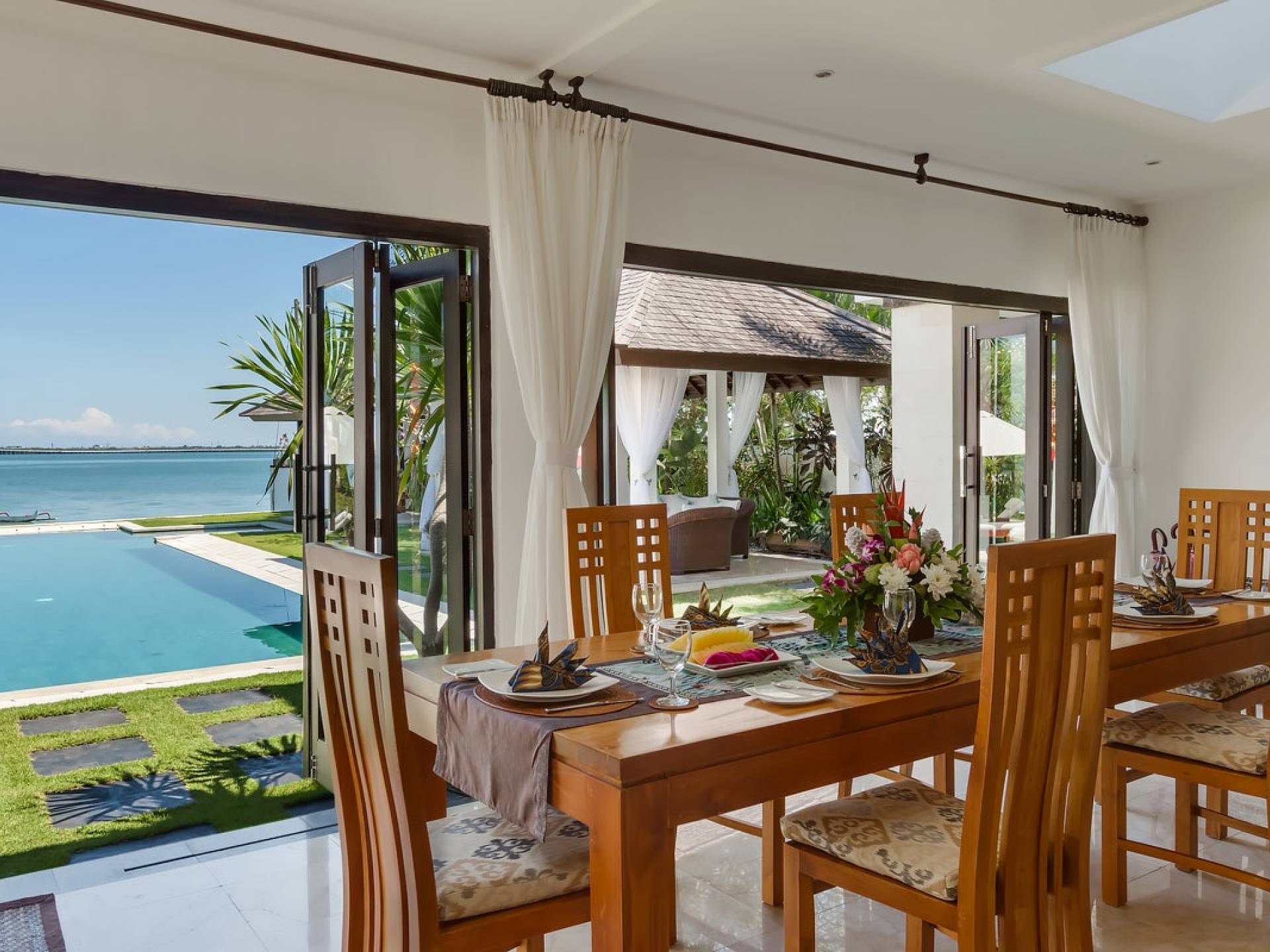 The guests of all 3 of these Bali beachfront villas have access to the private pier and the villa's very own speedboat ready to take them on a tour of the nearby beaches. There are also kayaks to explore the nearby mangroves, bicycles for trips around Nusa Dua and the historical village of Tanjung Benoa, as well as a water sports center just a short walk away. When the tide is high, a special banquet can be set for guests right on the pier in candlelight under the beautiful traditional Balinese umbrellas.