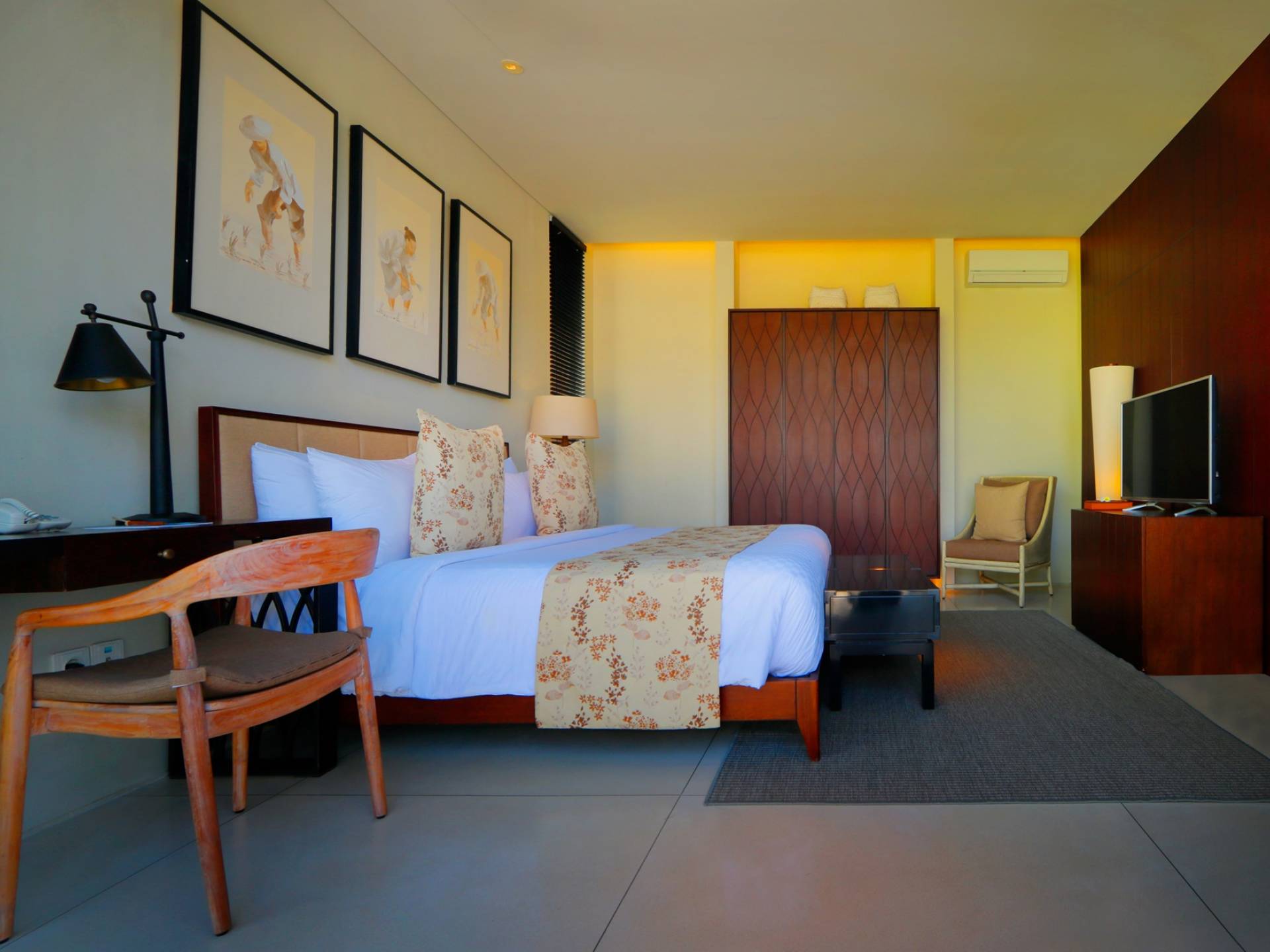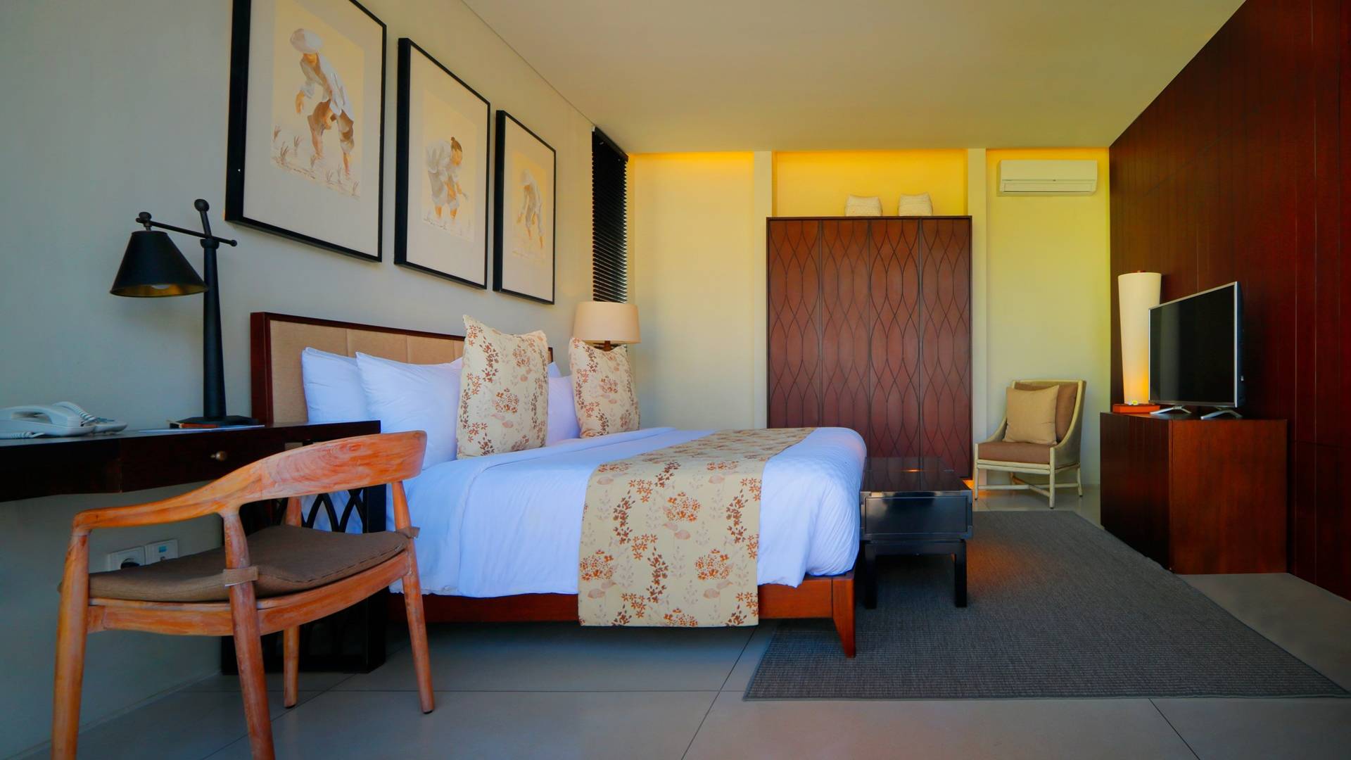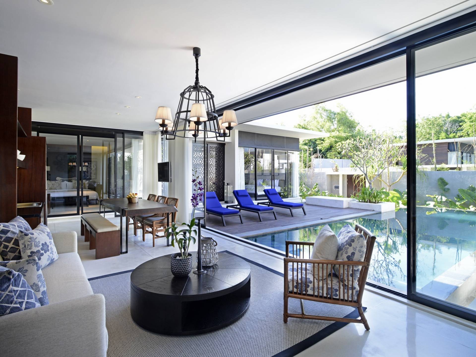 Tucked deep amongst five-star resorts, the villa suite at Vinila Nusa Dua is an exquisite pool villa living up to the location’s reputation, offering the finest tropical holiday experience of its own. With an irresistible outdoor pool as its centerpiece, this relaxed style suite sleeps 6 in plush comfort. The expansive layout of two separate structures on an L-shape consists of a large living and dining room on one side with three lavish bedrooms that make up the other side.