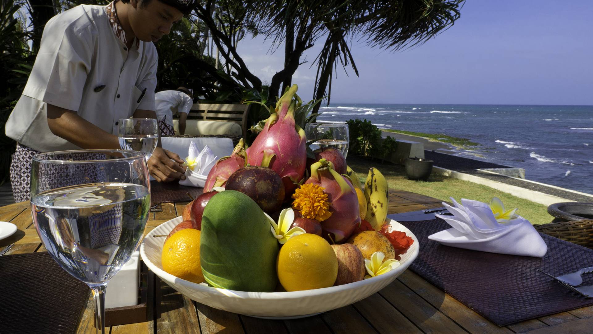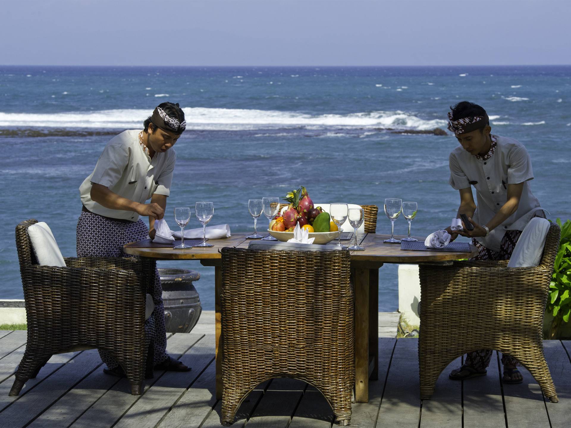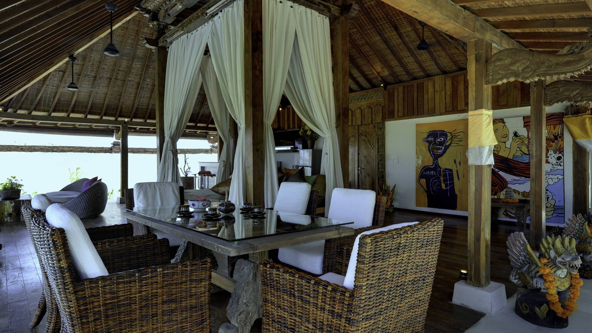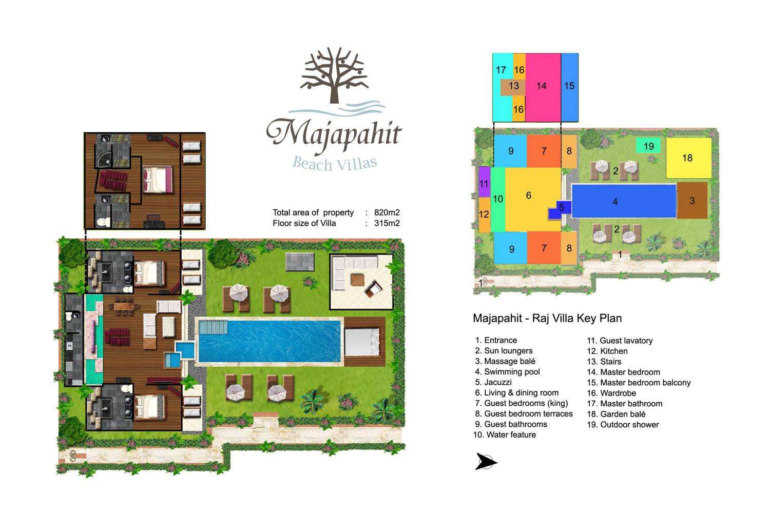Majapahit Beach Villas Sanur consists of three individual luxurious villas and is located at Pabean Beach down a narrow lane off the Klungkung Bypass, which runs along the east coast and is also known as the Sunrise Road. Bounded by the River Wos, rice fields, tobacco plantations, papaya, banana, and coconut groves, the area is blessed with spectacular views extending across the ocean towards the beaches of Sanur and Nusa Dua, the islands of Lembongan, Ceningan, and Penida, and the mountains of East Bali.
