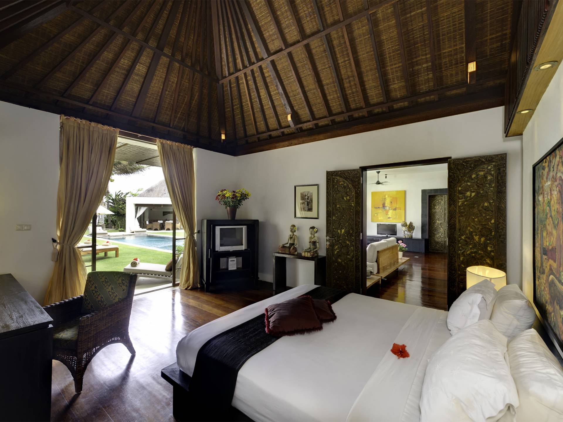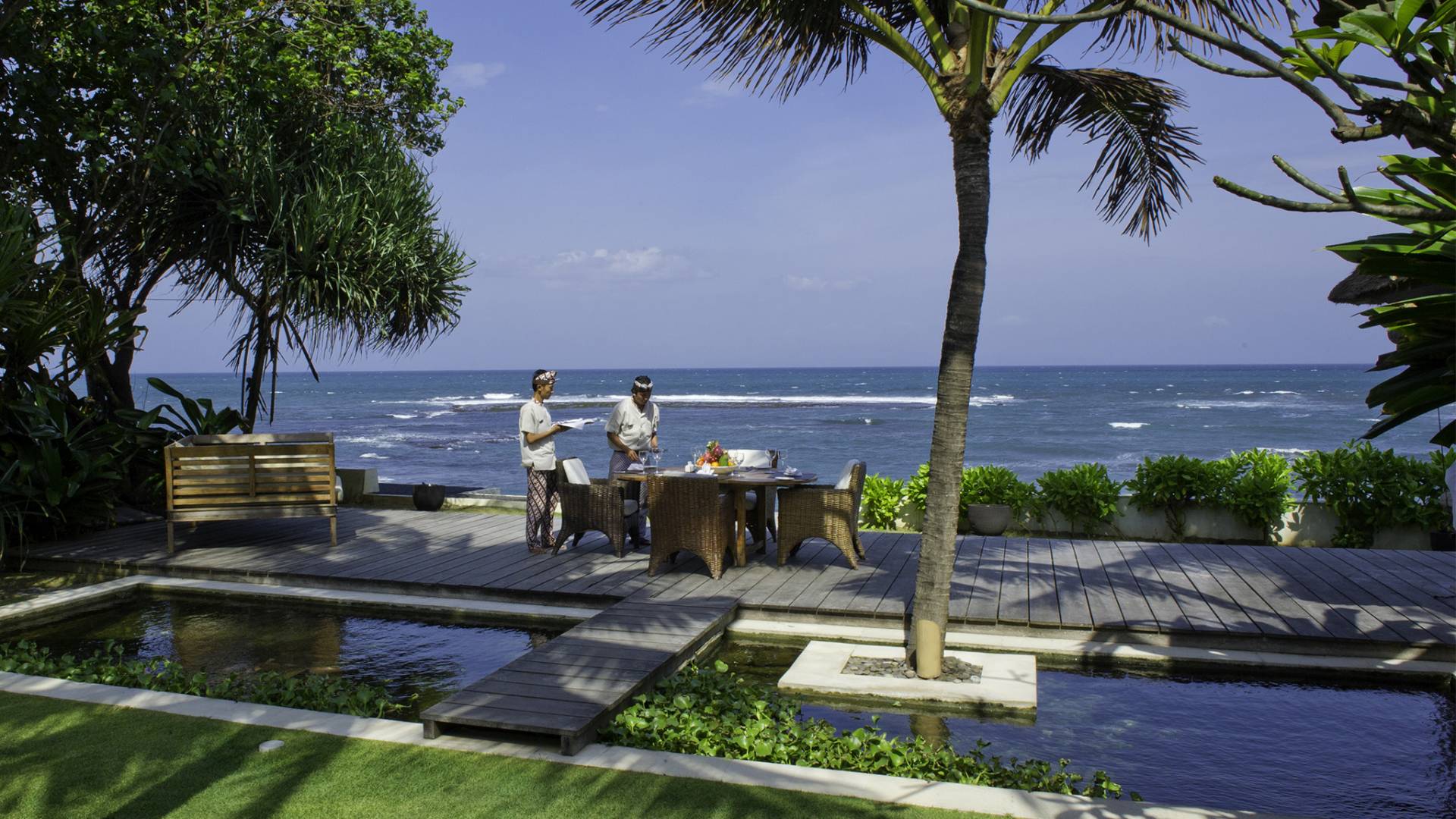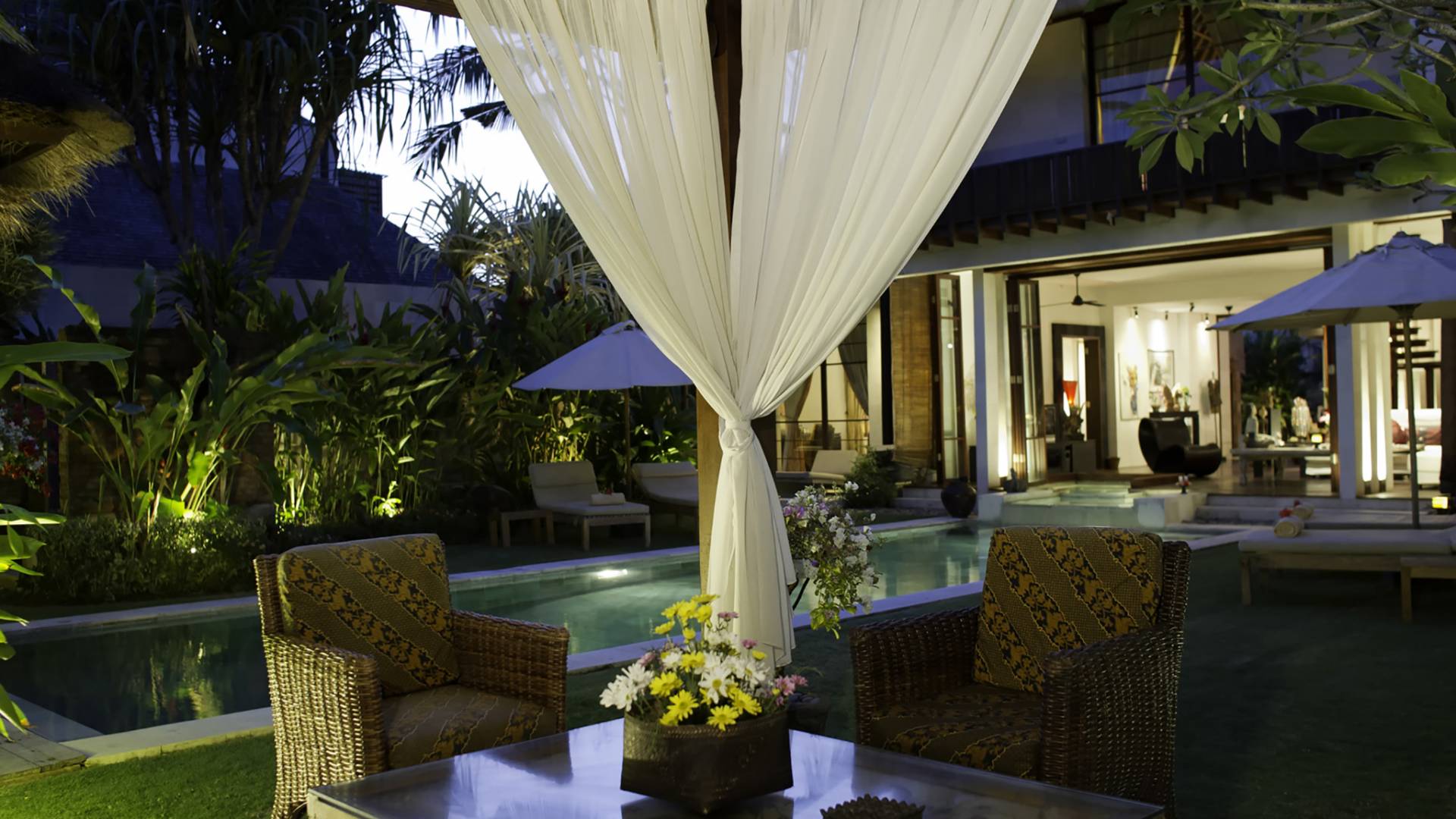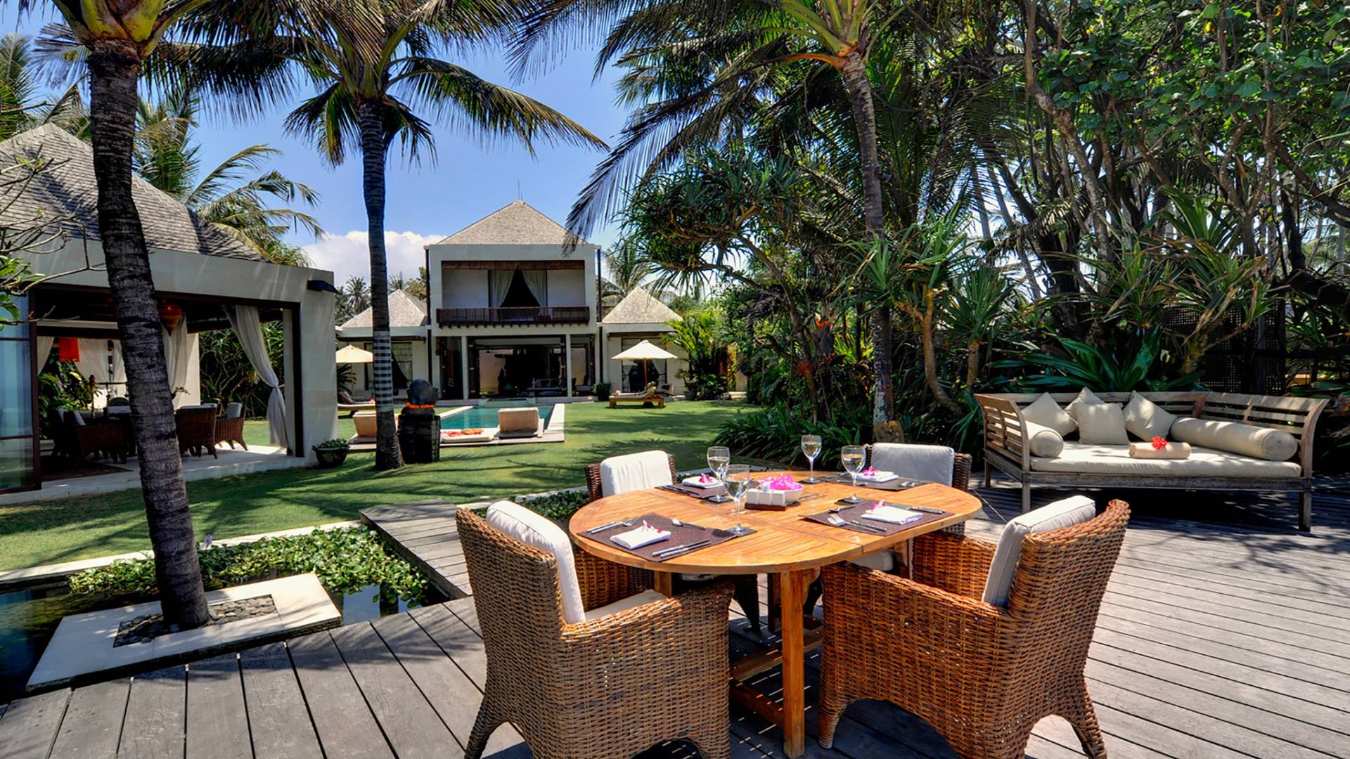 The four-bedroom Villa Maya is situated absolutely beachfront on the glistening black-sands of Pabean Beach on Bali’s southeast coast. This beautiful, eclectic villa presents indoor and outdoor living in a three-bedroom main house and a one-bedroom honeymoon villa, linked by a door in the garden wall, and each with its own private garden, pool, and seaside deck. Ideal for brides and grooms and their friends, Villa Maya specializes in beachfront weddings for up to 100 guests who can look forward to glorious coastline views and a five-star standard of service within the calm tranquility that is the true essence of Bali.