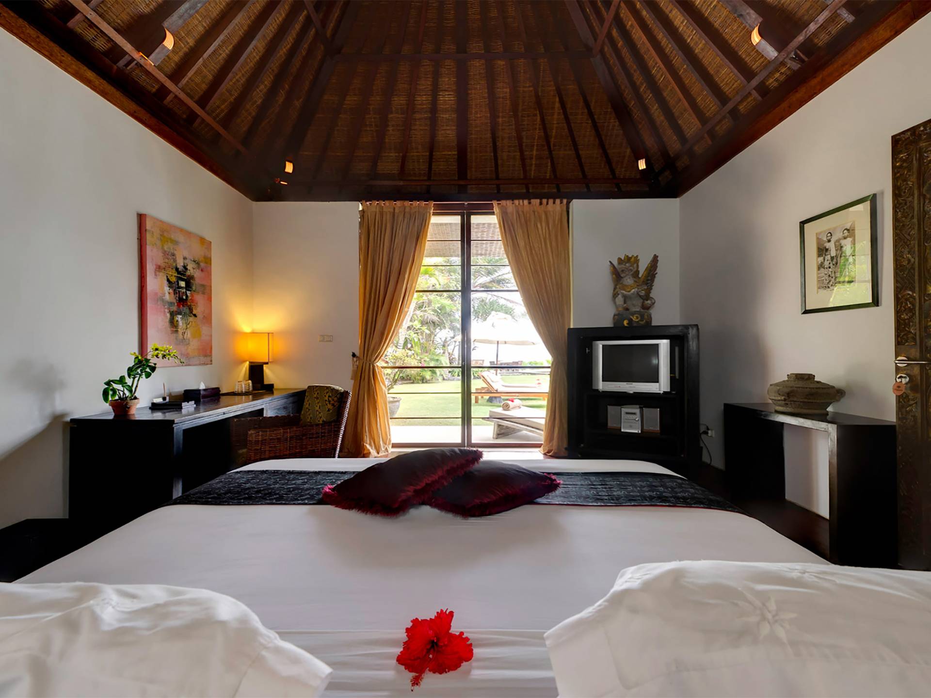 The three-bedroom Villa Nataraja, situated just 30 meters from a glistening black-sand beach near Ketewel on Bali’s south-east coast, presents an indoor and outdoor living, a swimming pool in a private walled garden, and a 13-meter elevated beachfront deck that has been specially allocated for the use of the guests, offering glorious views. The contemporary architecture incorporates local materials and many elements of Balinese-Hindu philosophy, while a mix of modern and antique furnishings means comfort is assured. Guests staying at Villa Nataraja can look forward to five-star service within the calm tranquility that is the true essence of Bali.