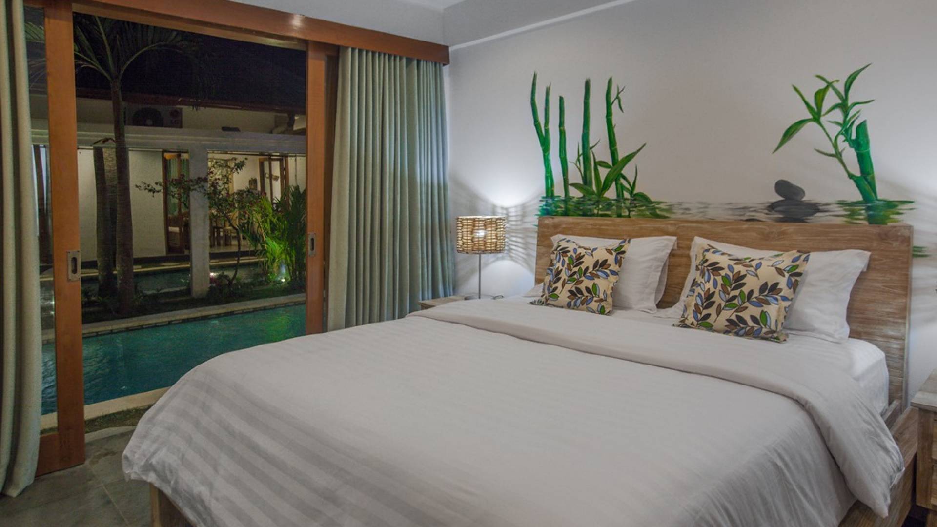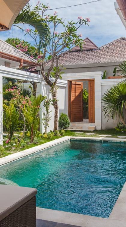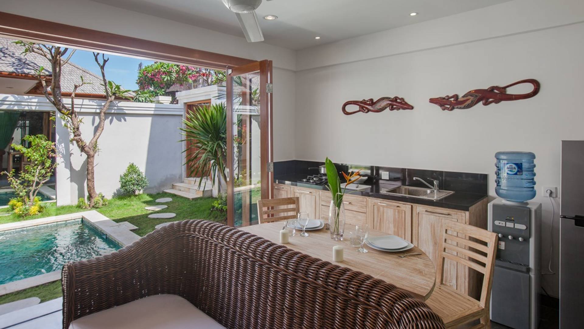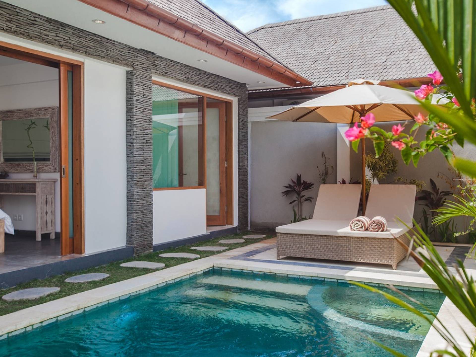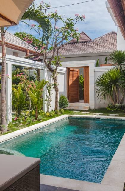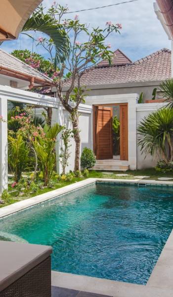 Villa Bamboo Sanur is a romantic one-bedroom villa. It consists of the closable living room and dining area with ceiling fan, located side by side with the bedroom. Both living area and bedroom are facing private garden and swimming pool with mini Jacuzzi.