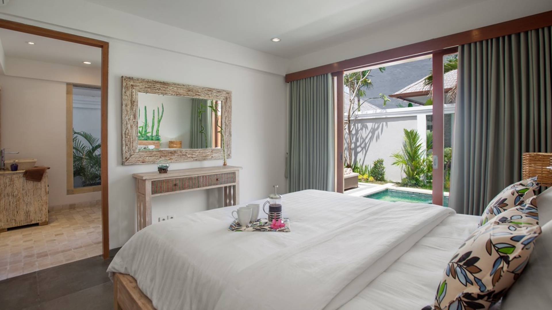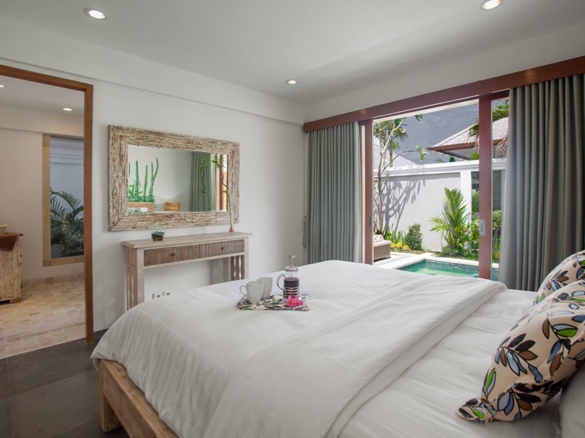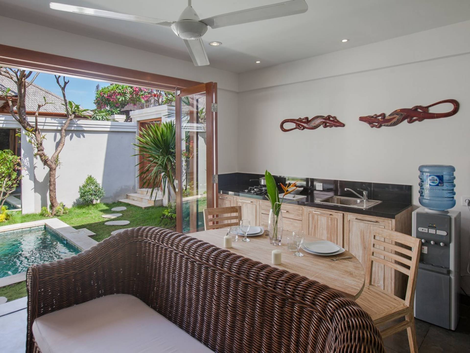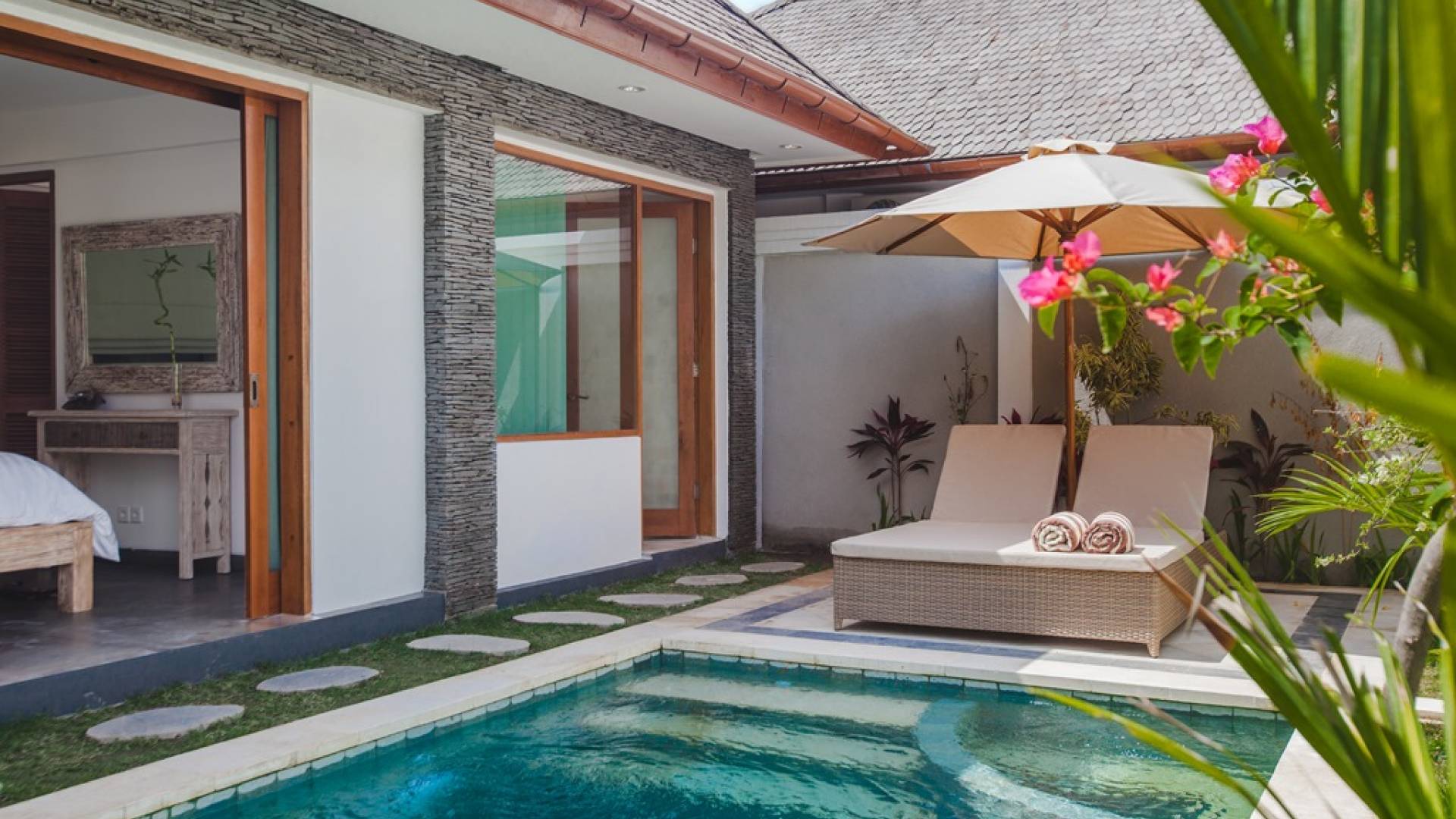 Villa Bamboo Sanur is a romantic one-bedroom villa. It consists of the closable living room and dining area with ceiling fan, located side by side with the bedroom. Both living area and bedroom are facing private garden and swimming pool with mini Jacuzzi.