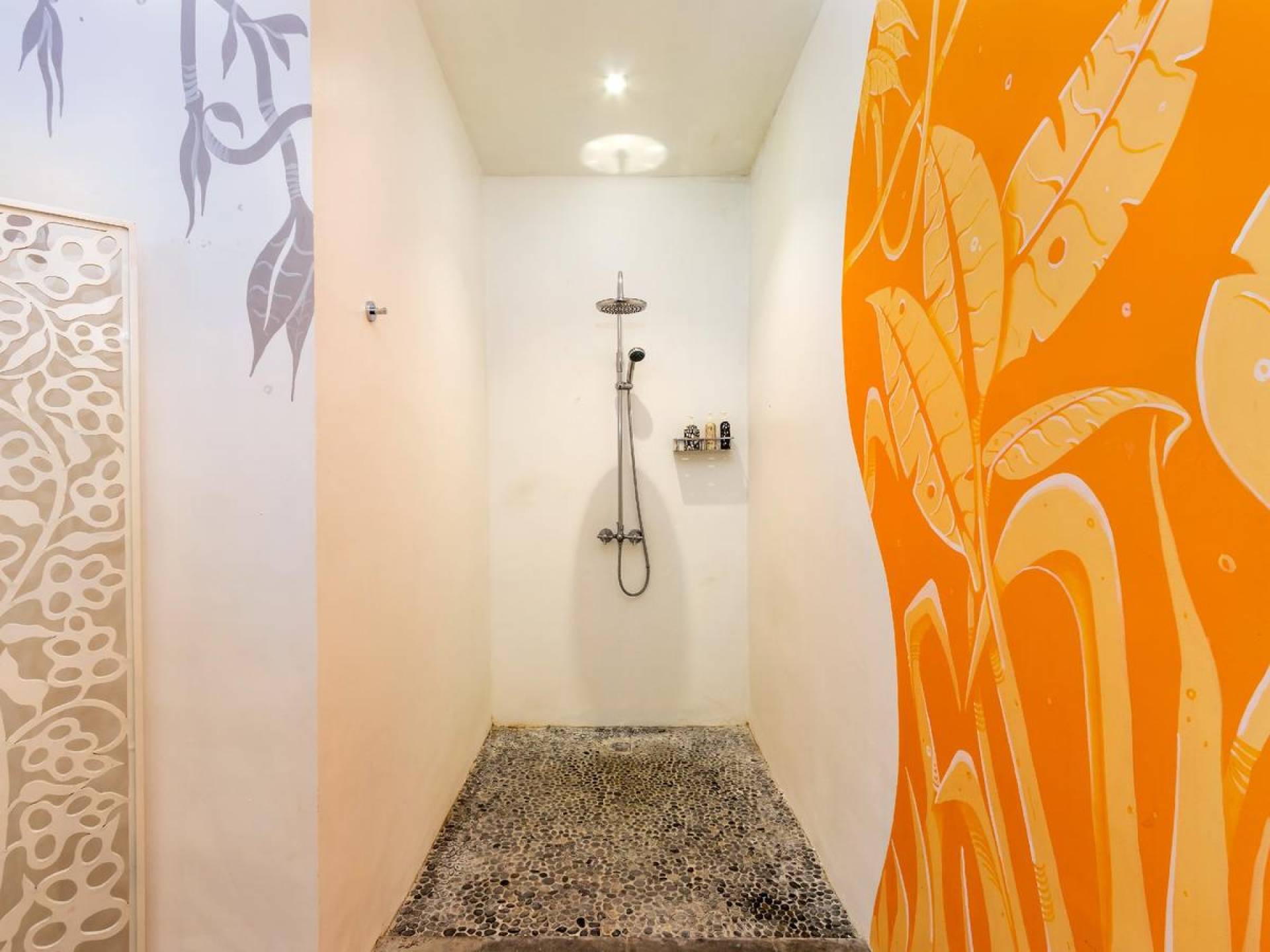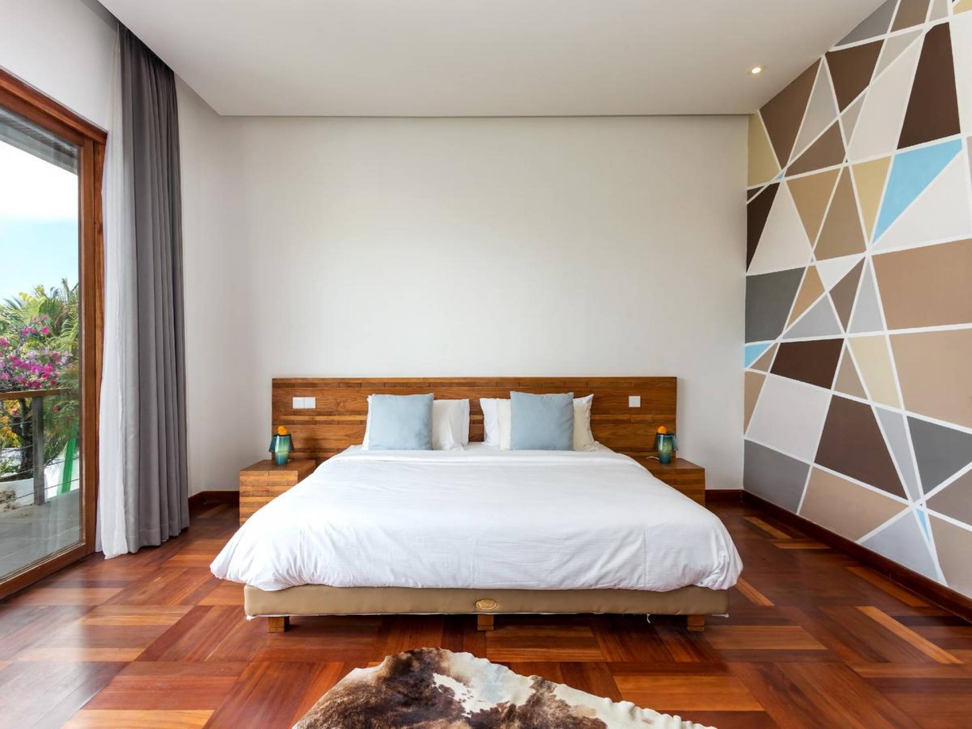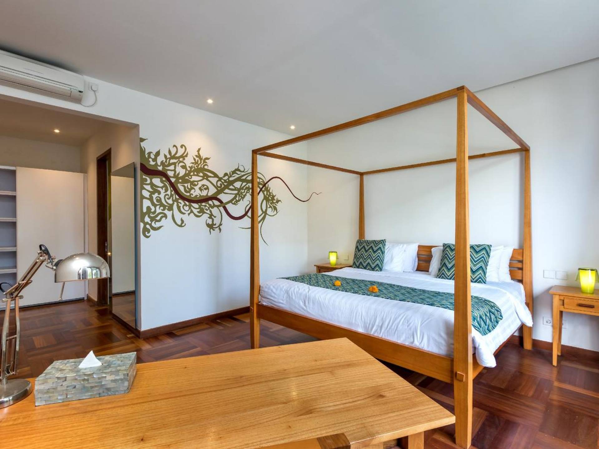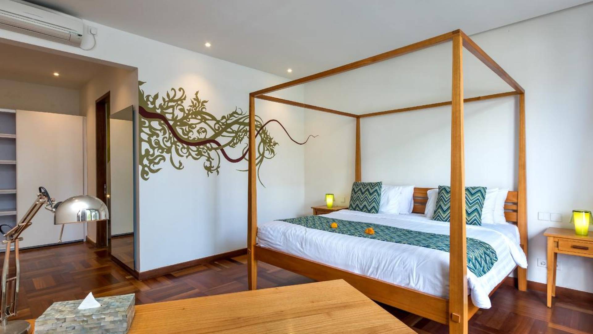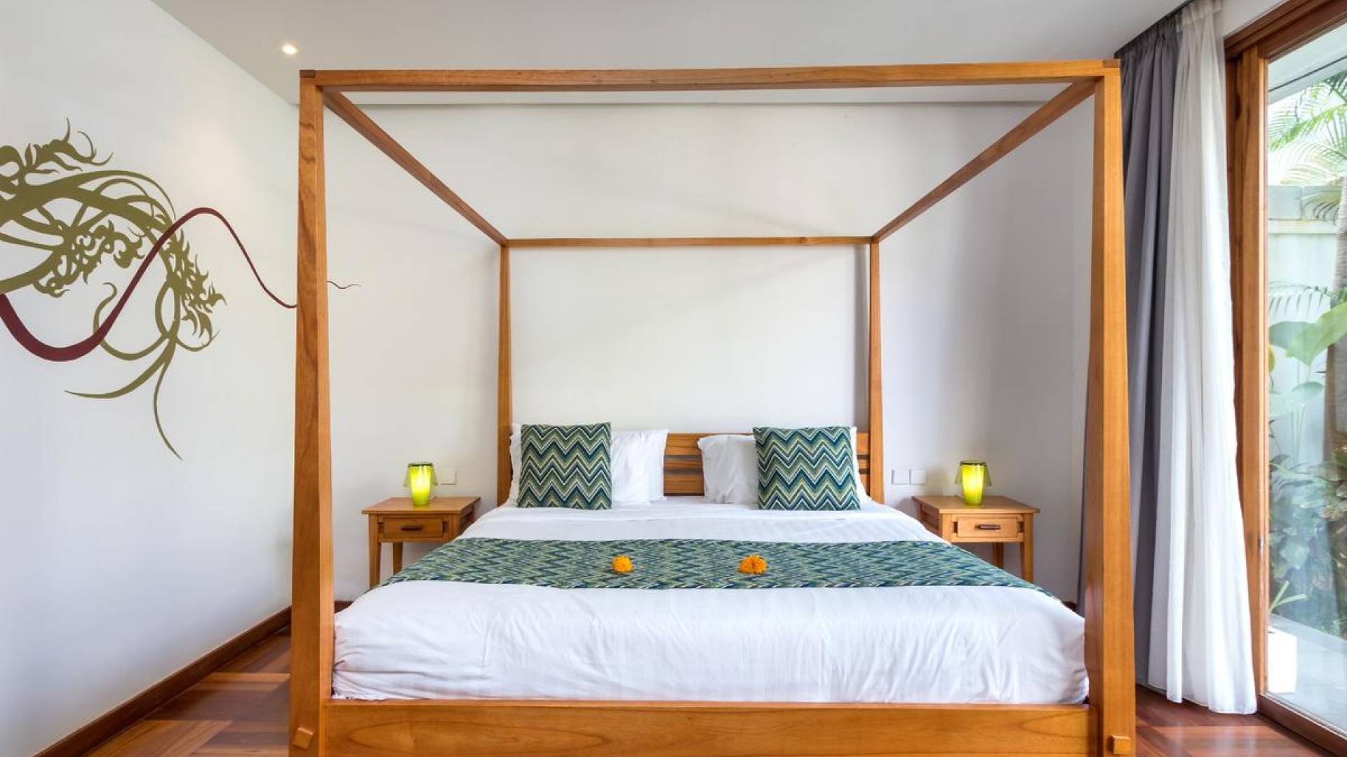Villa Casa Cinta 1 Seminyak is a gorgeous 3-bedroom luxury villa, located just meters away from the beach in Batu Belig, a quiet area located strategically in between Seminyak and Canggu. The villa features a grand, modern, double-storey pavilion with a spacious, air-conditioned living room and three comfy villa suites. The most striking thing about Villa Casa Cinta 1 are the beautiful wall paintings made by Italian artists. They are handmade, unique and they give this villa character a unique character.