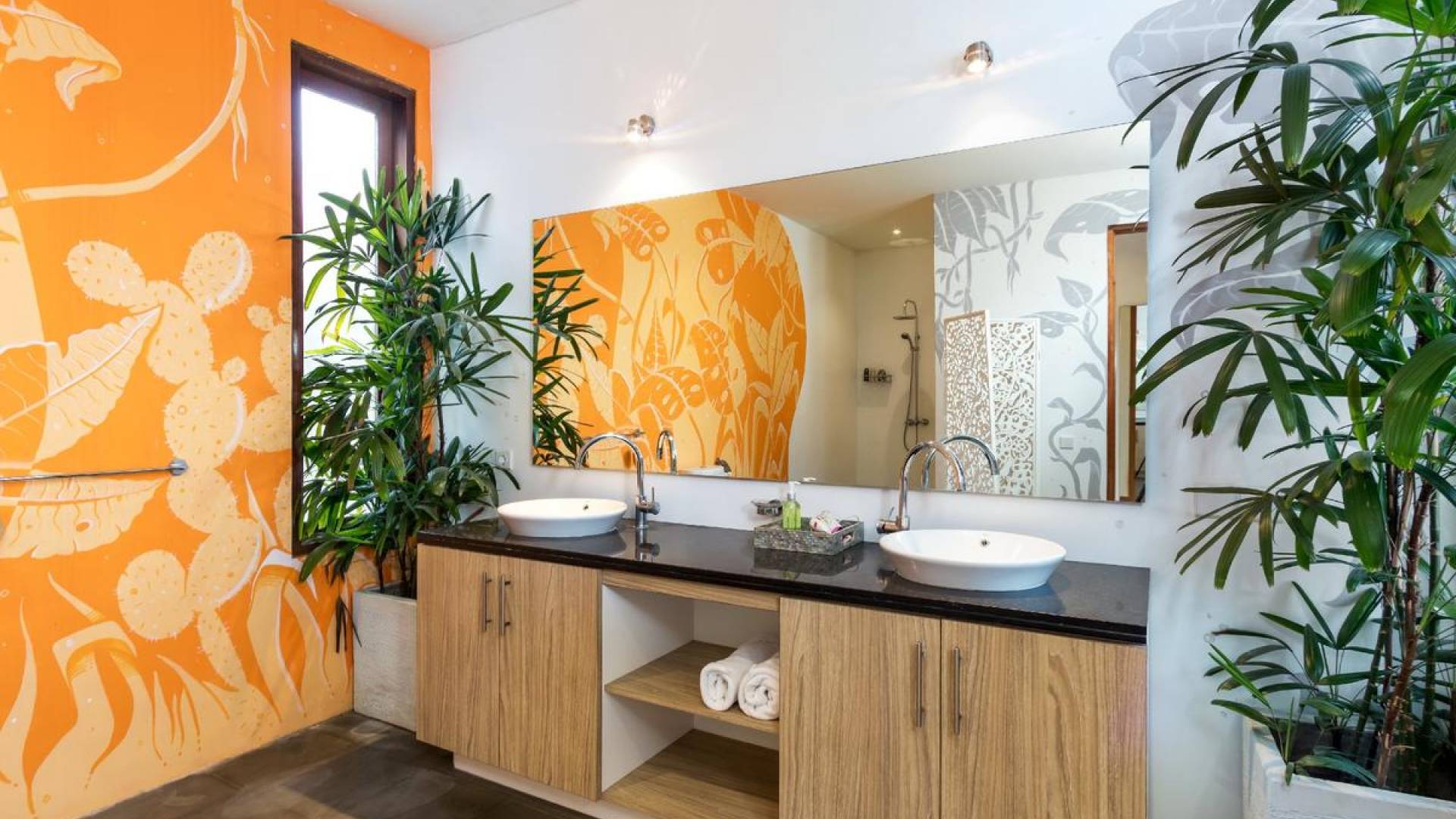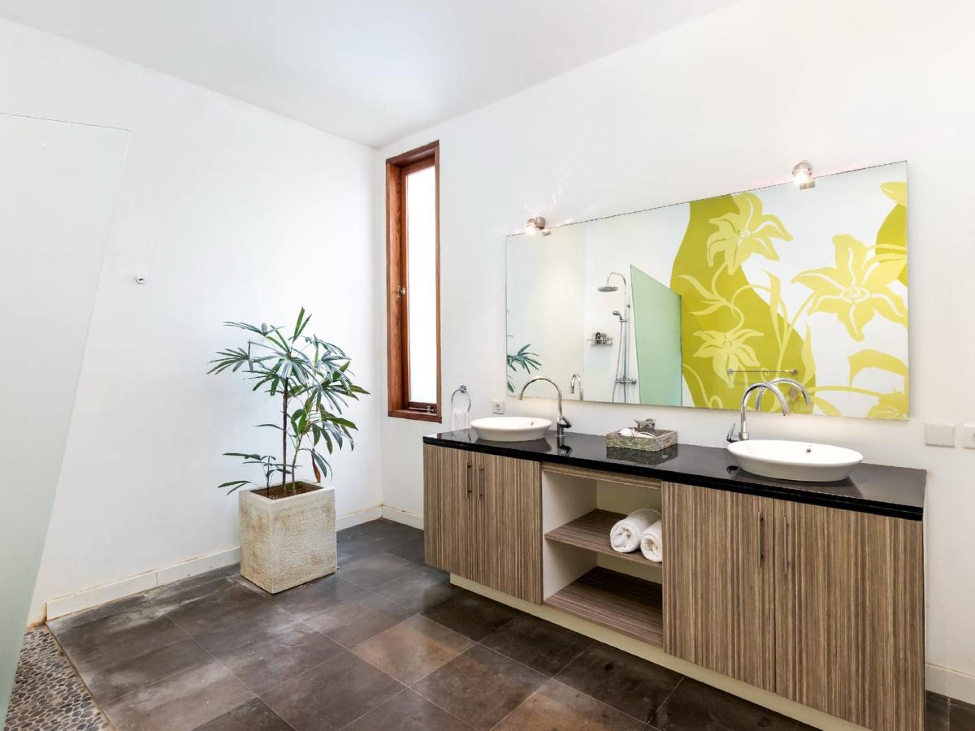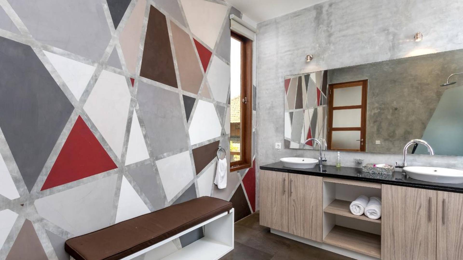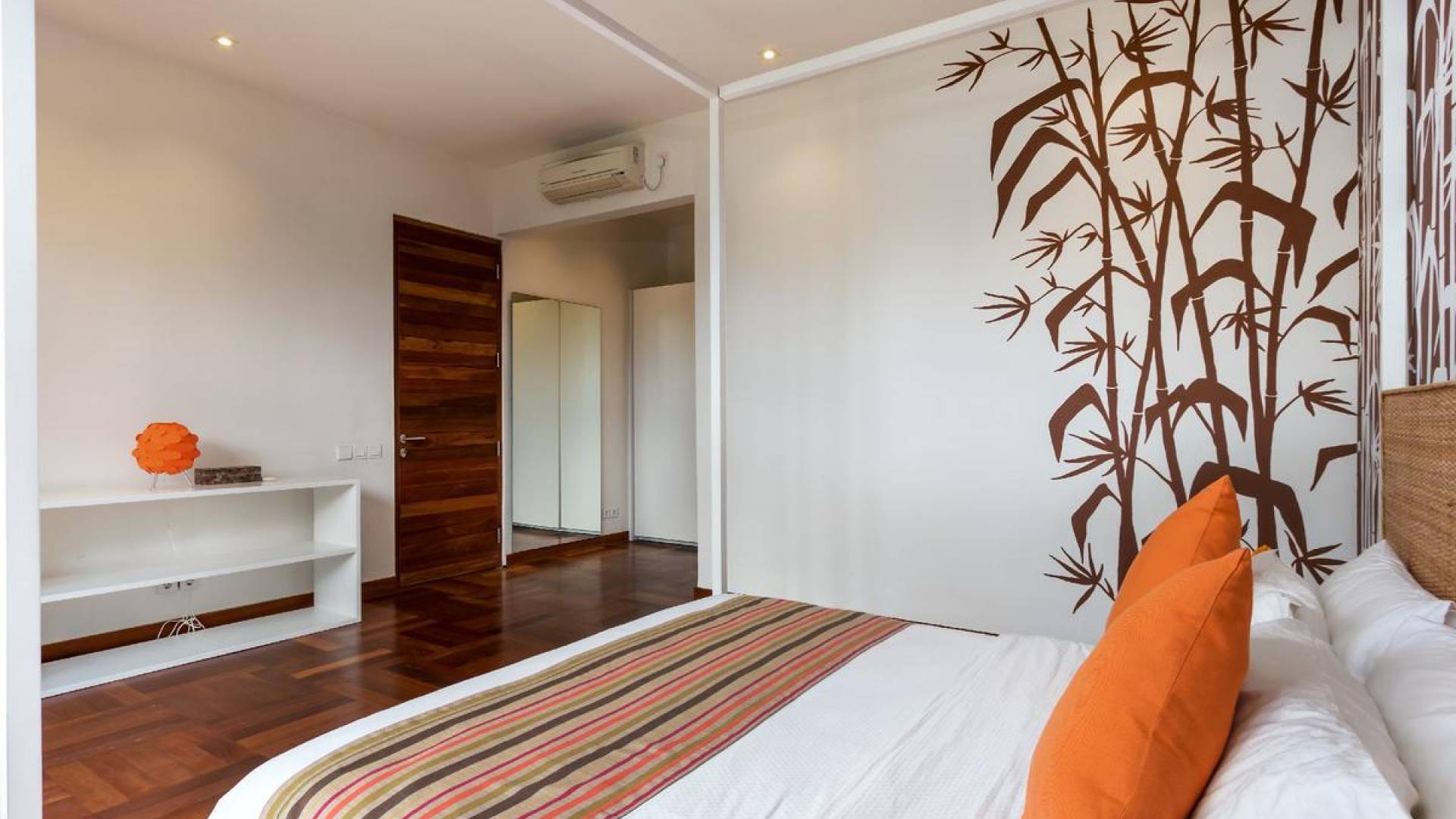 Villa Casa Cinta 1 Seminyak is a gorgeous 3-bedroom luxury villa, located just meters away from the beach in Batu Belig, a quiet area located strategically in between Seminyak and Canggu. The villa features a grand, modern, double-storey pavilion with a spacious, air-conditioned living room and three comfy villa suites. The most striking thing about Villa Casa Cinta 1 are the beautiful wall paintings made by Italian artists. They are handmade, unique and they give this villa character a unique character.