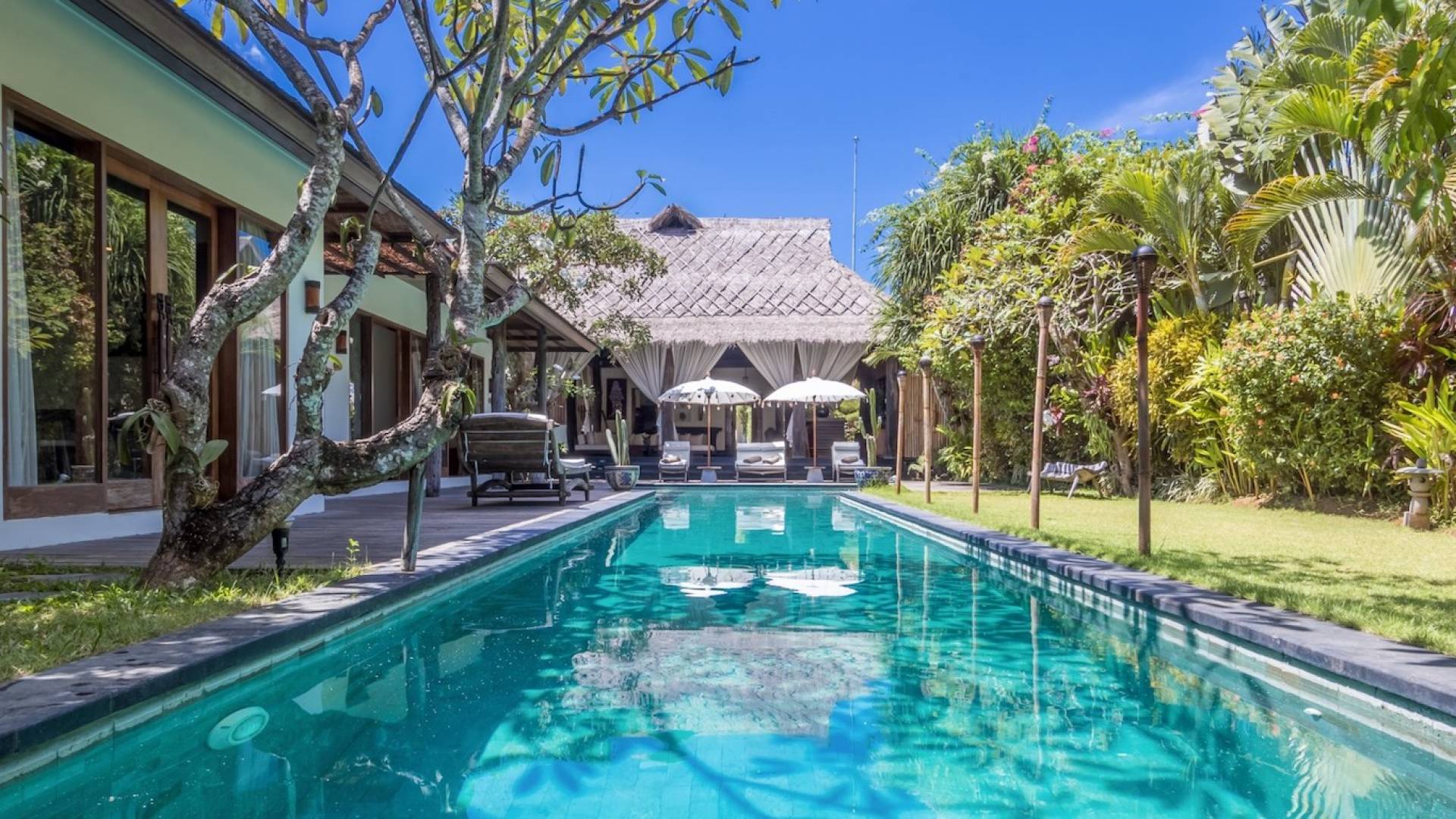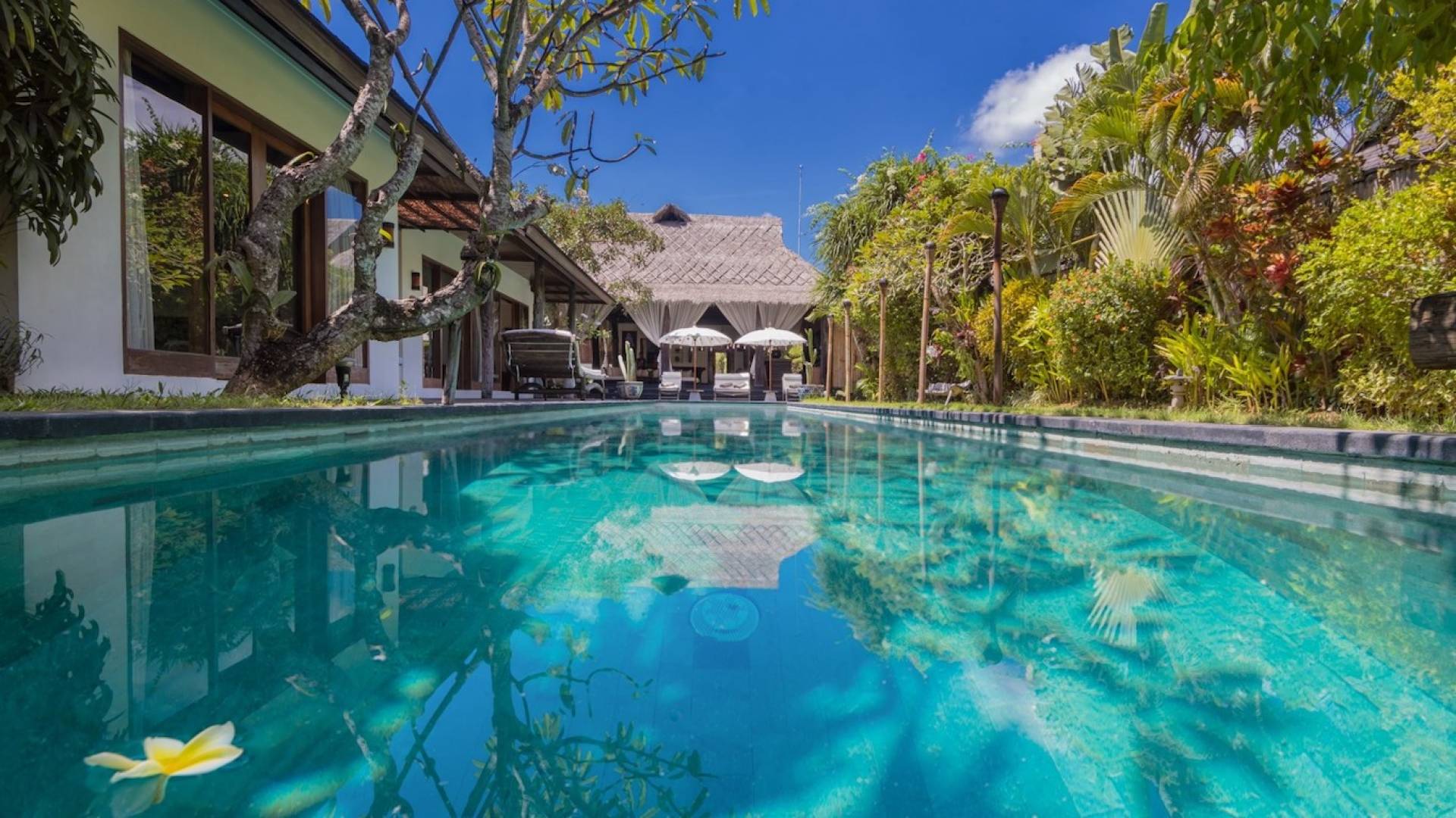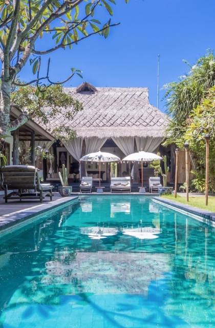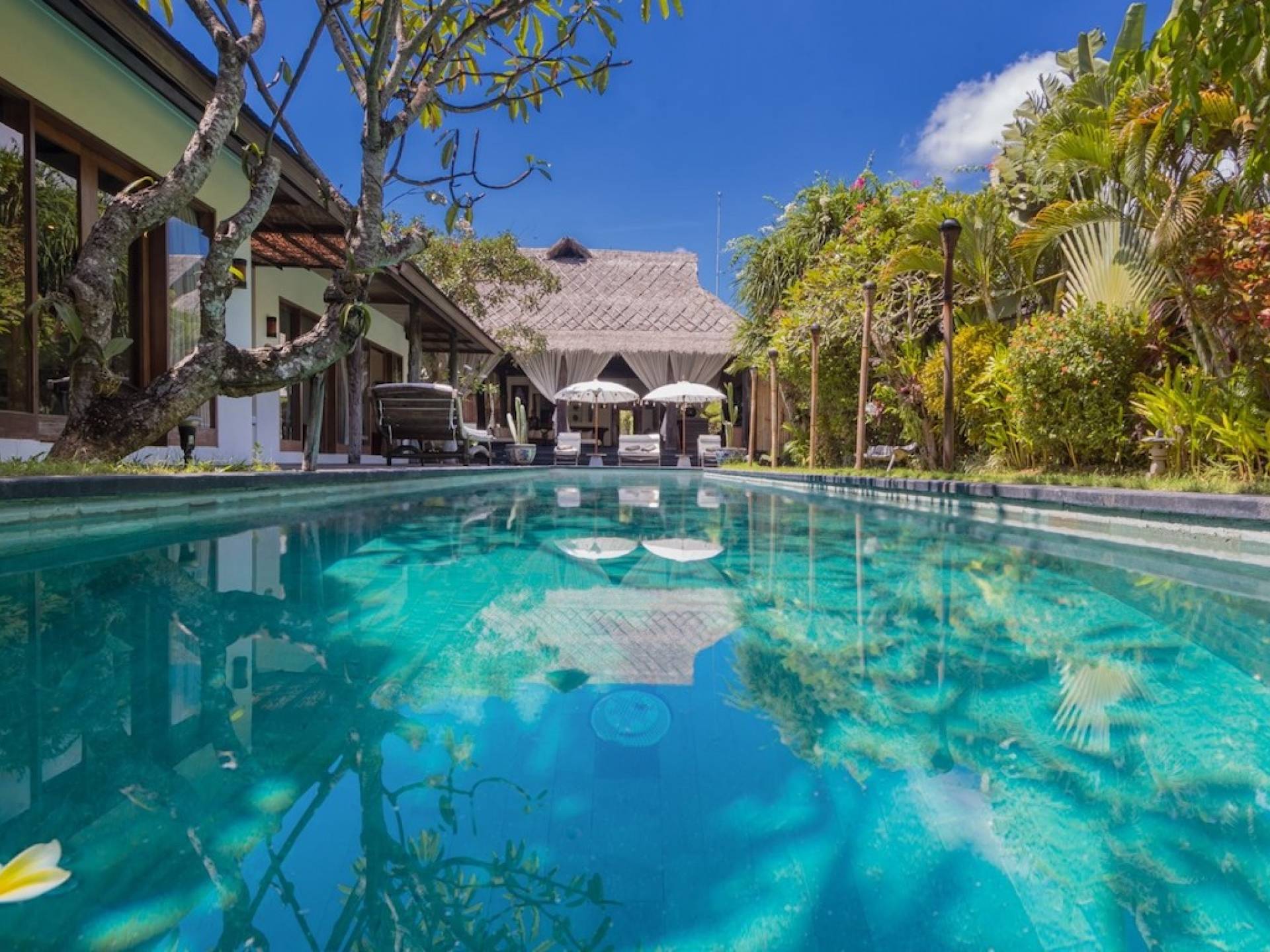 Villa Ku Besar Seminyak is a wonderful 4-bedroom holiday haven where traditional charm meets modern luxuries. A perfect peaceful hideaway in the center of Seminyak, the most fashionable and happening beach town in all of Bali. Traditional thatch-roofed pavilions, ornamental fishponds, and a wonderful tropical garden with a huge swimming pool plus a private gym await. It is a true best-kept- secret ready to be discovered by those seeking tranquility, luxury, and a superb central location. Feel welcome!