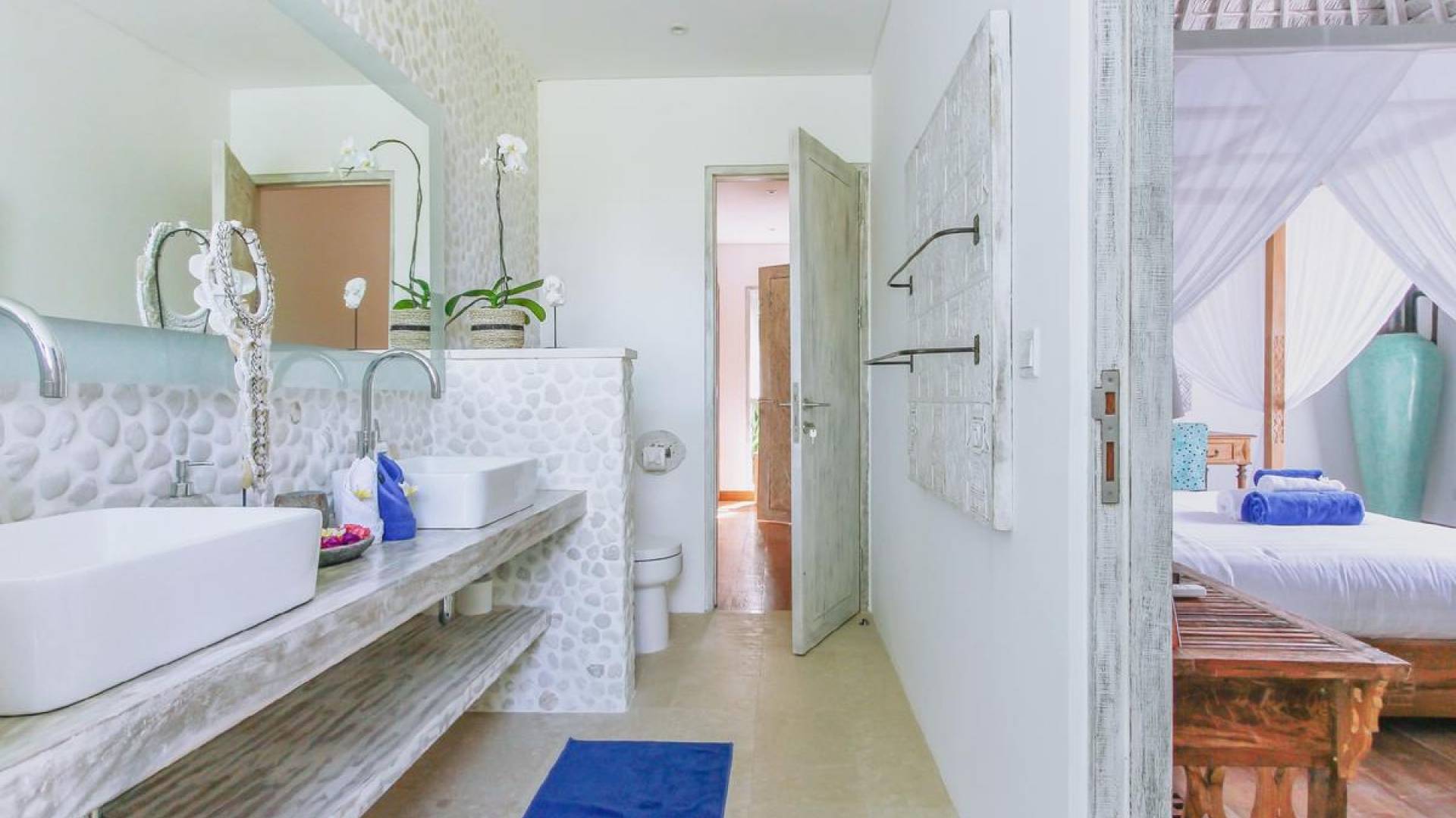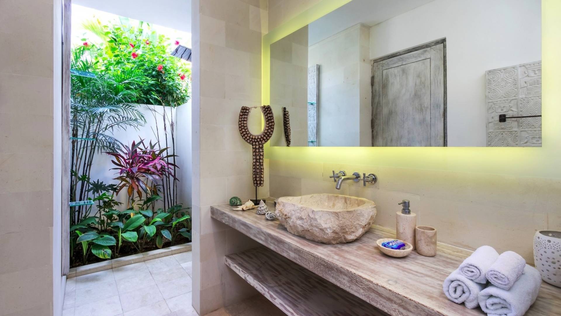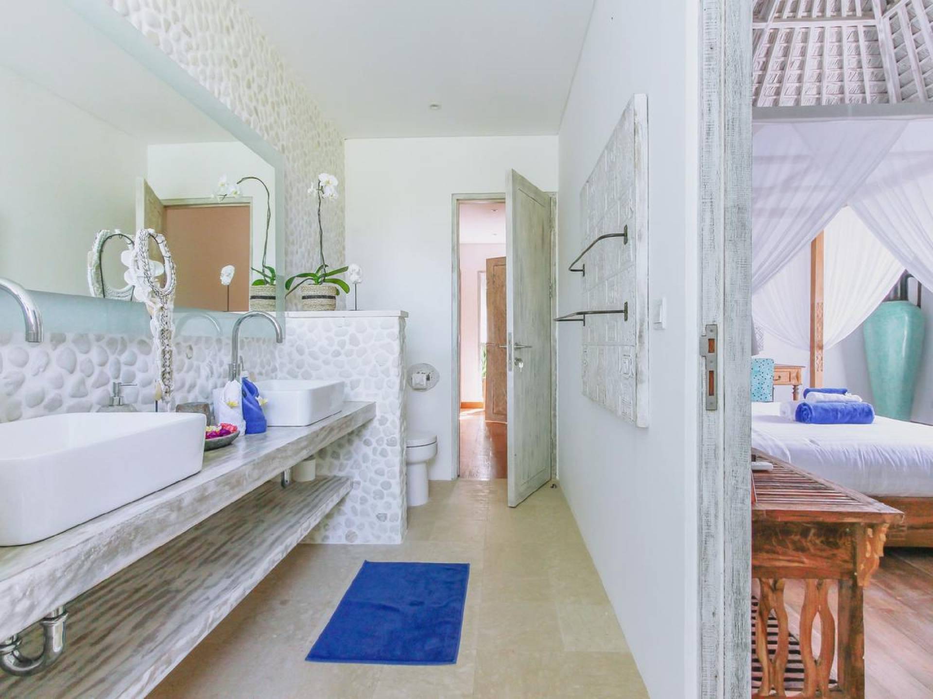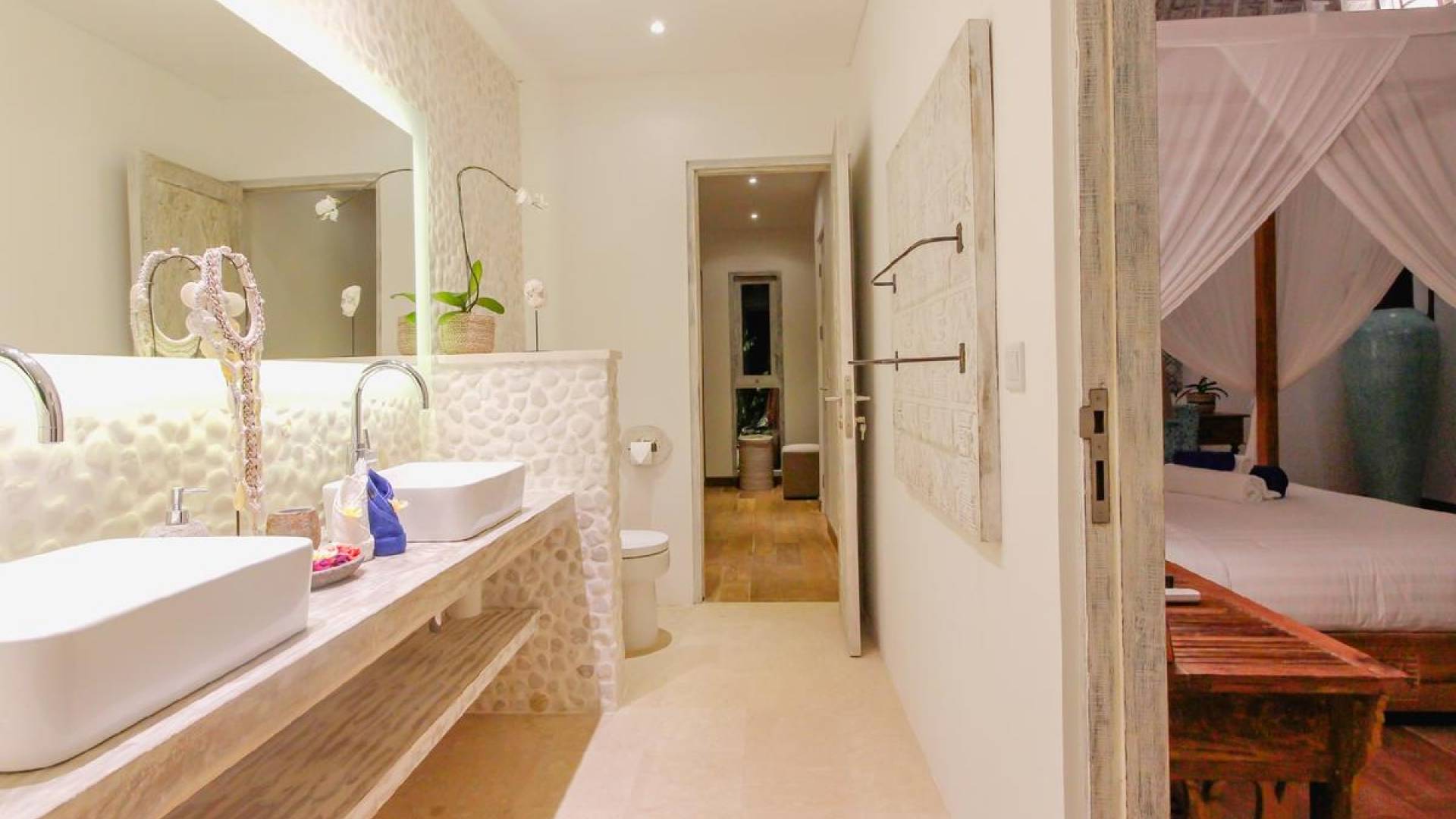 Tucked away in the chicest part of Seminyak, you can easily stroll down to Petitenget Beach, have cocktails at Potato Head, and go for drinks and food at celebrated restaurants such as Metis, Sarong, Bambu, or the beachfront La Lucciola. Inside the villa, the ambiance is perfectly tropical and peaceful, away from the buzzing crowds and the outside traffic. A stay at Villa Paraiba really gives you the best of both worlds! You are welcomed in the garden where you can jump straight into the crystal clear water of the pool if you feel like it and soak up the sun afterward, catching that beautiful tan. This way, you will be acclimatizing perfectly, getting into the holiday vibe with a cocktail or a whole cold coconut within reach of hand.
