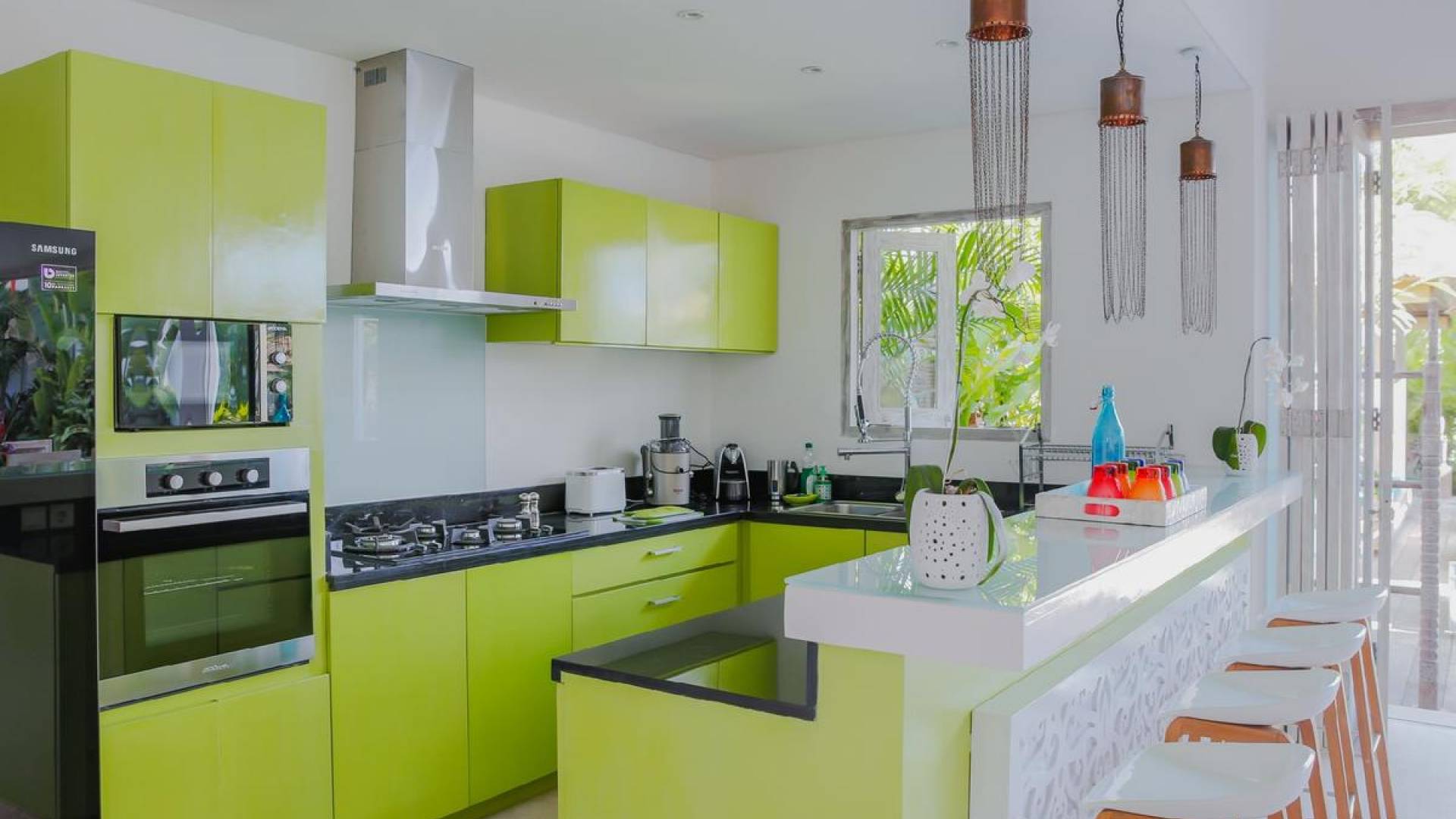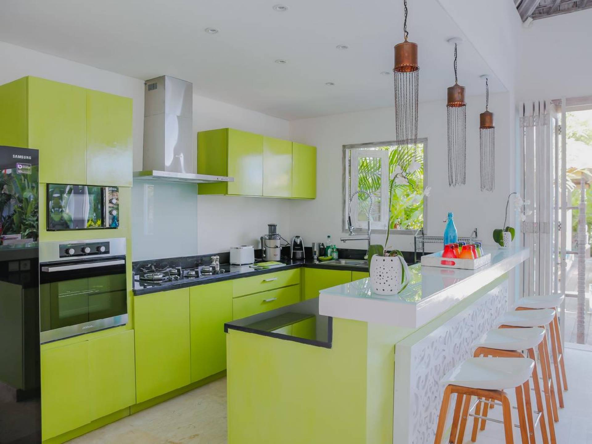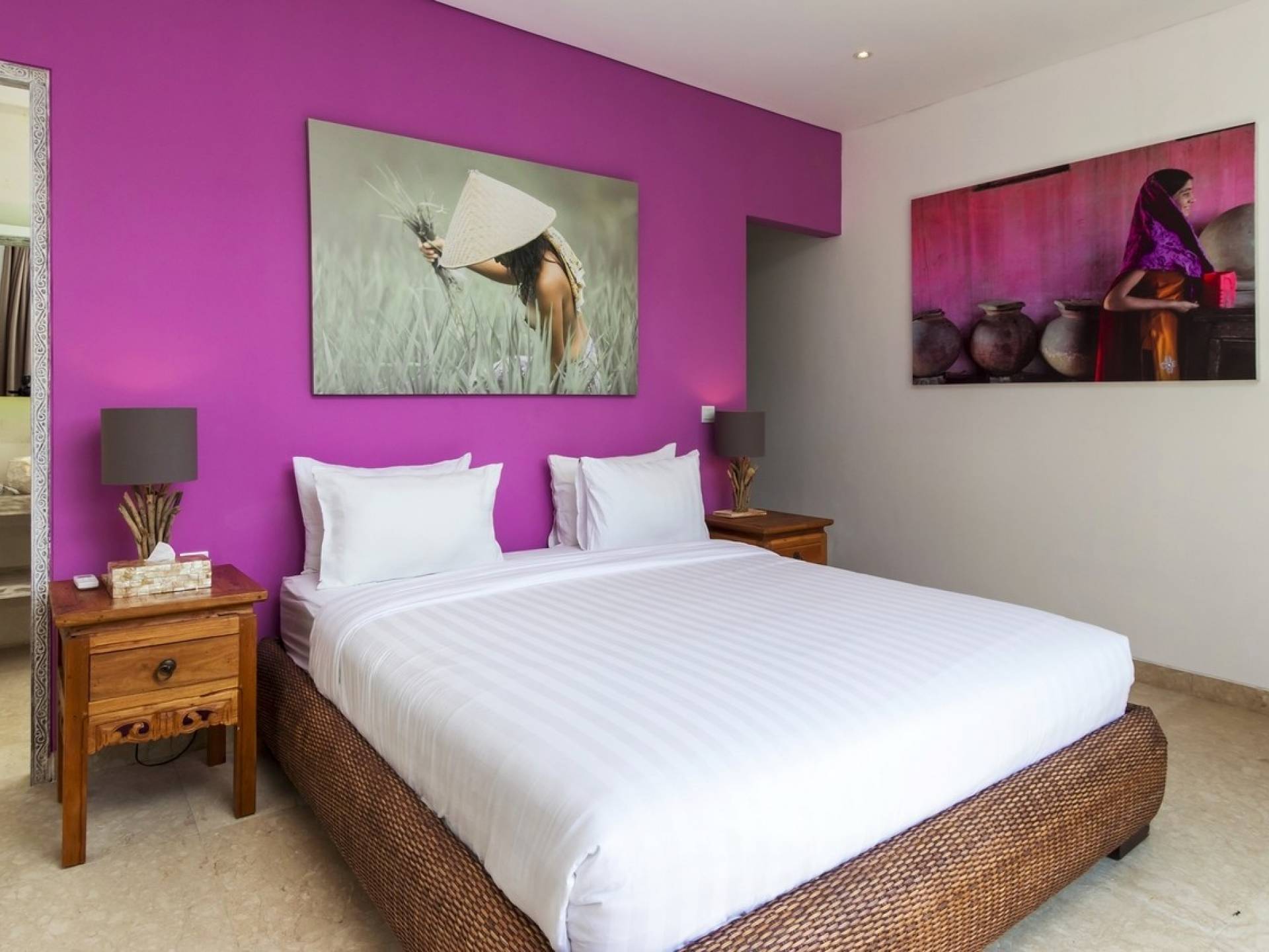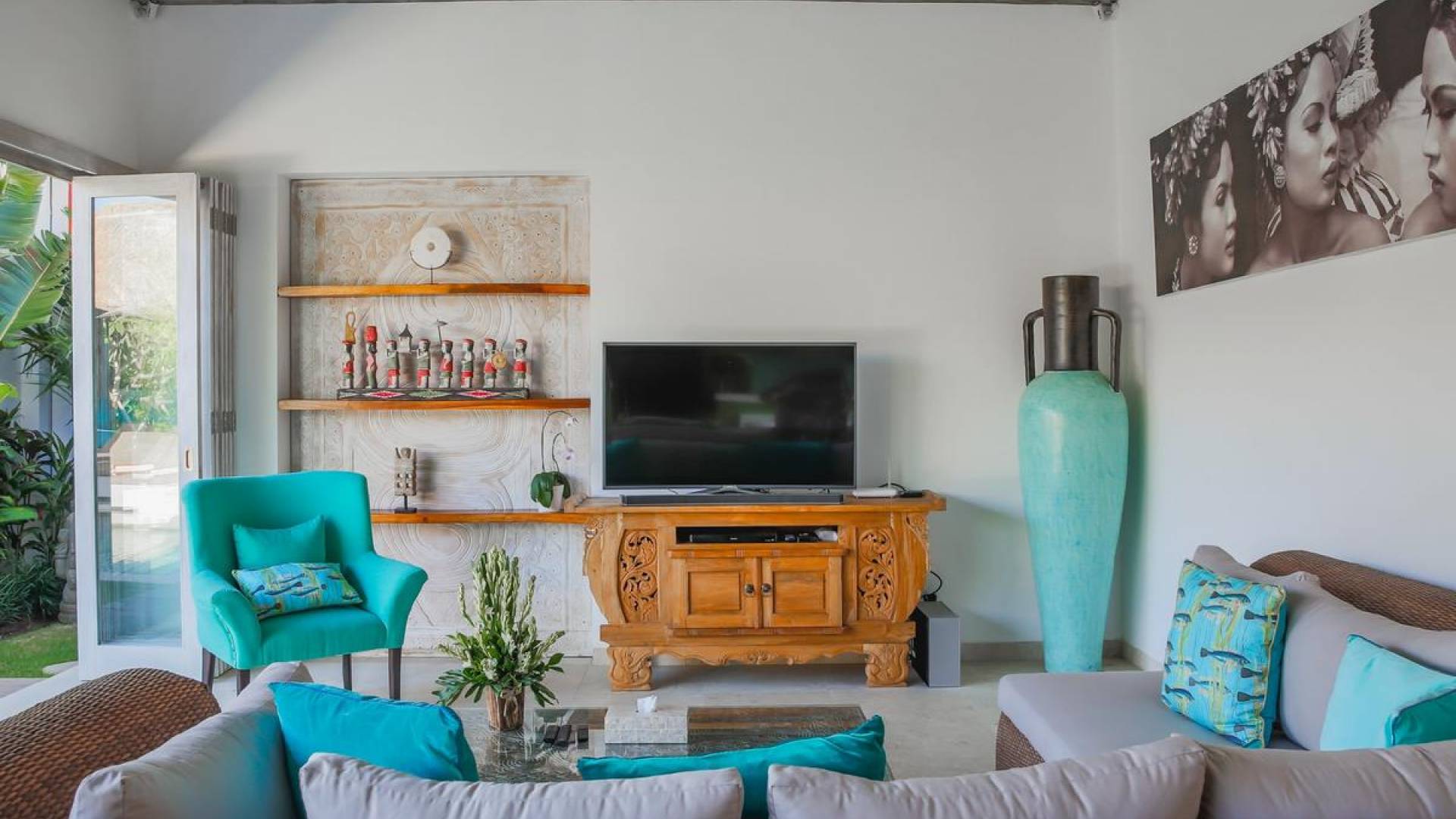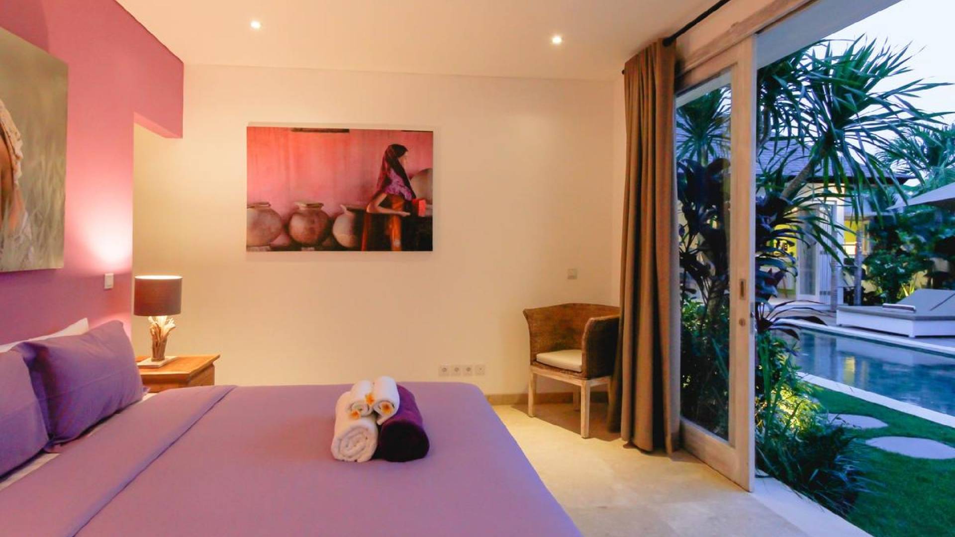 Villa Paraiba Seminyak is a tropical, Balinese-style, super colorful holiday home, hidden away from the hustle and bustle in the heart of Seminyak. You get to experience the tropical lifestyle while not giving in to modern comforts and holiday luxuries. Enough of swimming in the pool and relaxing in the garden or on the sofa? Go explore the fashionable town of Seminyak, famous for its shops, cafes, restaurants, and beach clubs. Make sure to catch that magnificent island sunset, too! Coming home to Villa Paraiba Seminyak will be just wonderful every day during your stay!