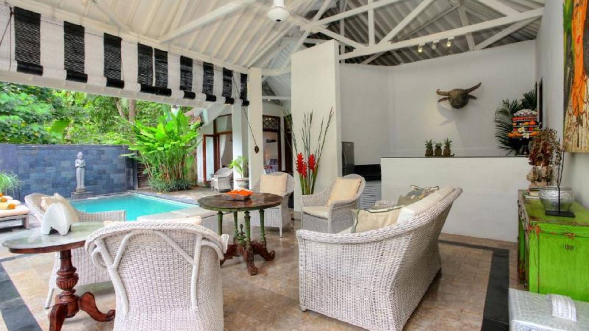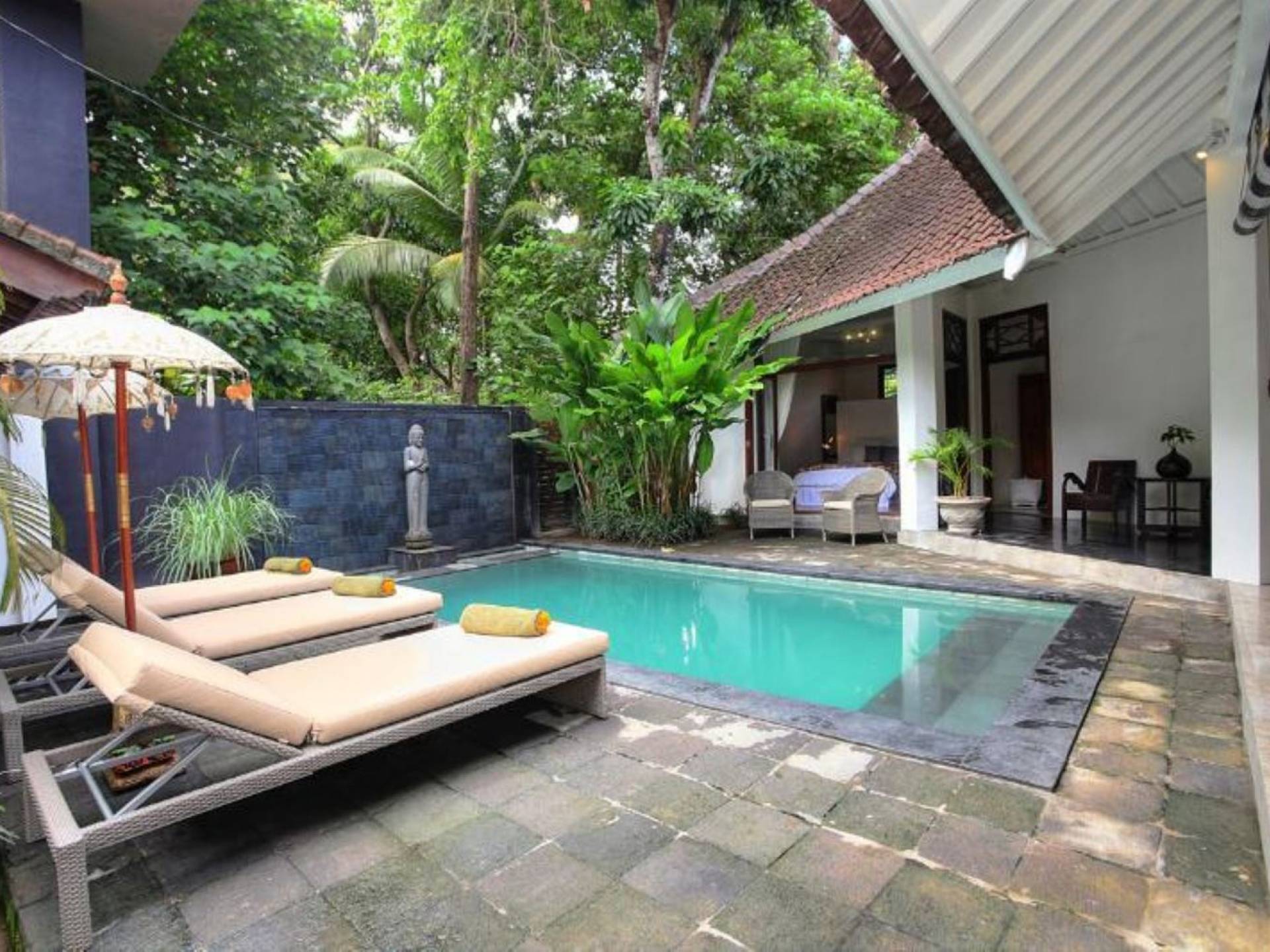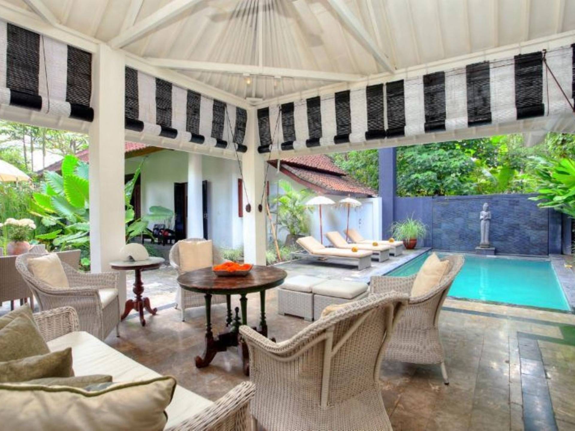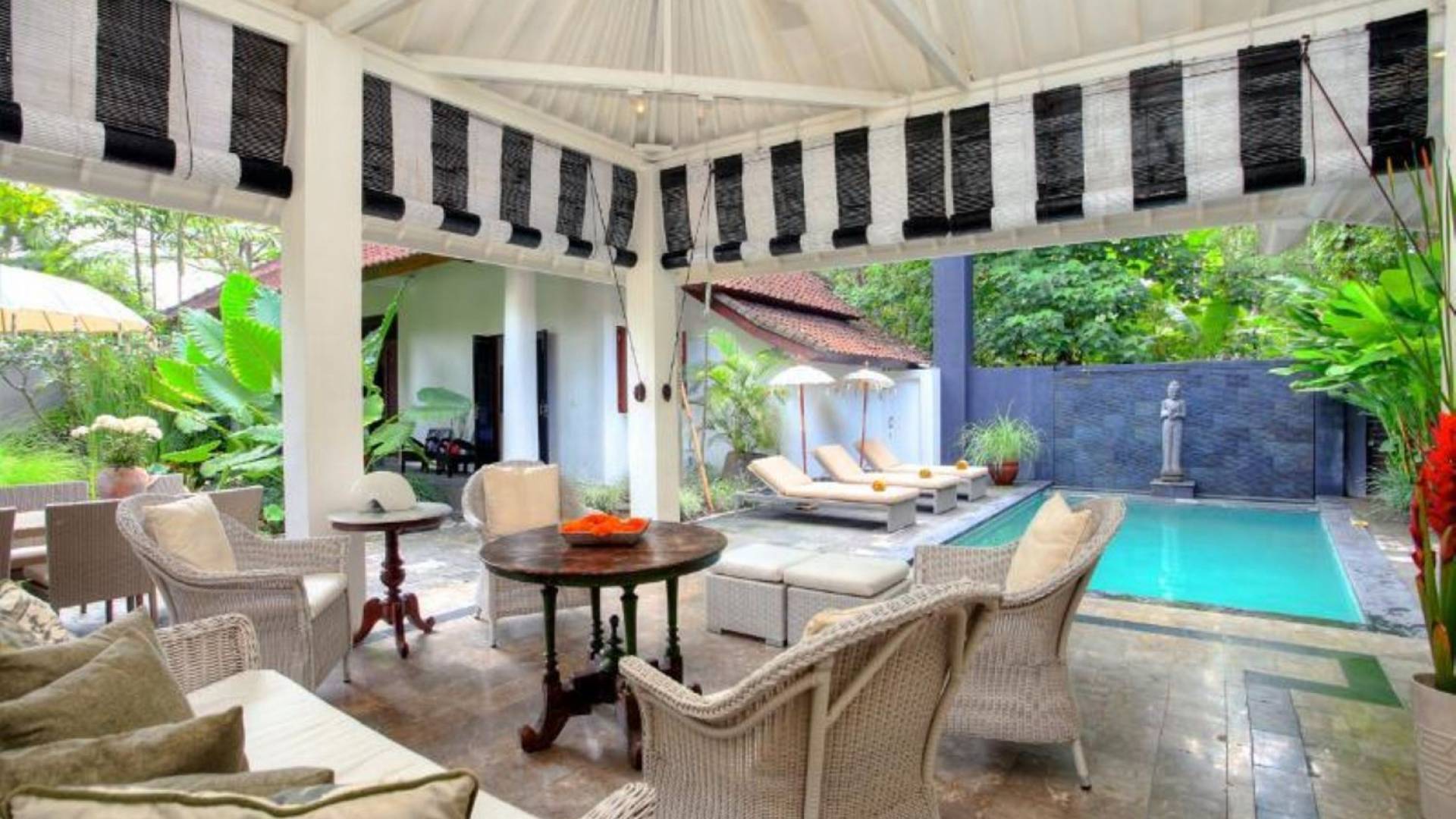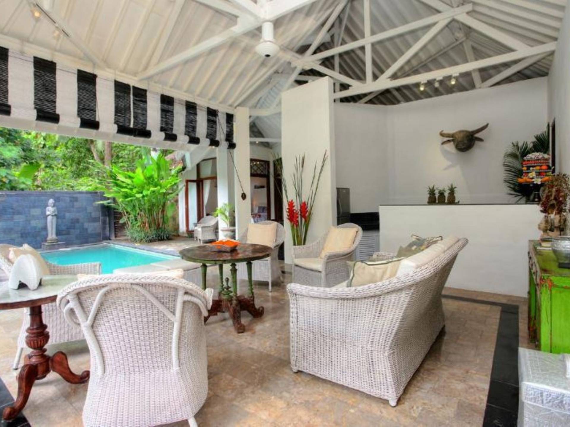 Outside features well-maintained garden and private pool with poolside loungers and outdoor dining area. At Villa Putih Sekali, we’ll make sure your holiday is memorable and our staff will be discreet enough to make you feel at home yet available on demand from 7 am - 5 pm.