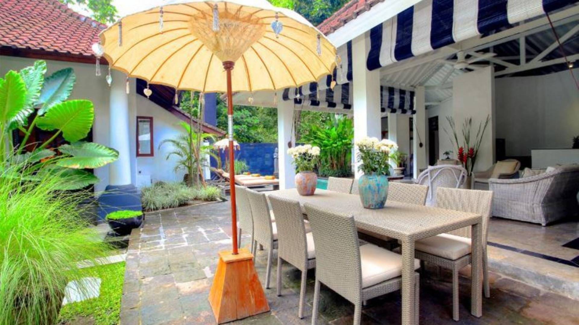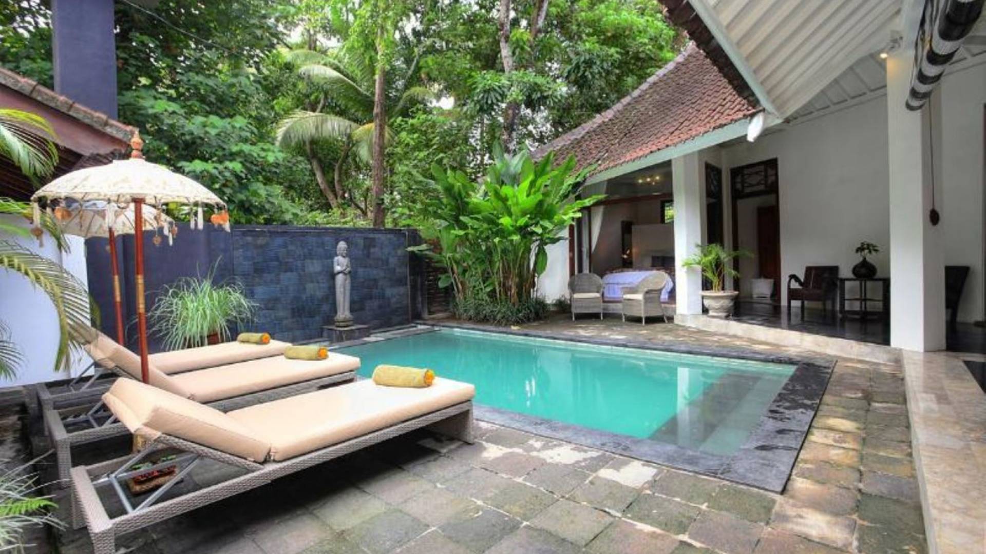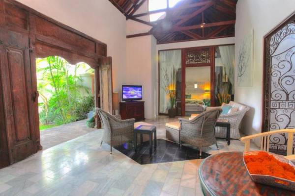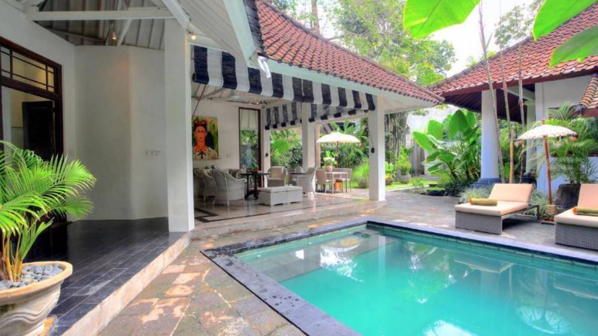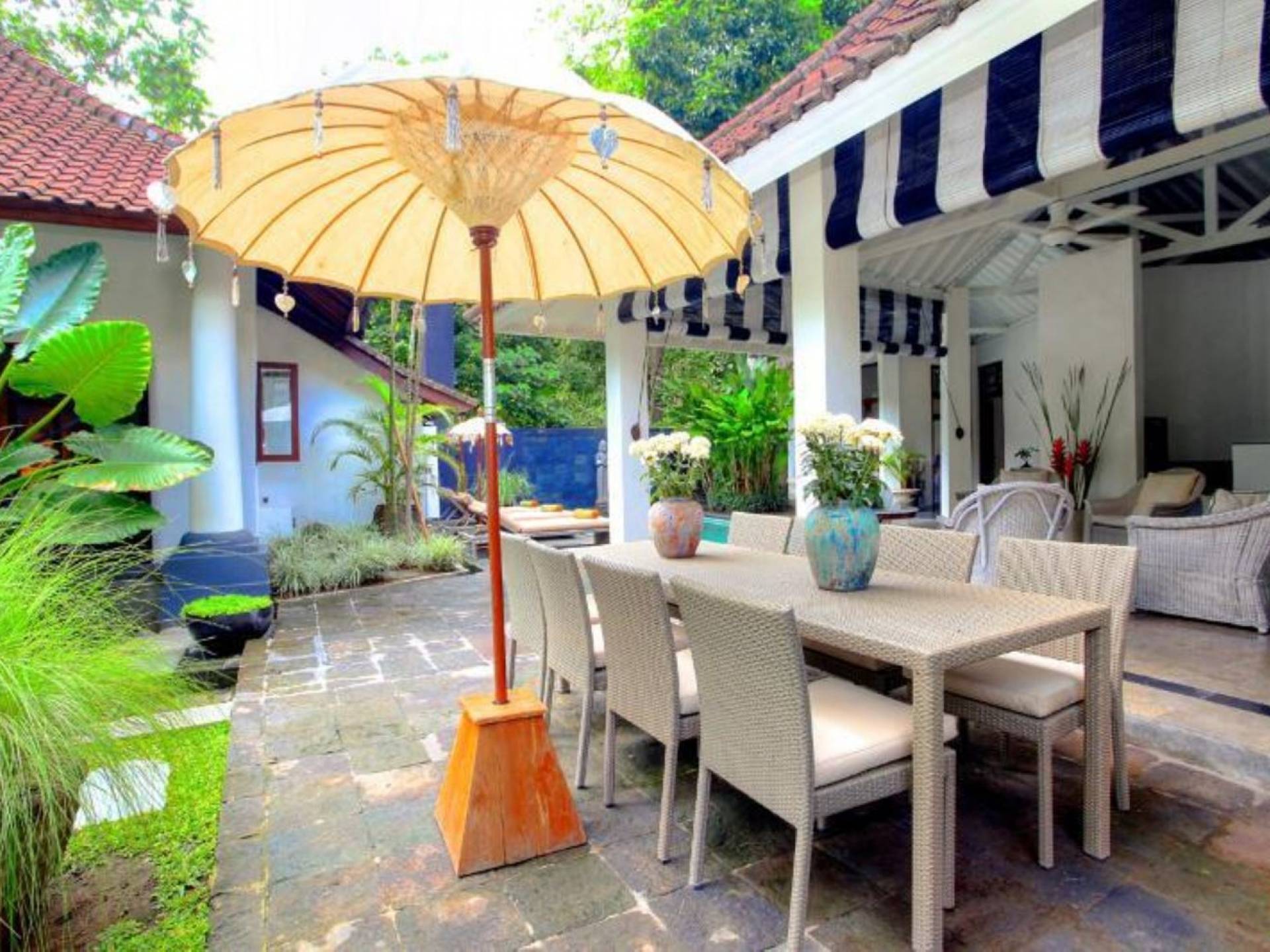 Outside features well-maintained garden and private pool with poolside loungers and outdoor dining area. At Villa Putih Sekali, we’ll make sure your holiday is memorable and our staff will be discreet enough to make you feel at home yet available on demand from 7 am - 5 pm.