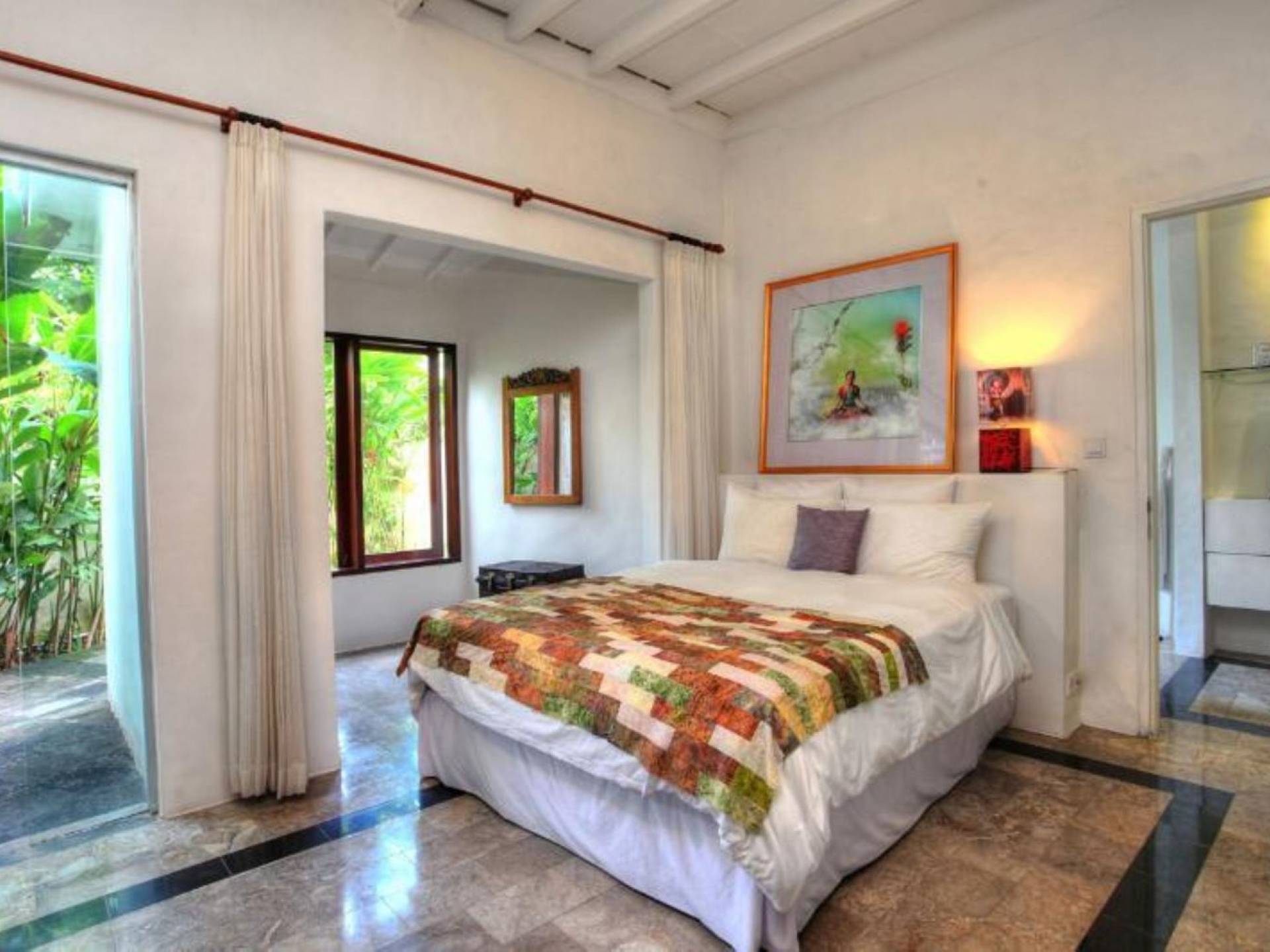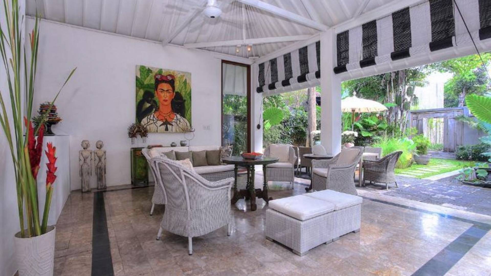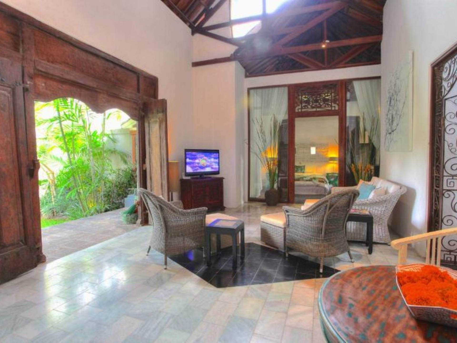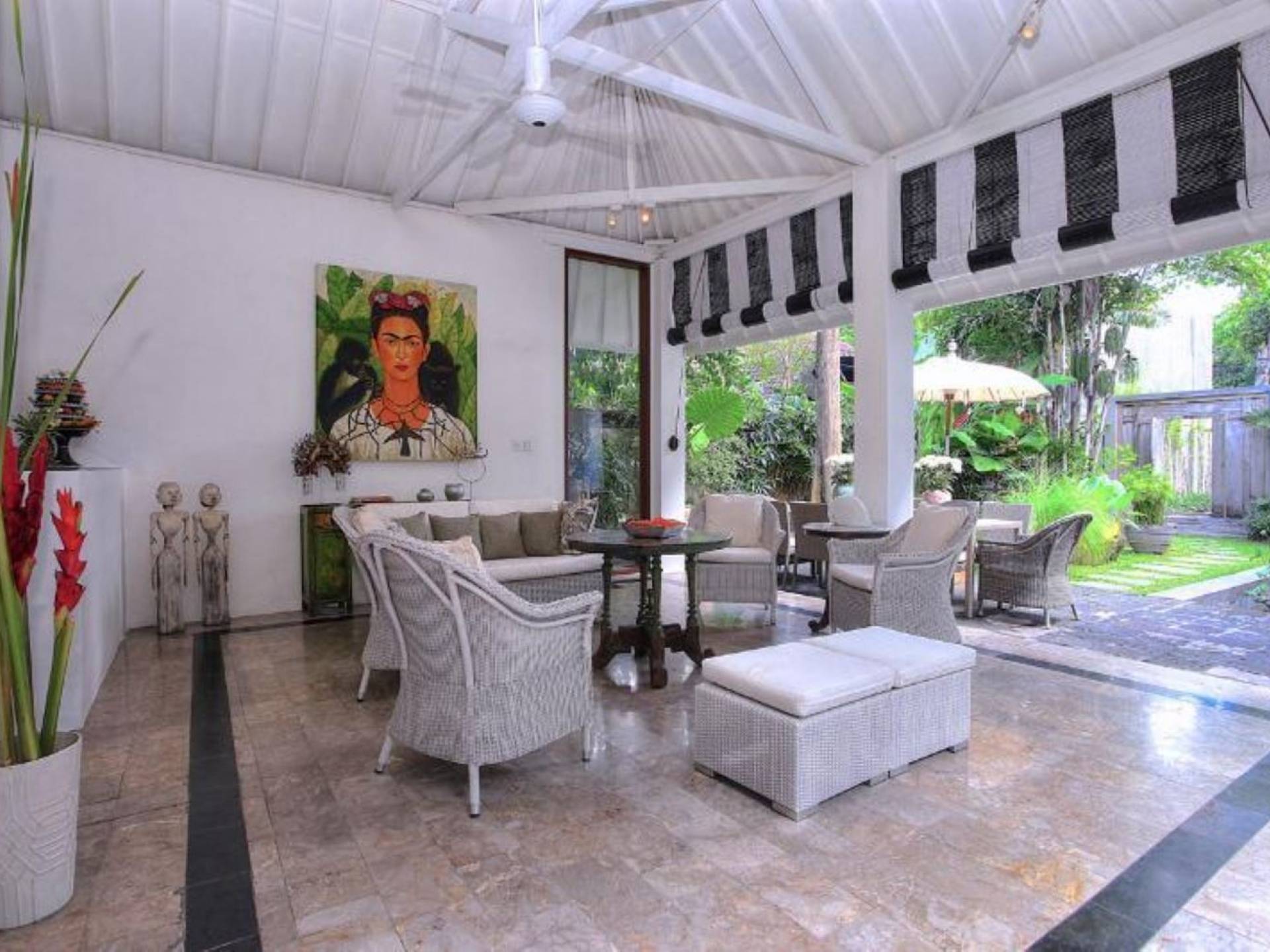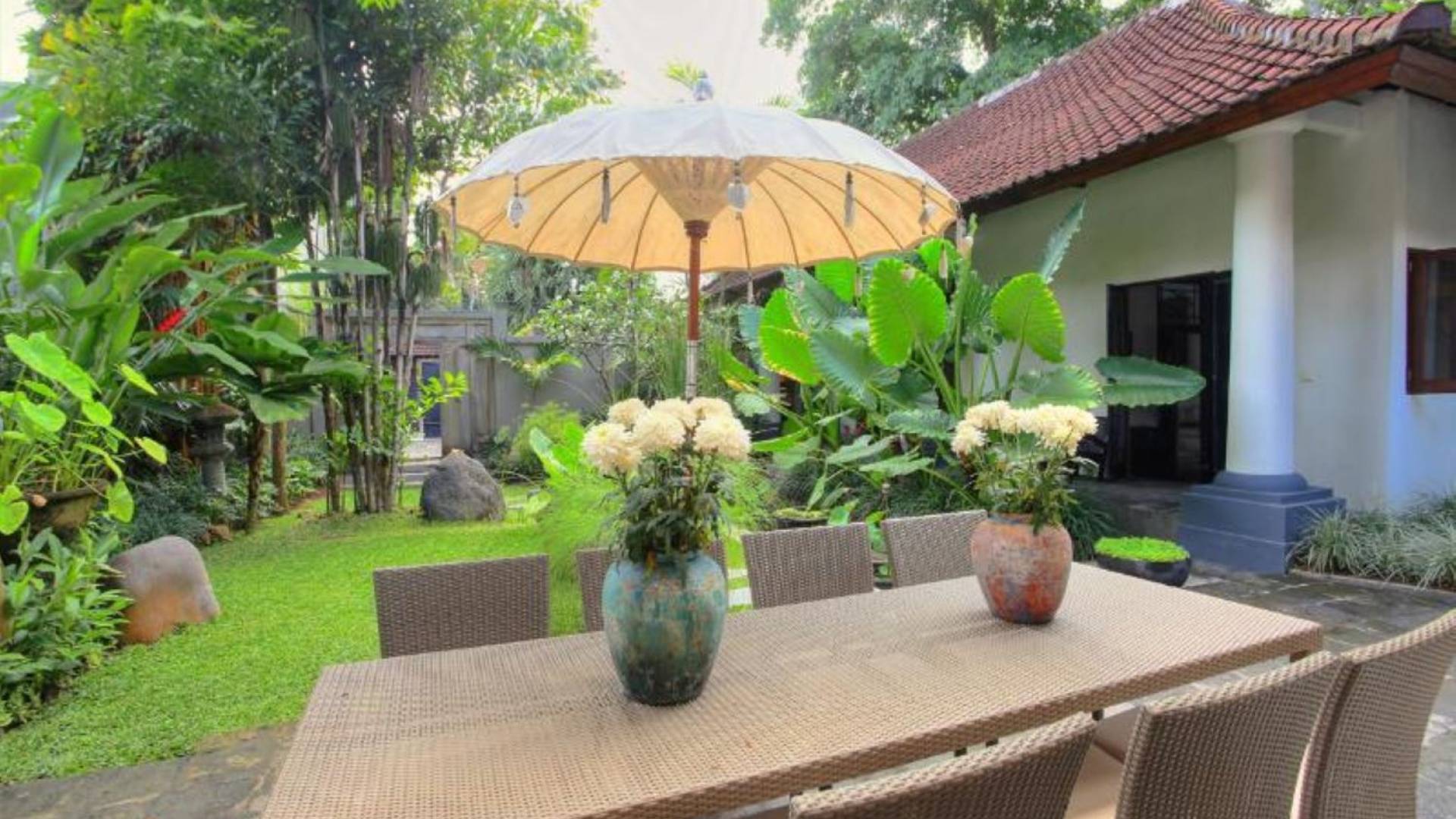 Outside features well-maintained garden and private pool with poolside loungers and outdoor dining area. At Villa Putih Sekali, we’ll make sure your holiday is memorable and our staff will be discreet enough to make you feel at home yet available on demand from 7 am - 5 pm.